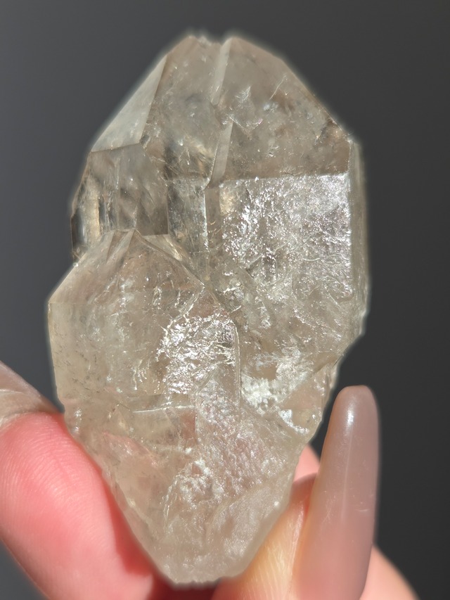ブラジル アレグレ産エレスチャルクォーツ スモーキークォーツのエレスチャルクォーツ。ごつごつ具合いがとてもかっこいいです。 エレスチャルクォーツは、水晶の一種で、独特の形状と内部構造を持つことで知られています。和名では「骸骨水晶」や「鰐水晶」とも呼ばれ、まるで骸骨やワニの鱗のような外観を持つことがあります。長い年月をかけて形成された水晶の最終形態とも言われますが、最近の研究では短期間で急速に成長した可能性も指摘されています。 エレスチャルクォーツは「天使の贈り物」とも呼ばれ、スピリチュアルなエネルギーが非常に強く、持ち主の魂の成長や覚醒をサポートするパワーストーンとして知られています。瞑想やヒーリングに用いられることが多く、高次元の意識との繋がりを深め、内なる声や魂の導きに気づく助けとなると言われています。 size66.7mm×36.3mm×21.5mm