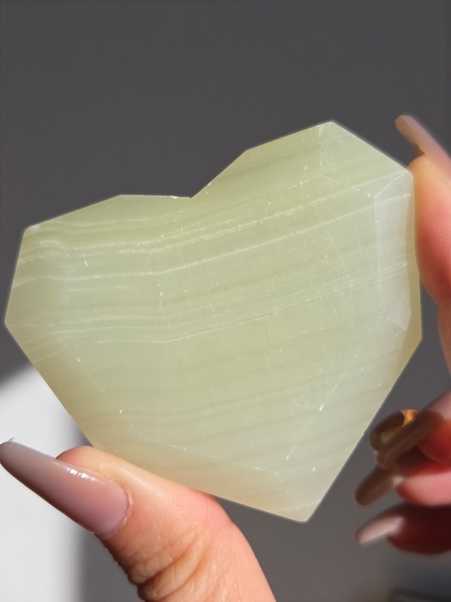 アフガニスタンジェイドかくかくハートパーム ジェイドは、別名、翡翠輝石です。 日本では、翡翠の響のほうが馴染みがあるの思います。 翡翠は、「魔法の石」「奇跡の石」として魔除けや開運のお守りとして使われてきたパワーストーンです。 size:58.2mm×67mm×14.5mm