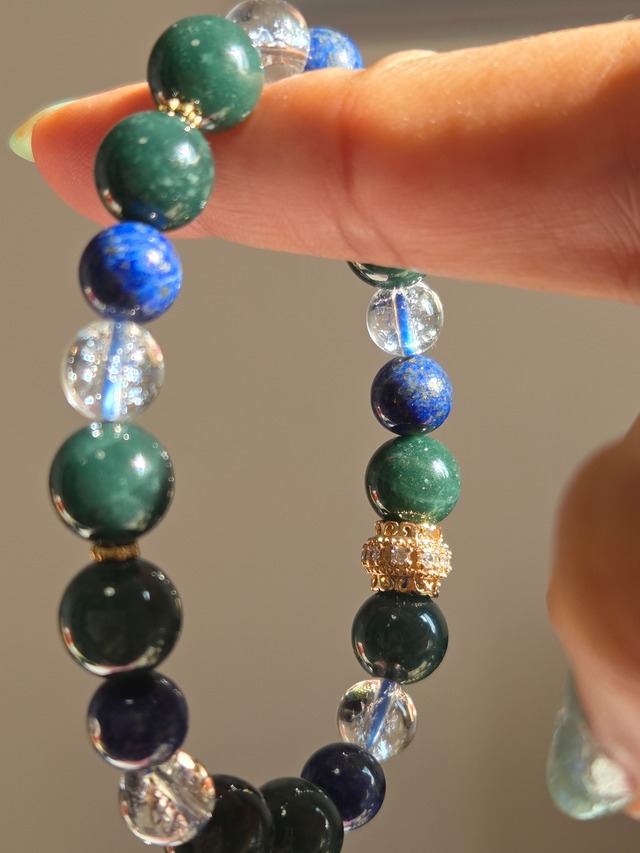 翡翠 ラピスラズリ 水晶デザインブレスレット