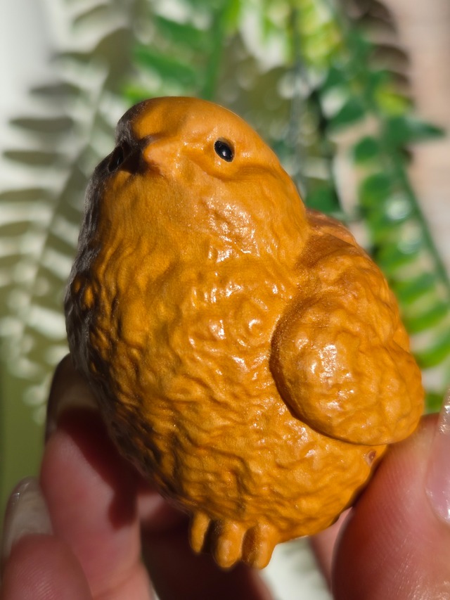 木彫り小鳥 インテリアのお共に可愛い小鳥です。馴染みやすく木目も可愛いです。 size47.4mm×43.2mm×37.1mm
