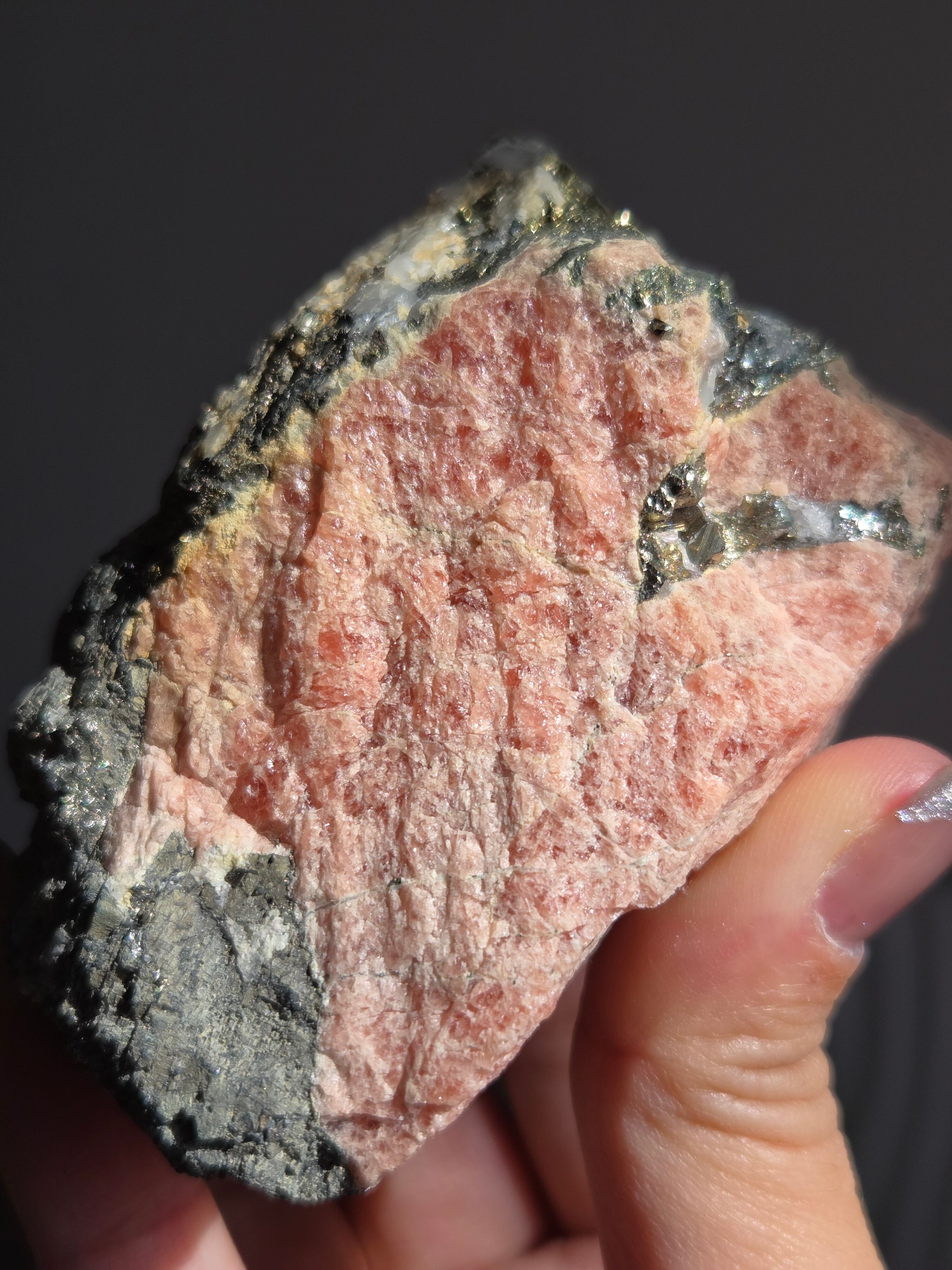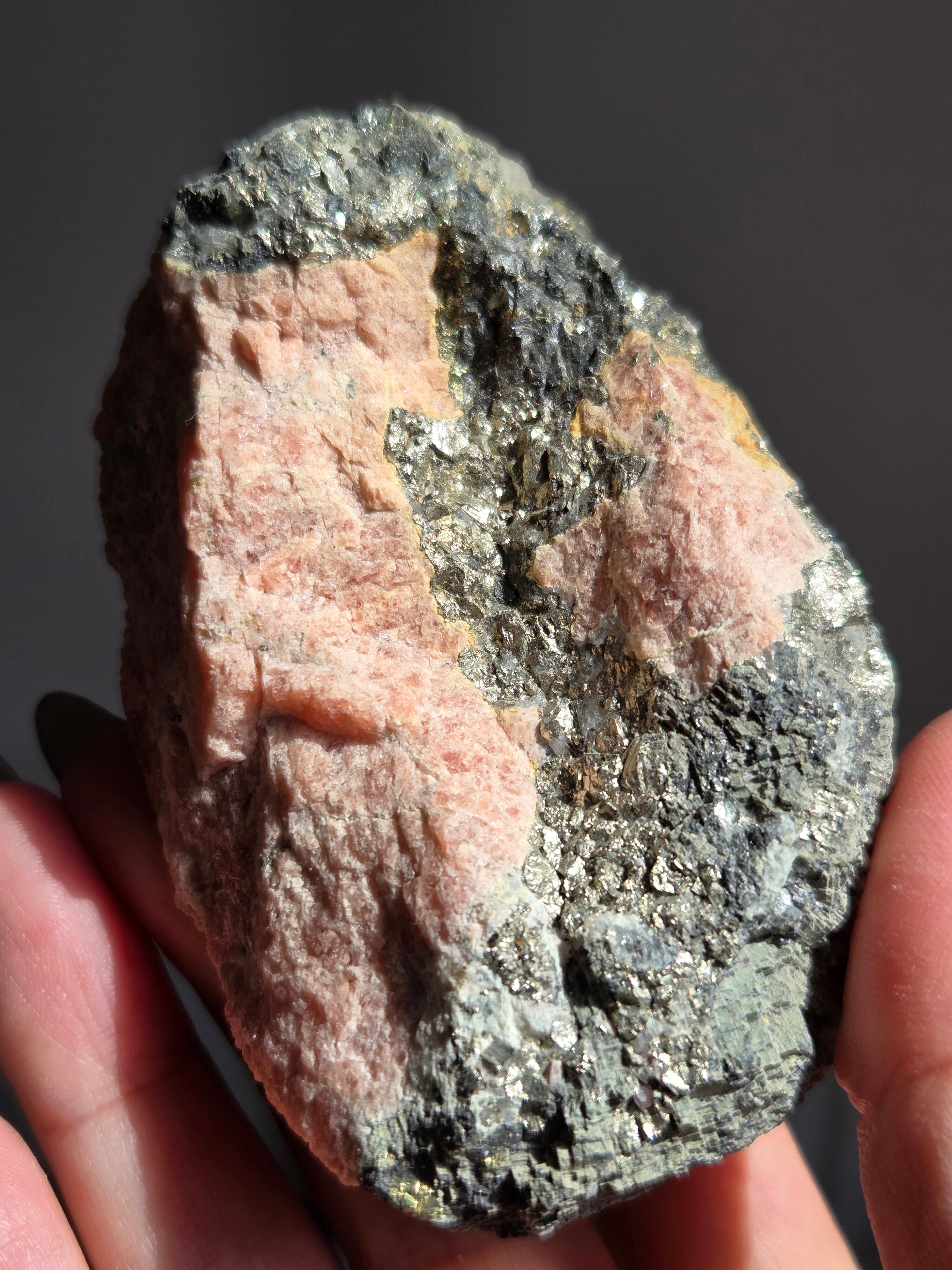 インカローズ(ロードクロサイト)×パイライト共生原石