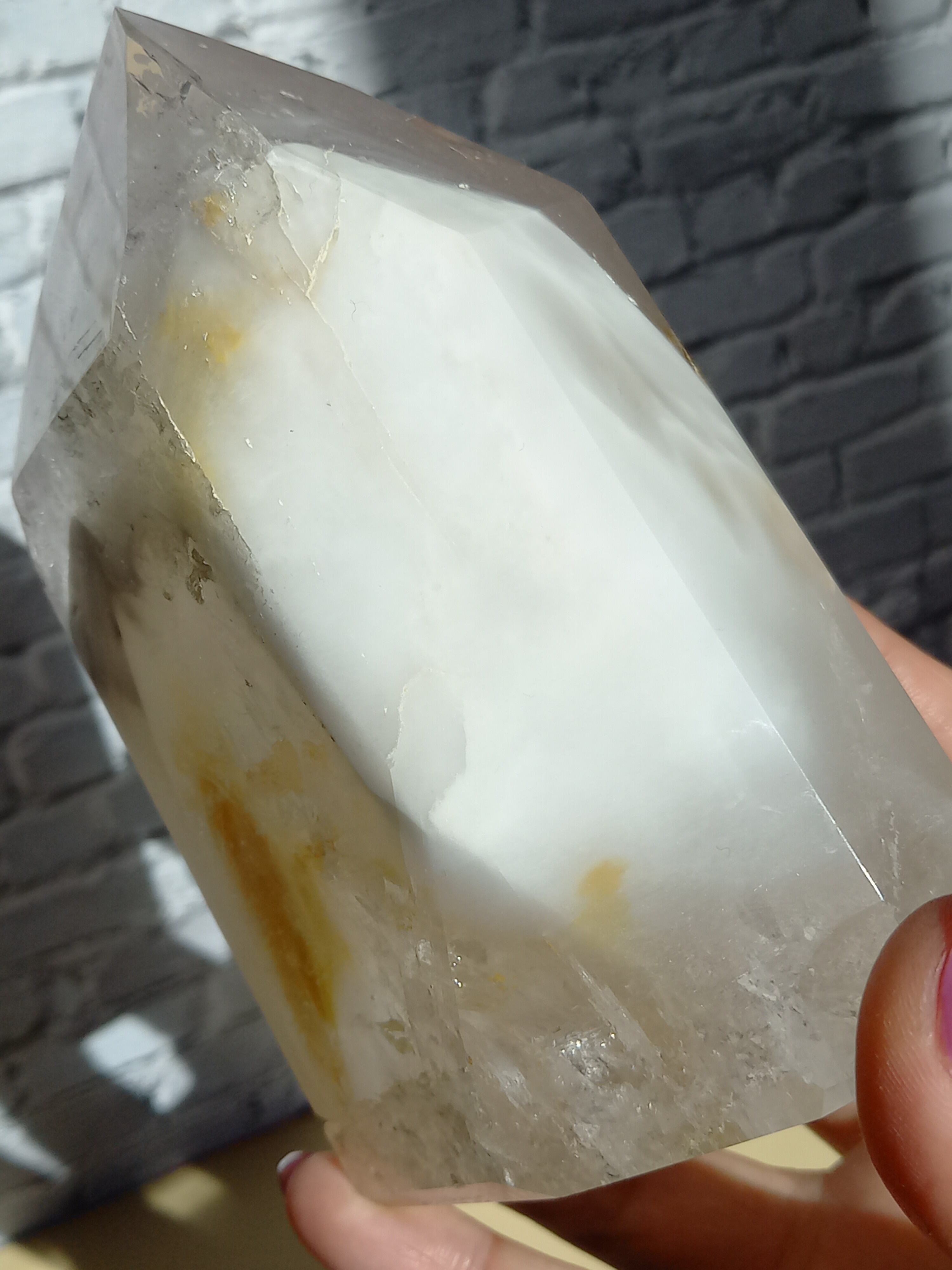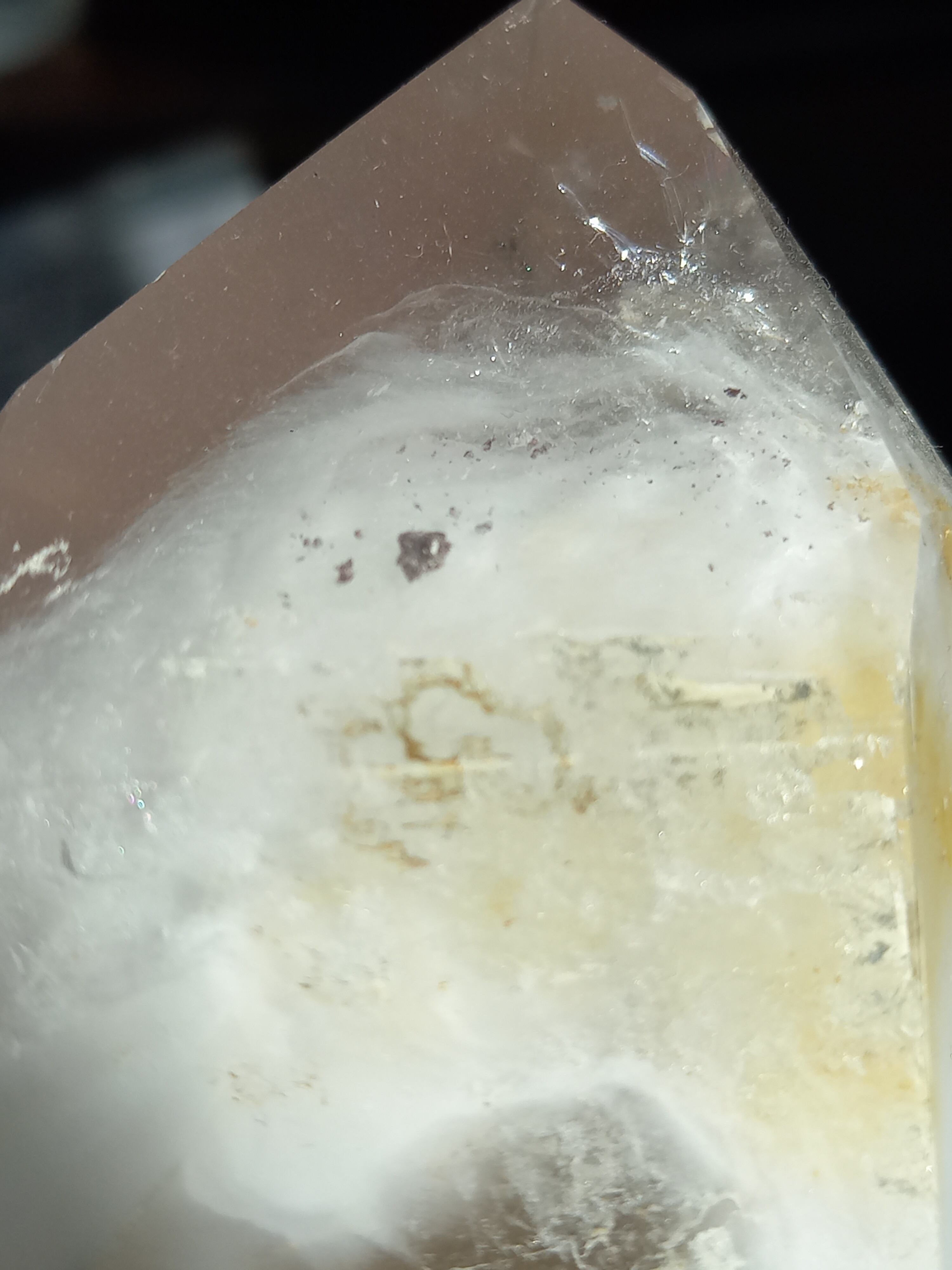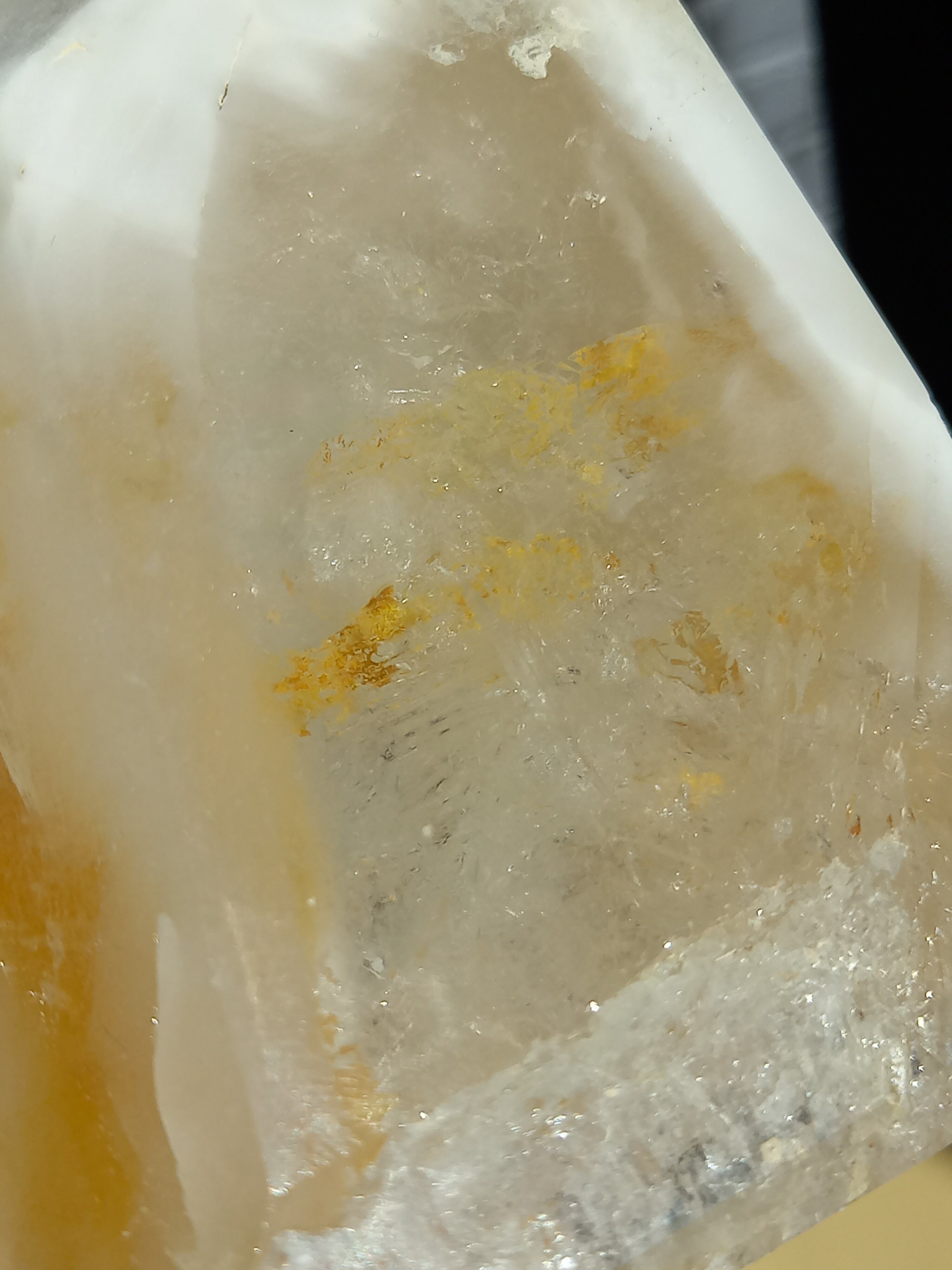 渦巻いたような模様や、フワフワした部分や、透明感あるクォーツから見えるライモナイト等など見どころたっぷりのビックタワーです。存在感も抜群です。