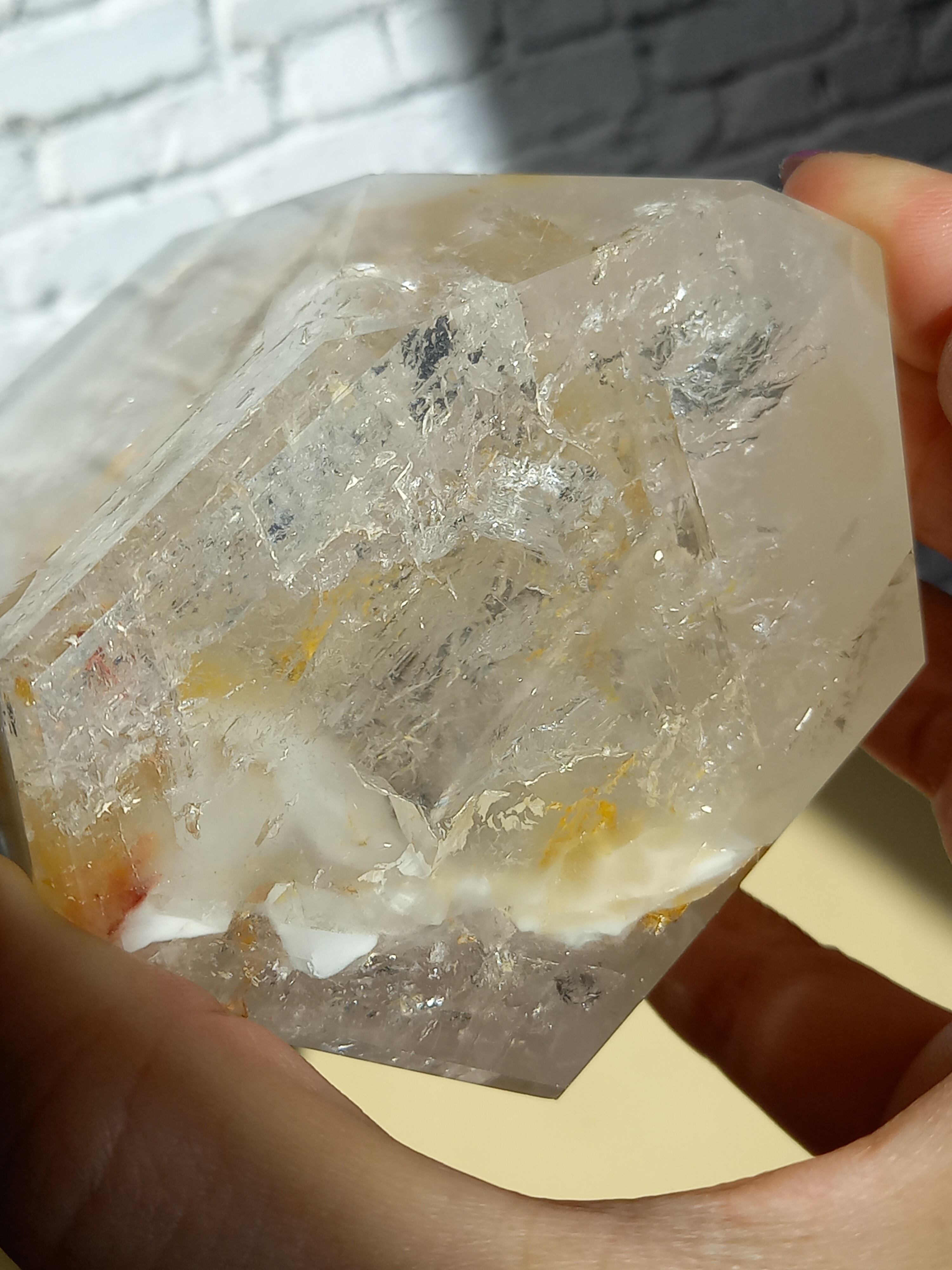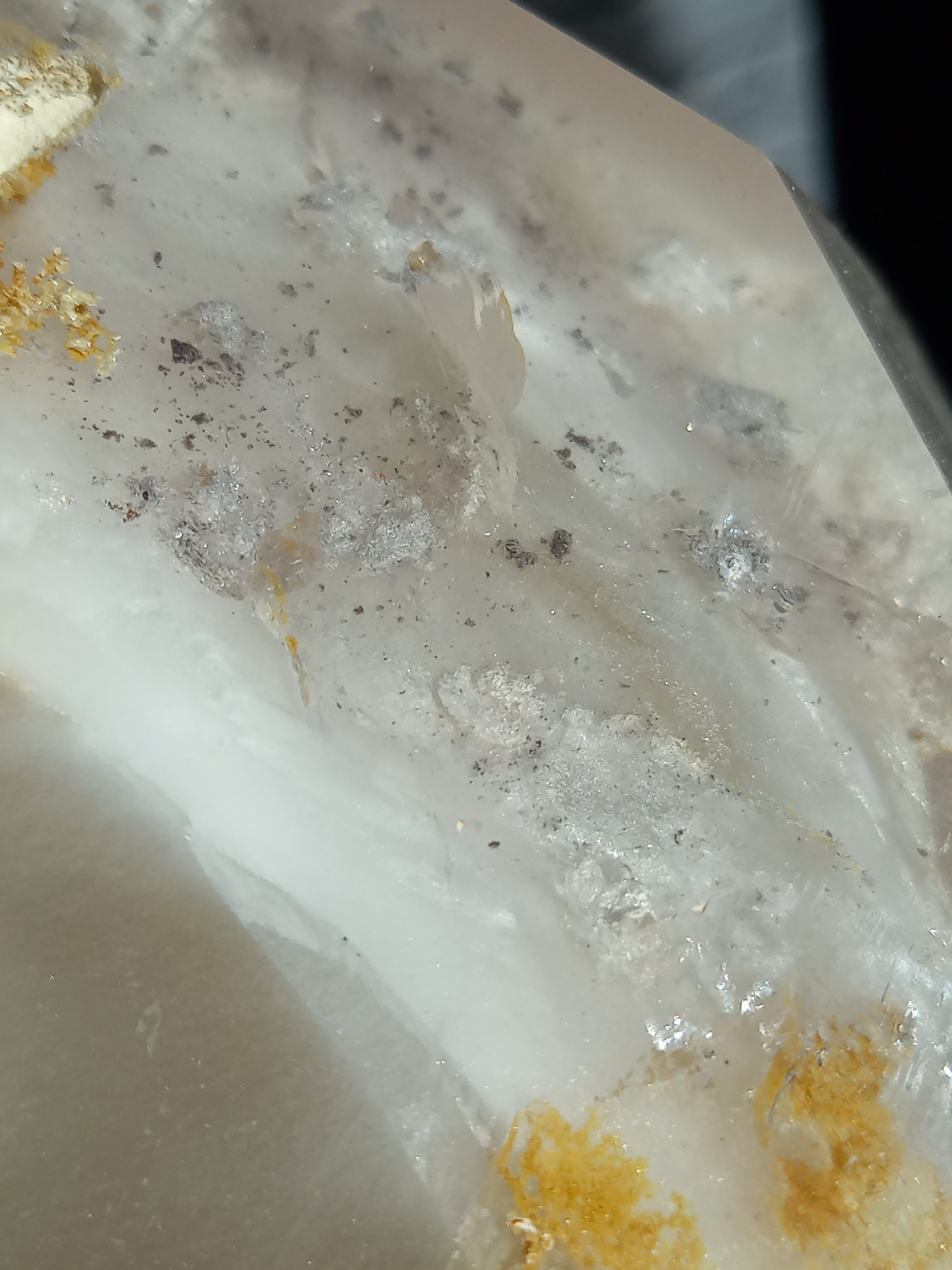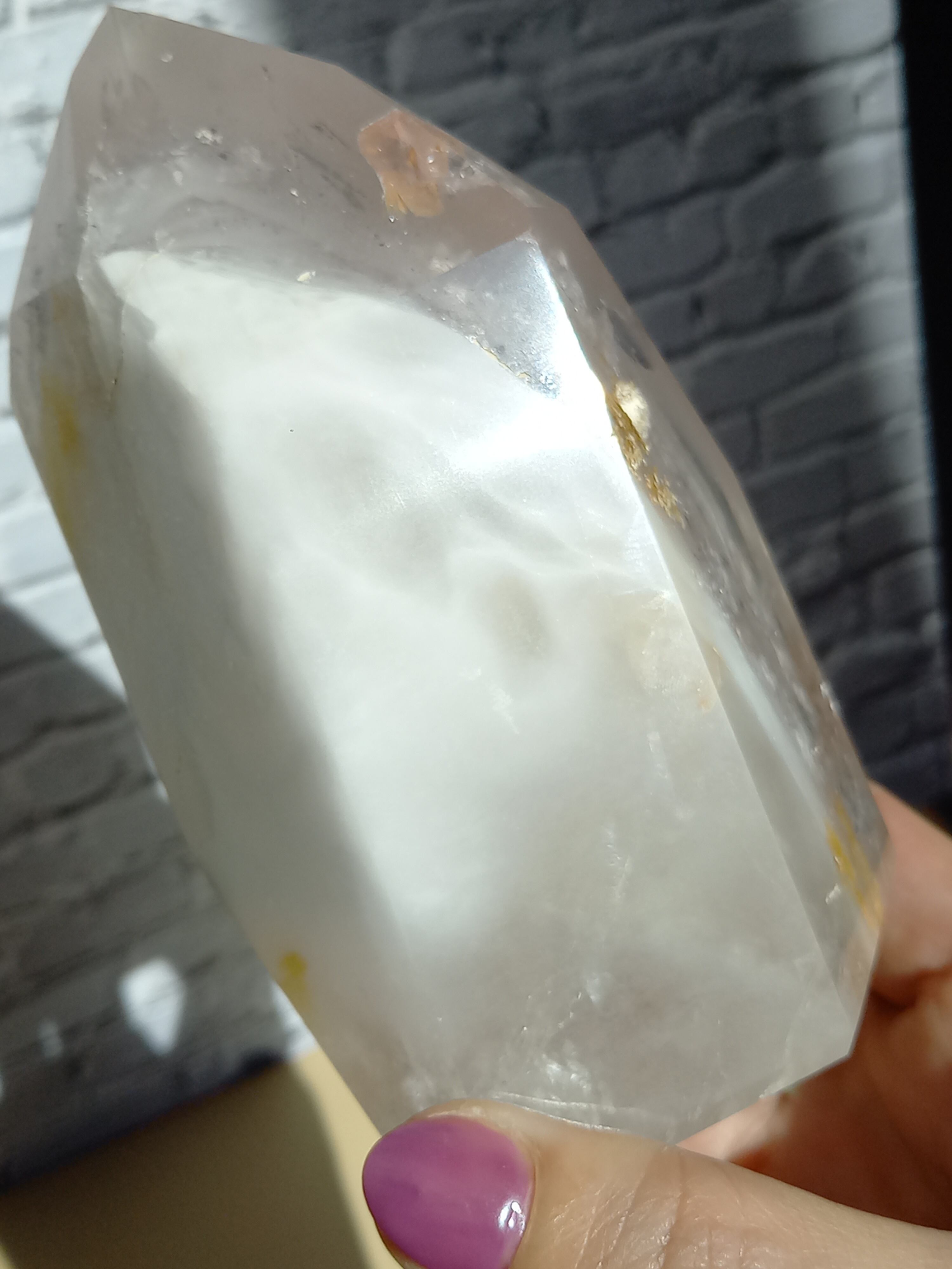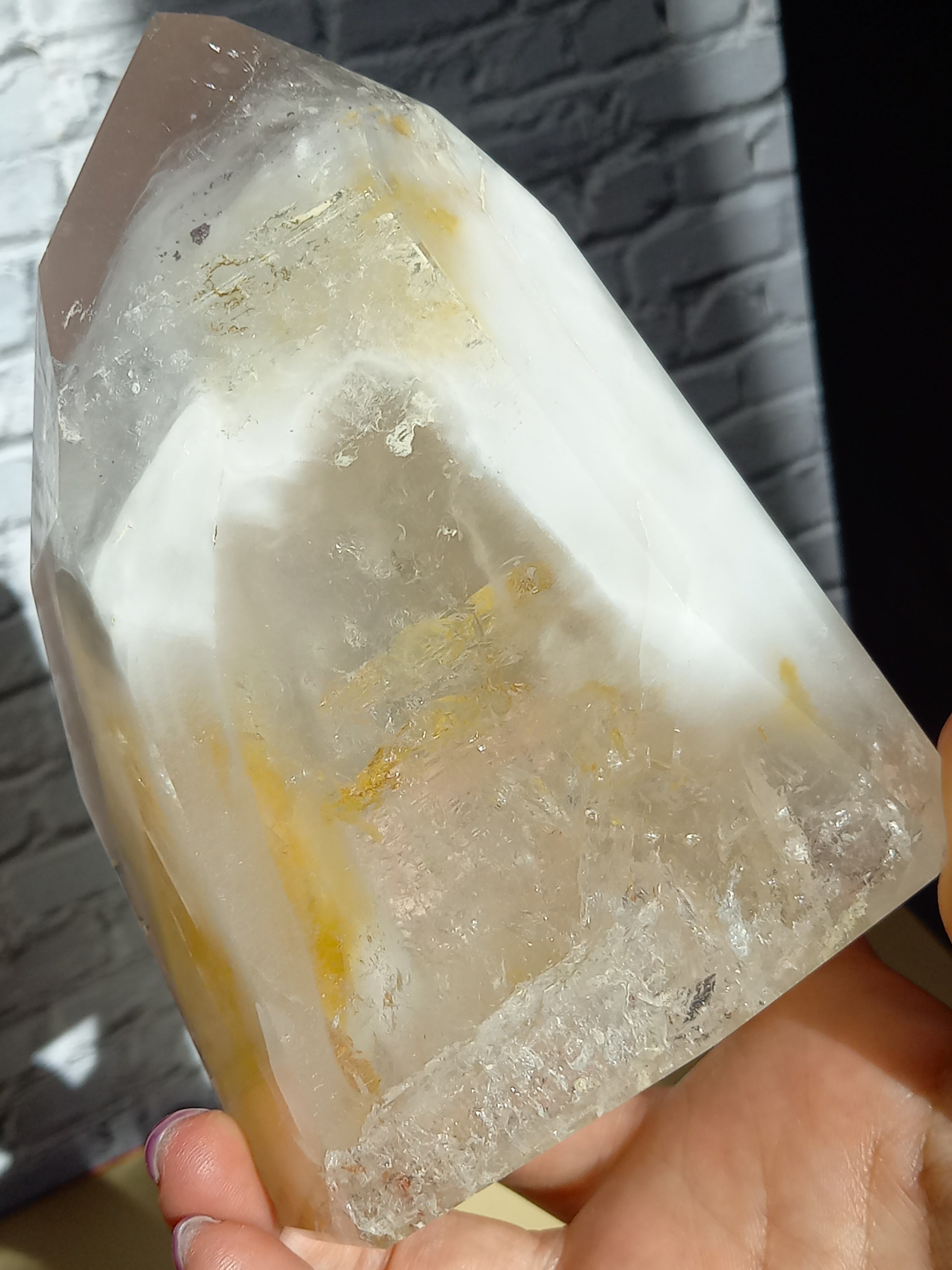 渦巻いたような模様や、フワフワした部分や、透明感あるクォーツから見えるライモナイト等など見どころたっぷりのビックタワーです。存在感も抜群です。