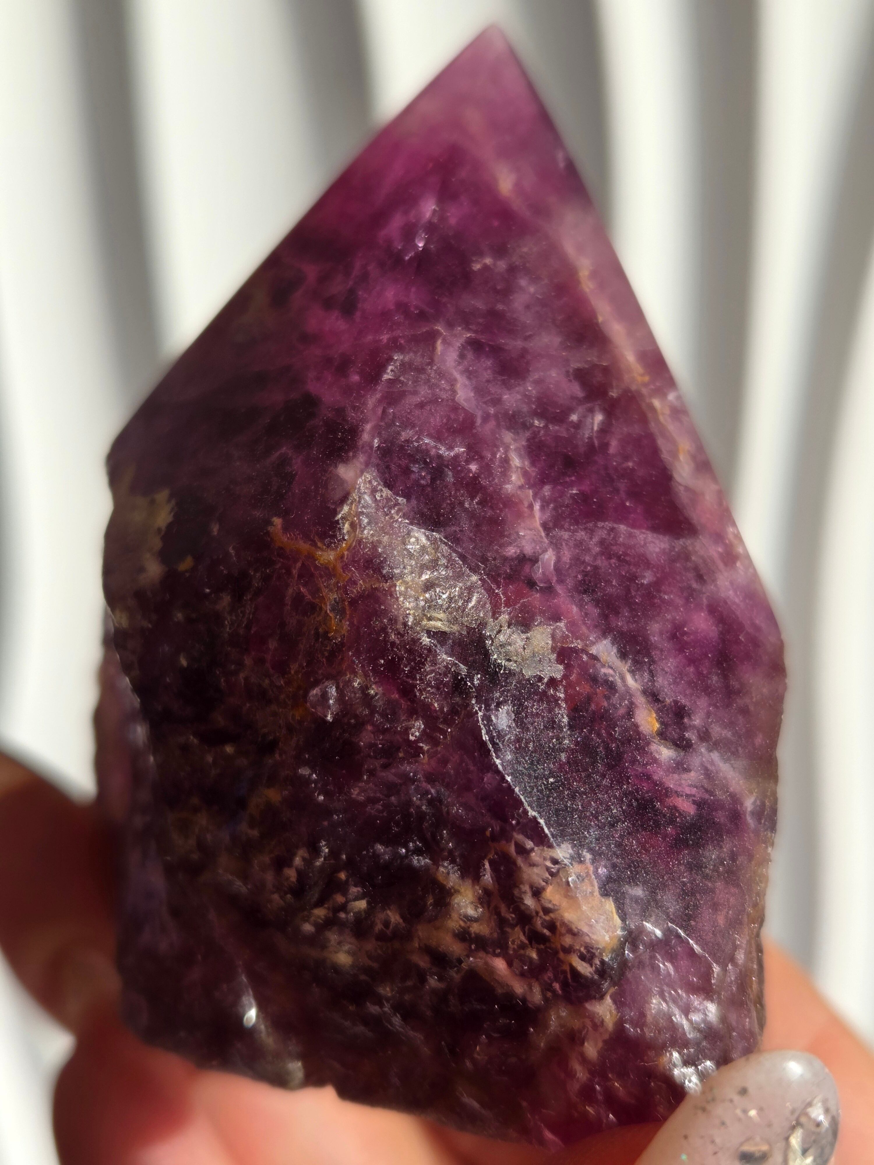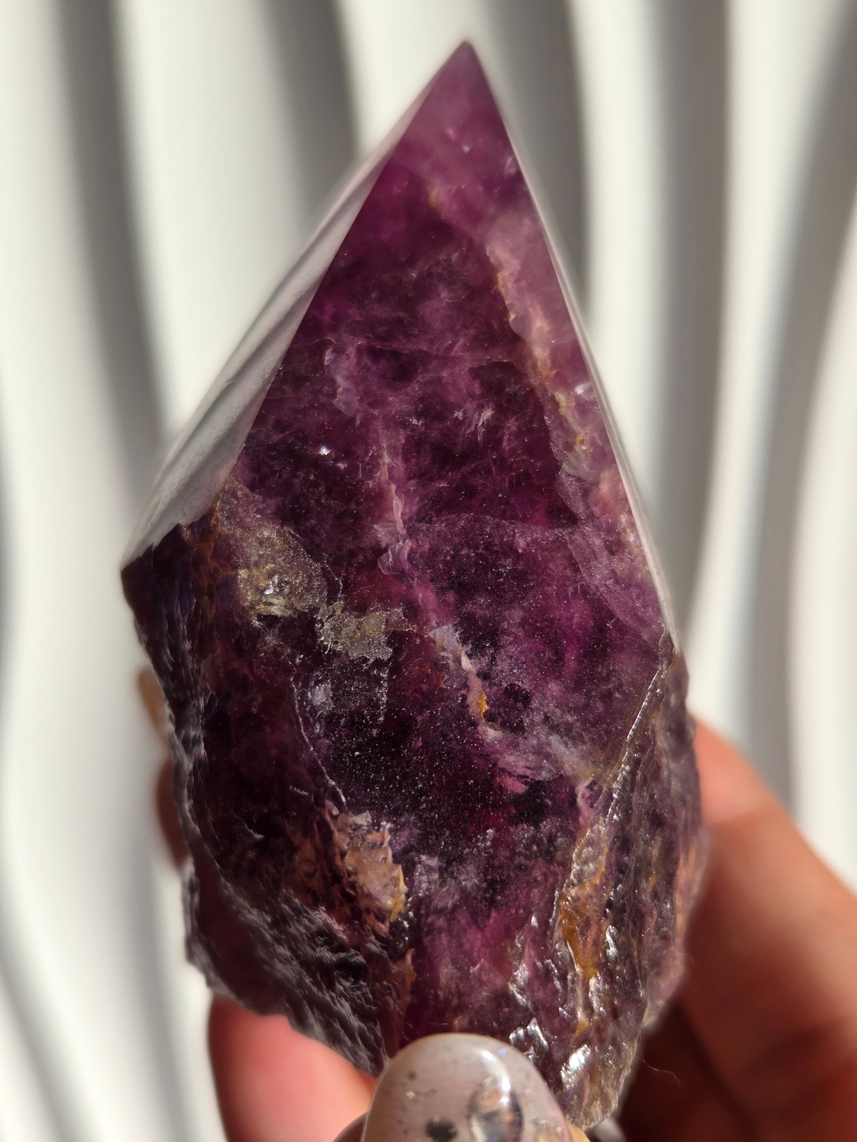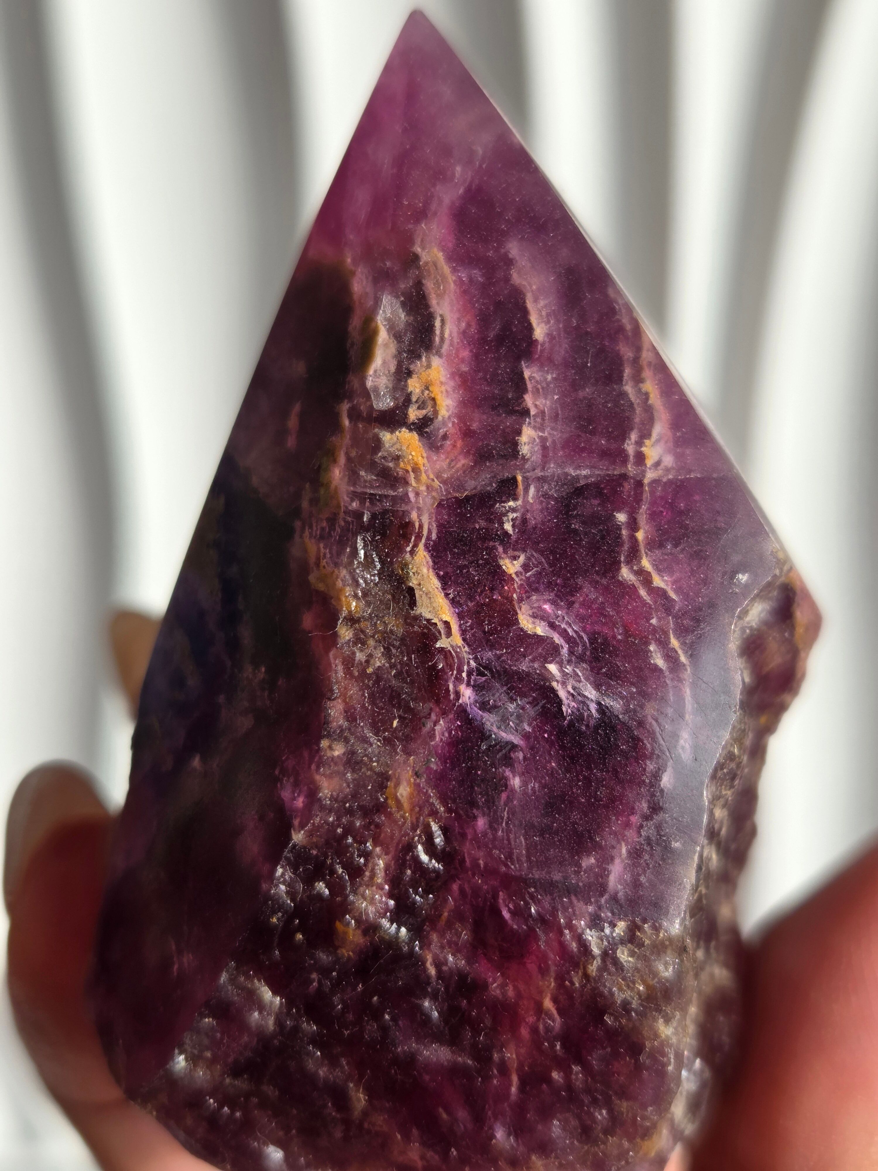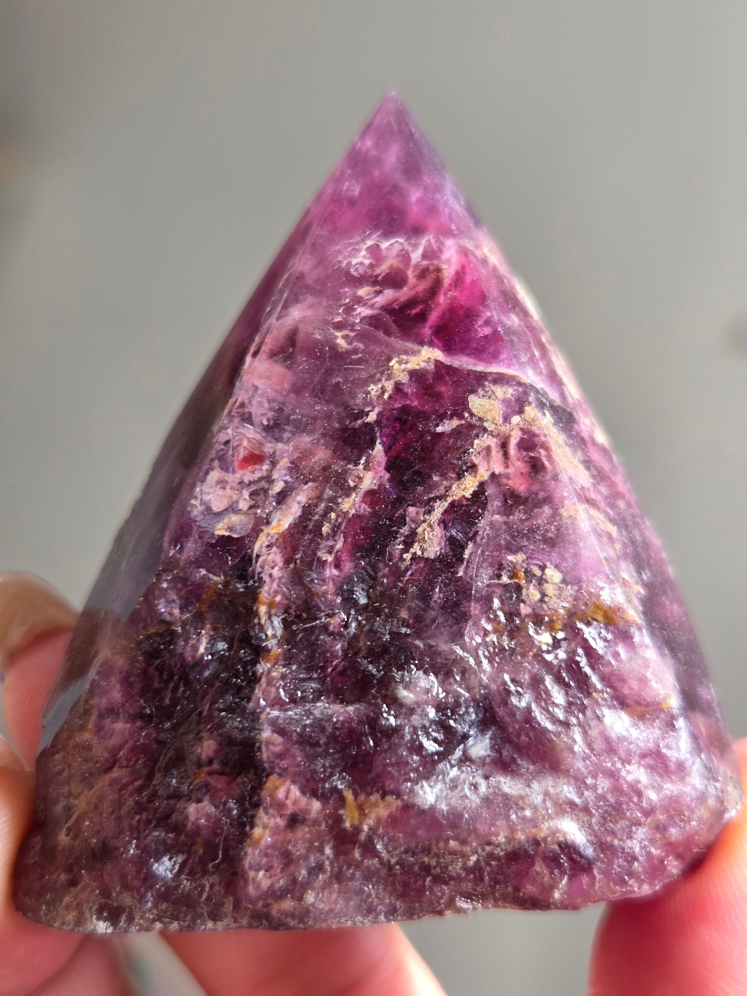 フローライトの原石をダイヤ形にカットしてます。上部はポリッシュし、下の方はナチュラルです。