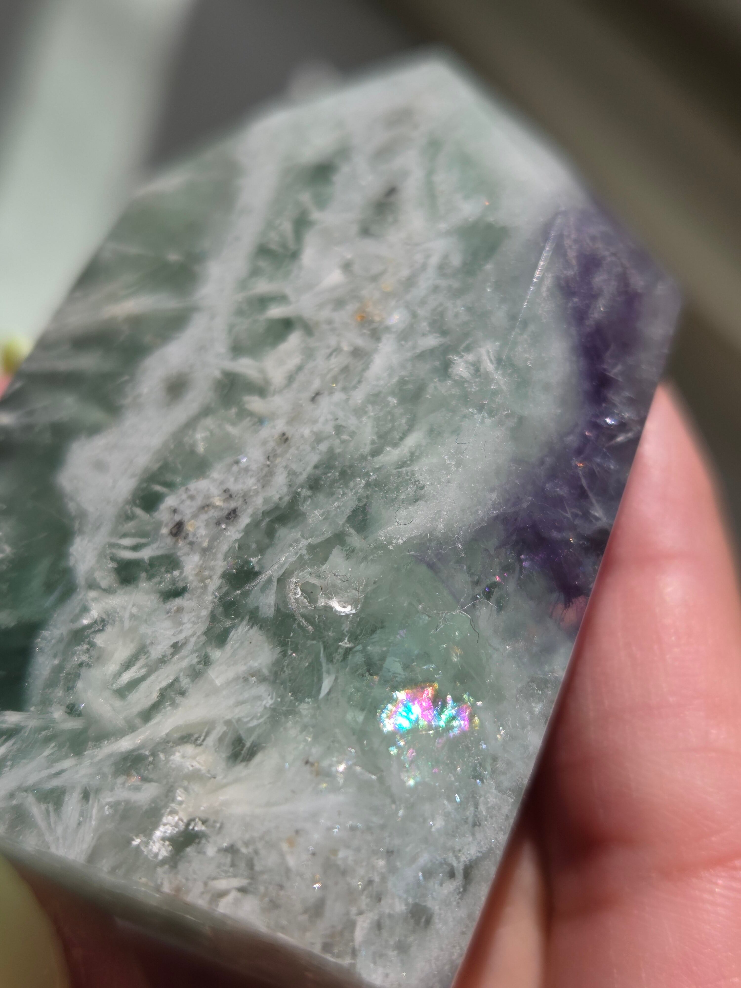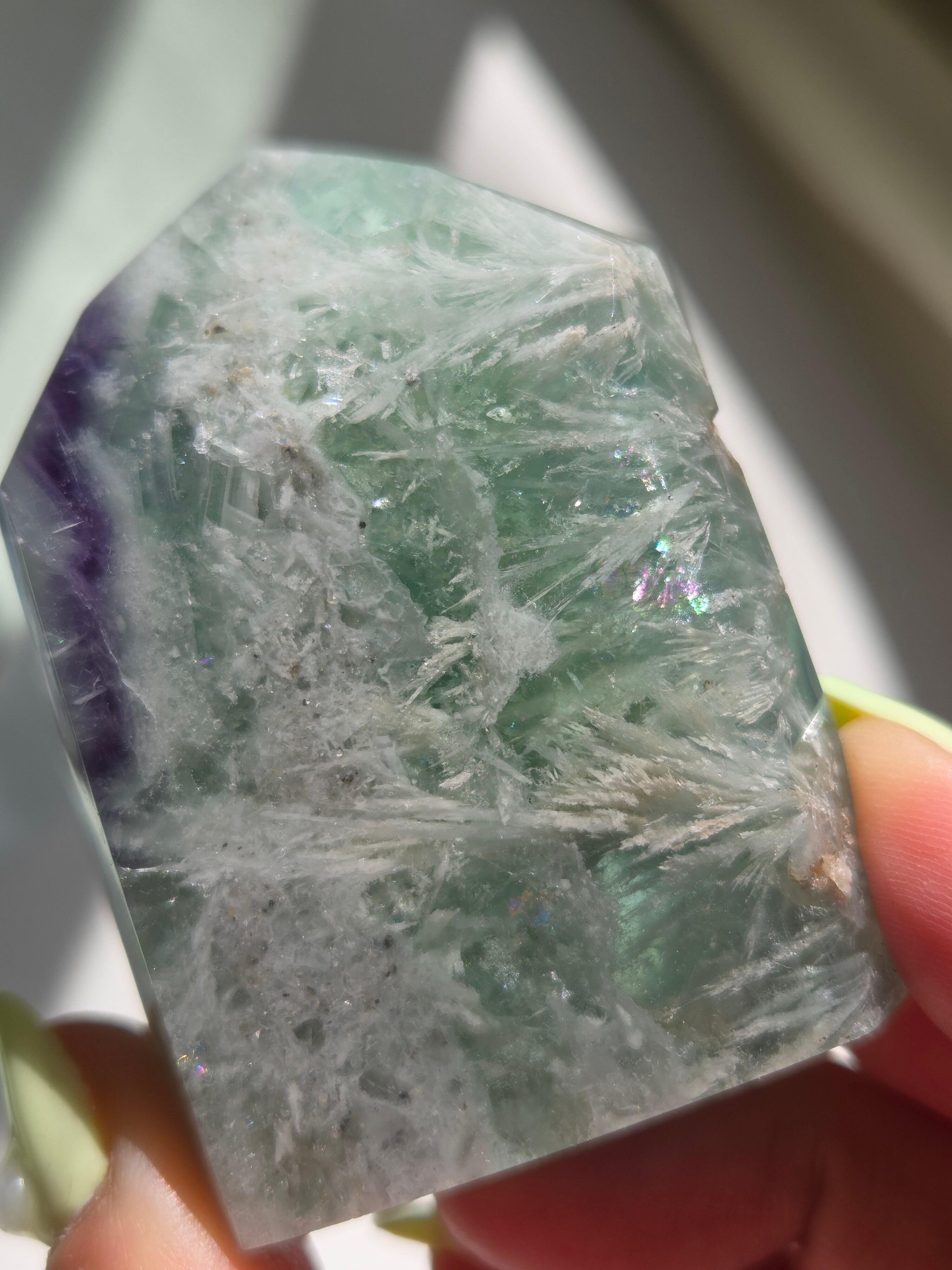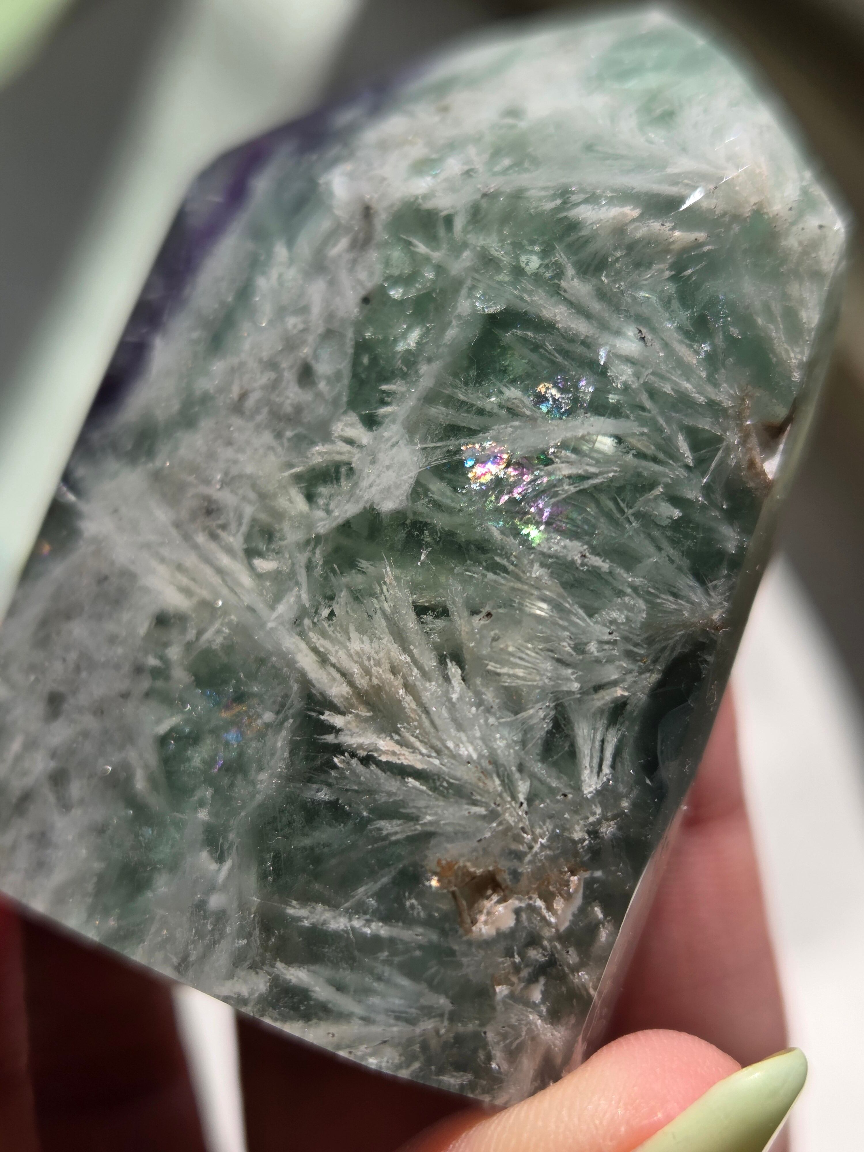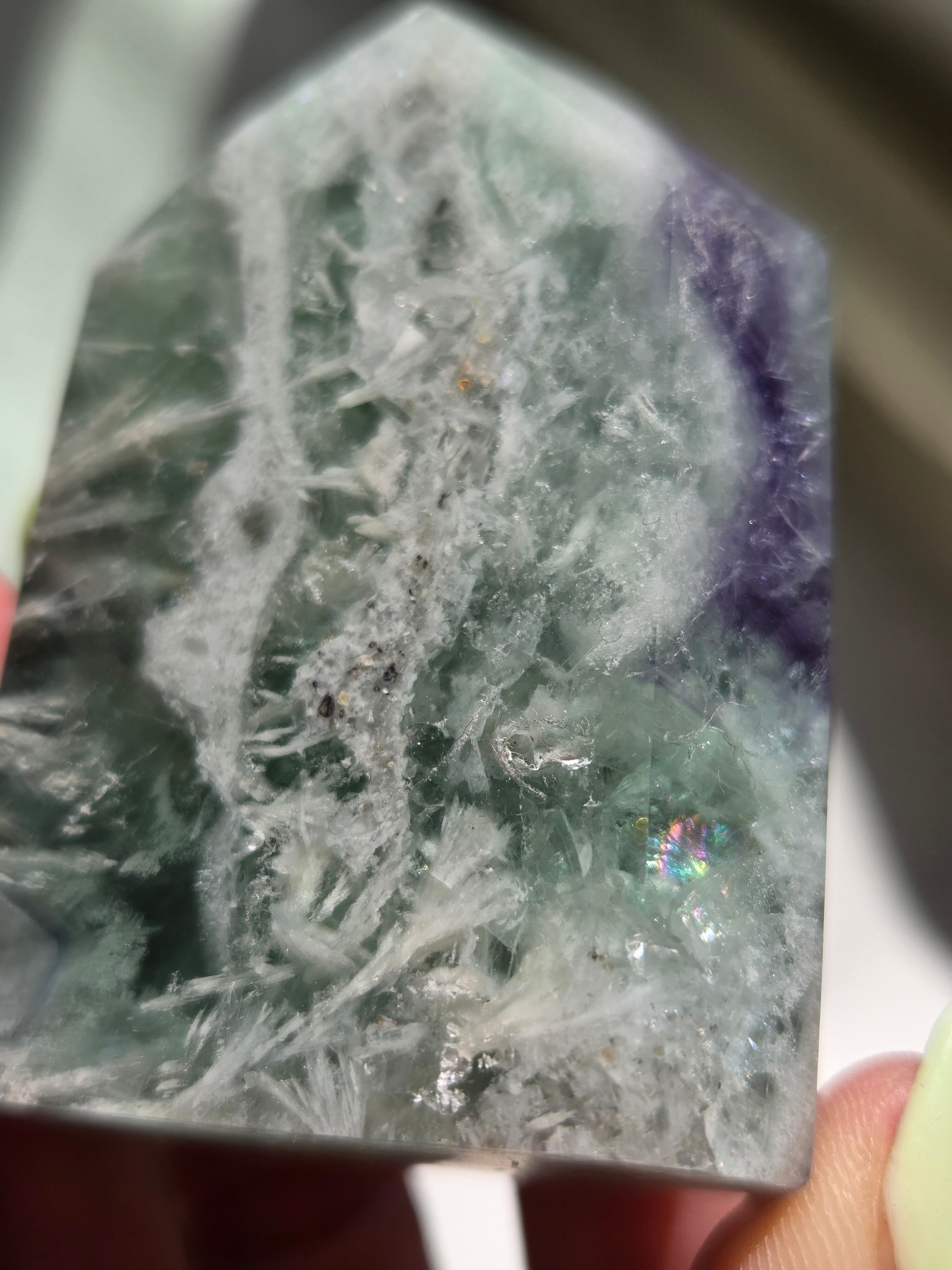 所々見える虹の煌めきと、バライトのフェザーがなんとも可愛いです。