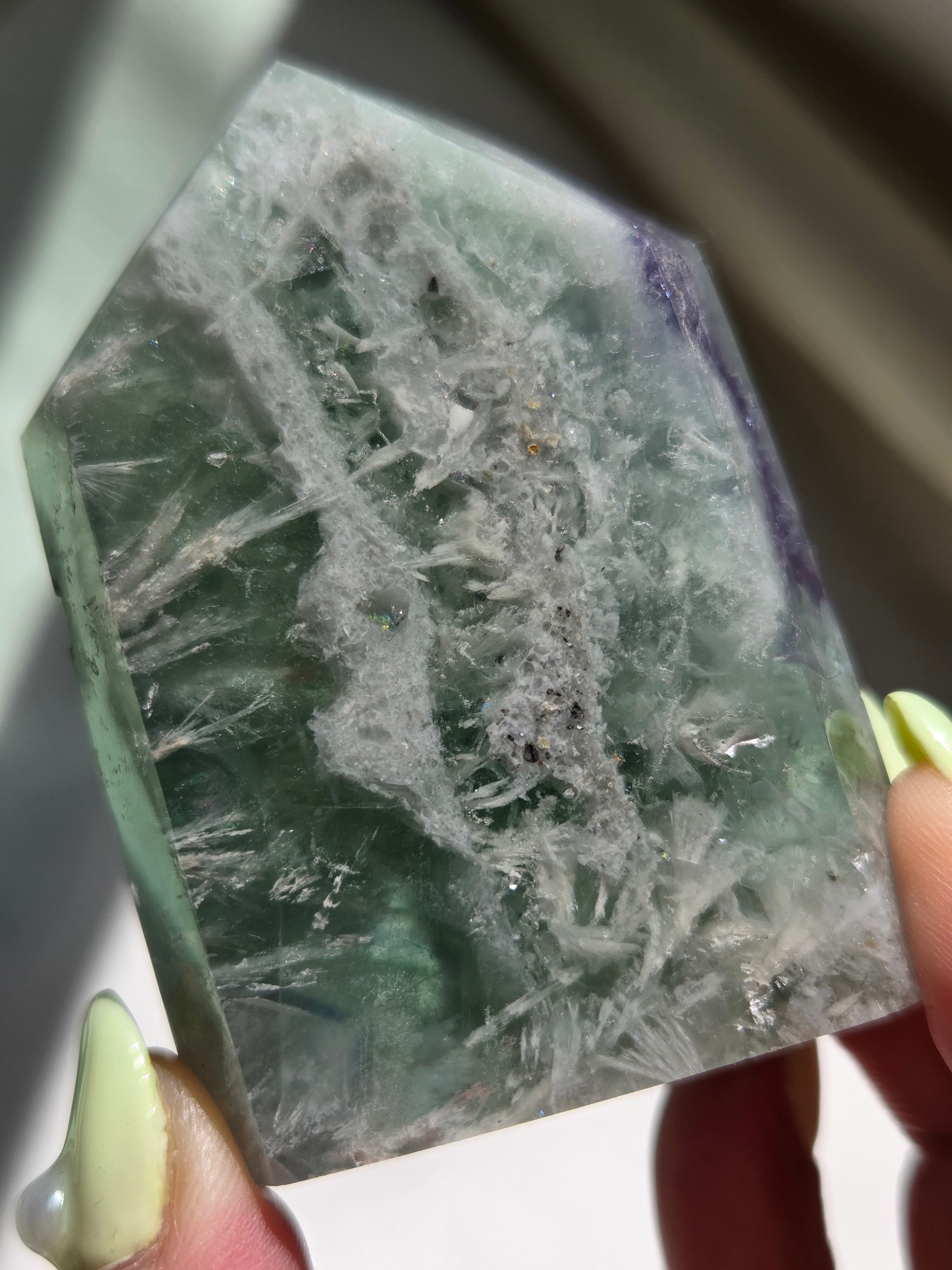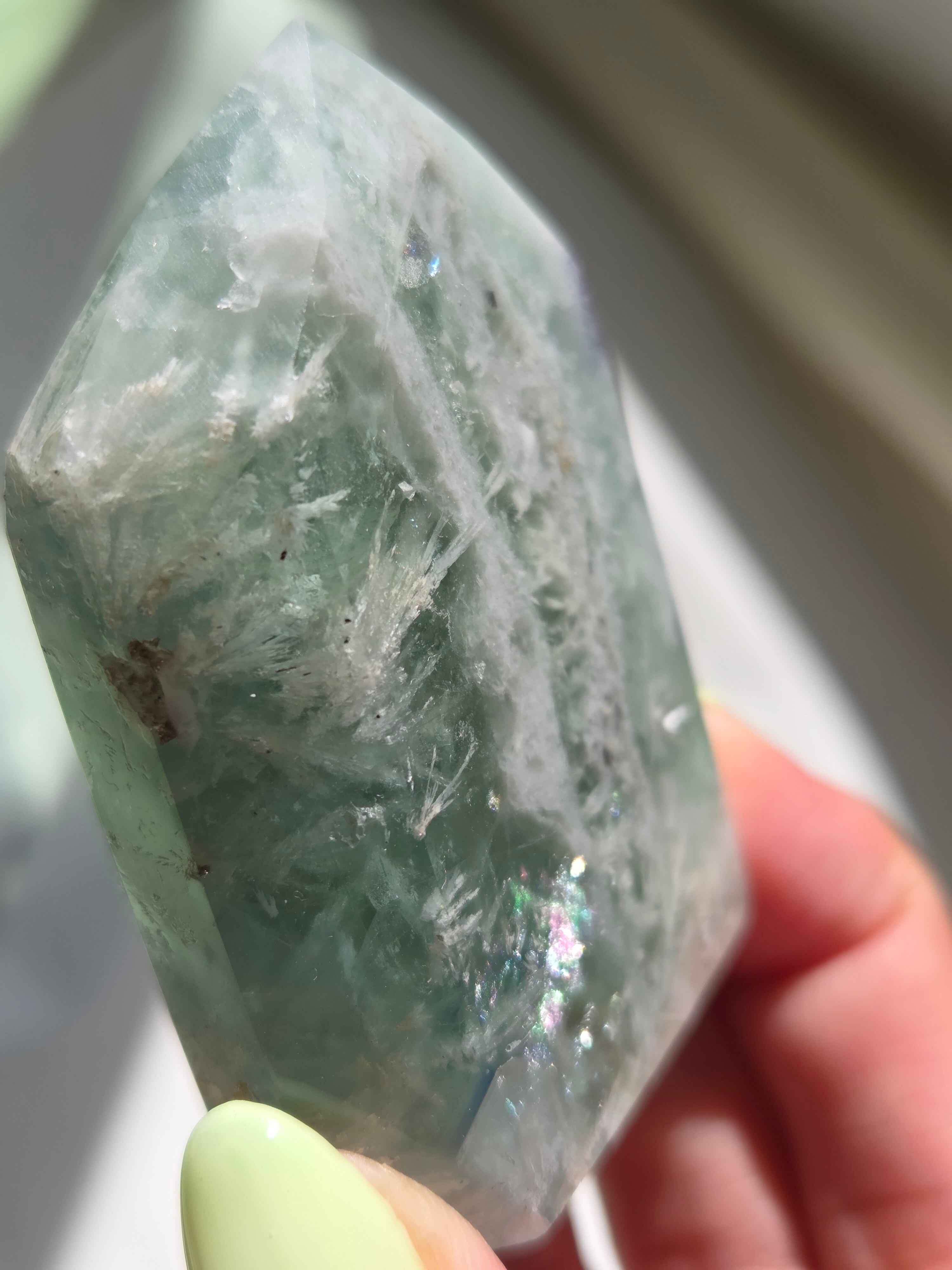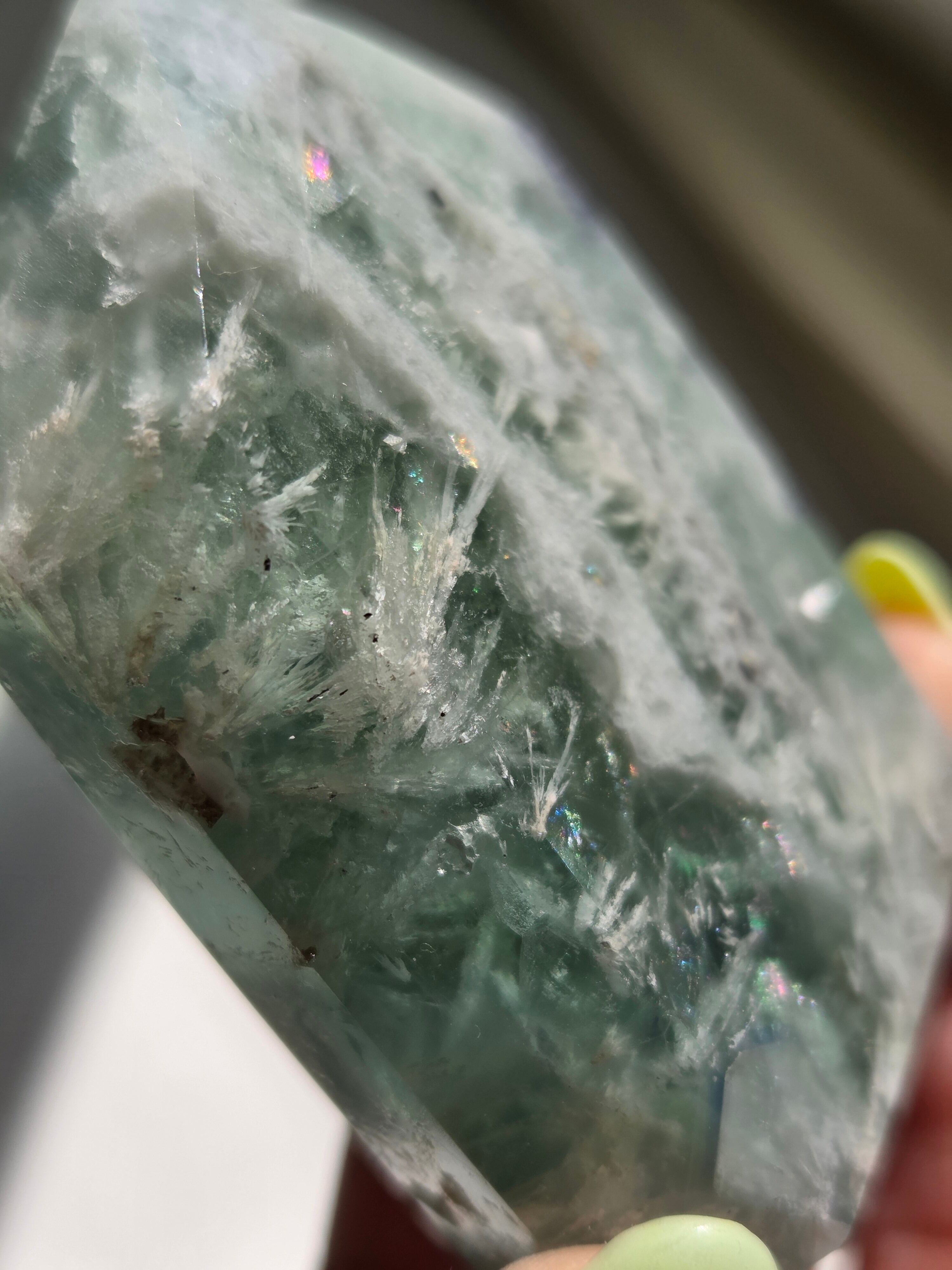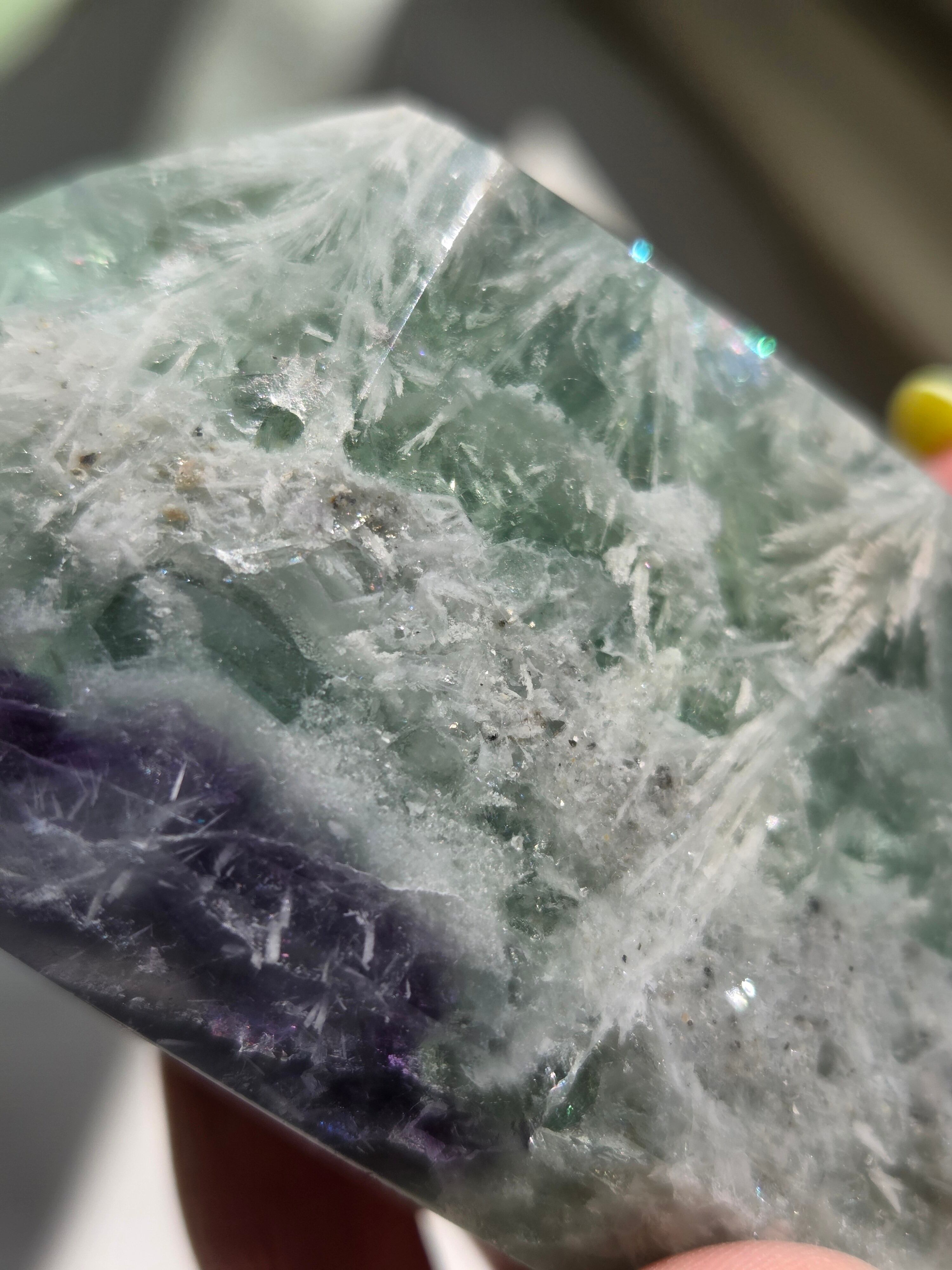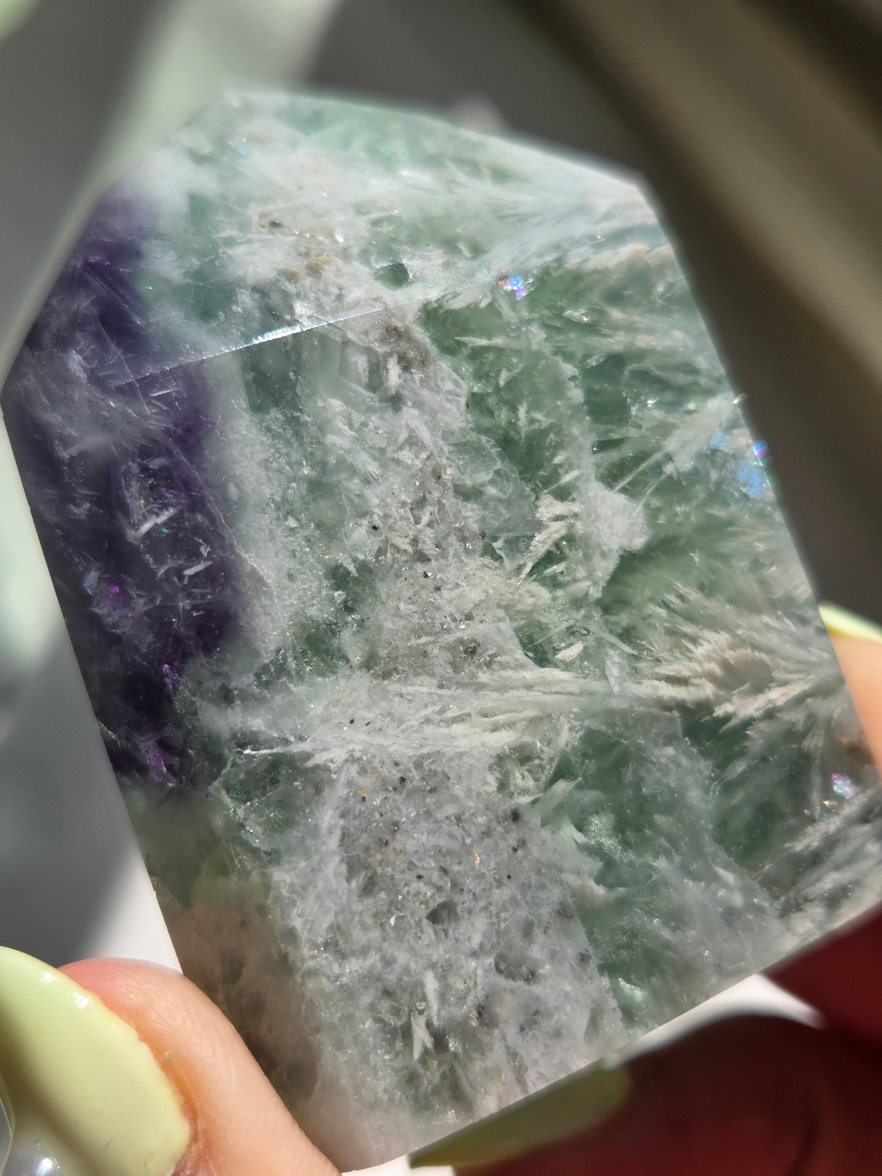 所々見える虹の煌めきと、バライトのフェザーがなんとも可愛いです。