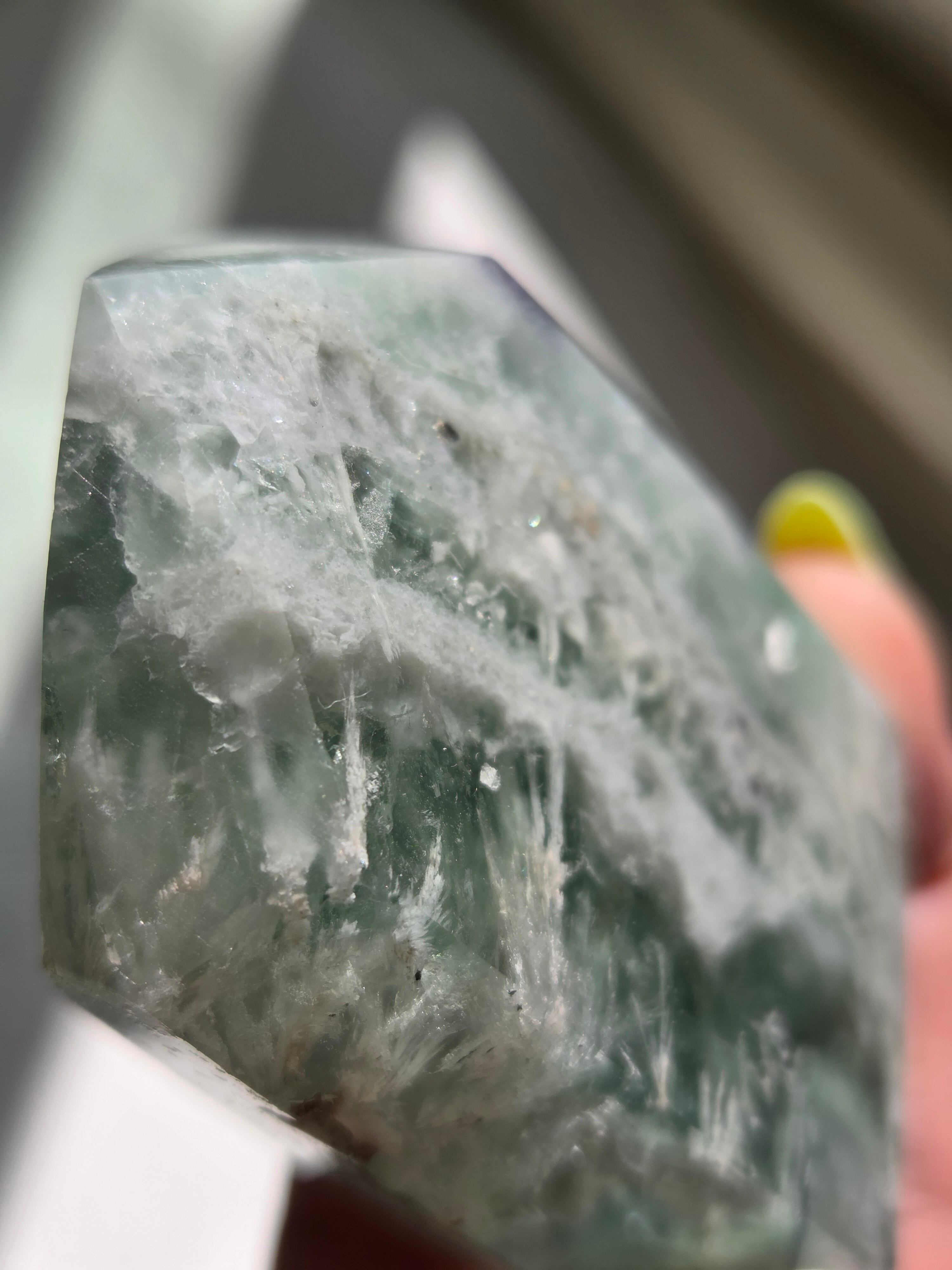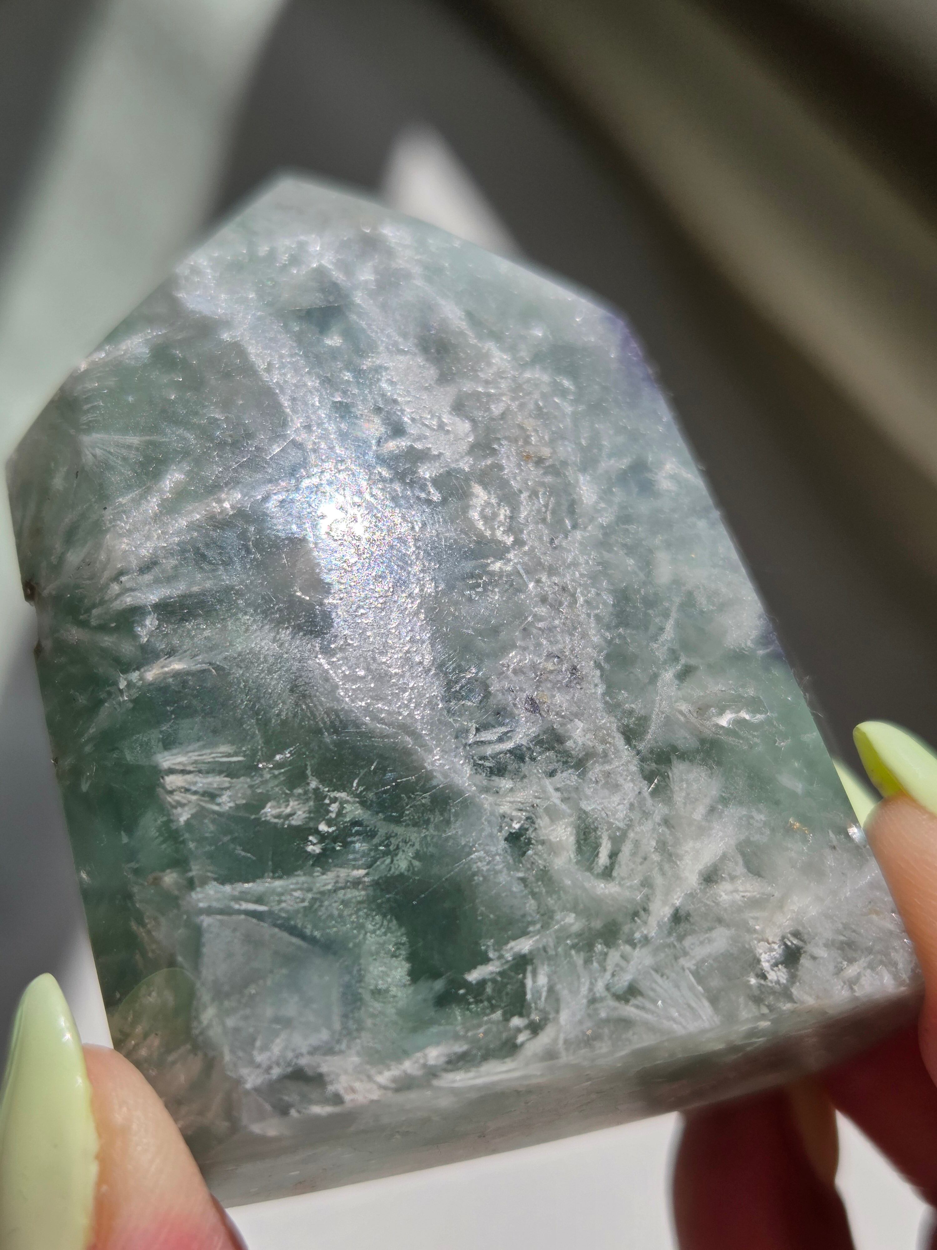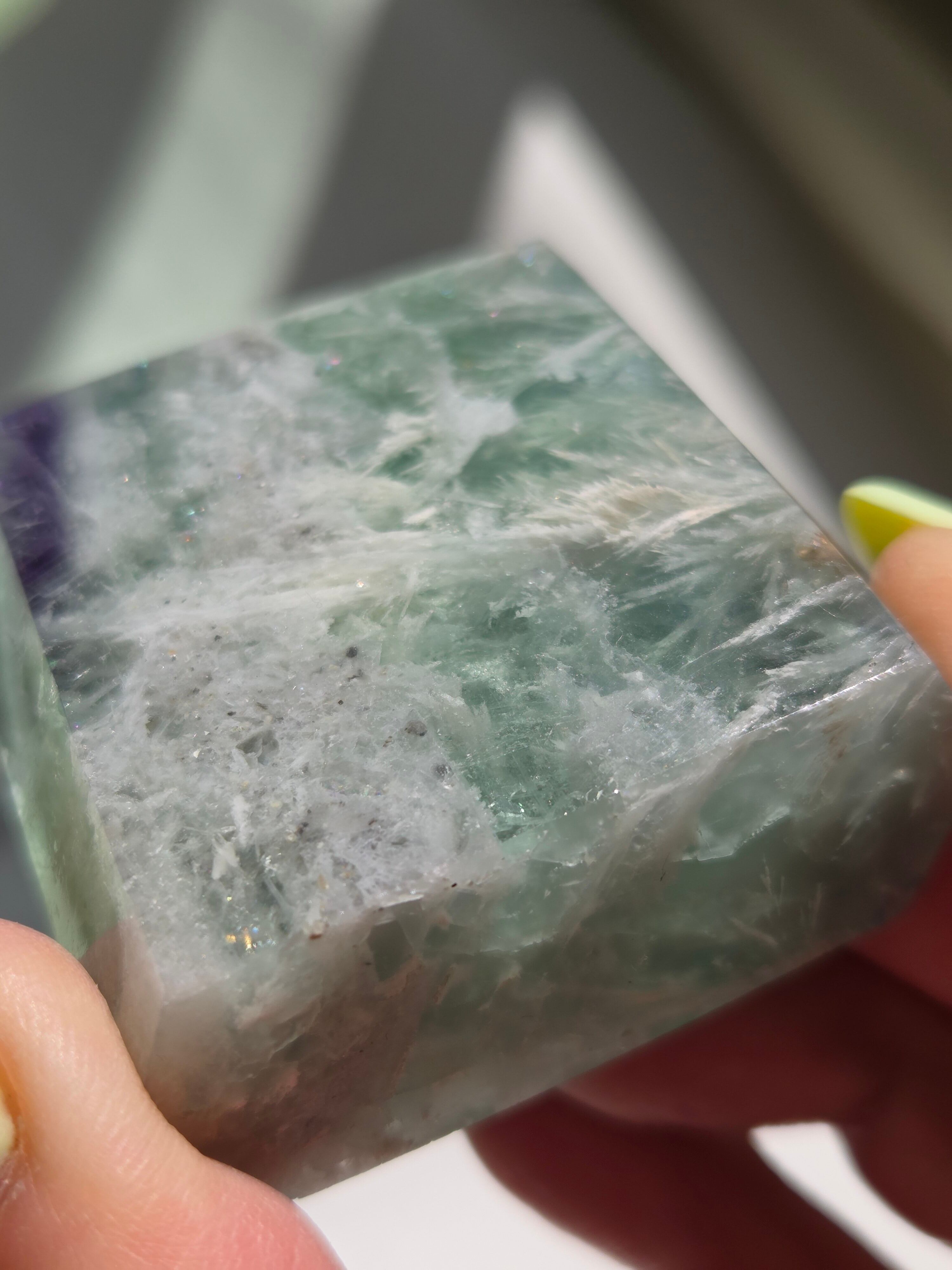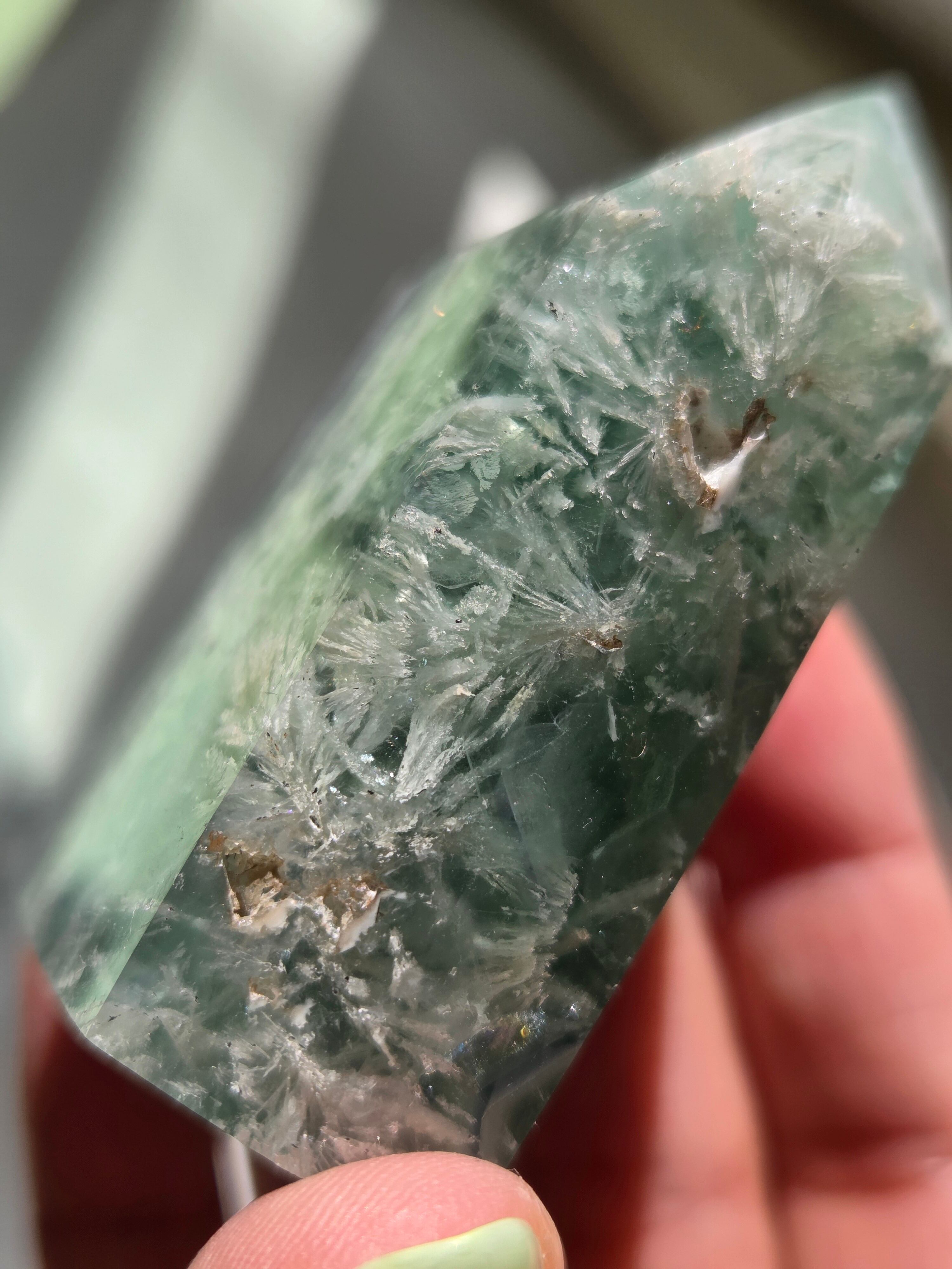 所々見える虹の煌めきと、バライトのフェザーがなんとも可愛いです。
