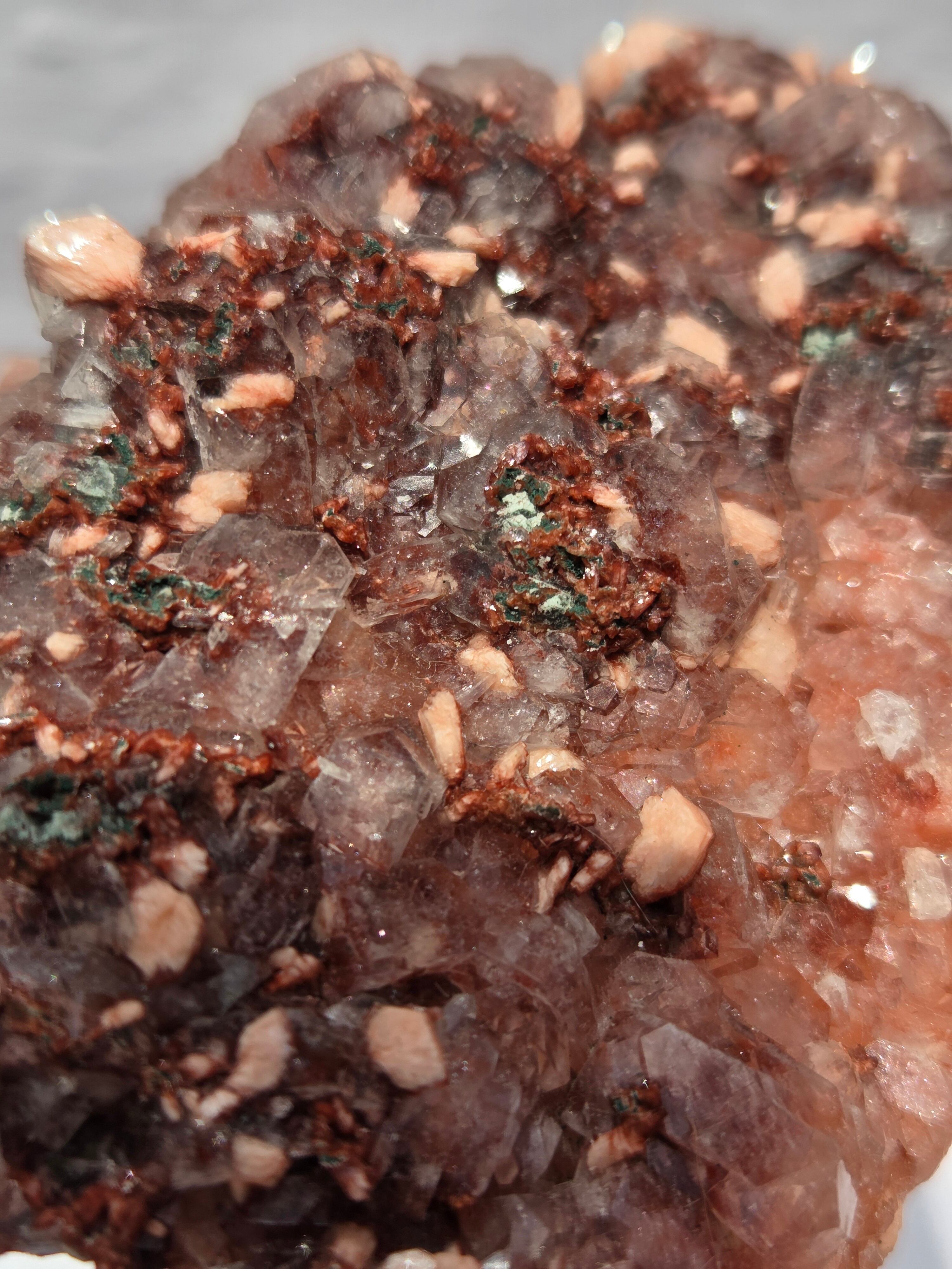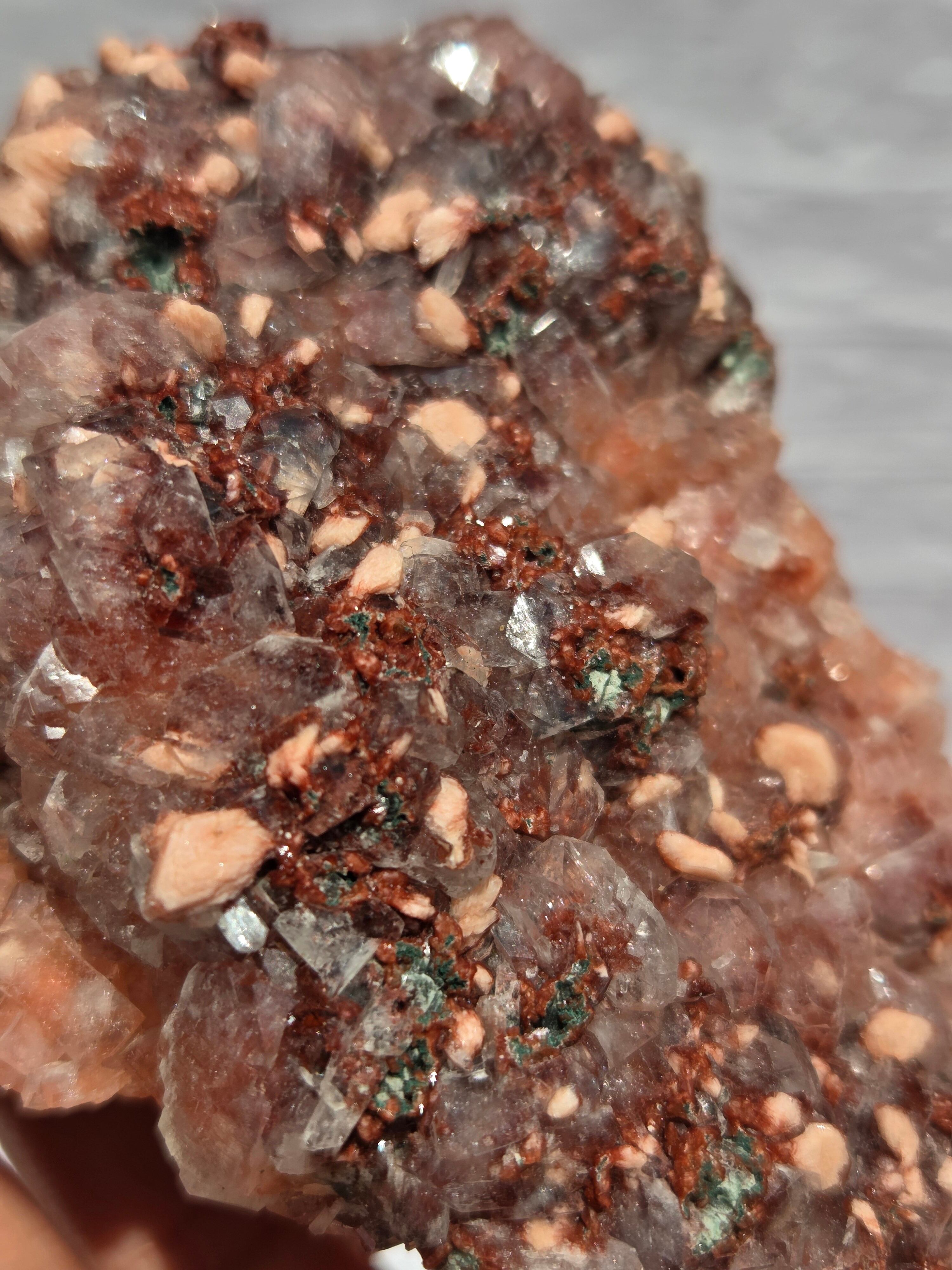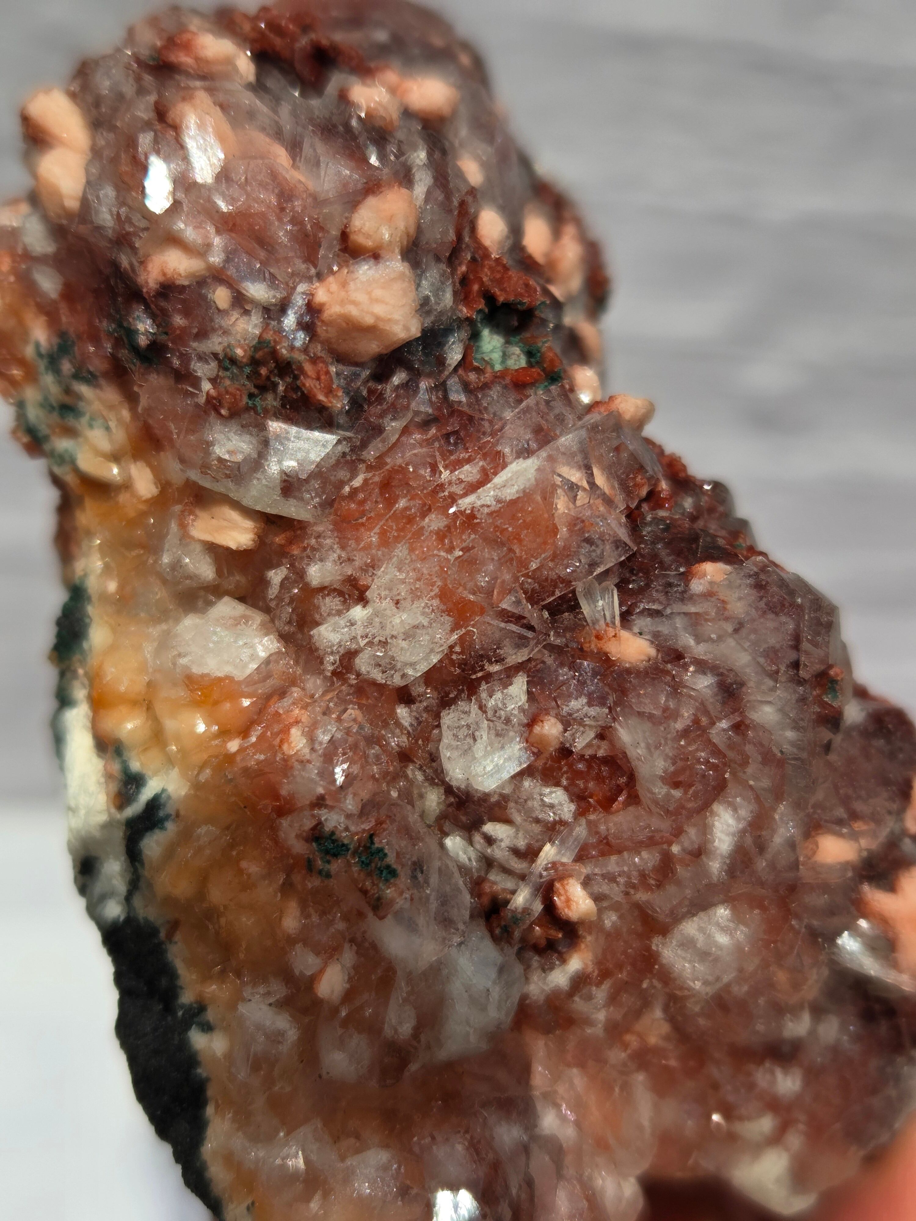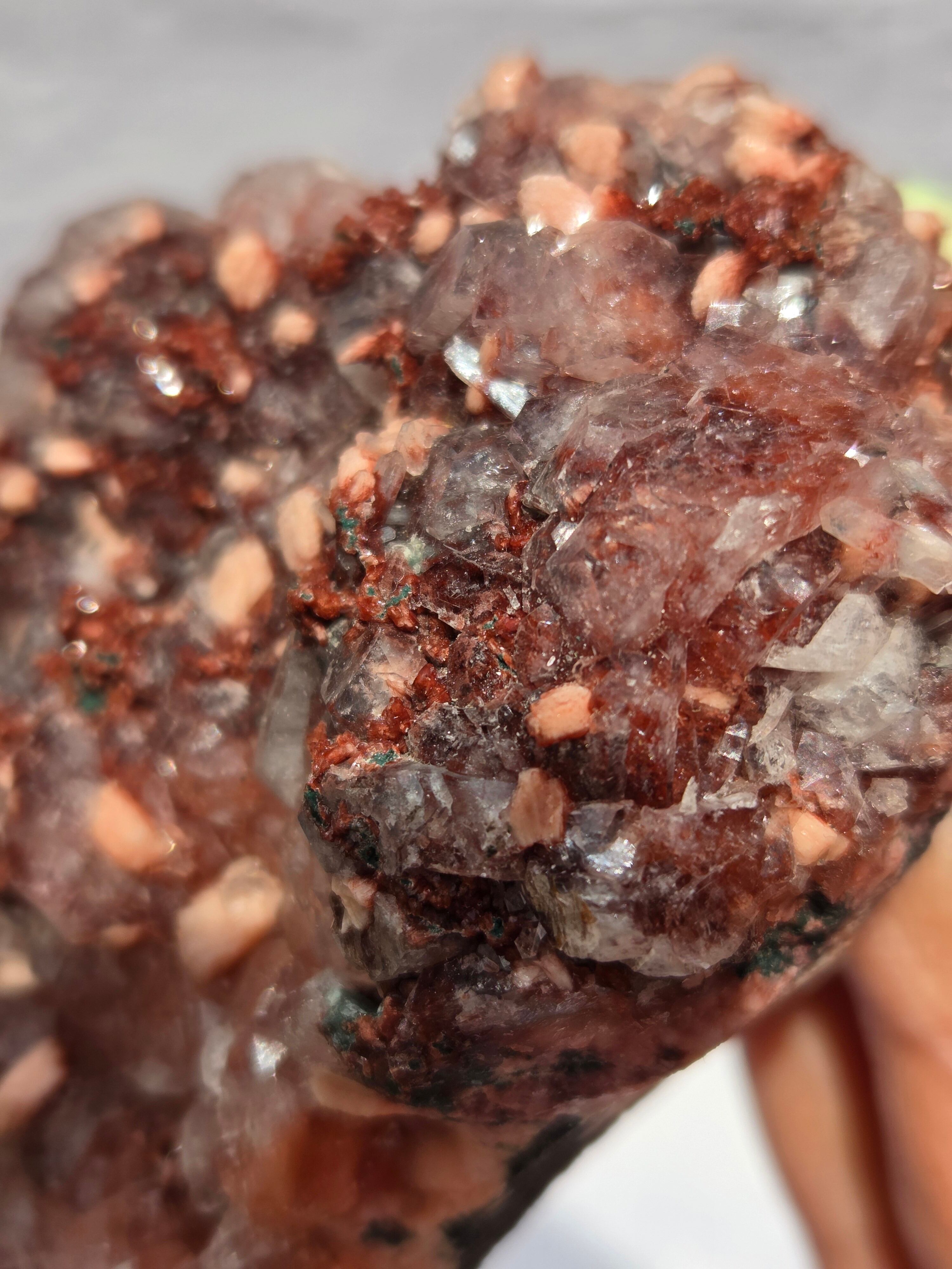 通常は、クリアと、グリーンのタイプが多いですが、こちらのレッドアポフィライトは、とても珍しく、発色も良い非常にきれいなレアな一点です。