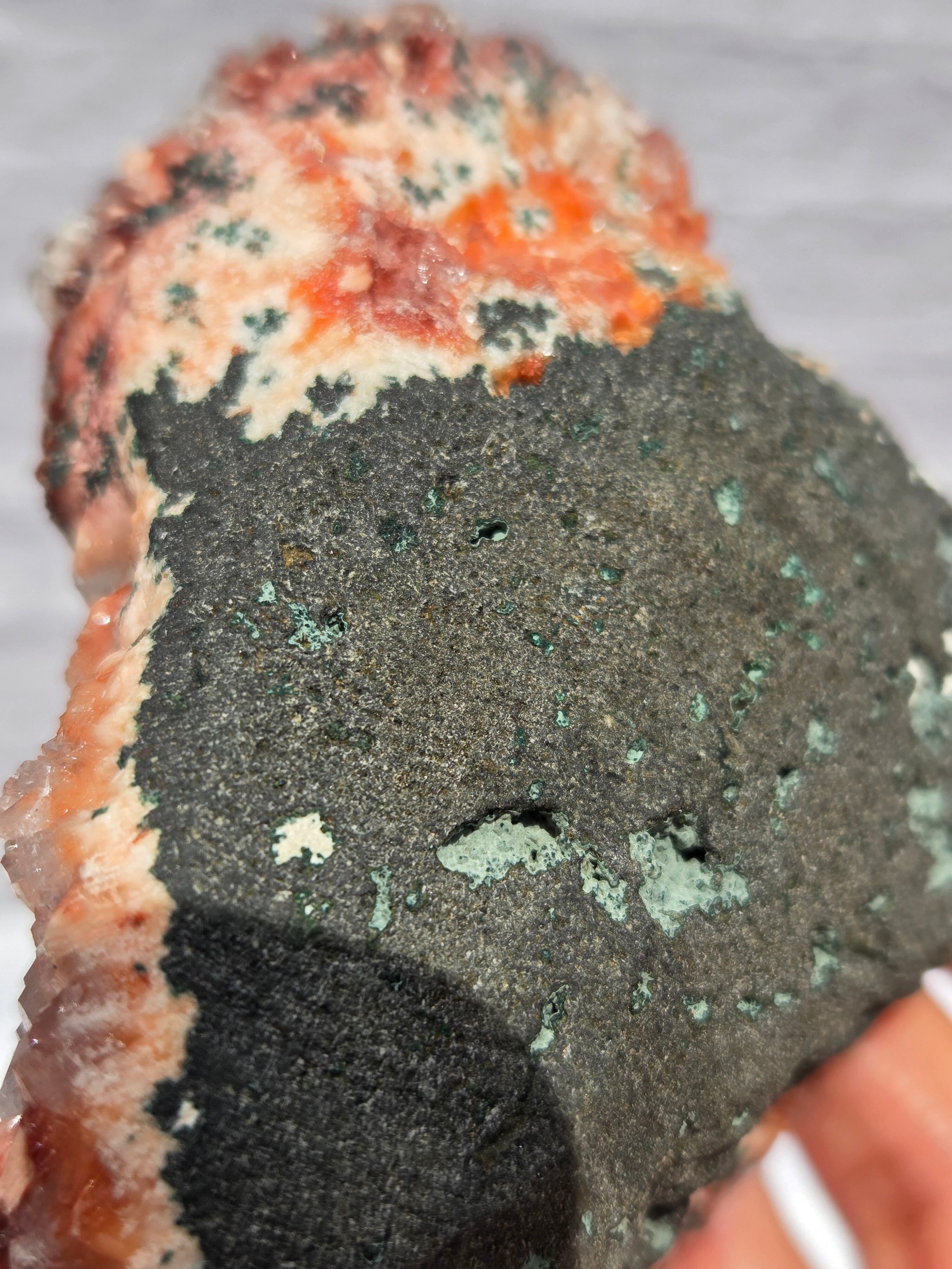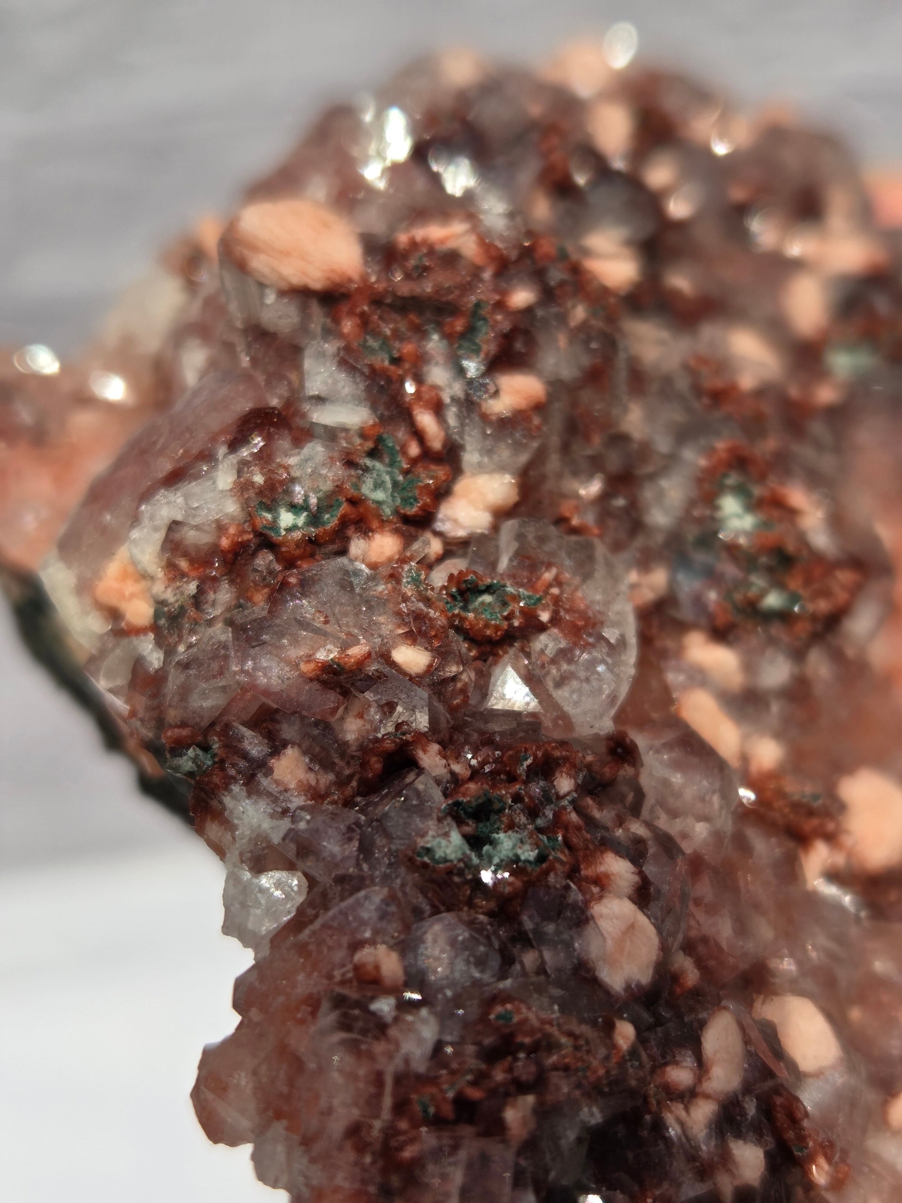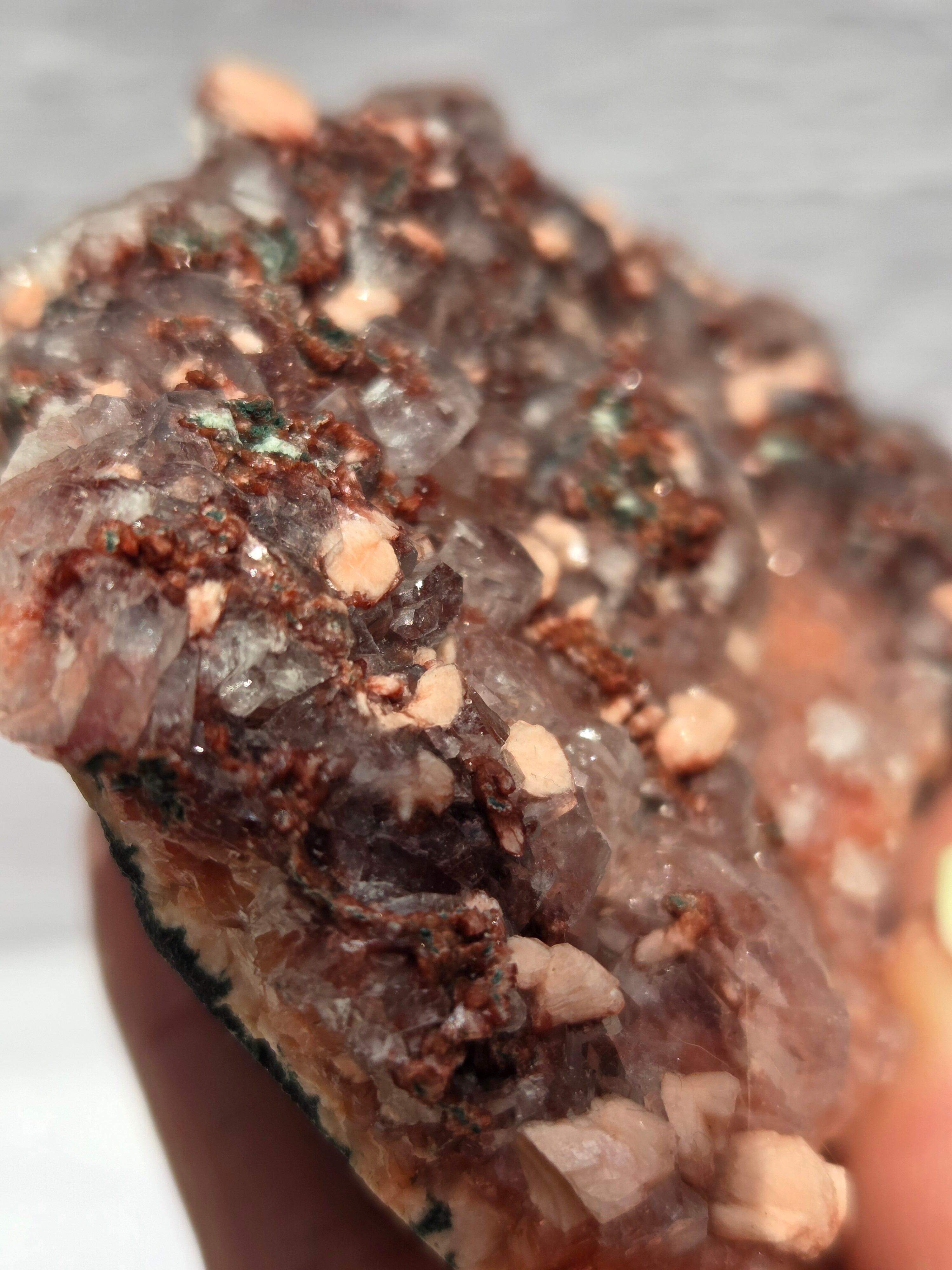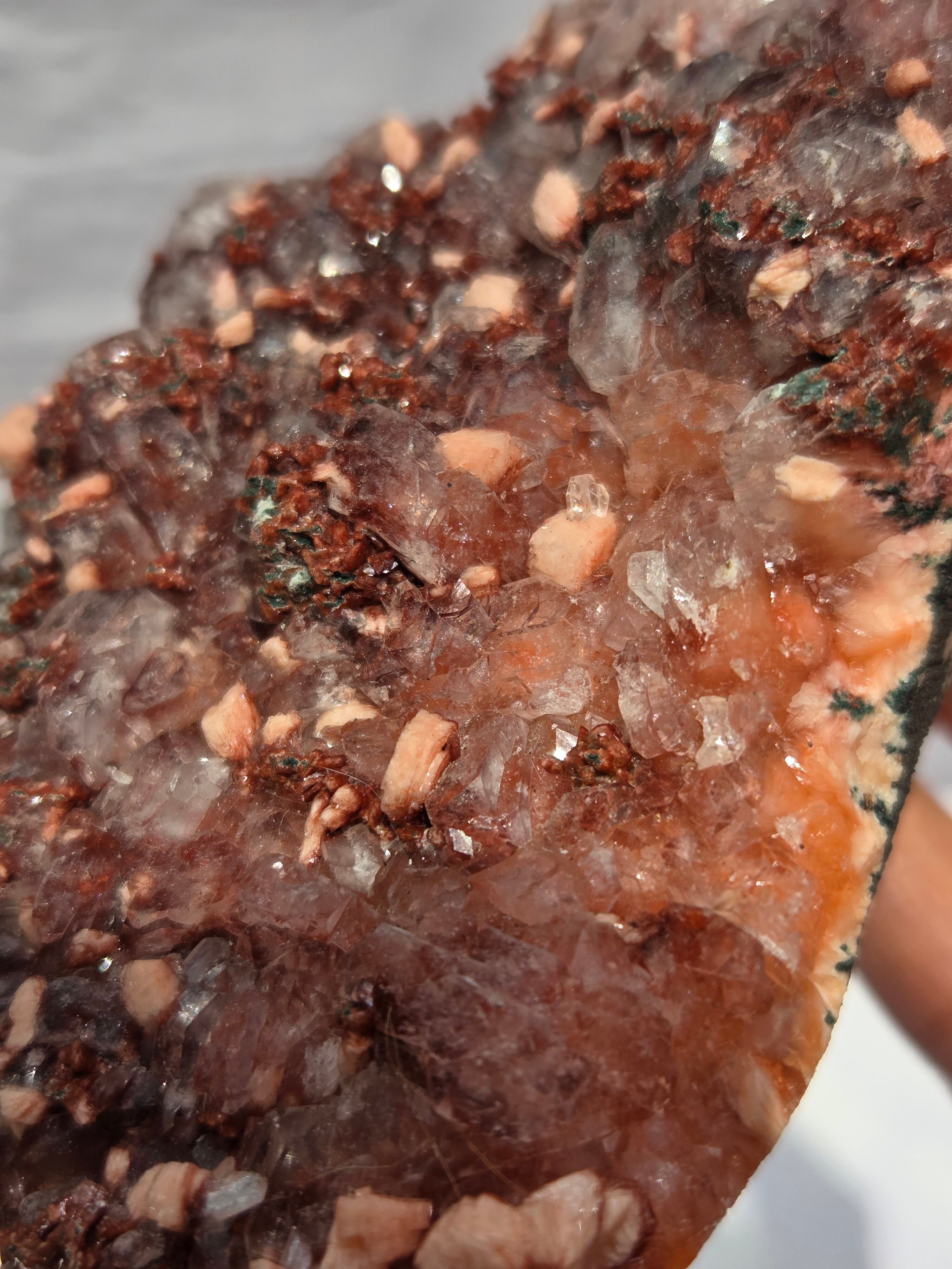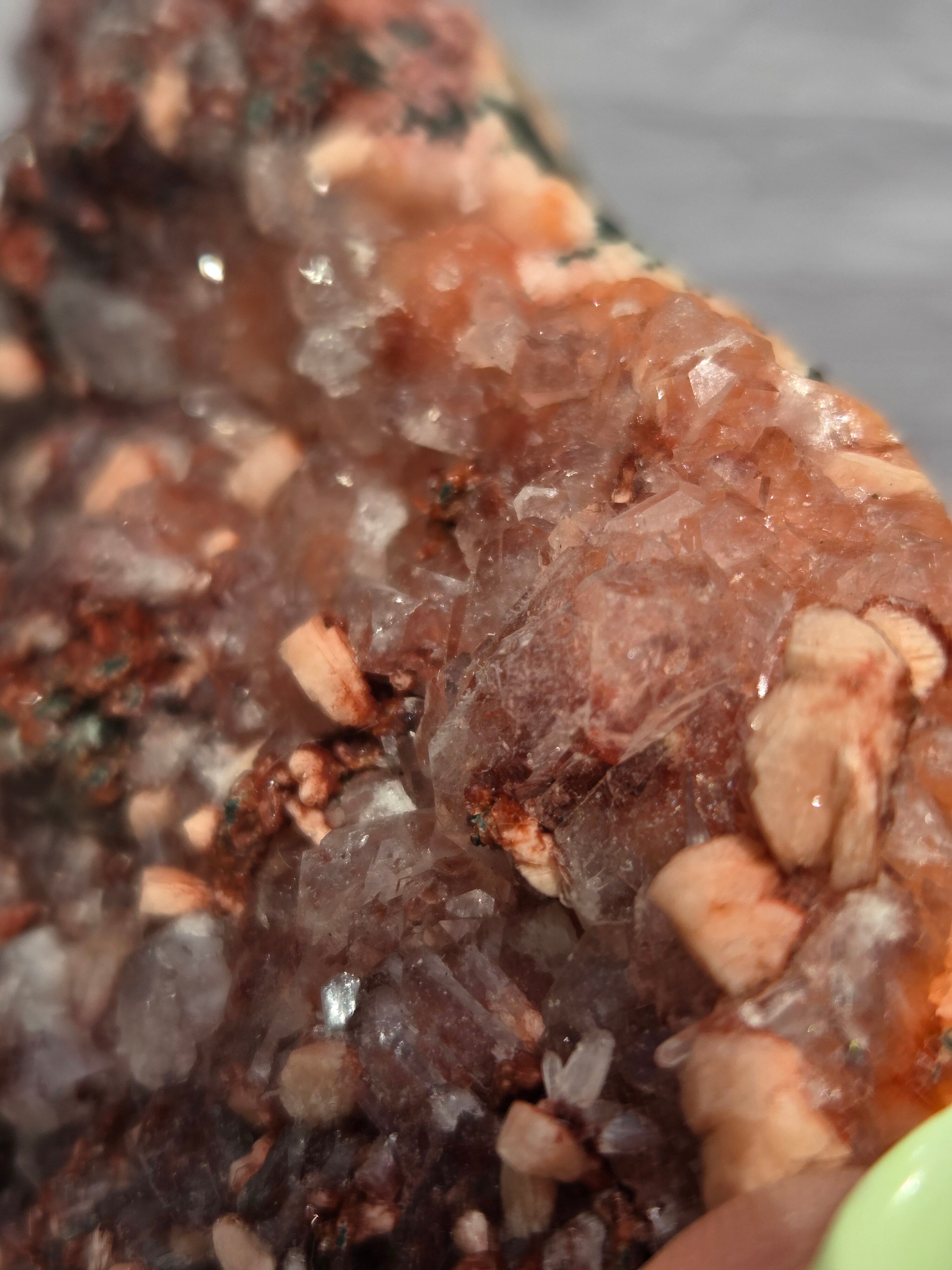 通常は、クリアと、グリーンのタイプが多いですが、こちらのレッドアポフィライトは、とても珍しく、発色も良い非常にきれいなレアな一点です。
