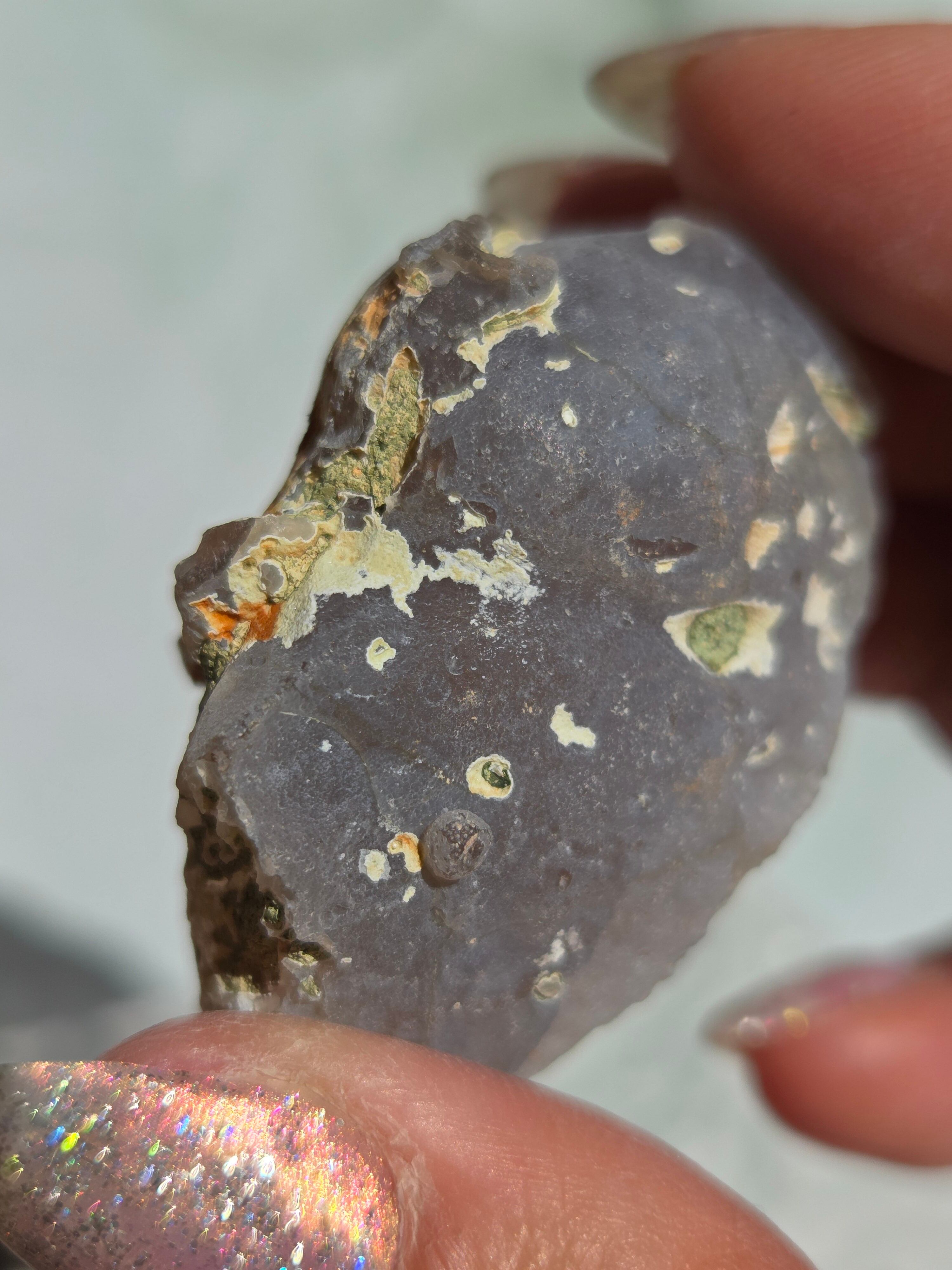 アゲート ジオードは、強い癒し効果があり、心身の安定、精神的なダメージの緩和、そして子宝のお守りとしても知られています。また、持ち主に自信と勇気を与え、前向きな行動力や成功へと導くとも言われています。さらに、家庭内のトラブルを防ぎ、人間関係を良好にするサポートも期待できるといわれています。