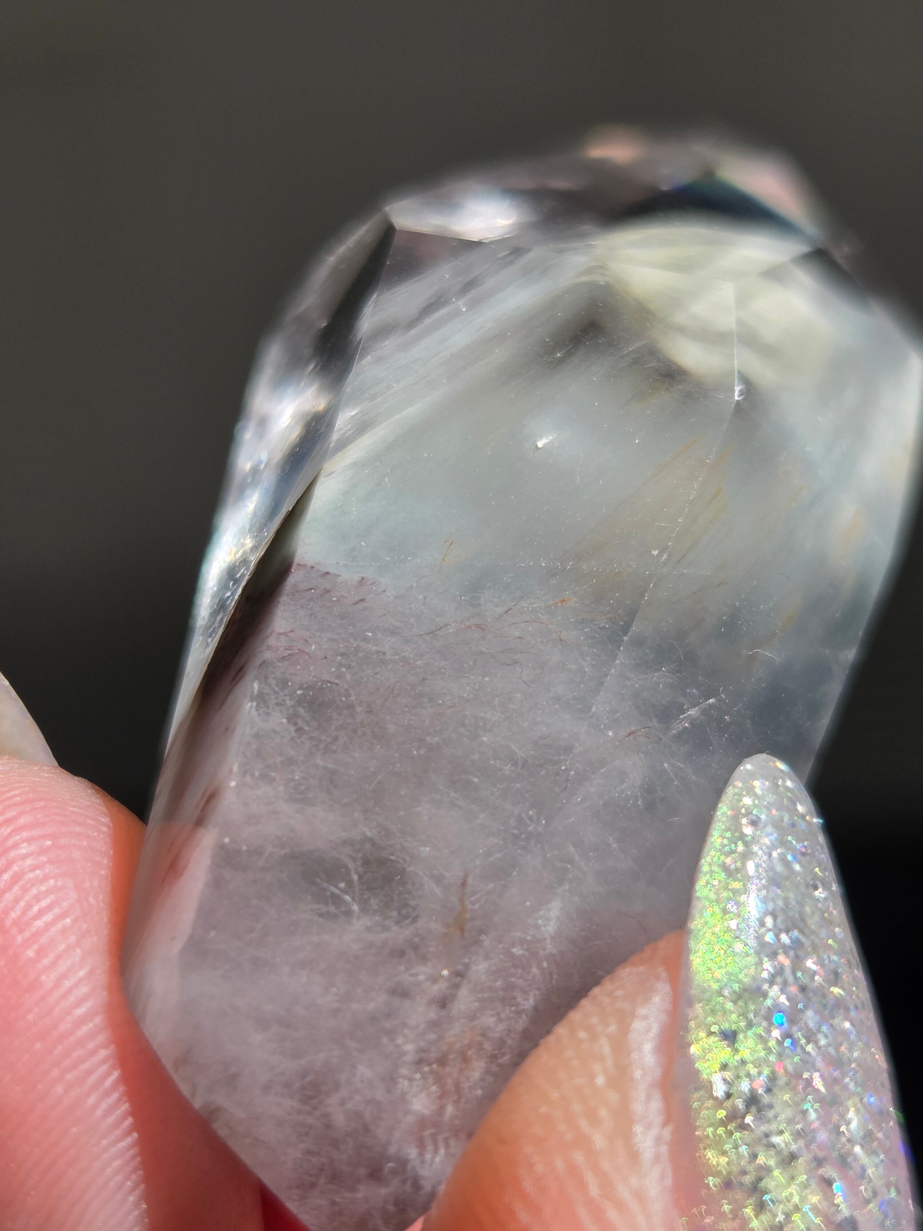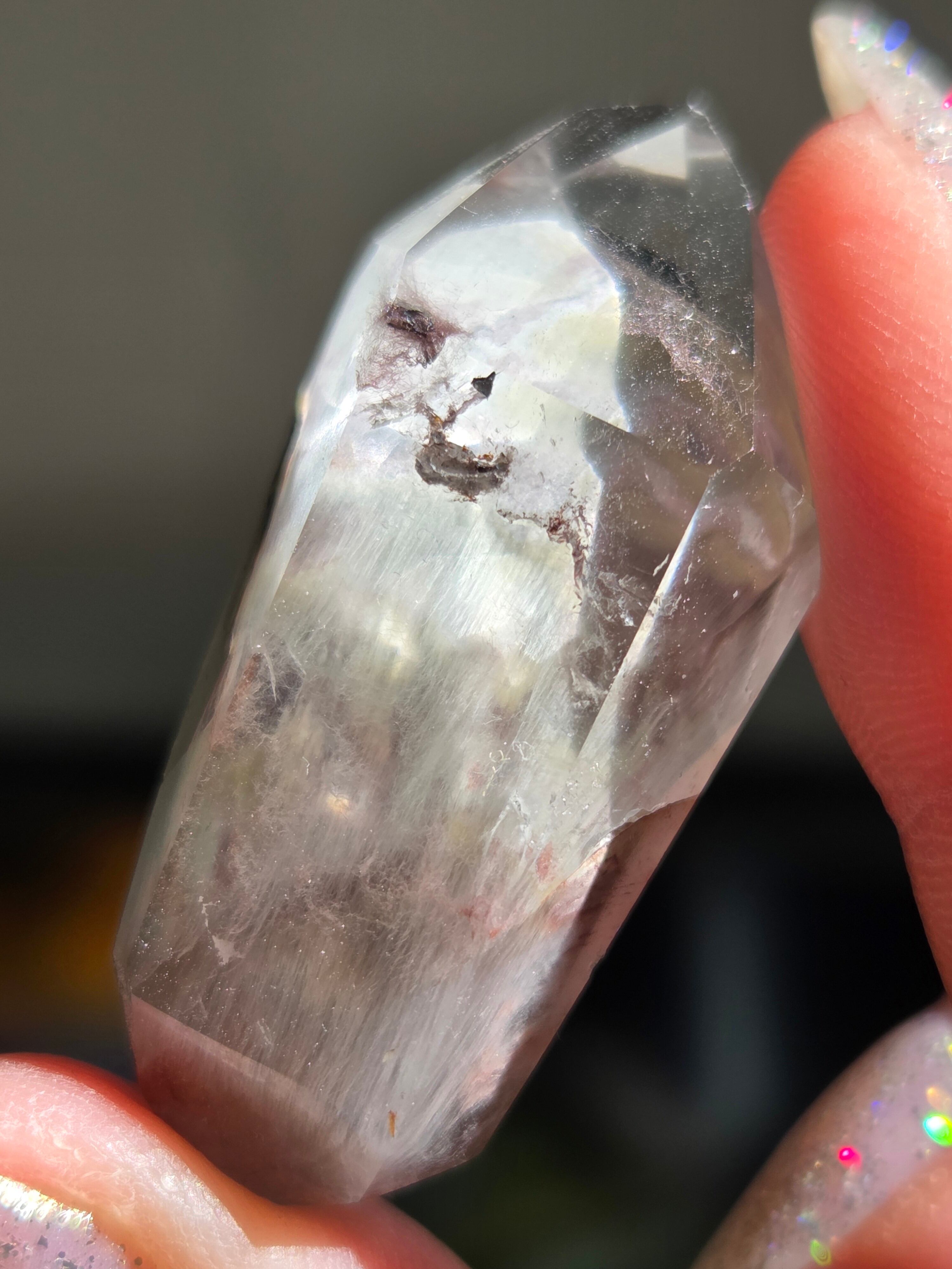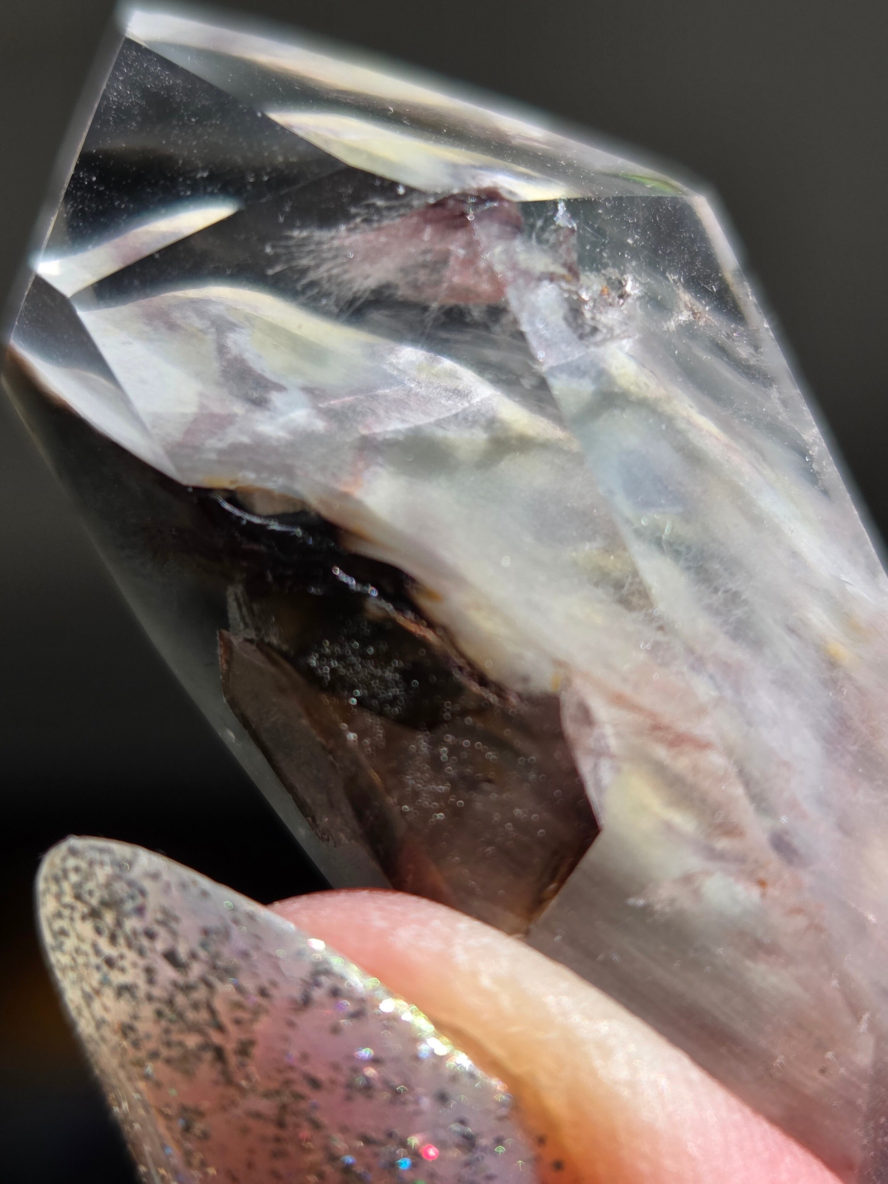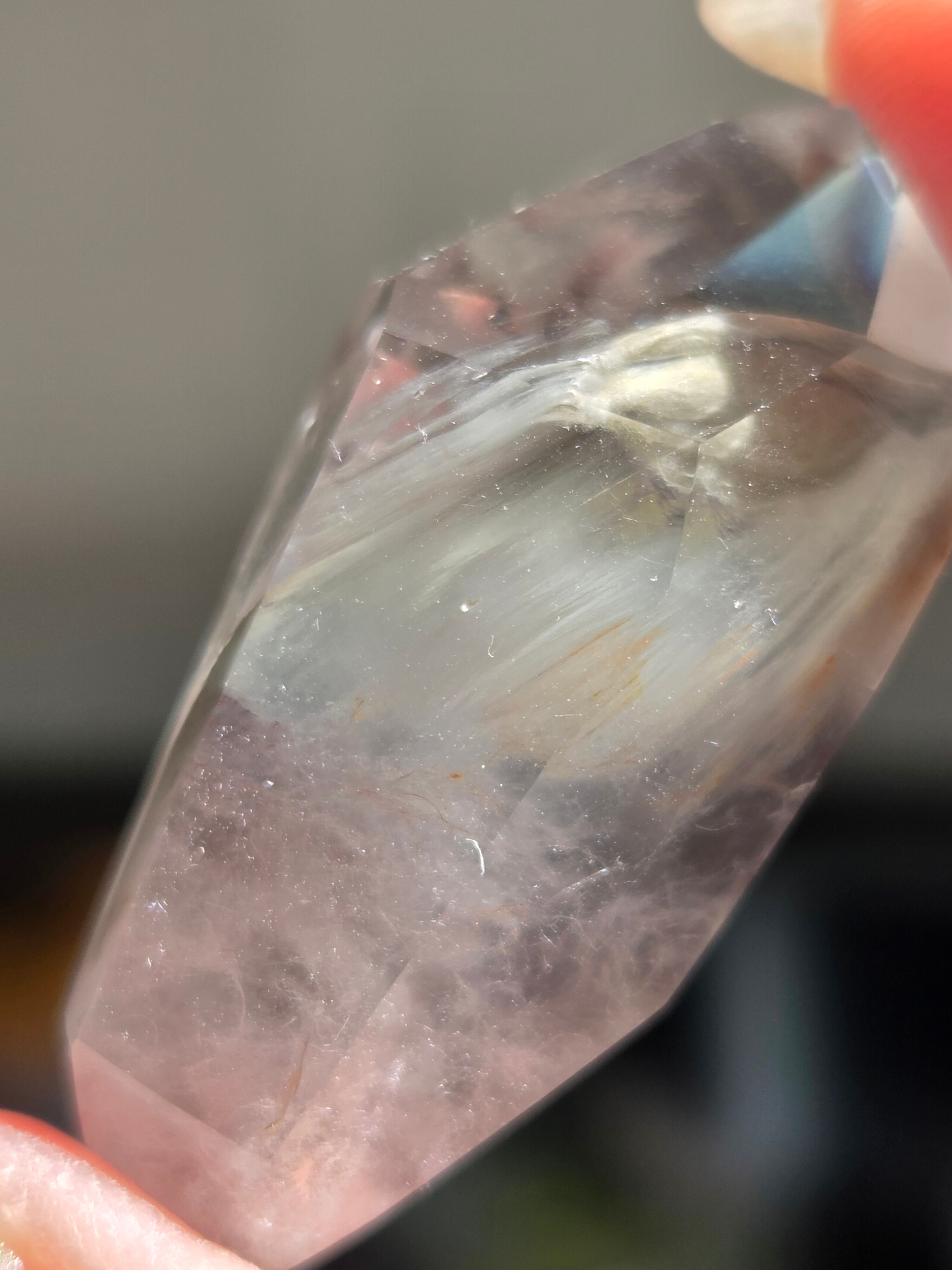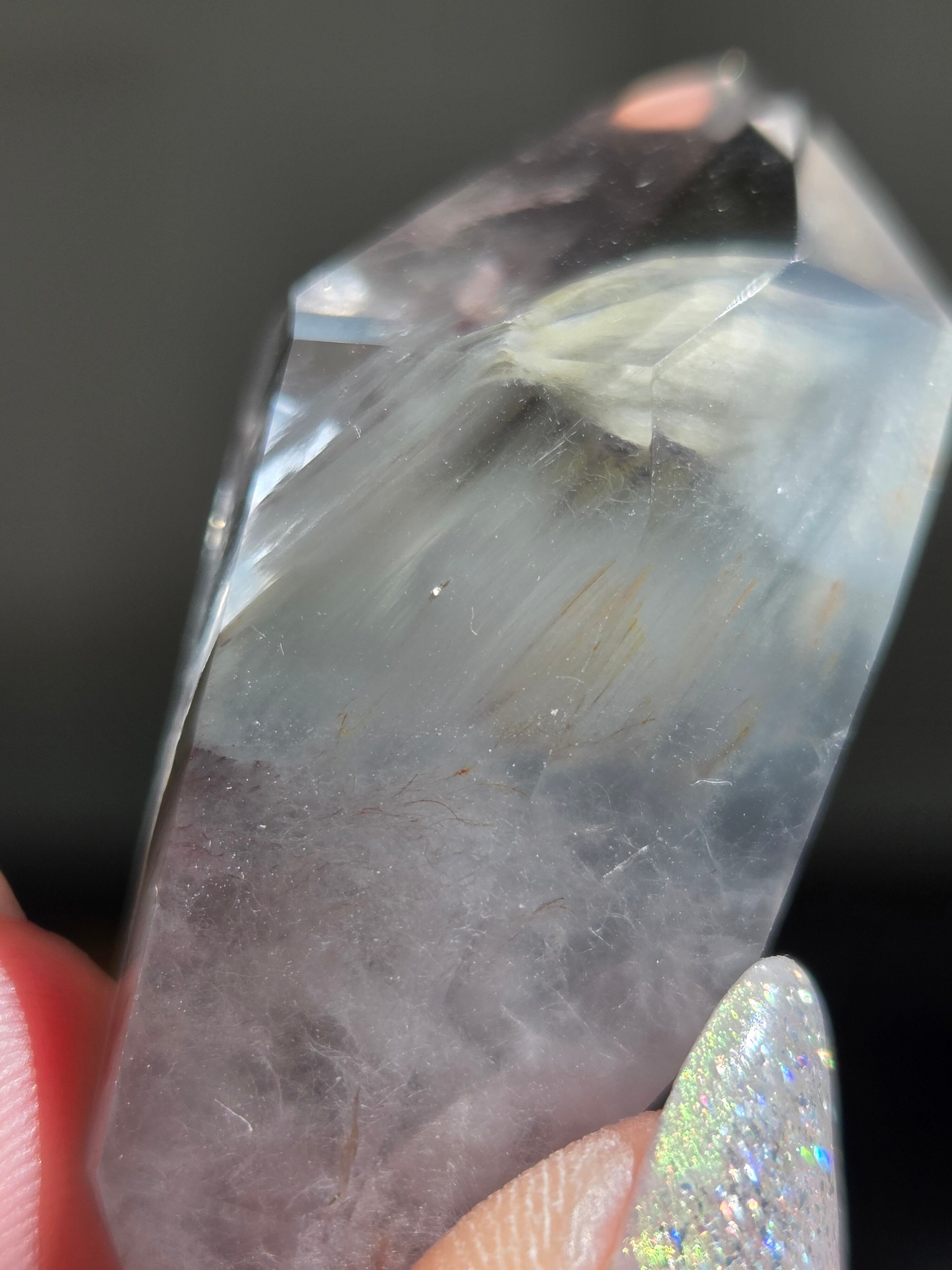 ブルーターラクォーツは、リーベカイトやオレナイトのインクルージョンにより青灰色に色付いた水晶です。「ブルーターラ」の名はチベット仏教で信仰されるターラ菩薩に由来しています。