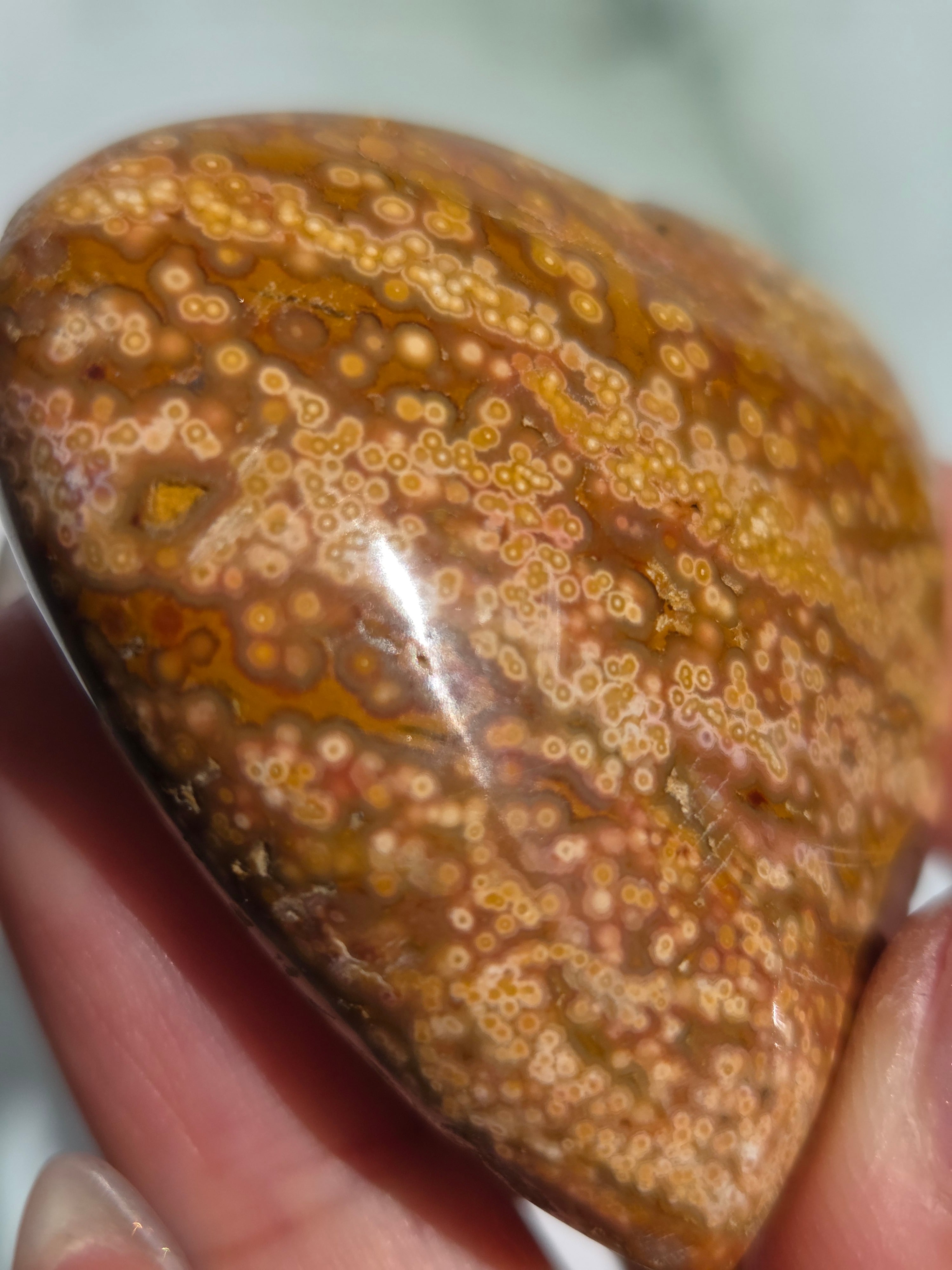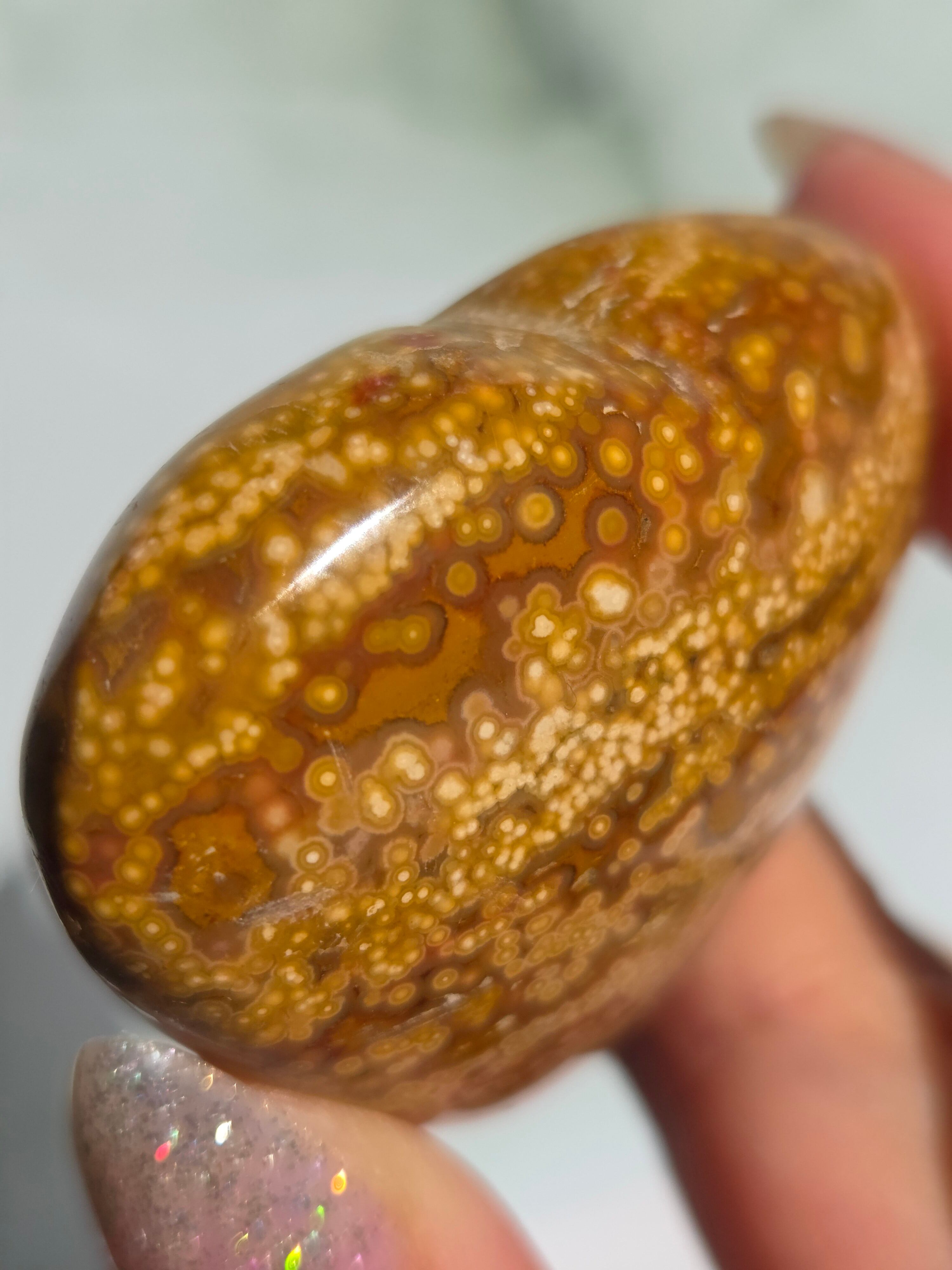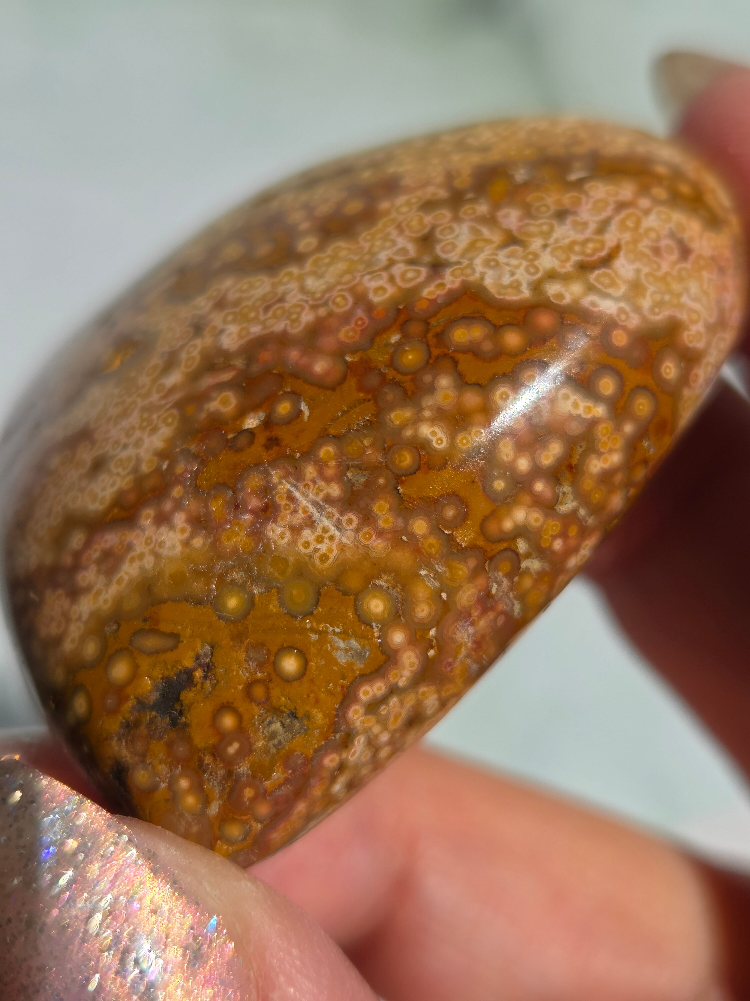 オーシャンジャスパーには高いヒーリング効果があると言われ、精神的な安心感や安定感をもたらし、悩みや問題などの解決へと導いてくれます。 包容力や奉仕の精神を養ってくれる石でもあります。 また、隠れた魅力・才能を引き出してくれる石でもあります。