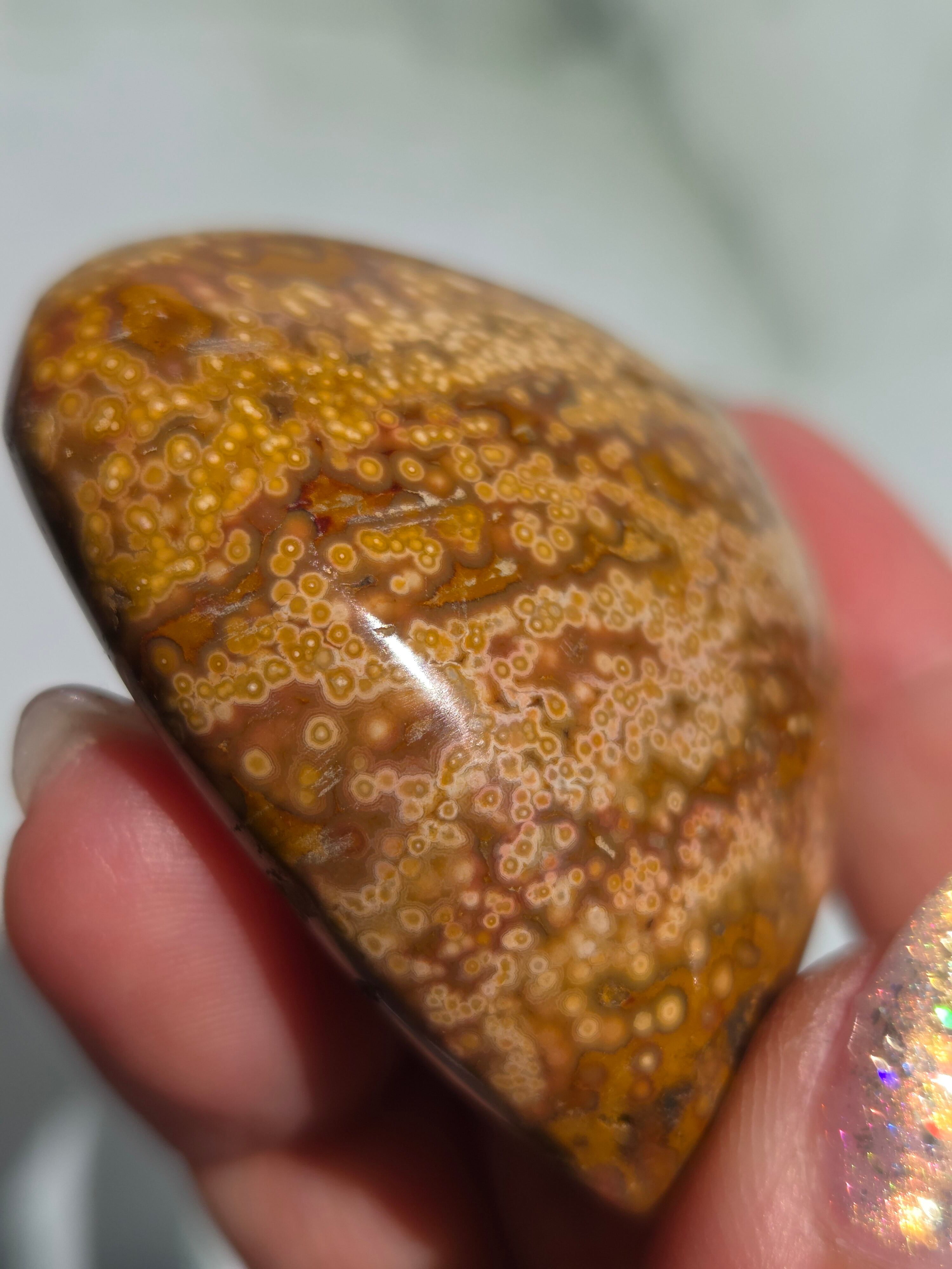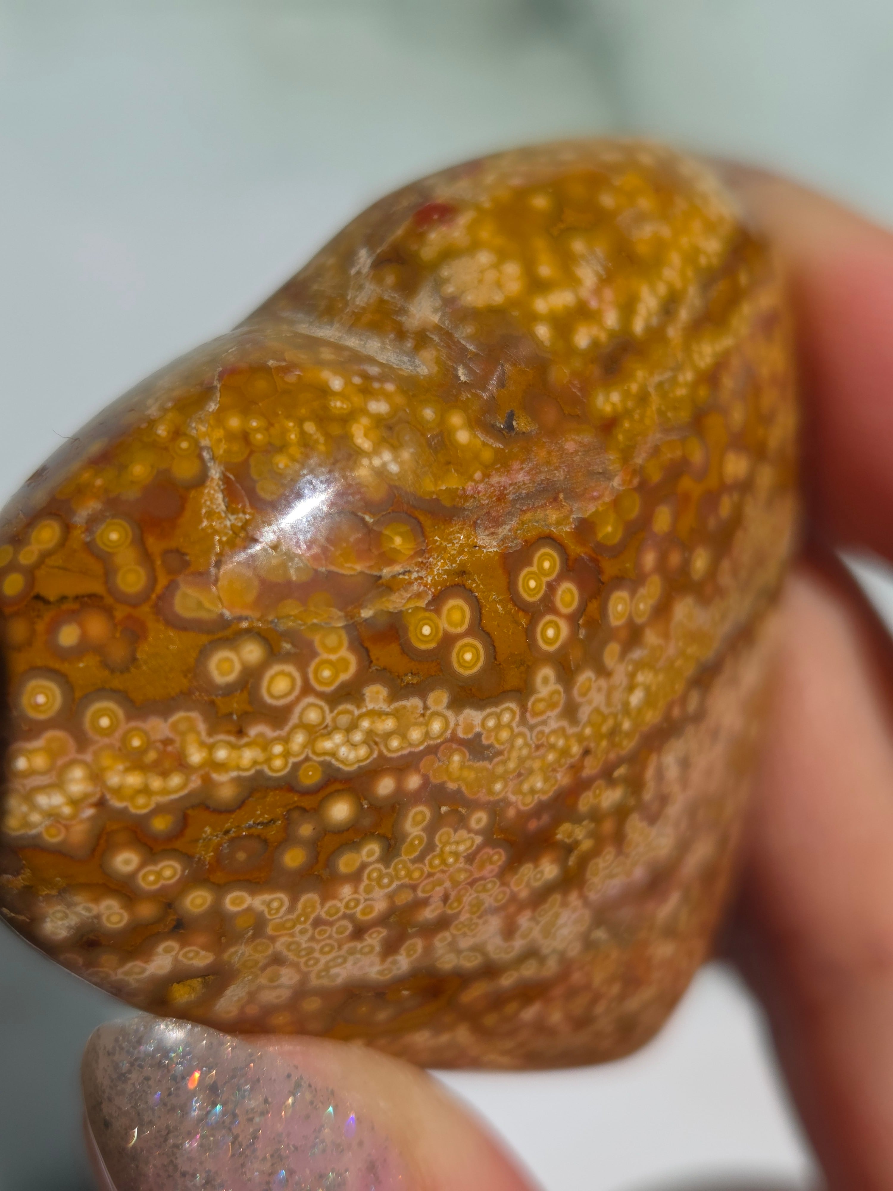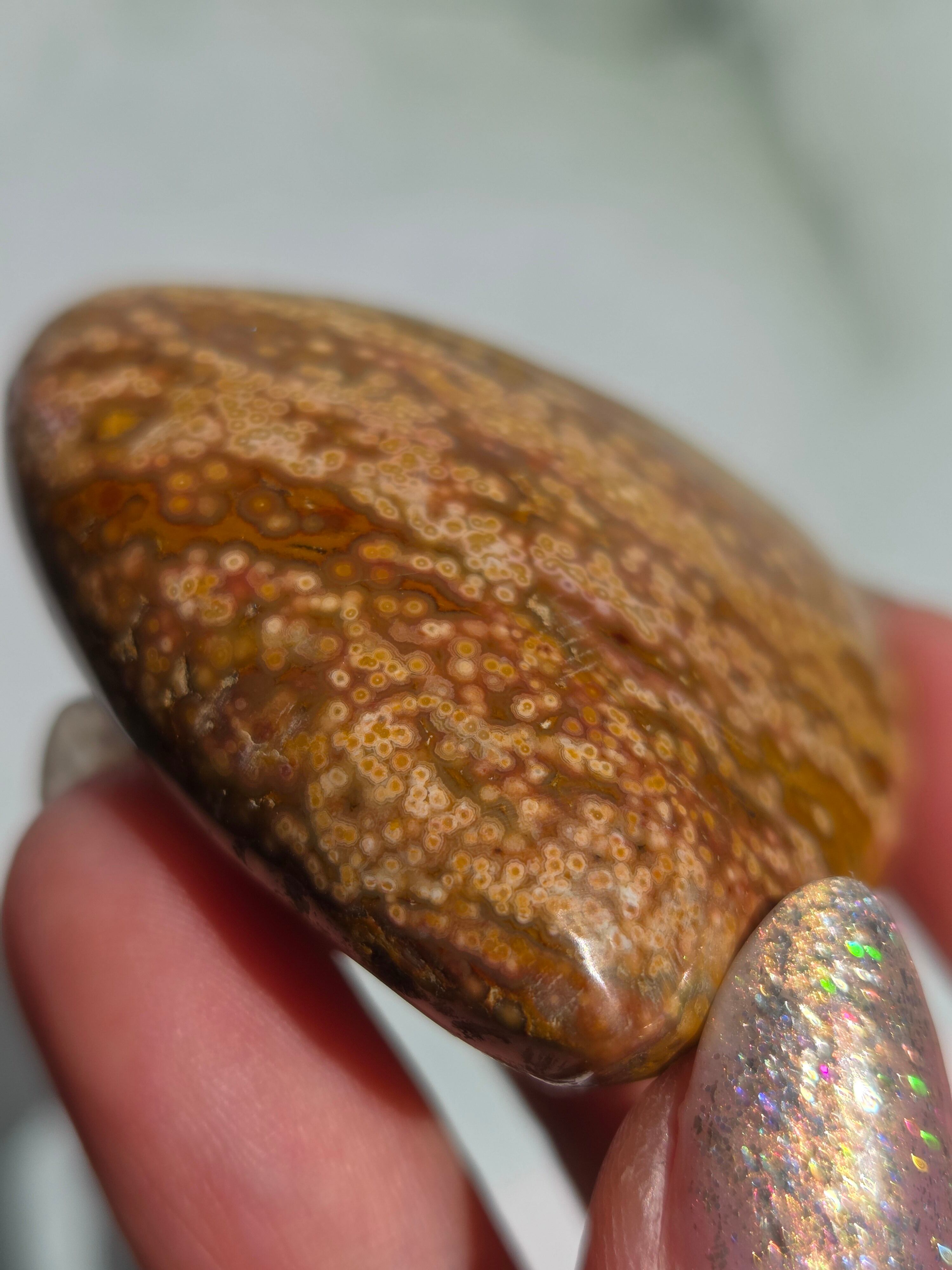 オーシャンジャスパーには高いヒーリング効果があると言われ、精神的な安心感や安定感をもたらし、悩みや問題などの解決へと導いてくれます。 包容力や奉仕の精神を養ってくれる石でもあります。 また、隠れた魅力・才能を引き出してくれる石でもあります。