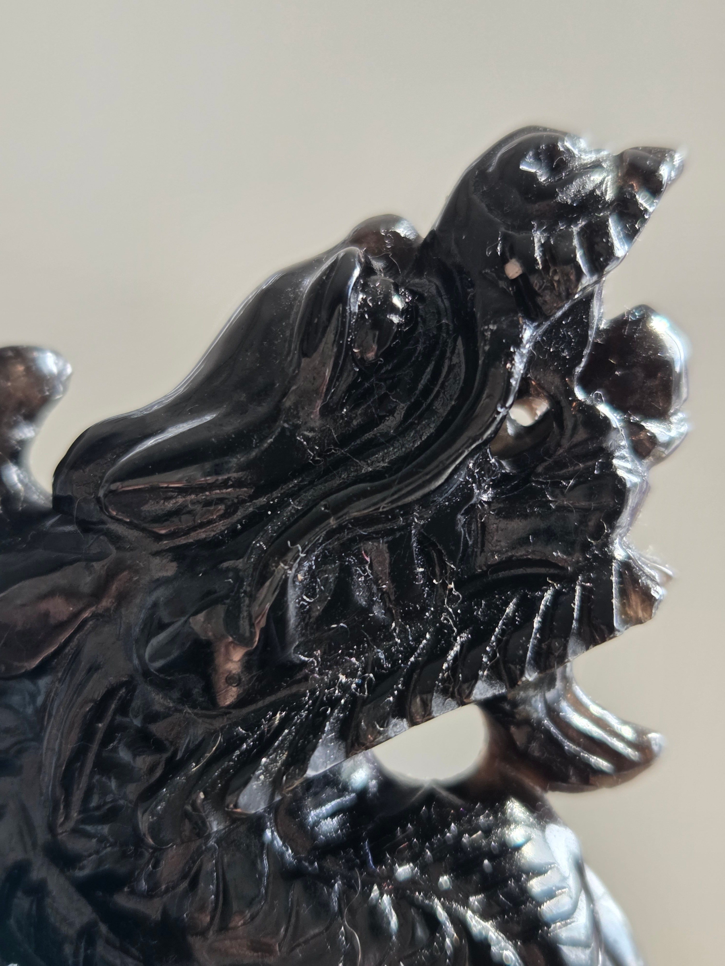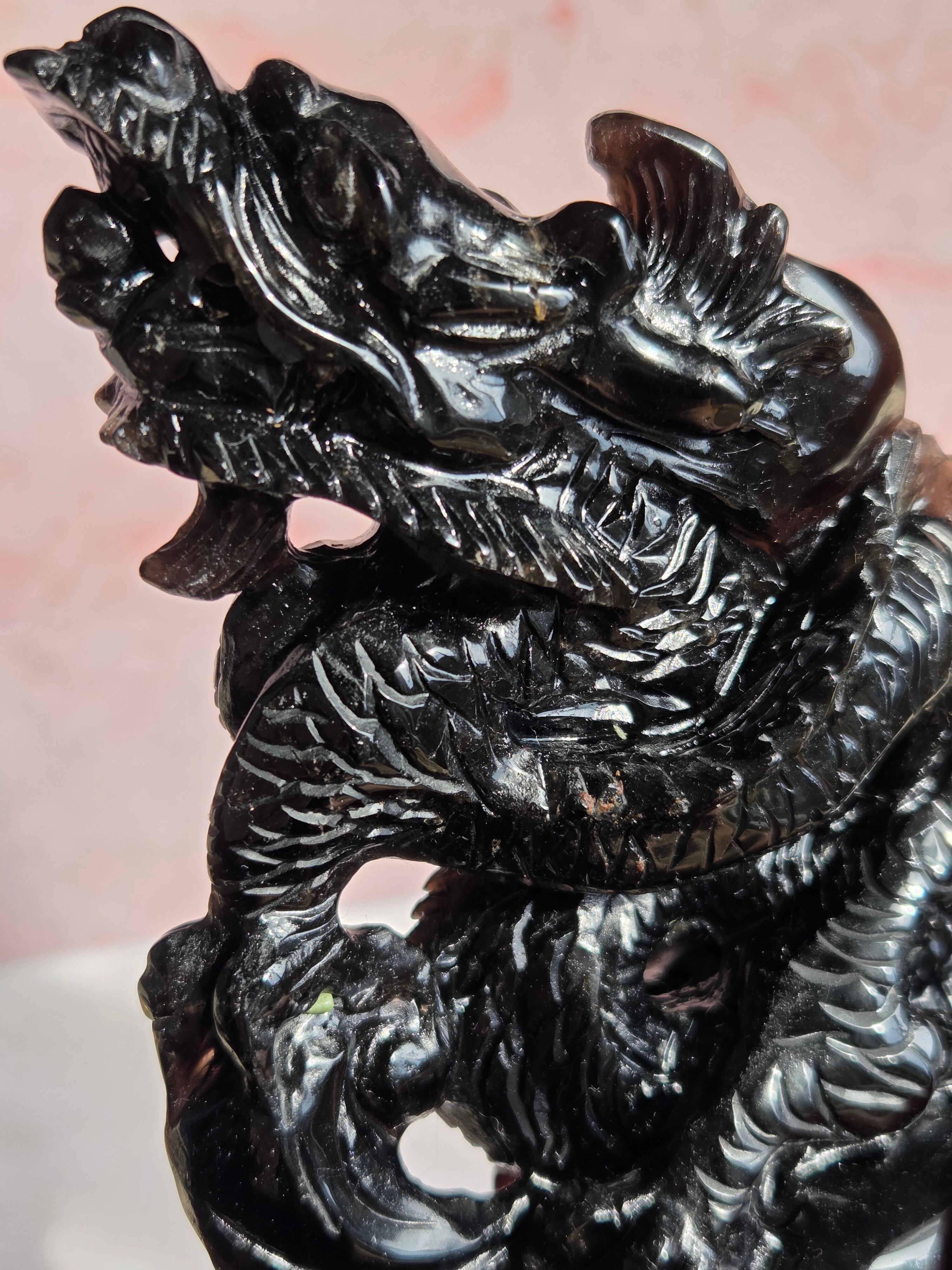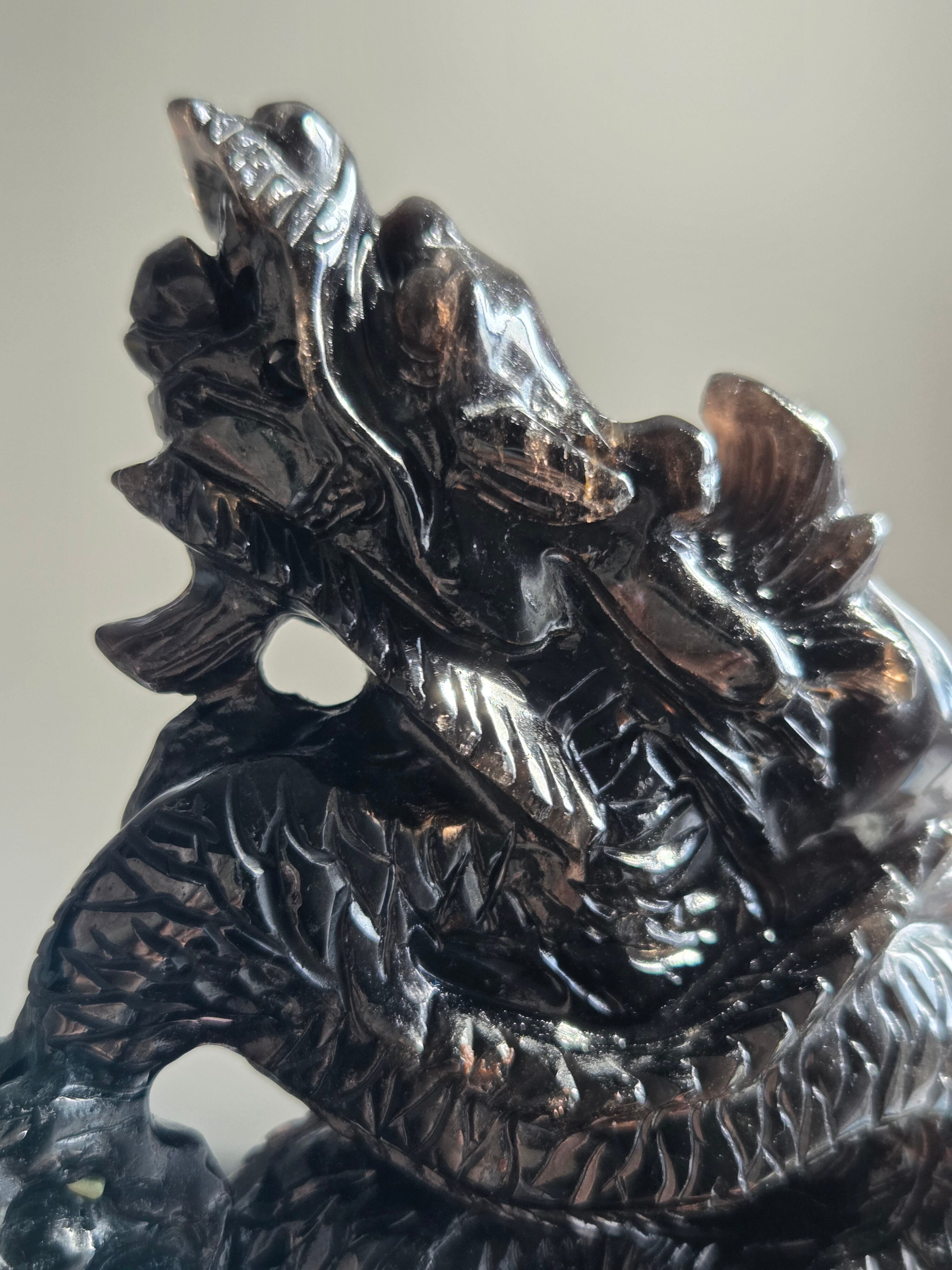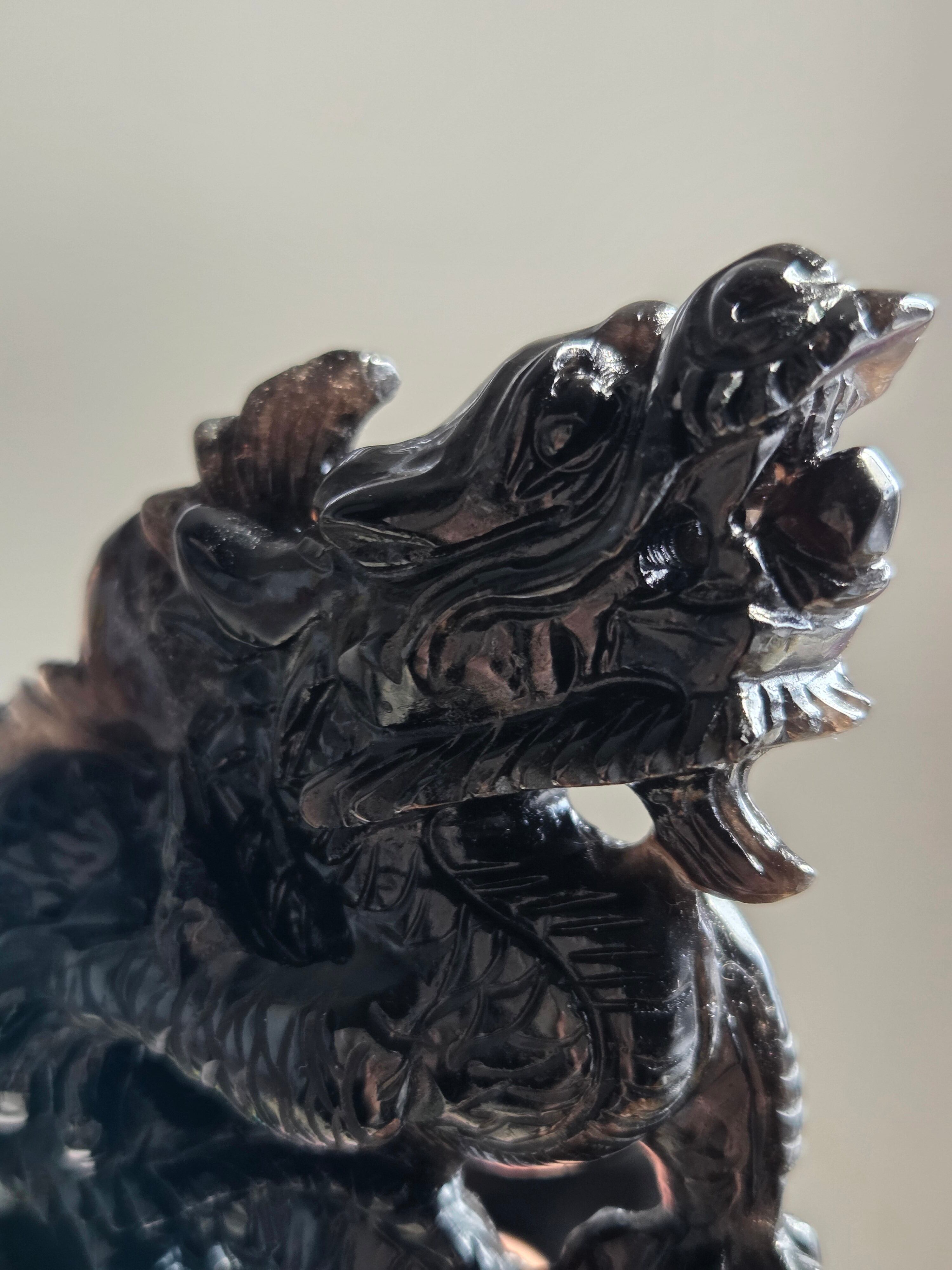 ブラジル産のモリオンを、手彫りで龍が彫られています。個人的に、こちらの彫り師の先生の細かな彫り方やデザインがとても大好きです。