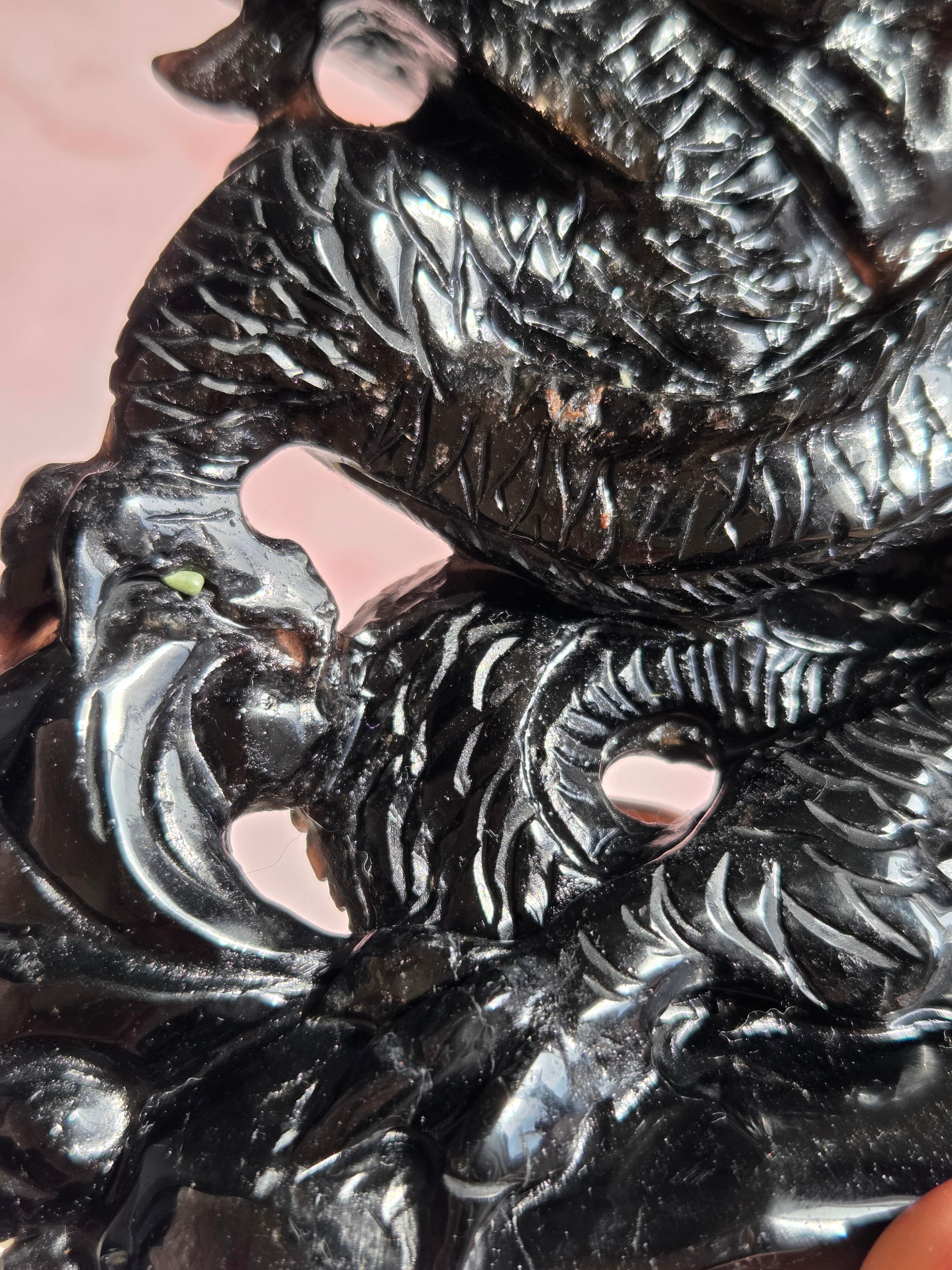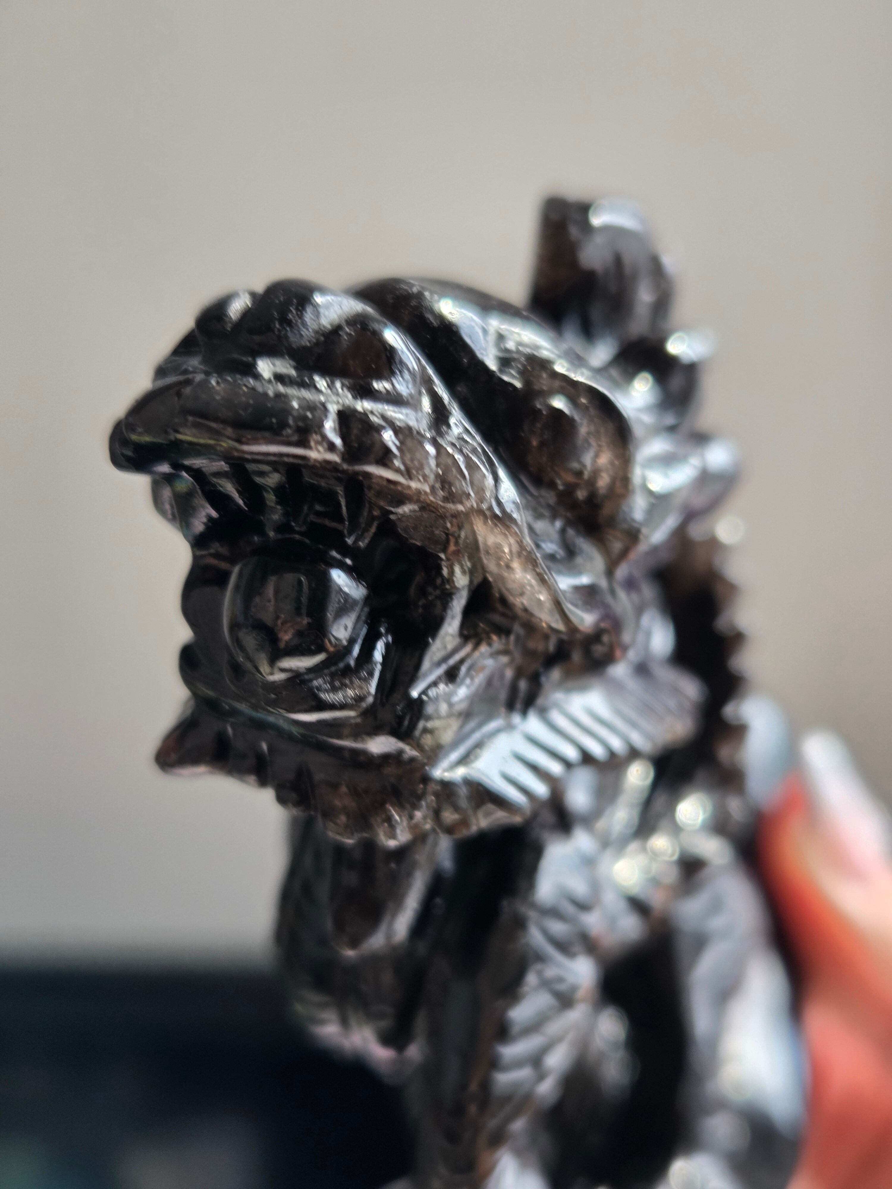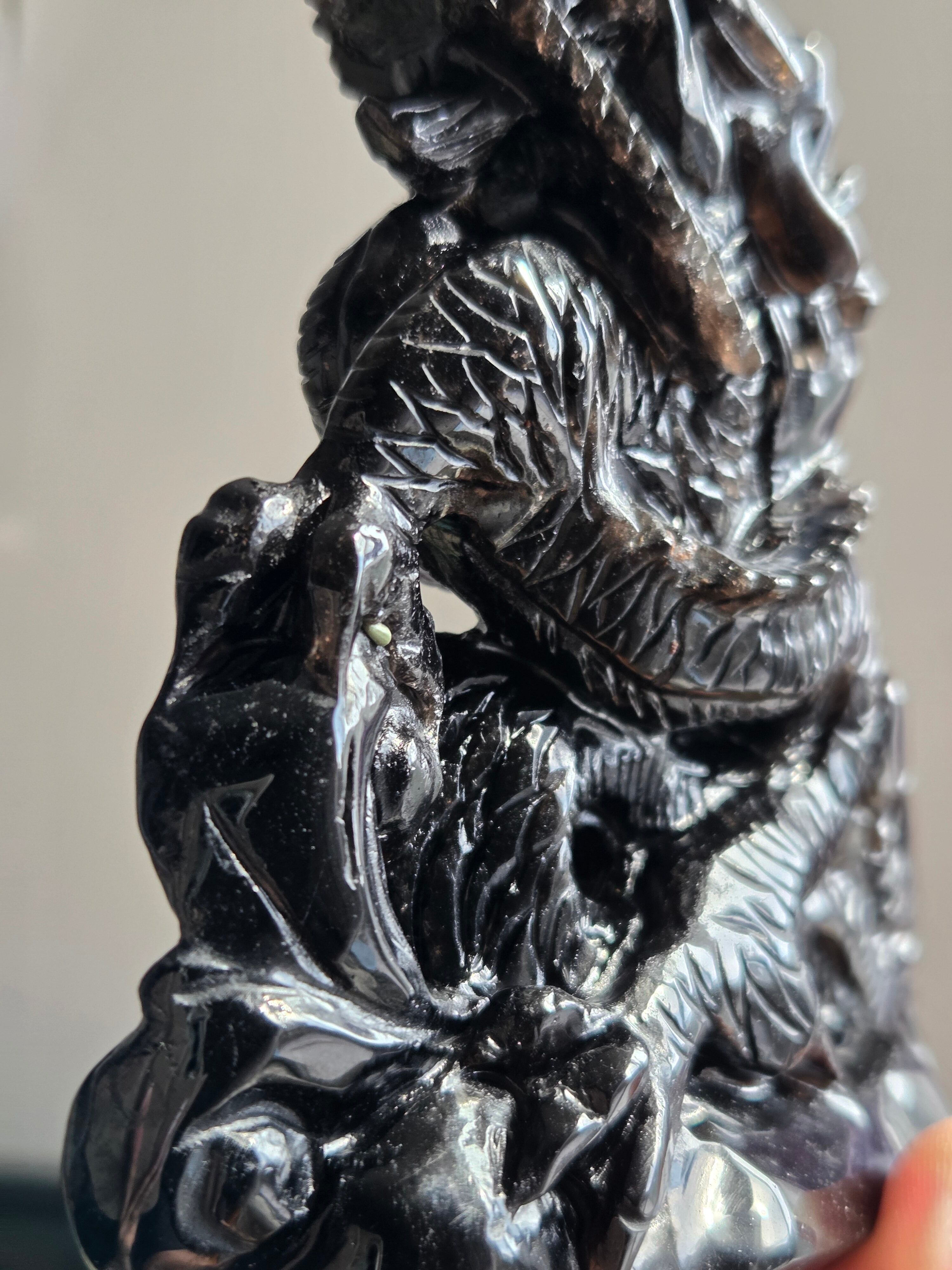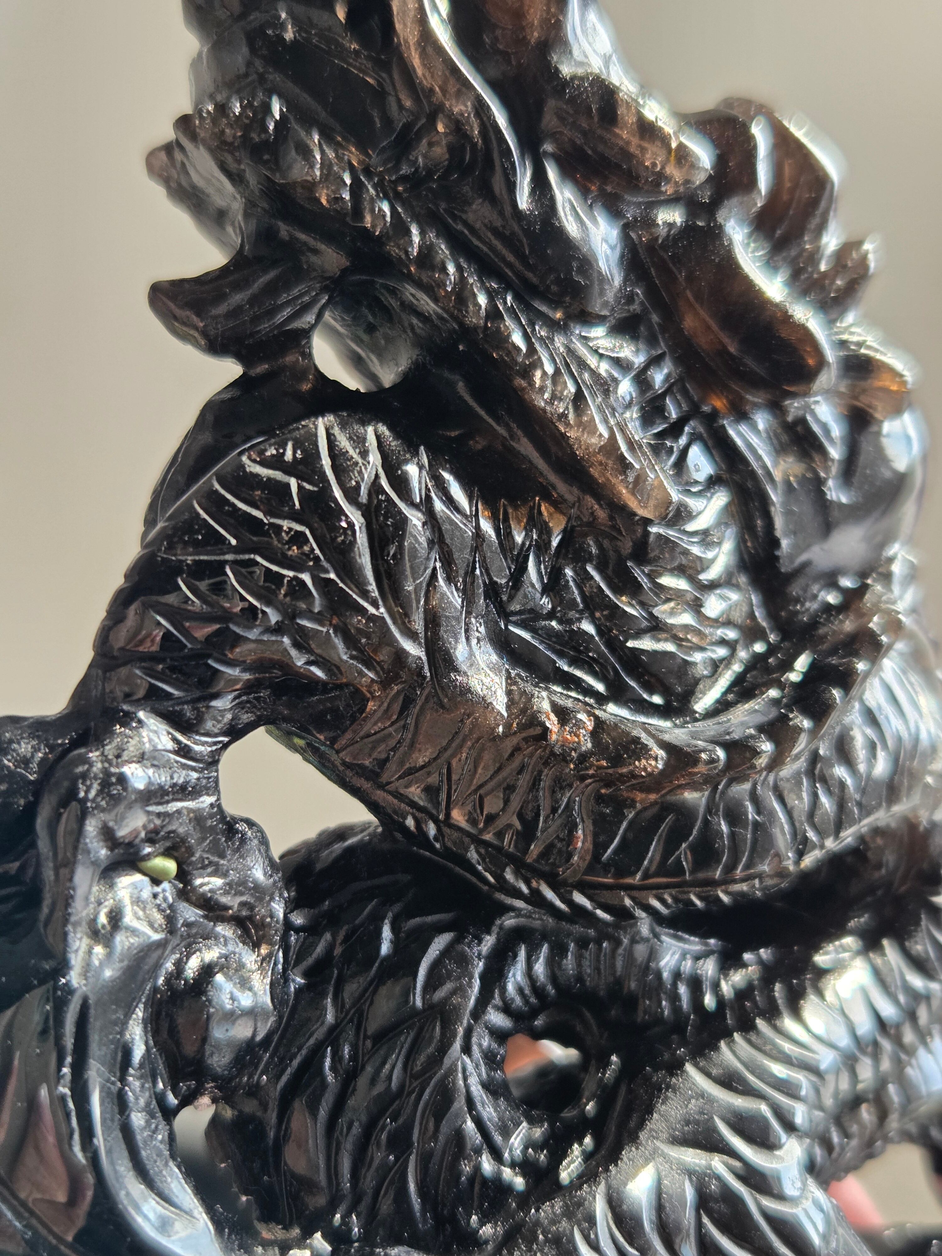 ブラジル産のモリオンを、手彫りで龍が彫られています。個人的に、こちらの彫り師の先生の細かな彫り方やデザインがとても大好きです。