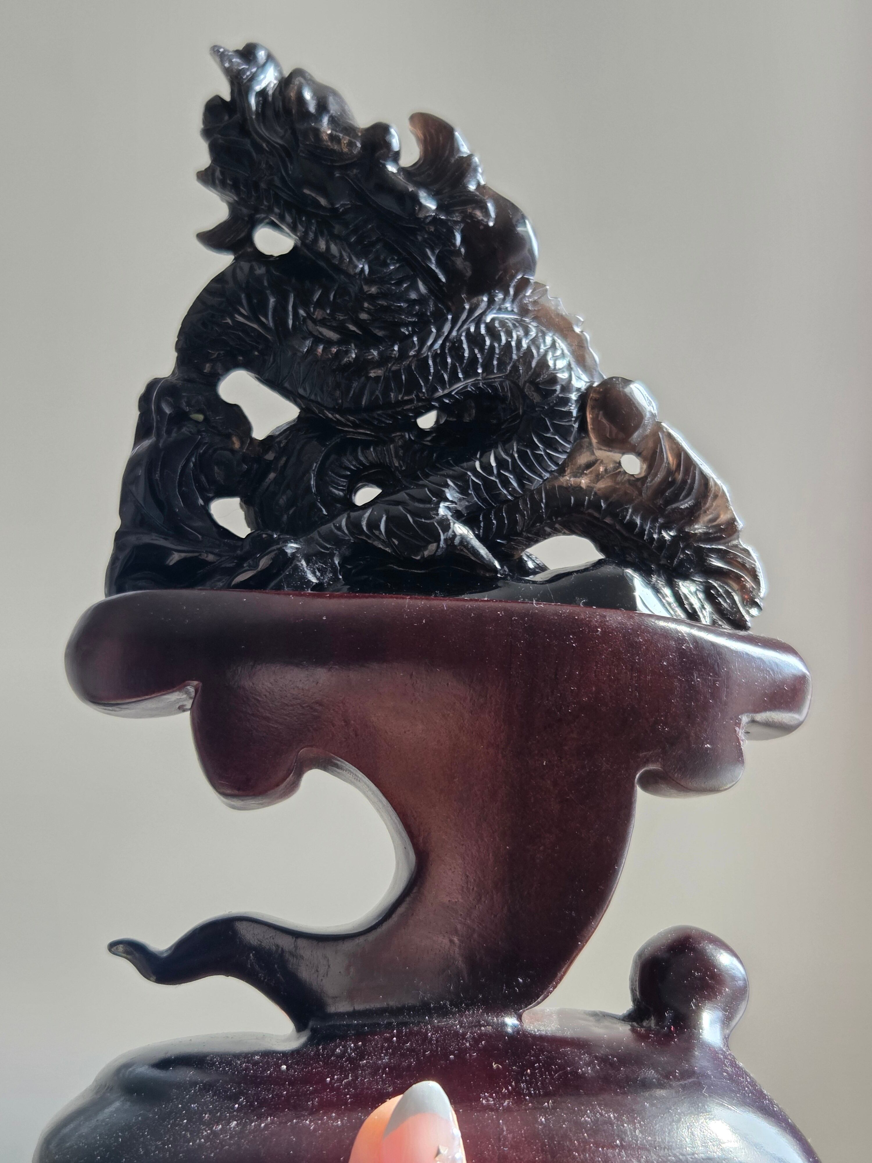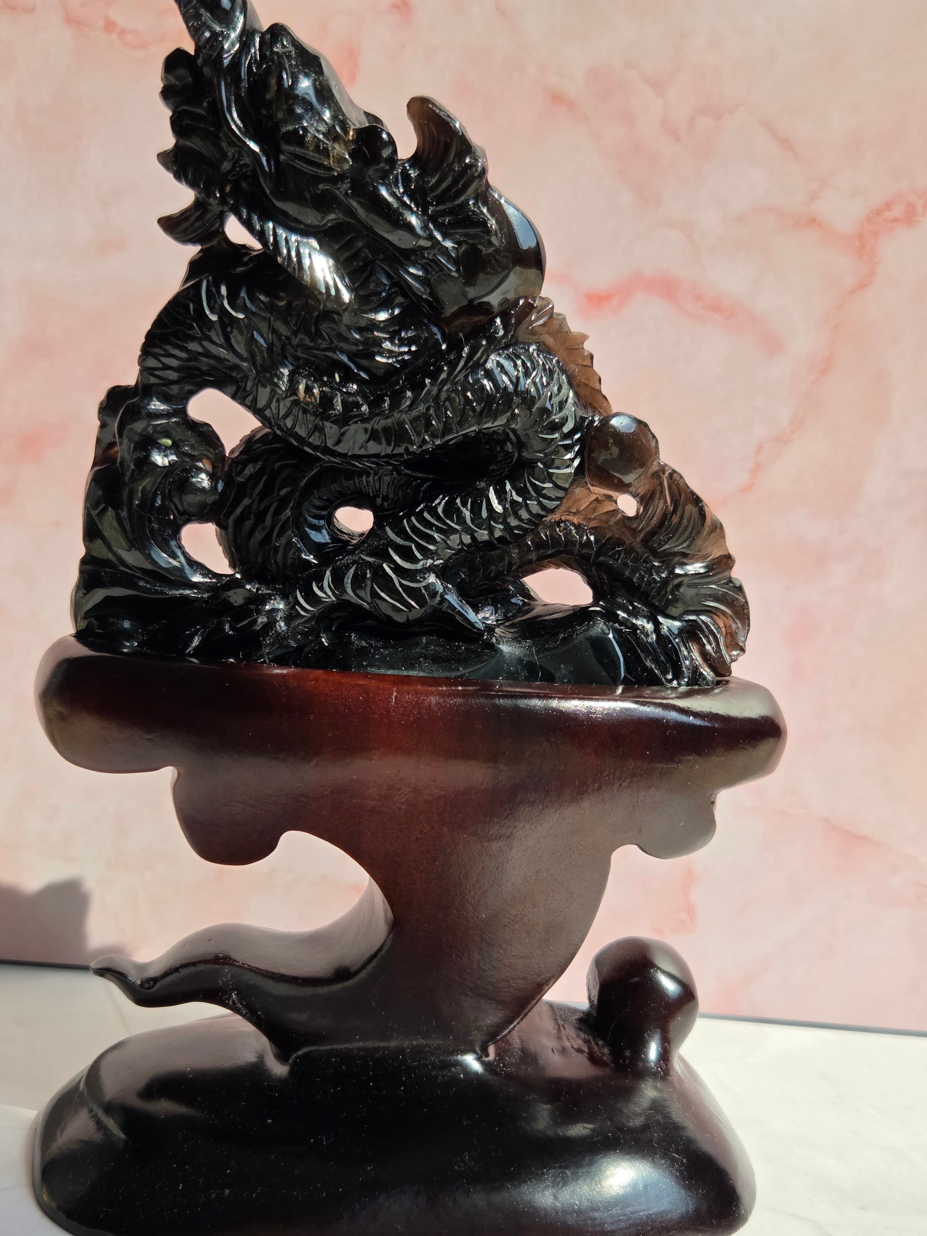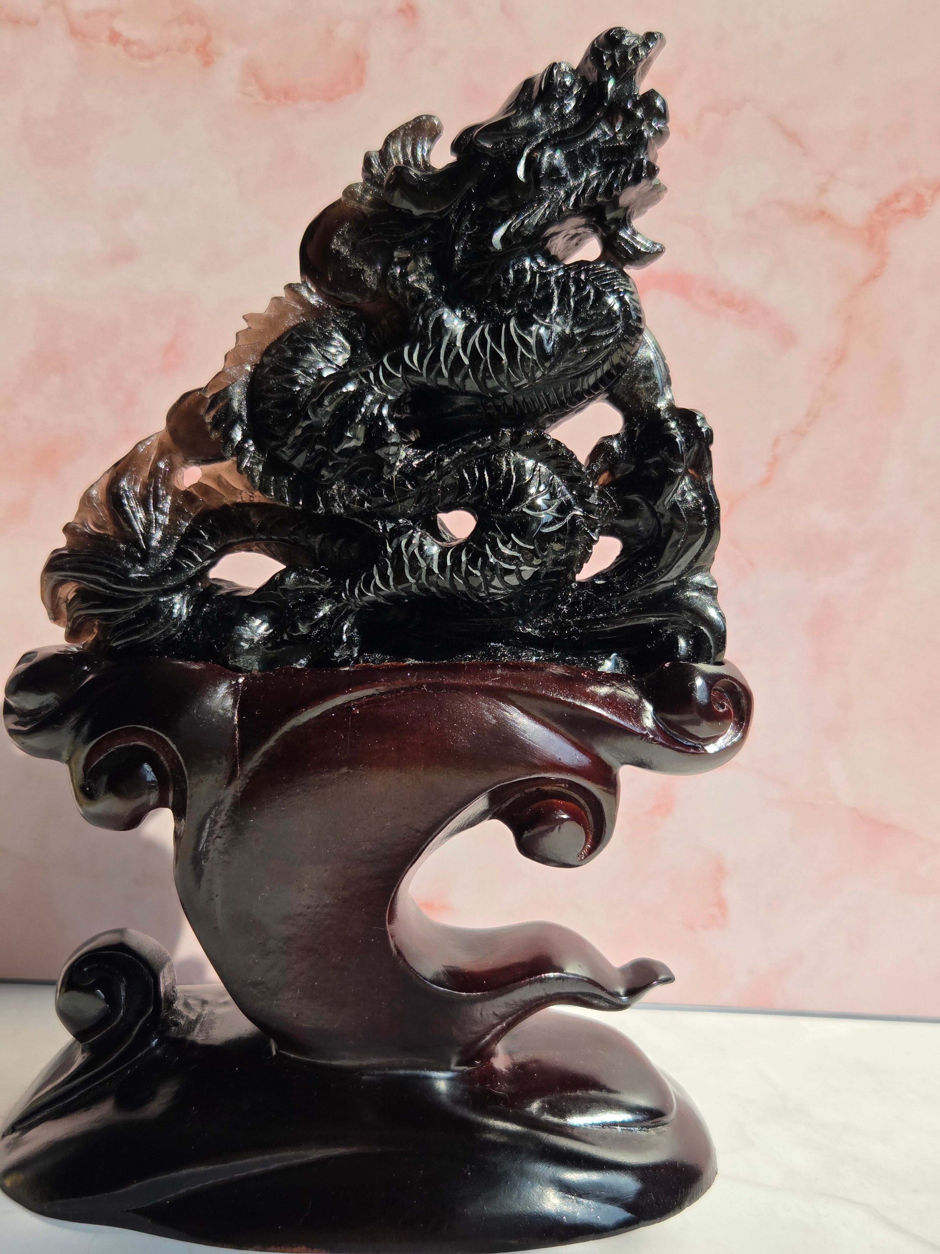 モリオン手彫り龍置物【専用台座付】