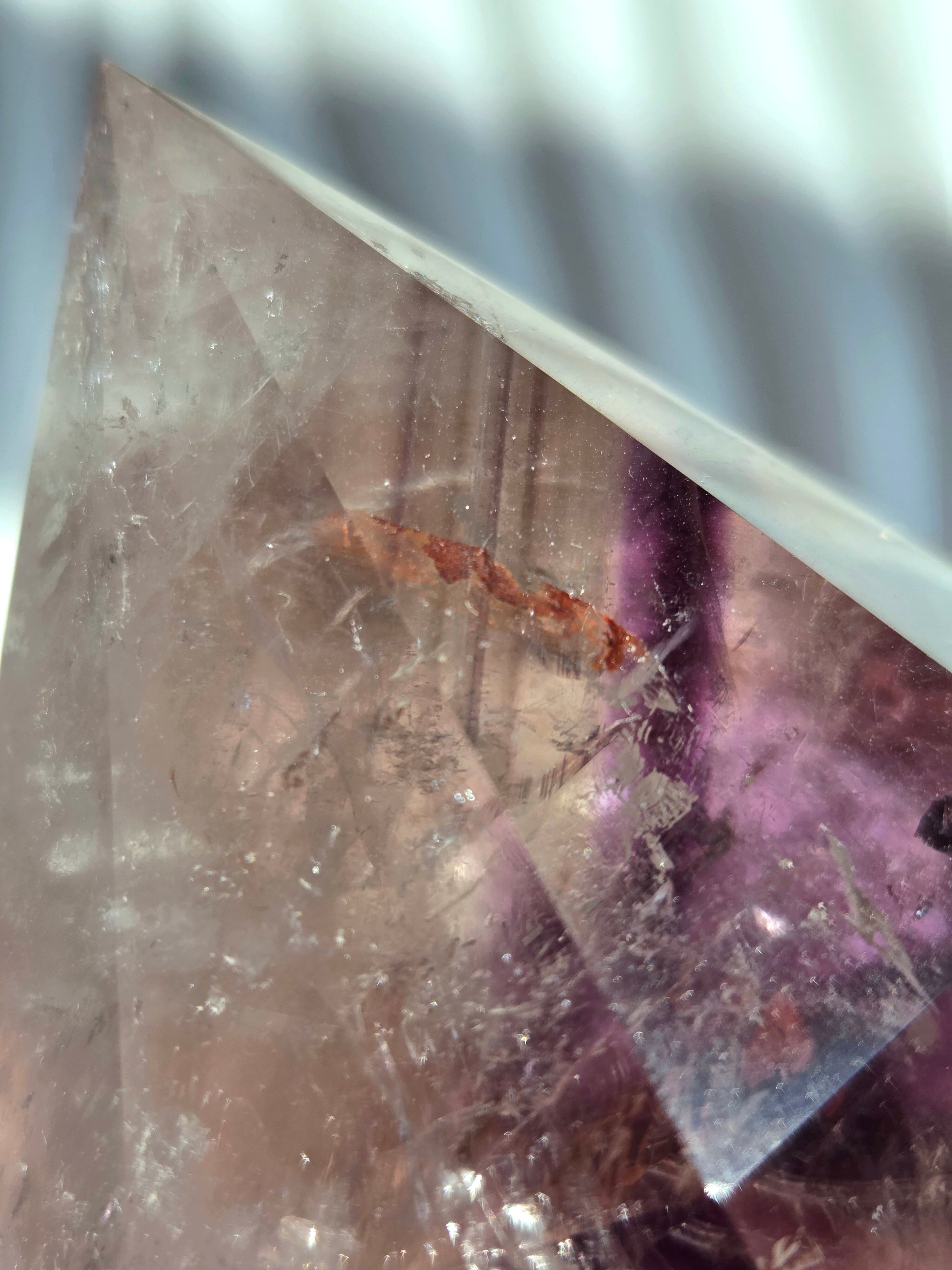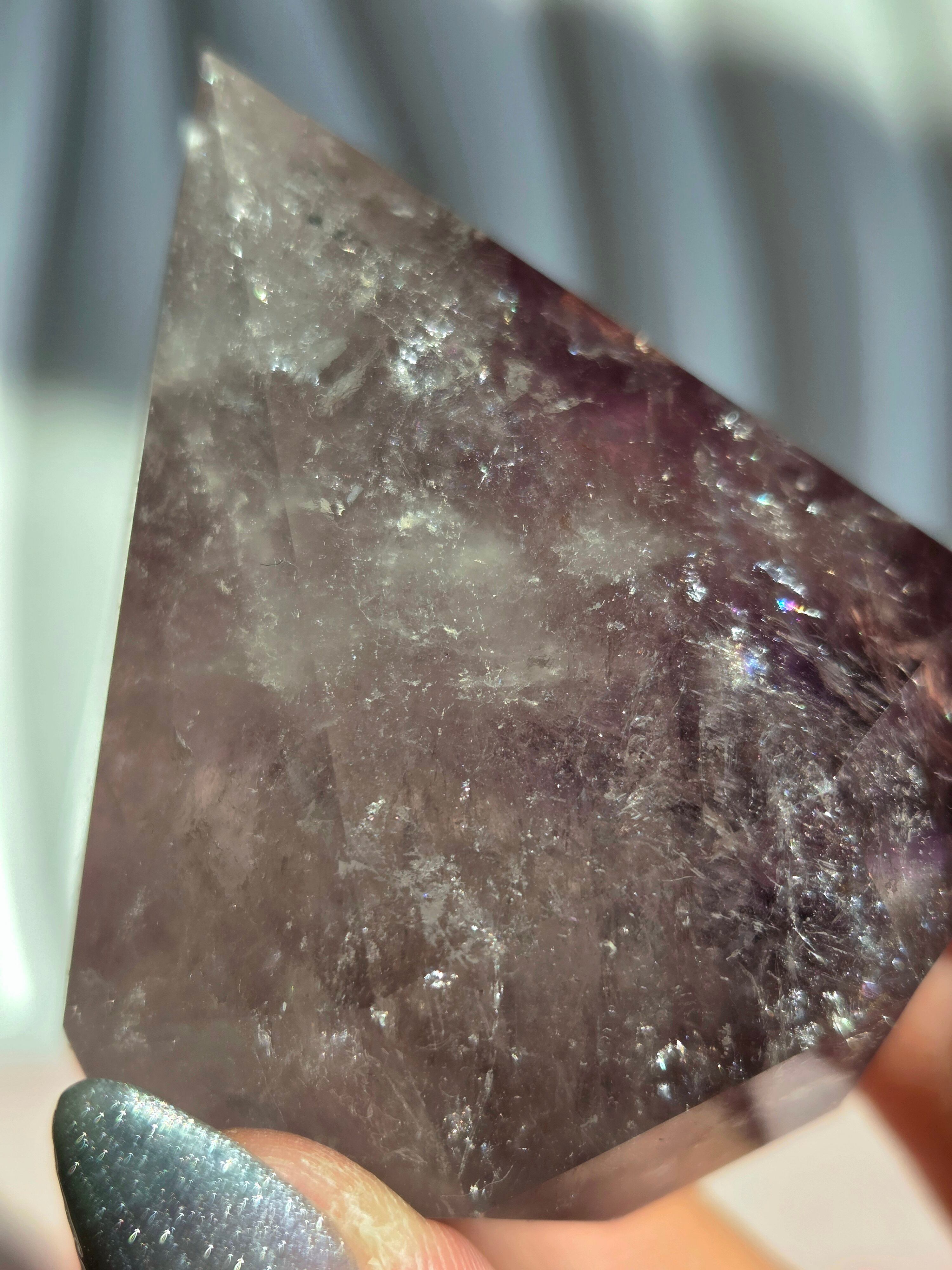 ファントムアメジストは、アメジストの一種で、結晶が成長する過程で一度成長が止まり、再び成長を始める際に、他の鉱物を取り込んだ状態のものを指します。この独特な見た目から「幻影水晶」とも呼ばれ、スピリチュアルな意味や効果を持つとされています。