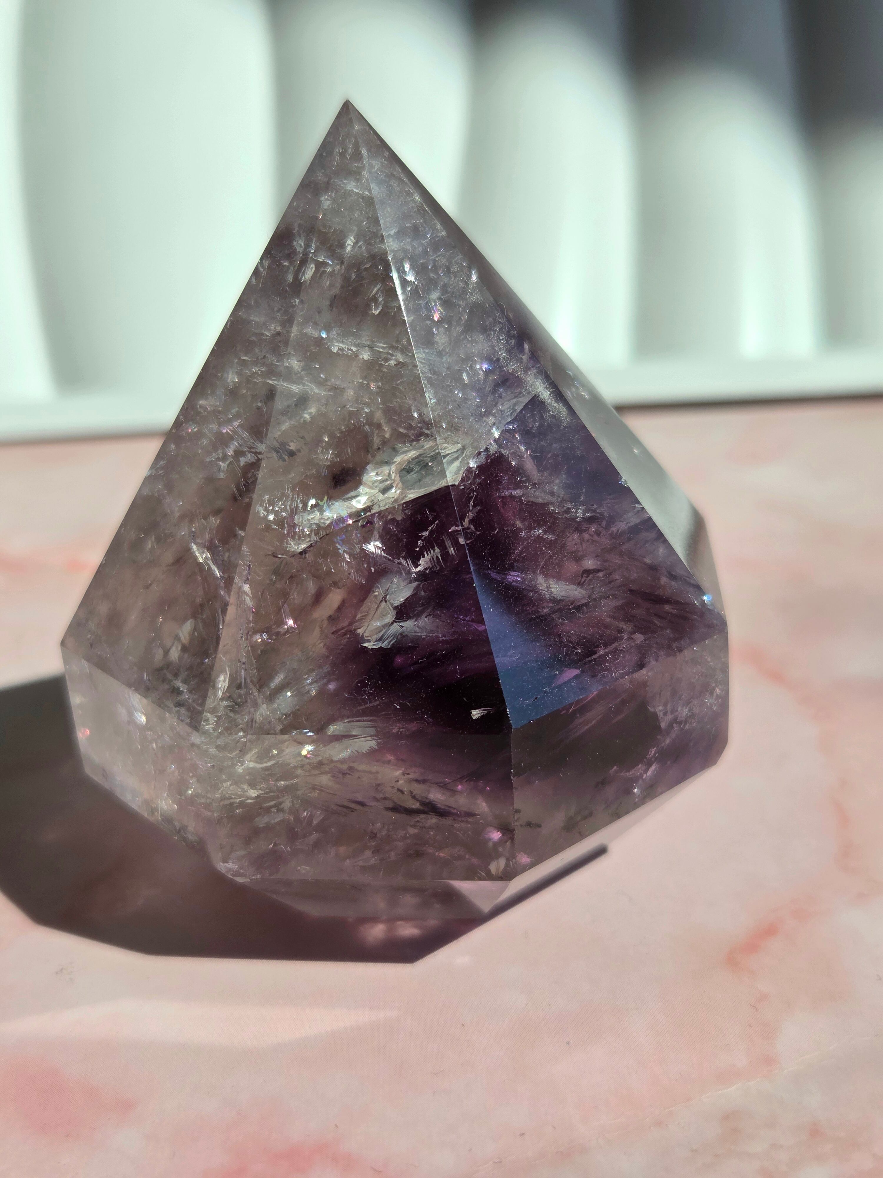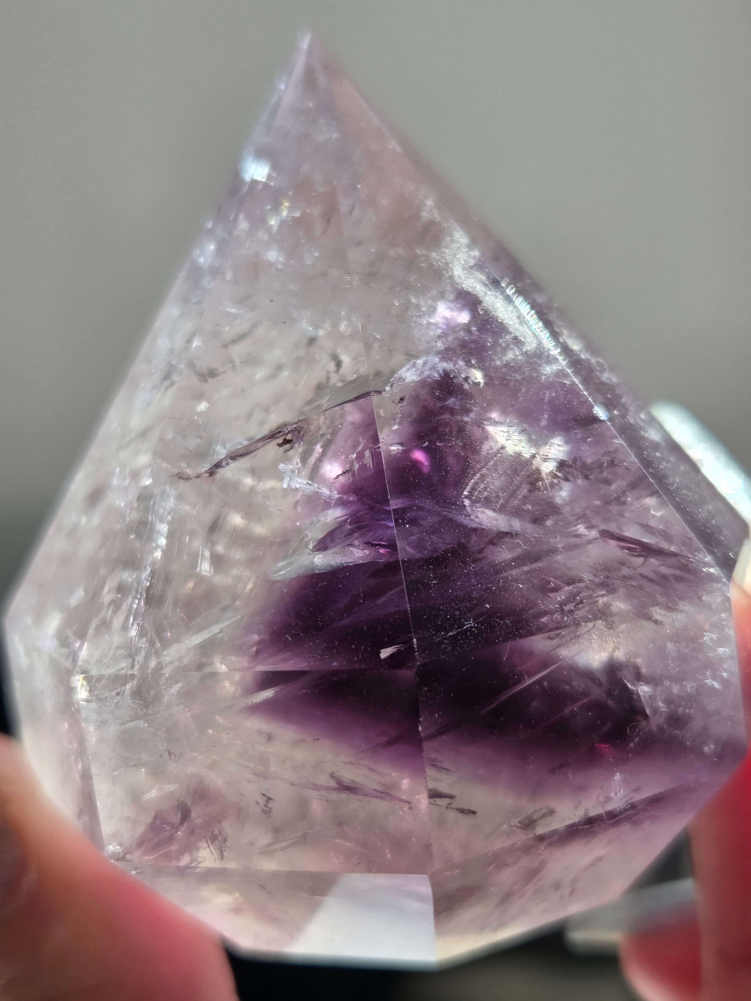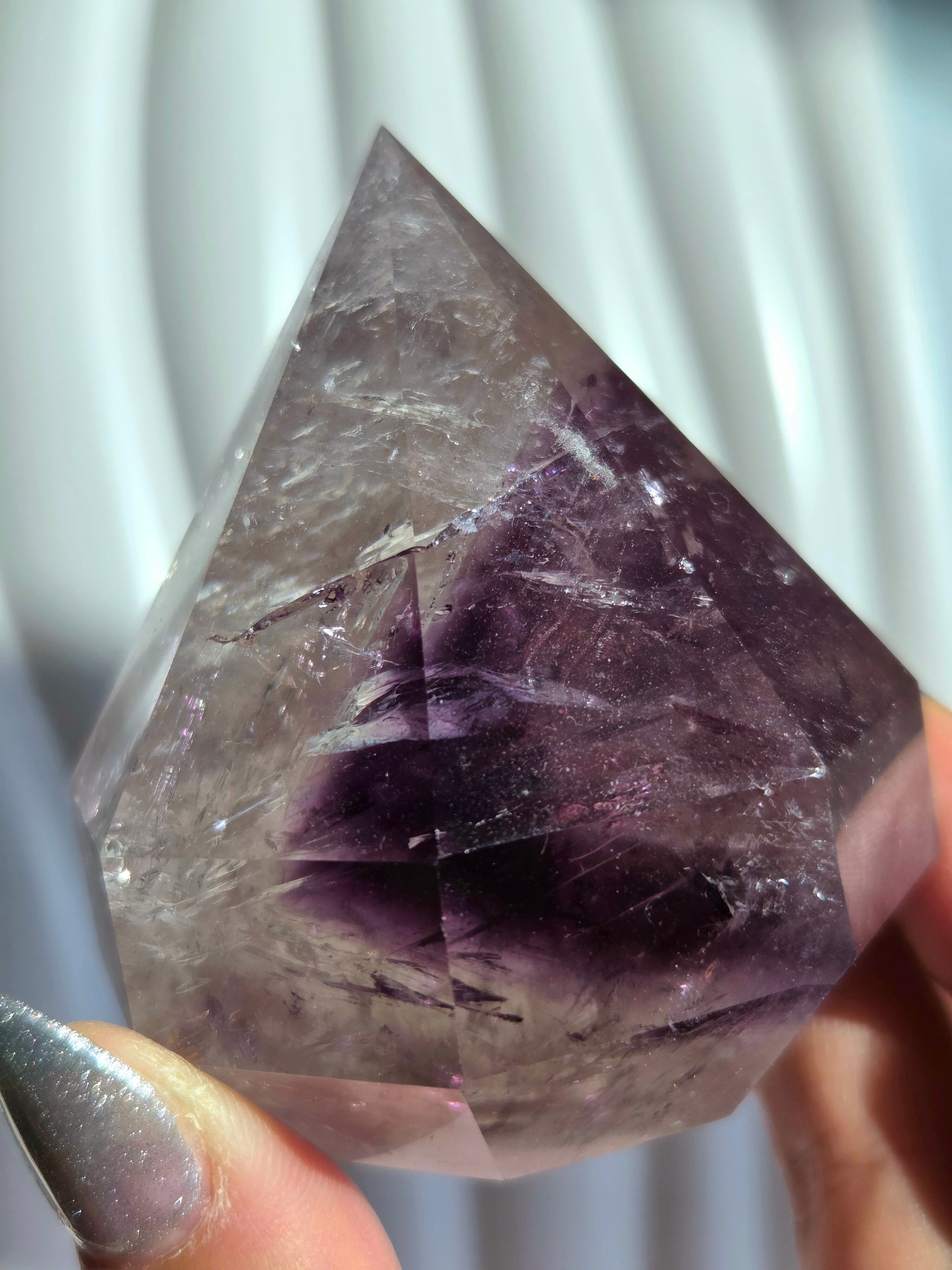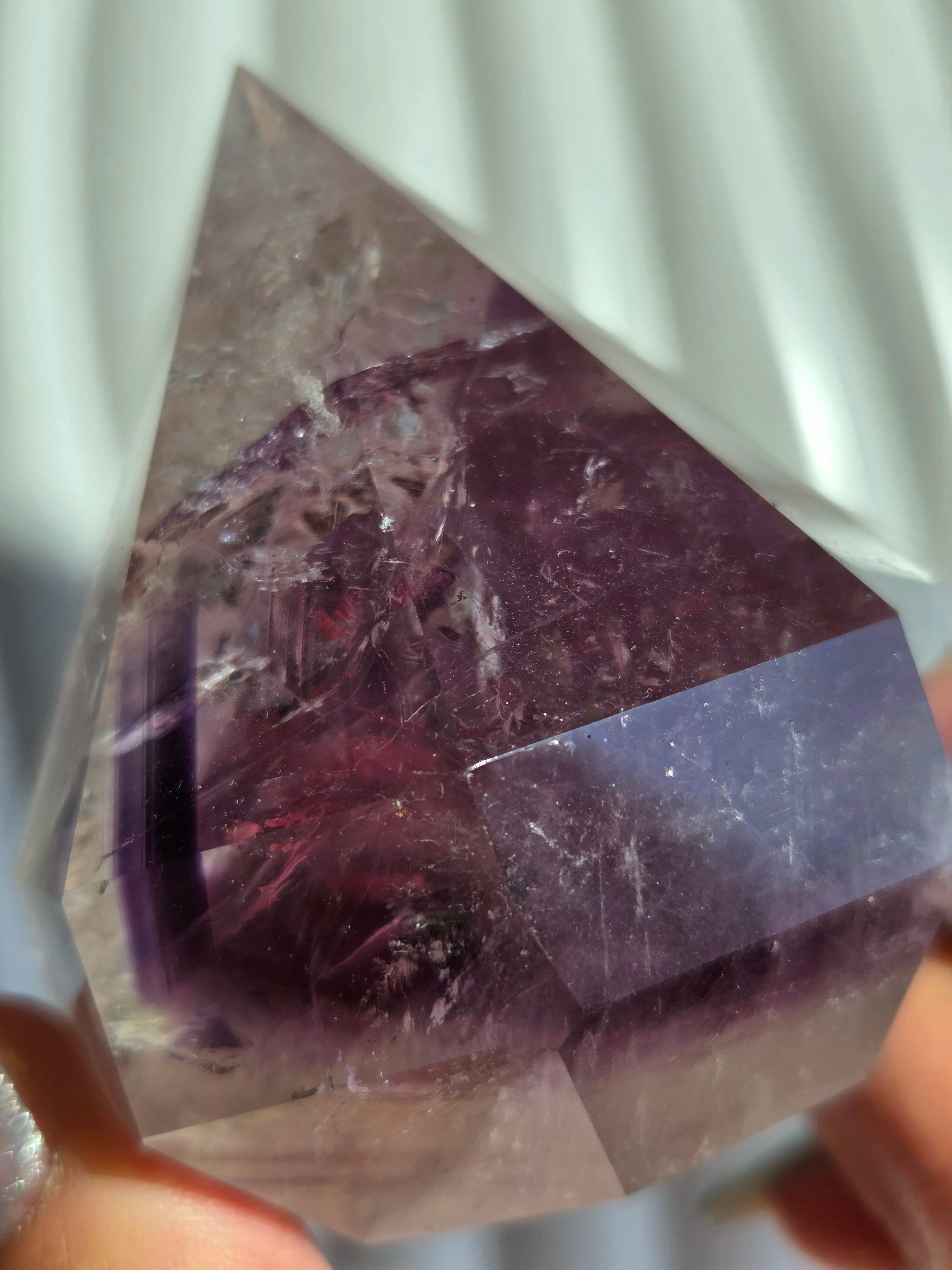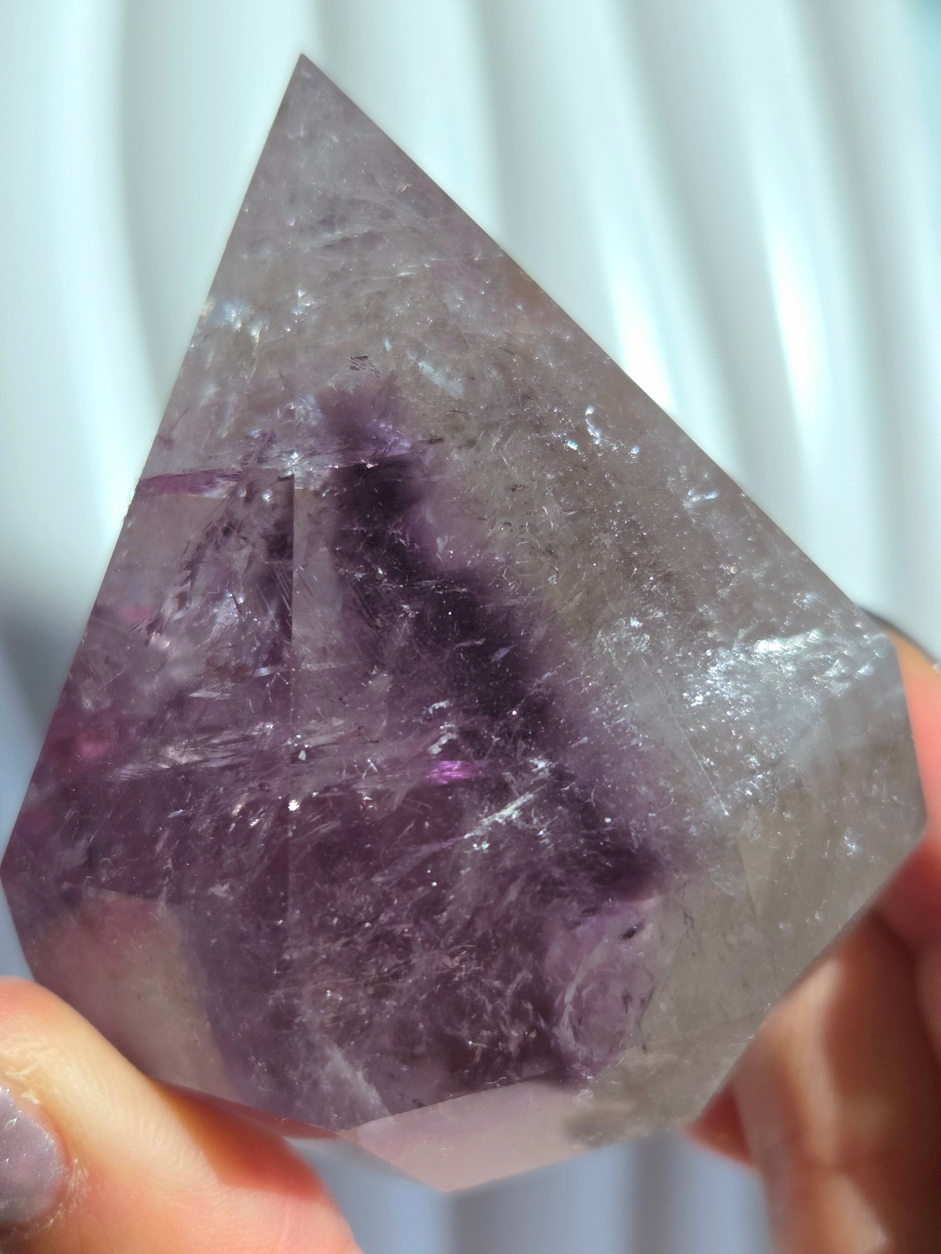 ファントムアメジストは、アメジストの一種で、結晶が成長する過程で一度成長が止まり、再び成長を始める際に、他の鉱物を取り込んだ状態のものを指します。この独特な見た目から「幻影水晶」とも呼ばれ、スピリチュアルな意味や効果を持つとされています。