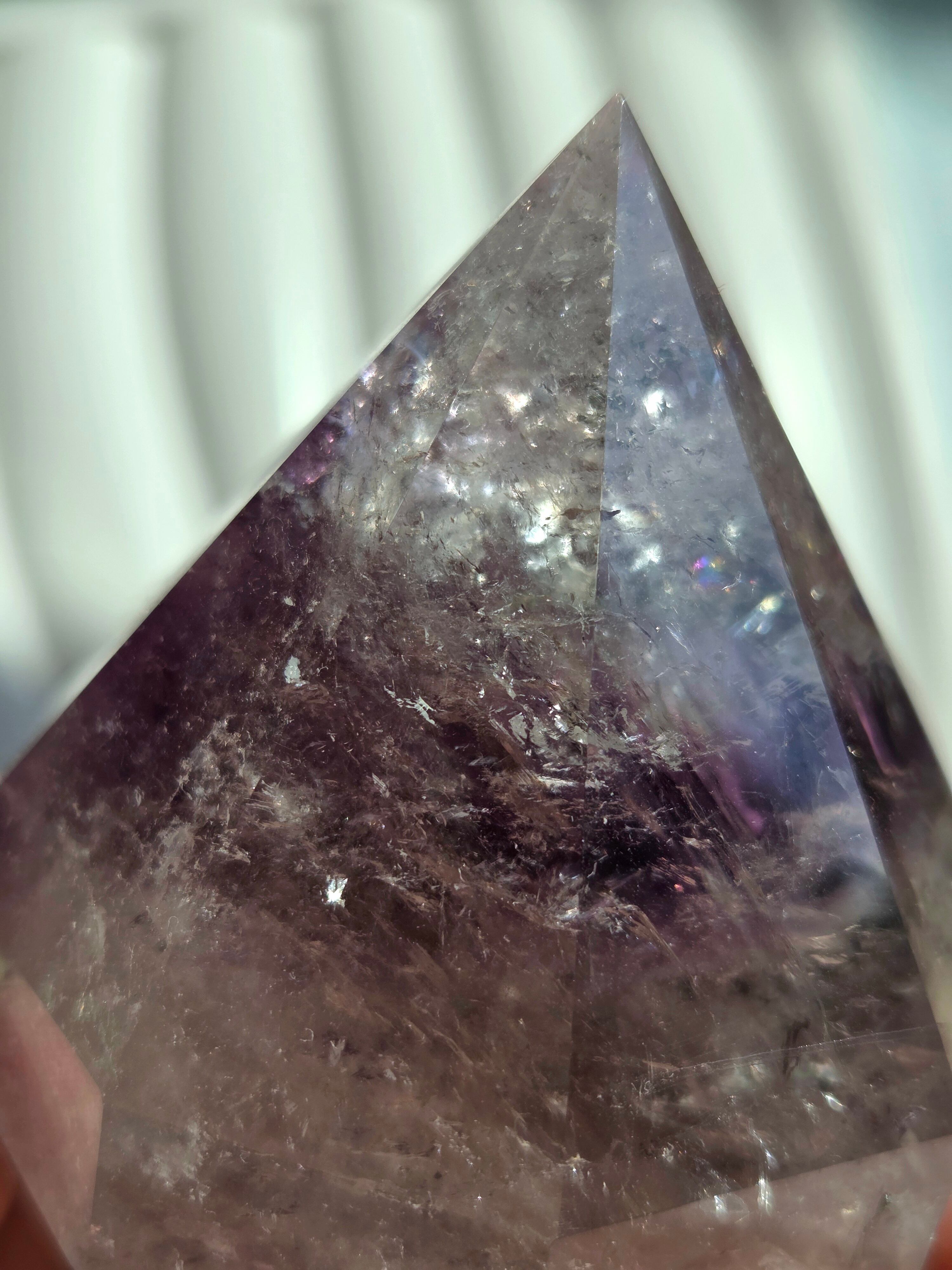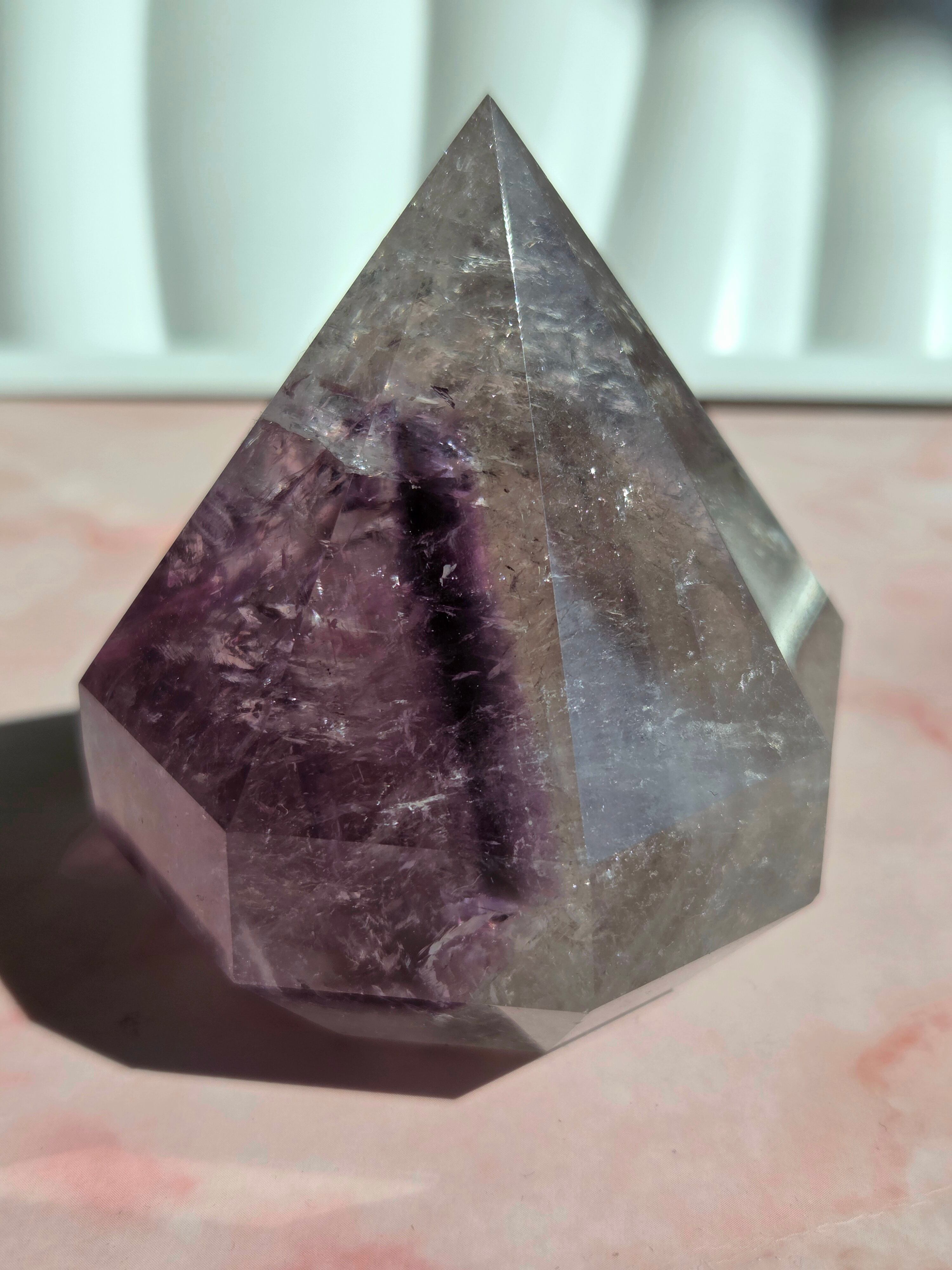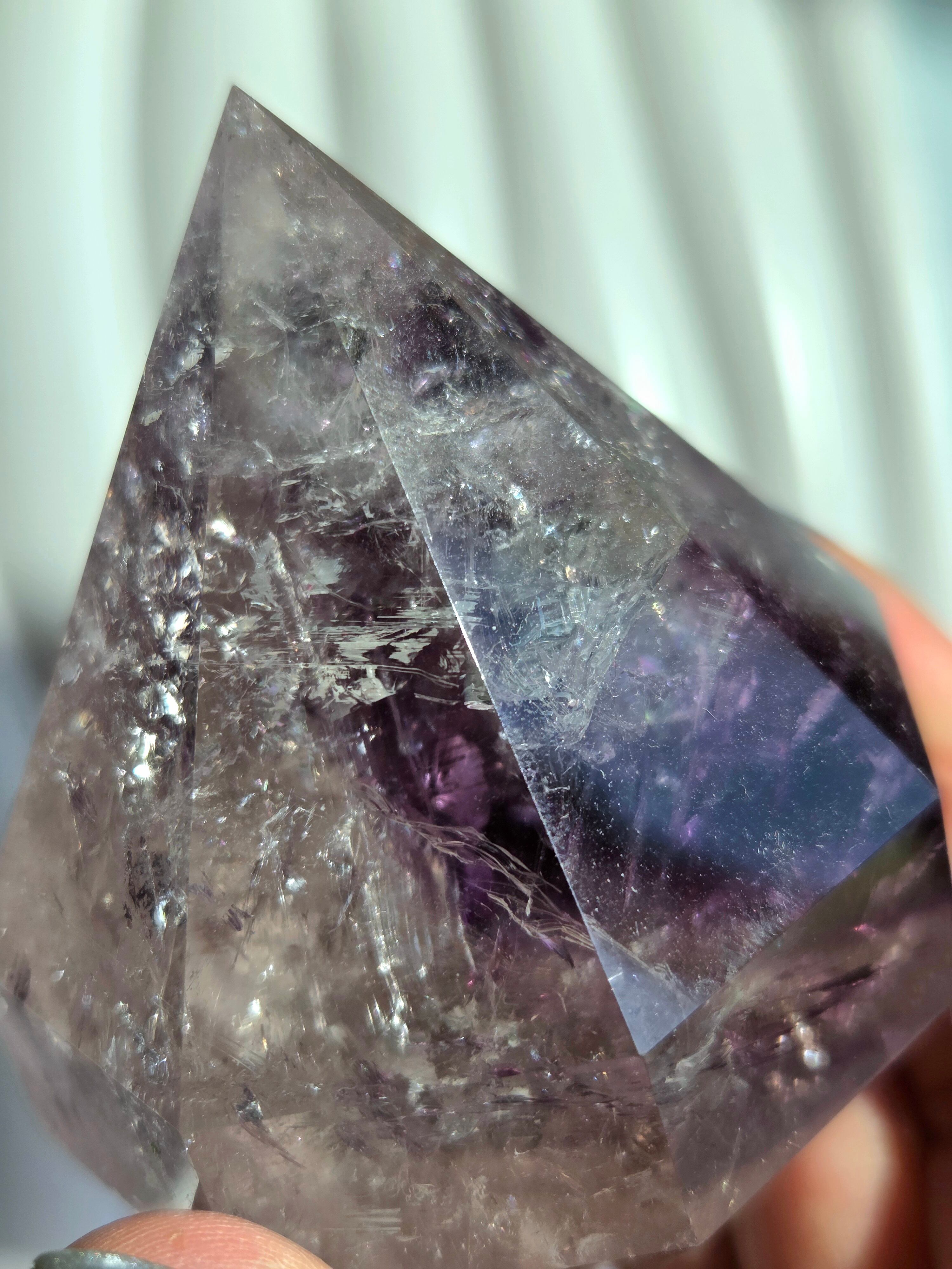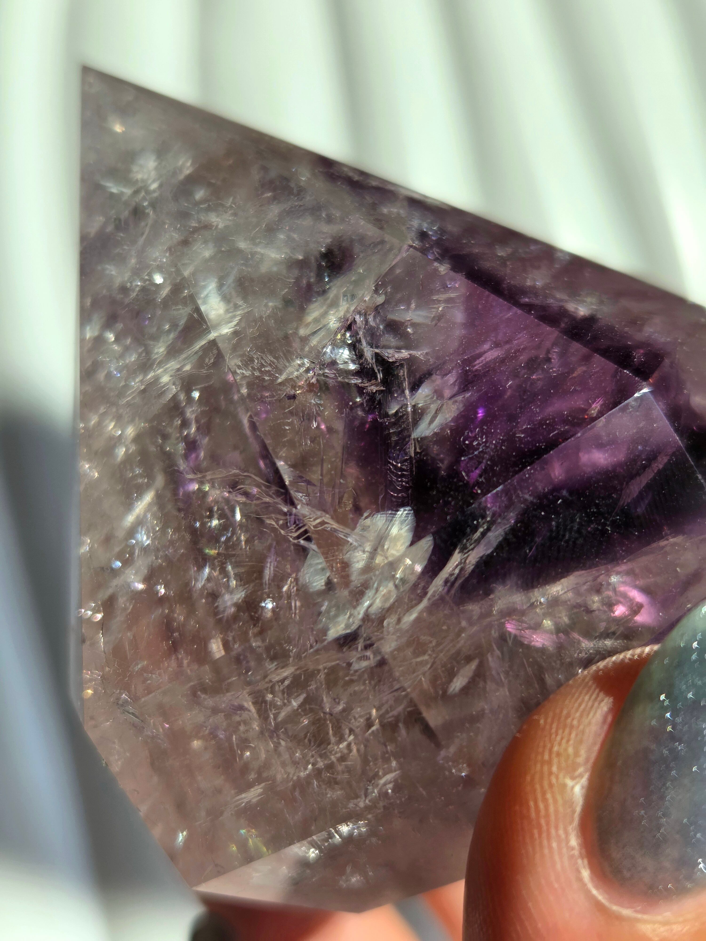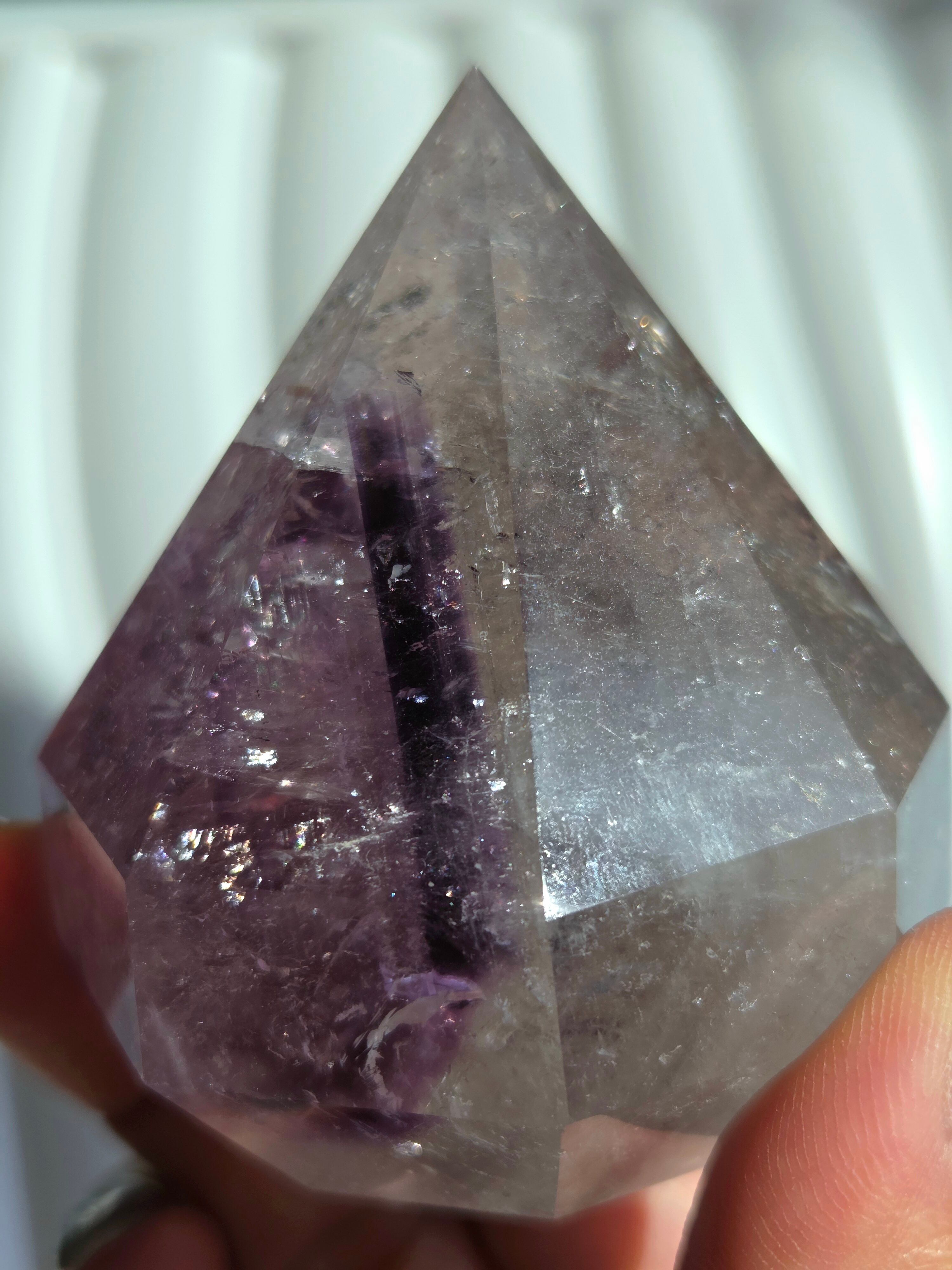 ファントムアメジストは、アメジストの一種で、結晶が成長する過程で一度成長が止まり、再び成長を始める際に、他の鉱物を取り込んだ状態のものを指します。この独特な見た目から「幻影水晶」とも呼ばれ、スピリチュアルな意味や効果を持つとされています。