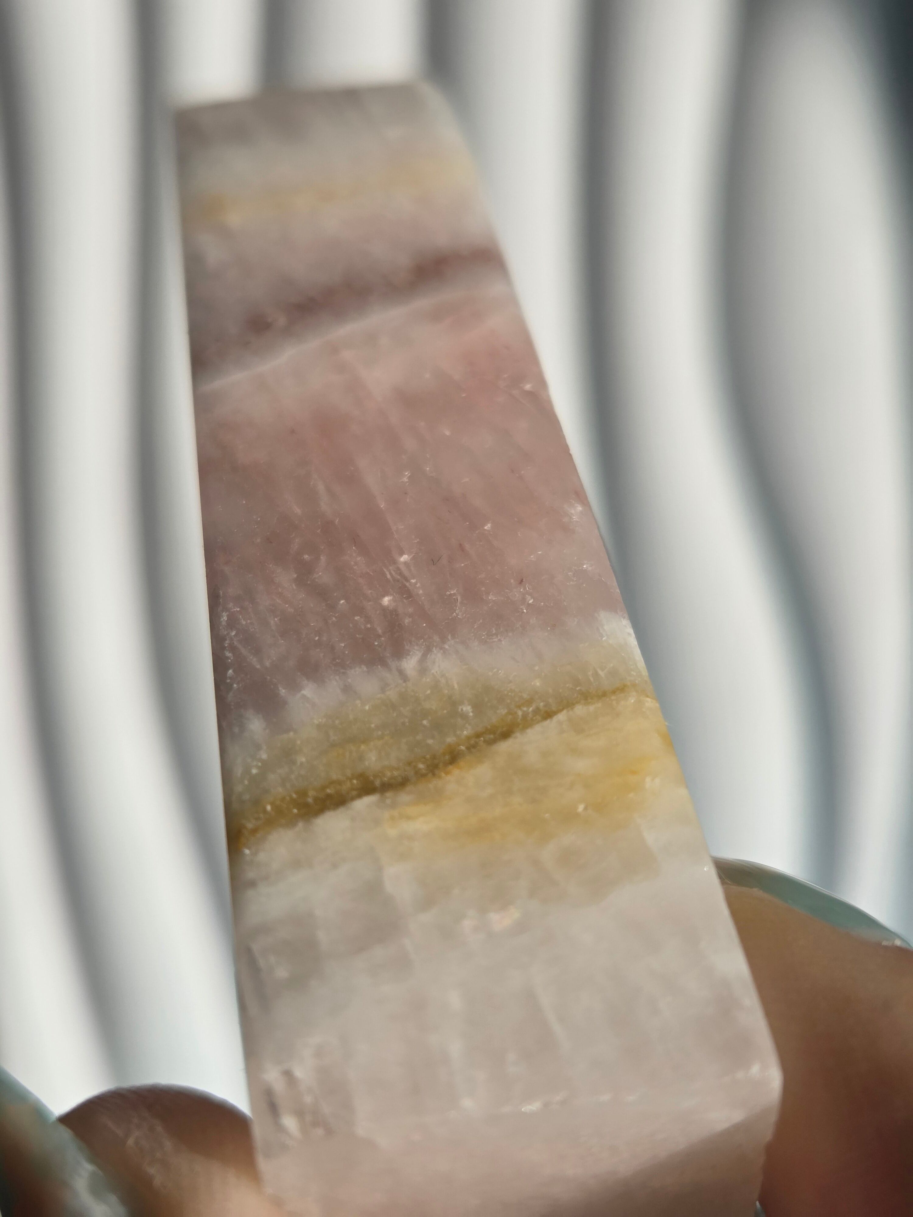 パキスタン産ピンクアラゴナイトポイントタワーです。
