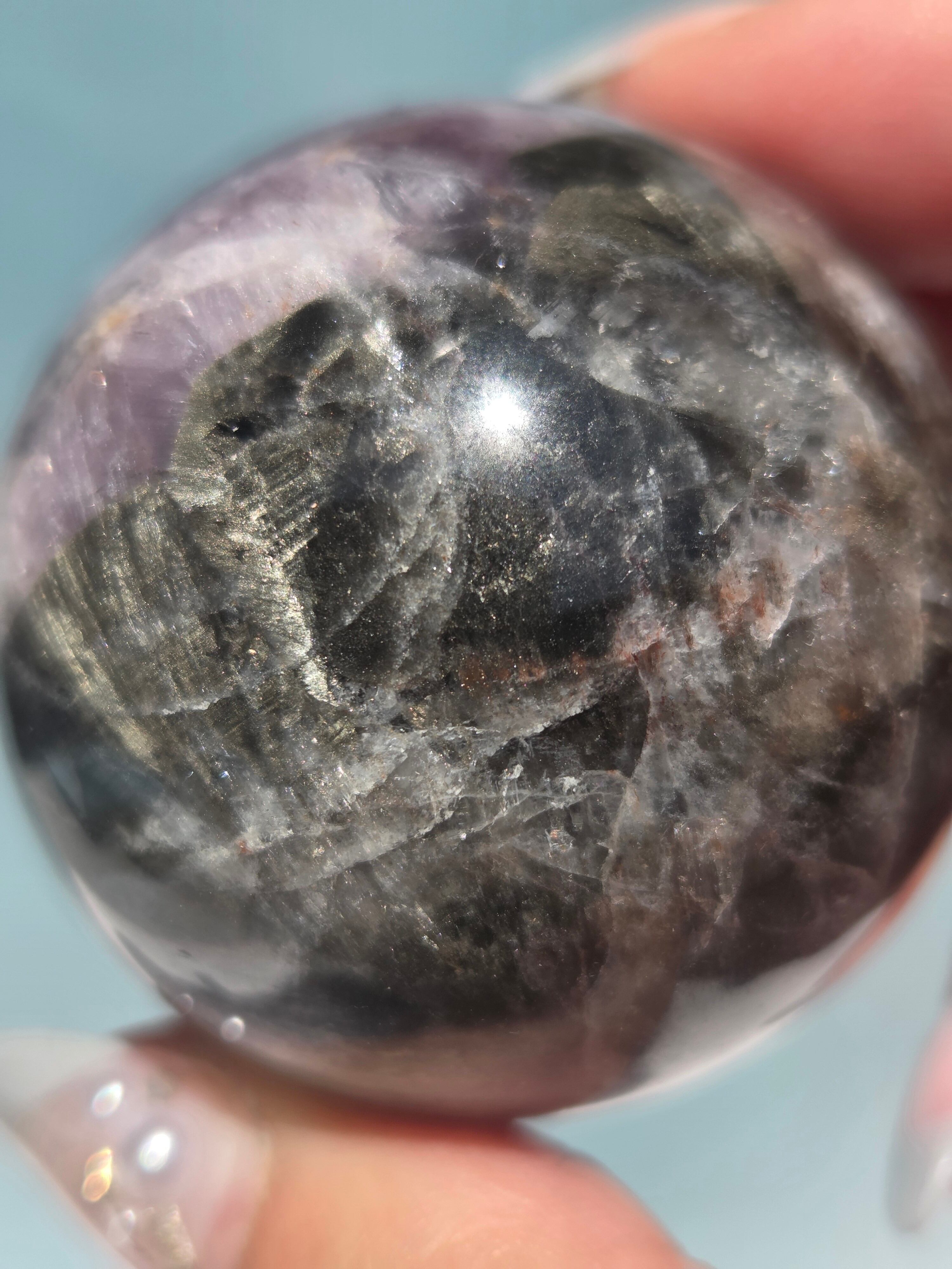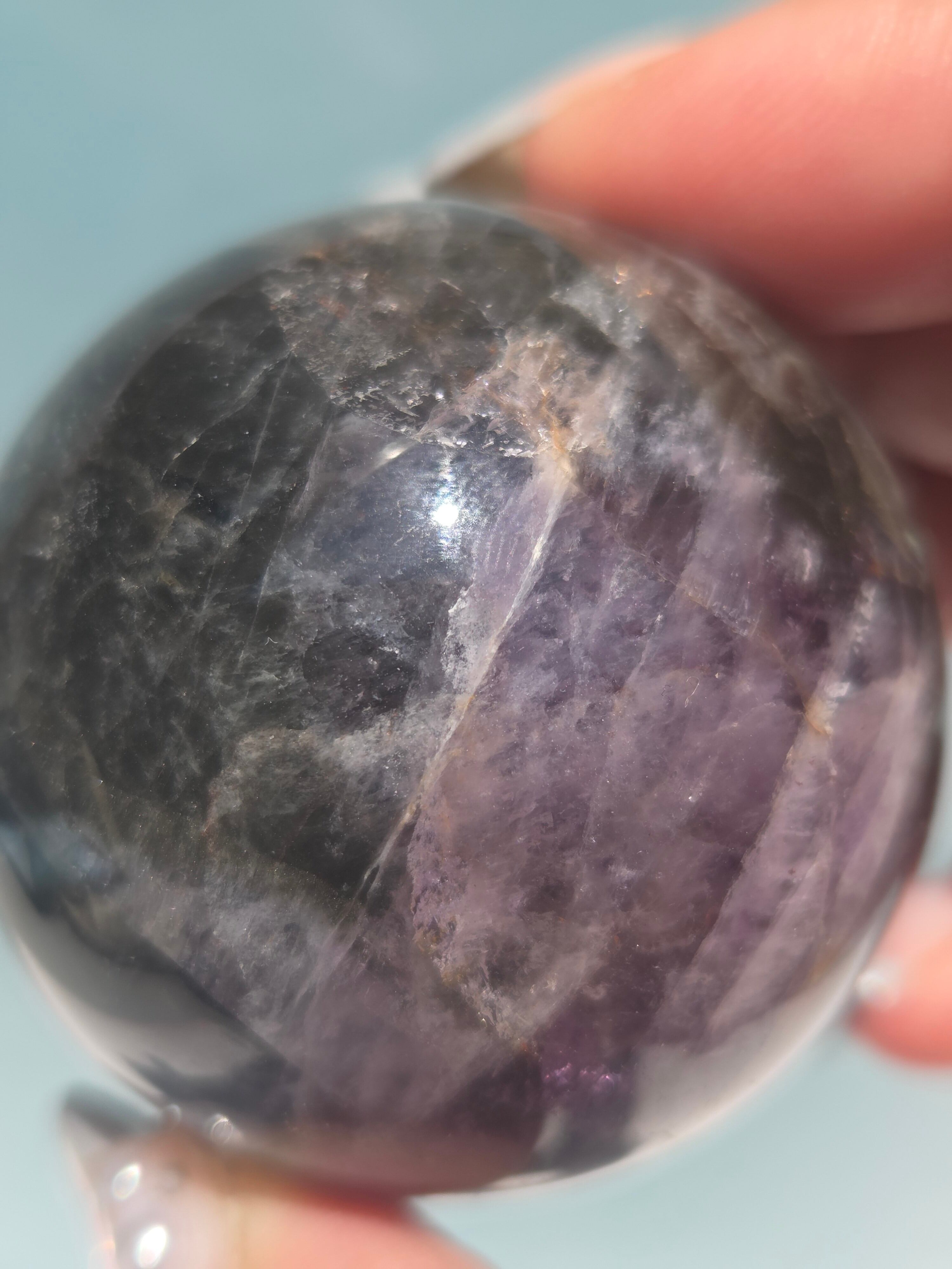 そのため、茶色や赤色のインクルージョンがある紫色のアメジストのような外見をしており、中にはアメジストと見間違えるものもあるぐらいです。