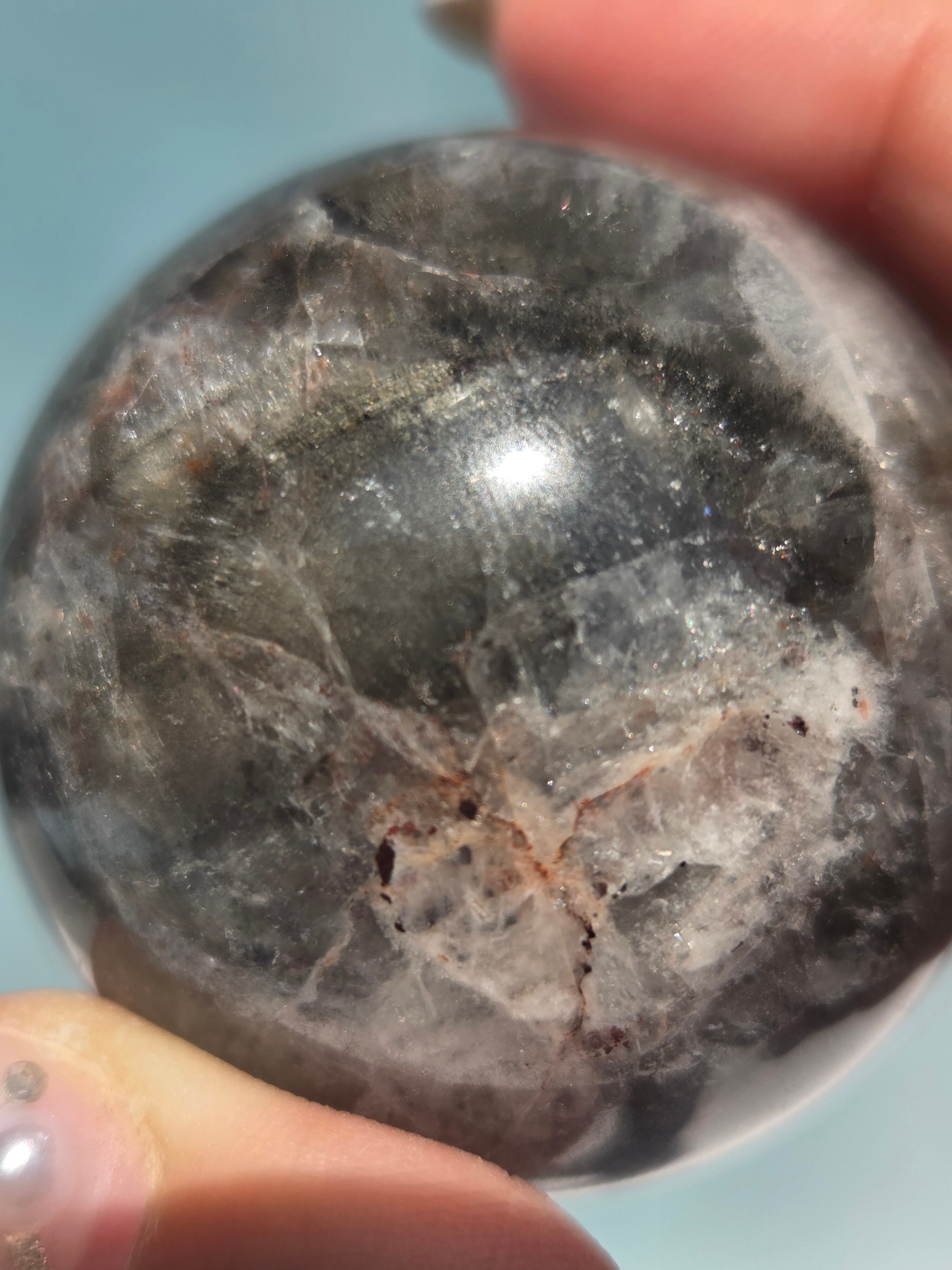 オーラライト23に混ざっている23種の鉱物とは、チタナイト、カコクセナイト、レピドクロサイト、アジョイト、ヘマタイト、マグネタイト、パイライト、ゲーサイト、パイロリューサイト、金、銀、銅、鉄、プラチナ、ニッケル、リモナイト、スファレライト、コヴェライト、チャルコパイライト、ガイアライト、エピドート、ボルナイト、ルチルになります。