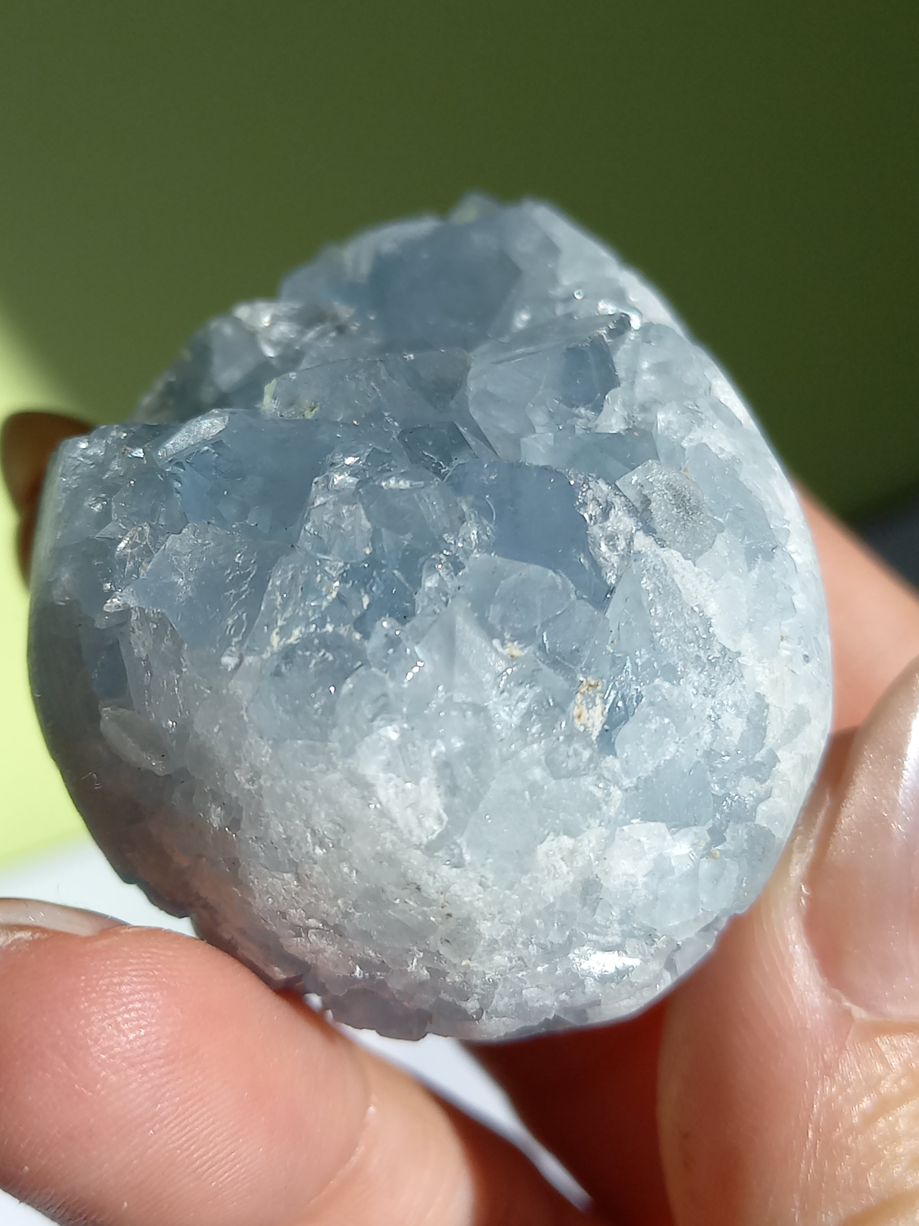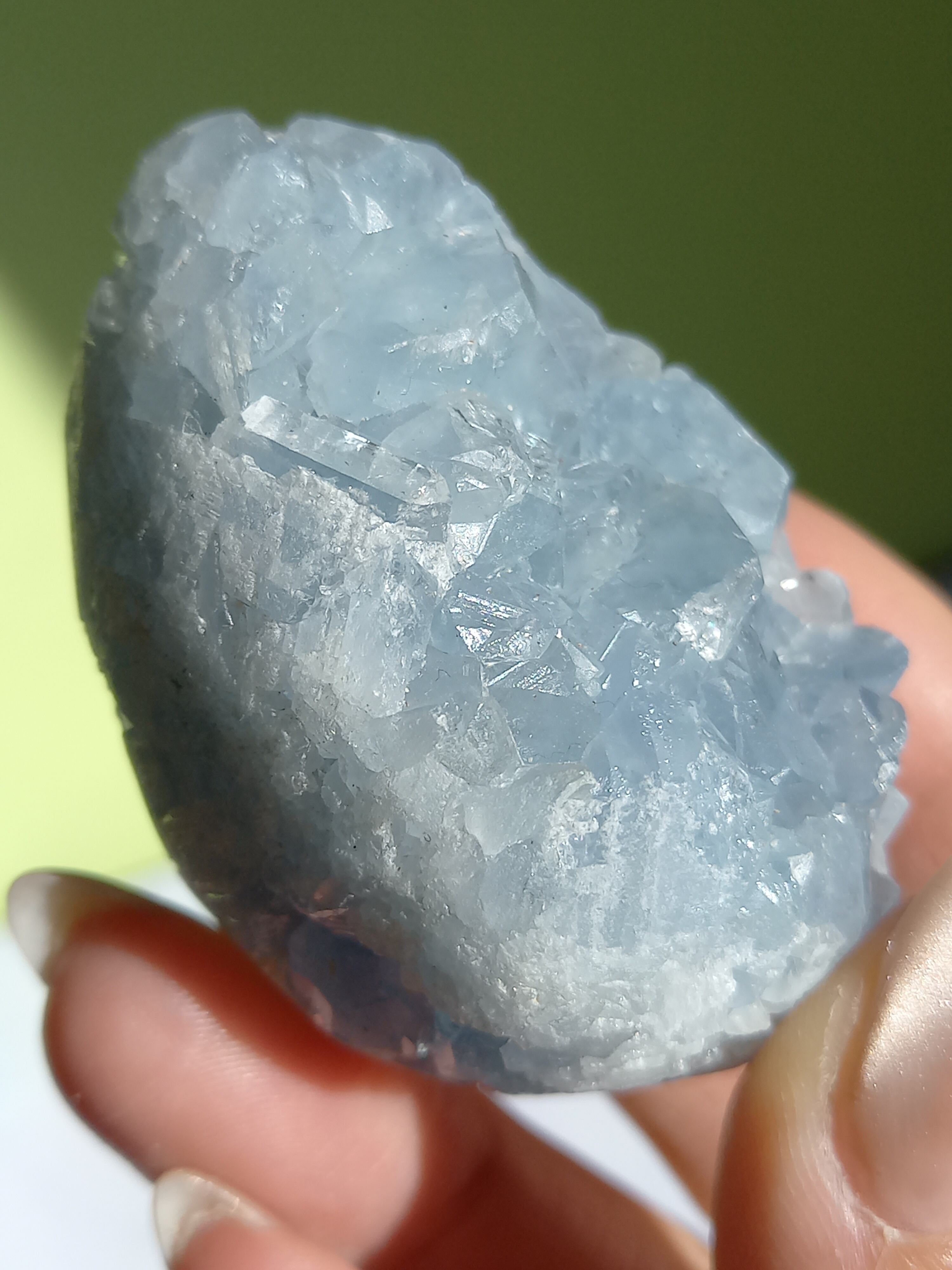 ころんとしたフォルムが、可愛い、セレスタイトエッグフォームクラスターです。