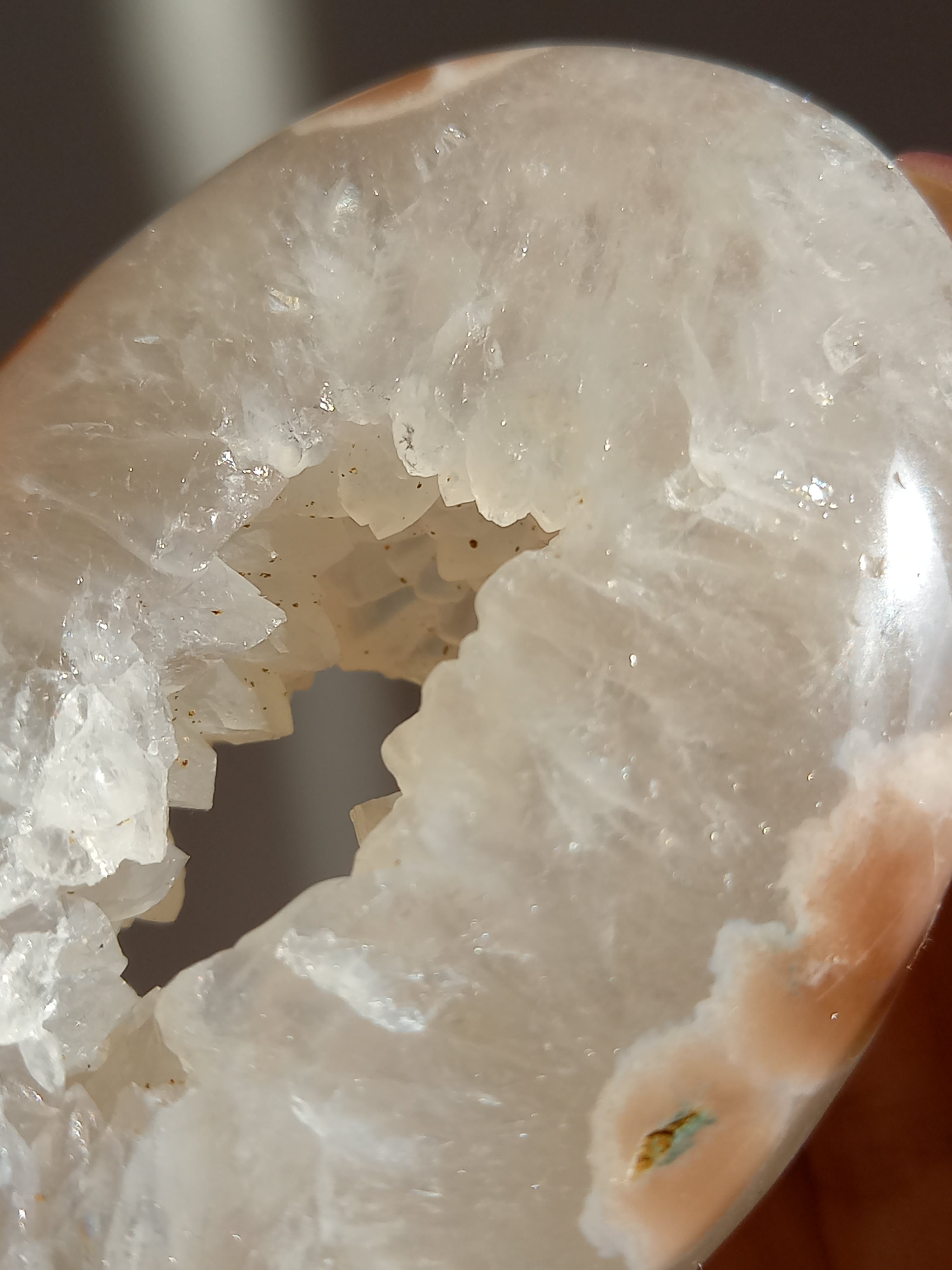 アメジストに、フラワーアゲートが共生したパームになります。キラキラな結晶に、お花が素敵です。