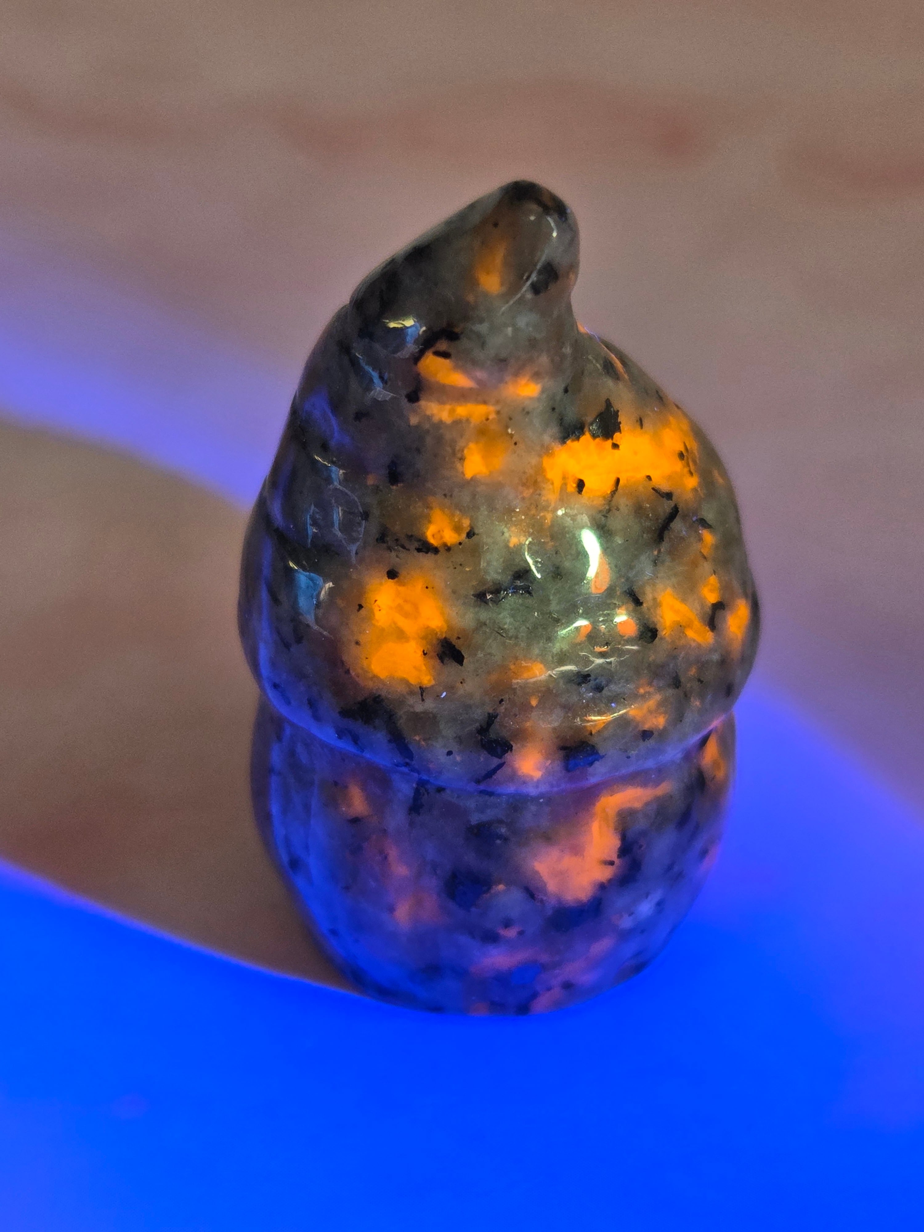 ユーパーライトは、一見どこにでもあるような石のようですが、紫外線を当てることでオレンジやピンクなどに光る特性を持っている神秘的な石です。
