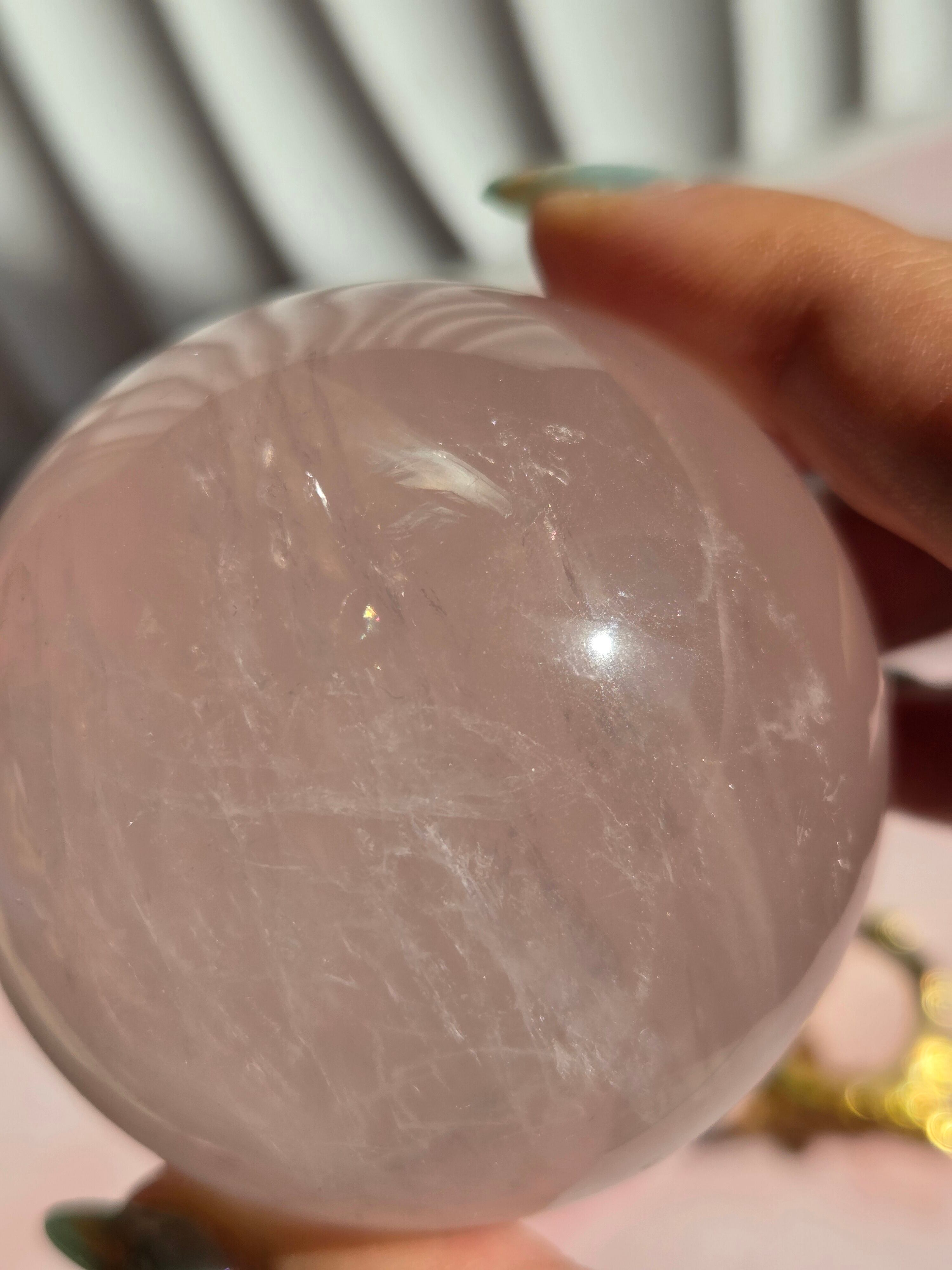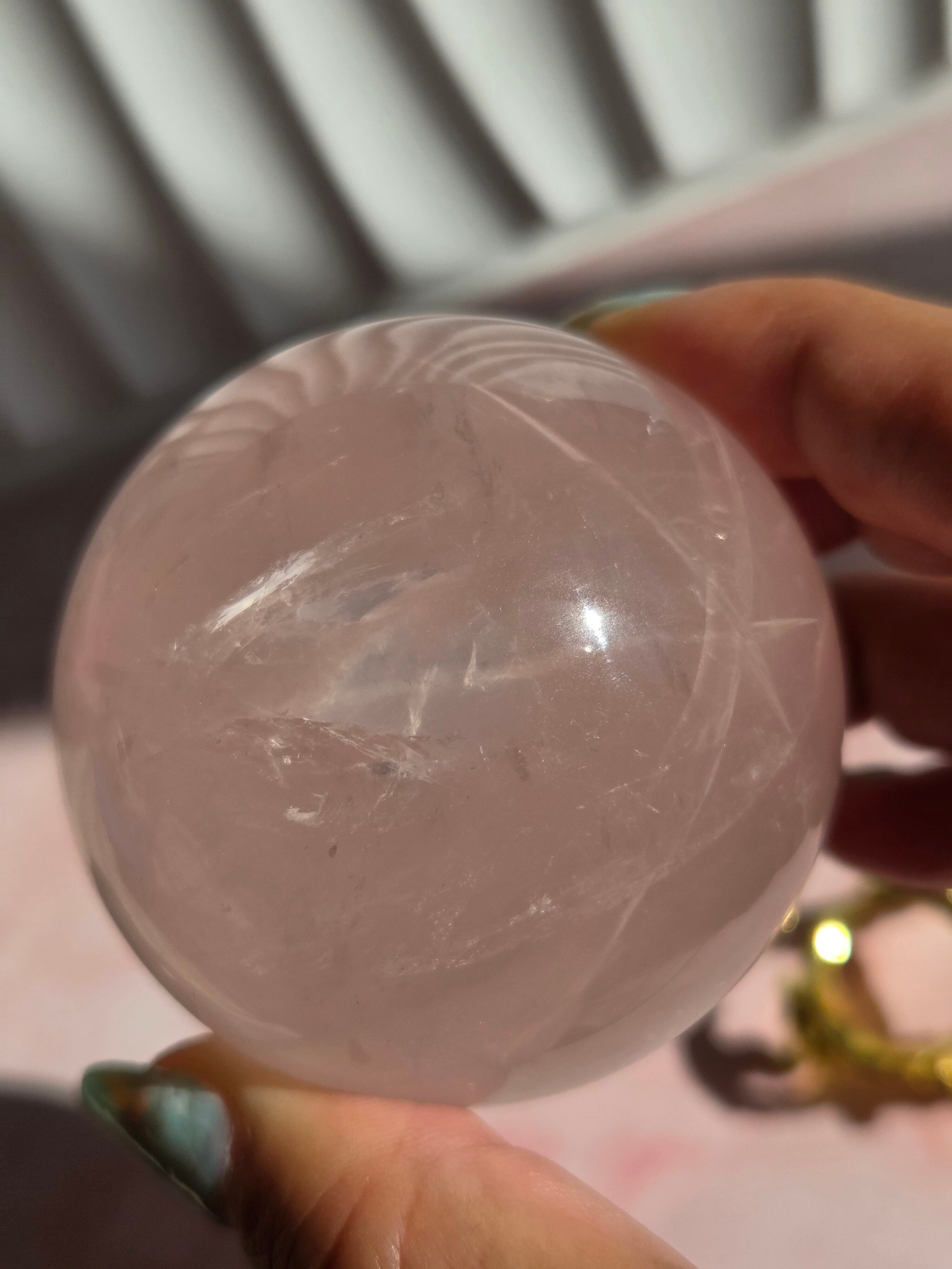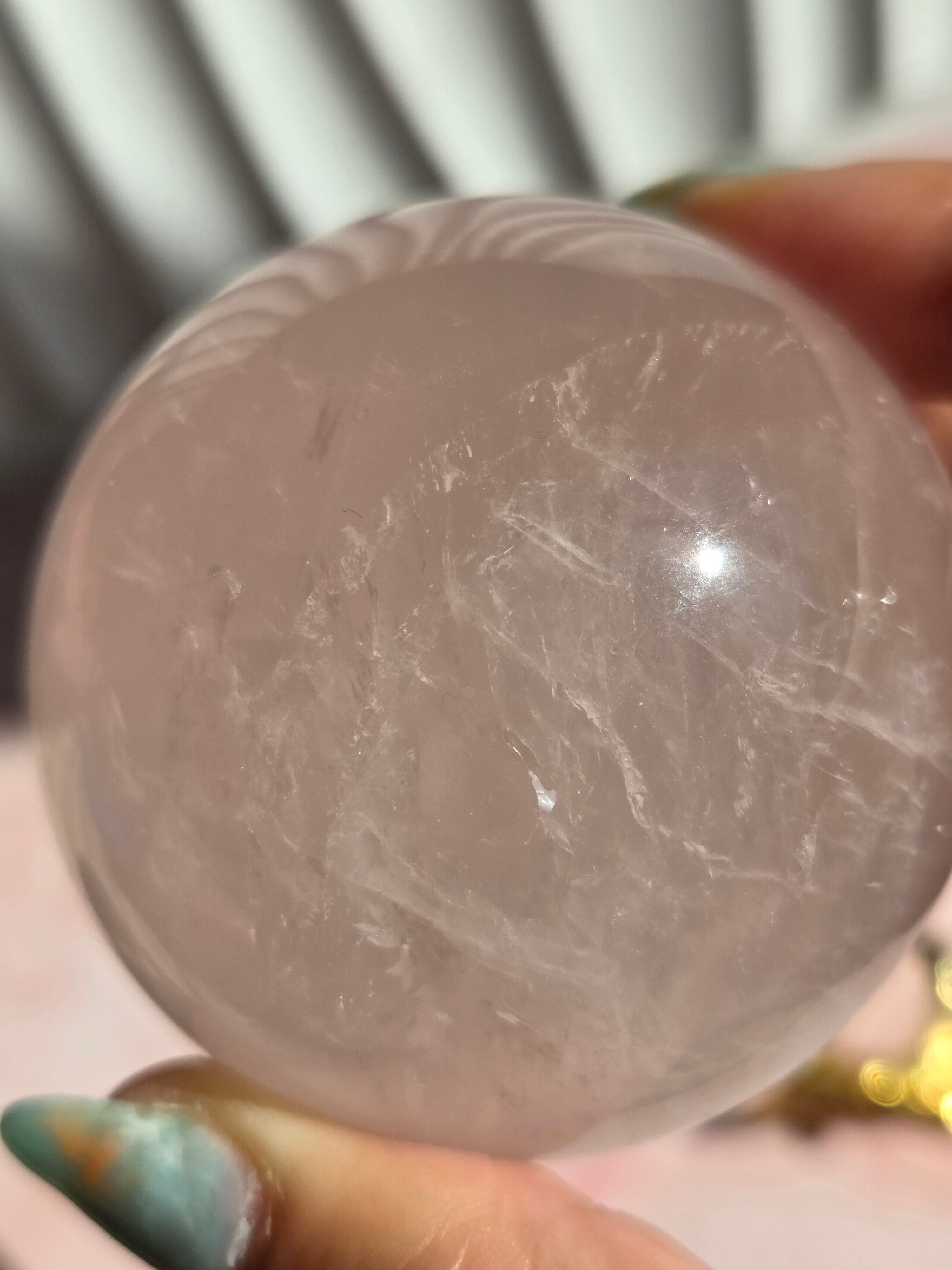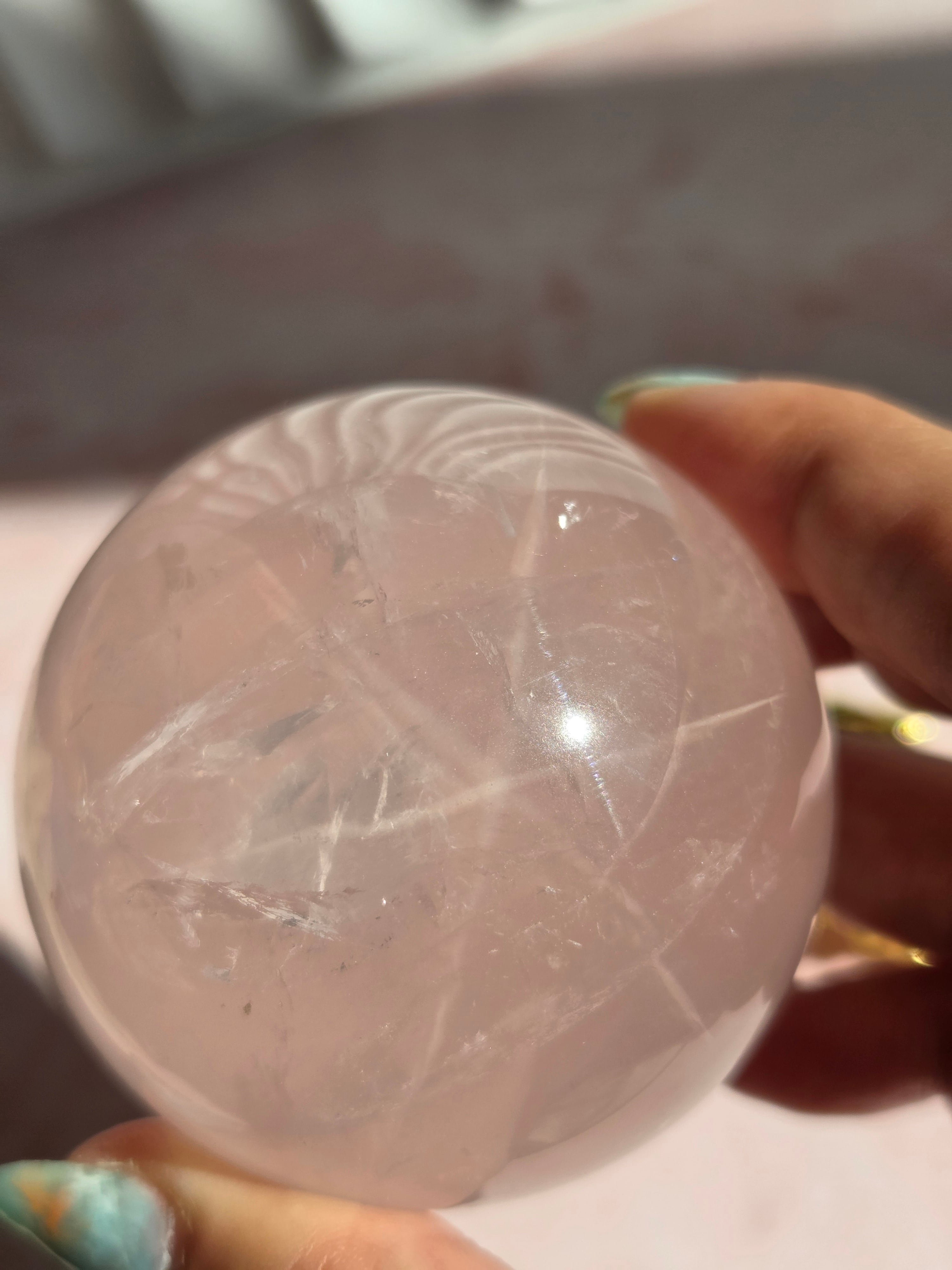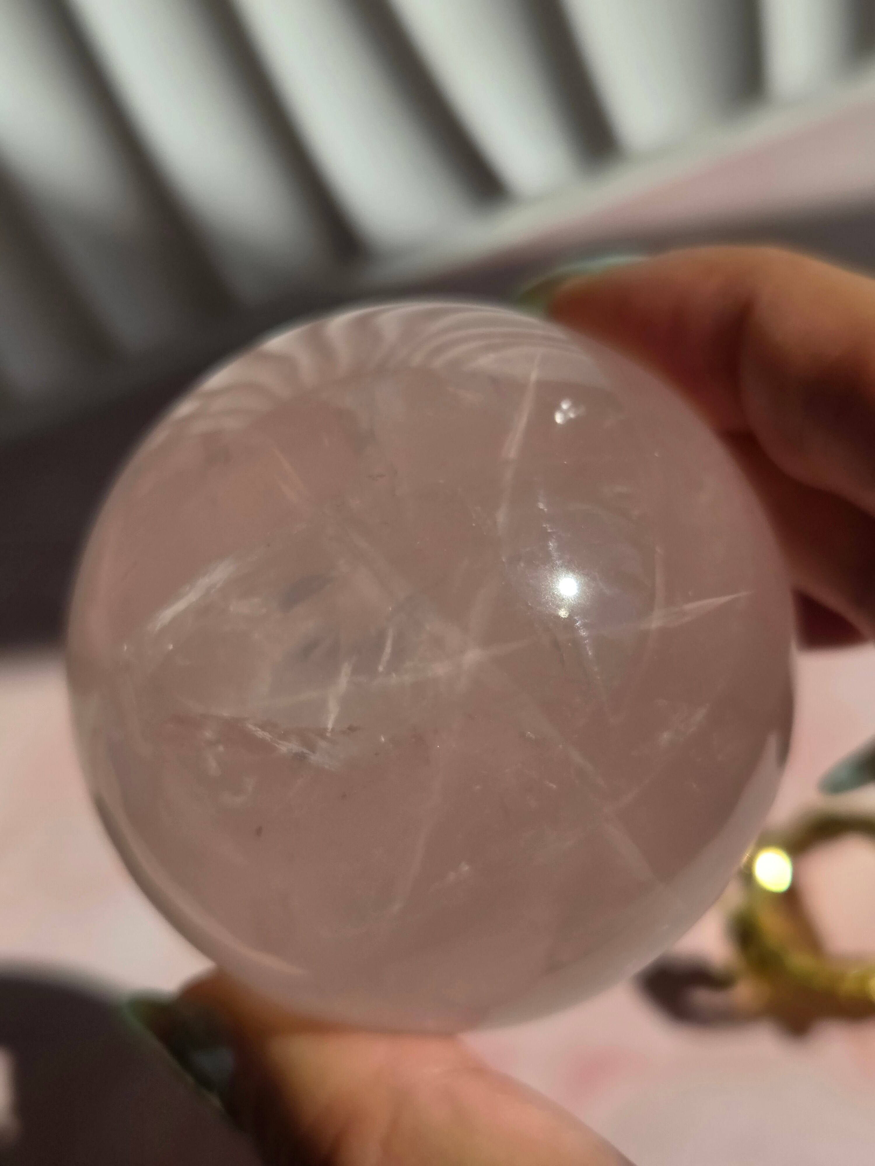 スター効果(星彩効果)は針状のルチルなどを内包することで光を当てた際、複数の光の線が交差して見える効果を指します。 その光り方が夜空の星の光線に似ていることからスター効果と呼ばれています。 ローズクォーツ以外ではルビーやサファイアなどのコランダム系の鉱物によくみられる効果です。
