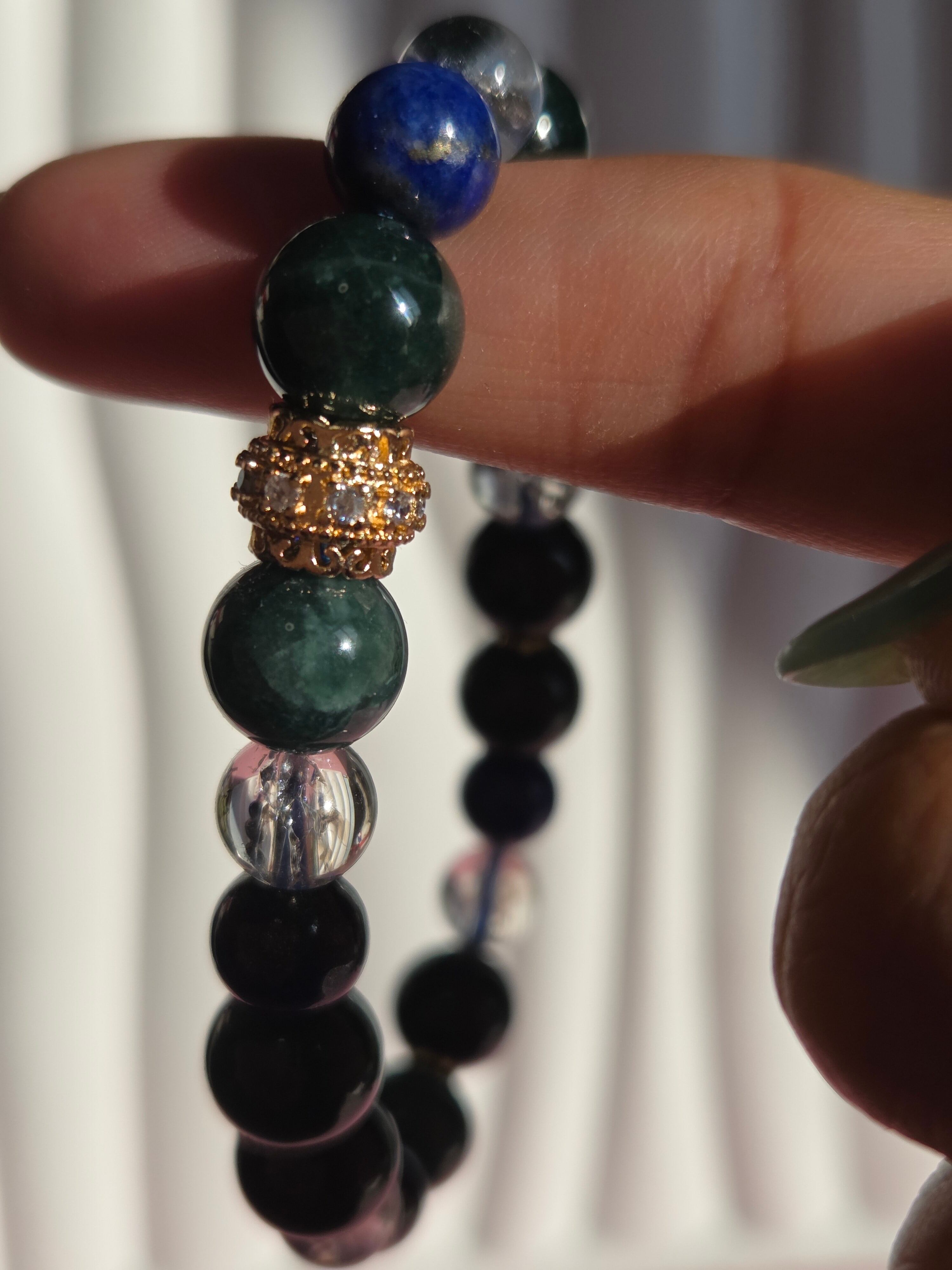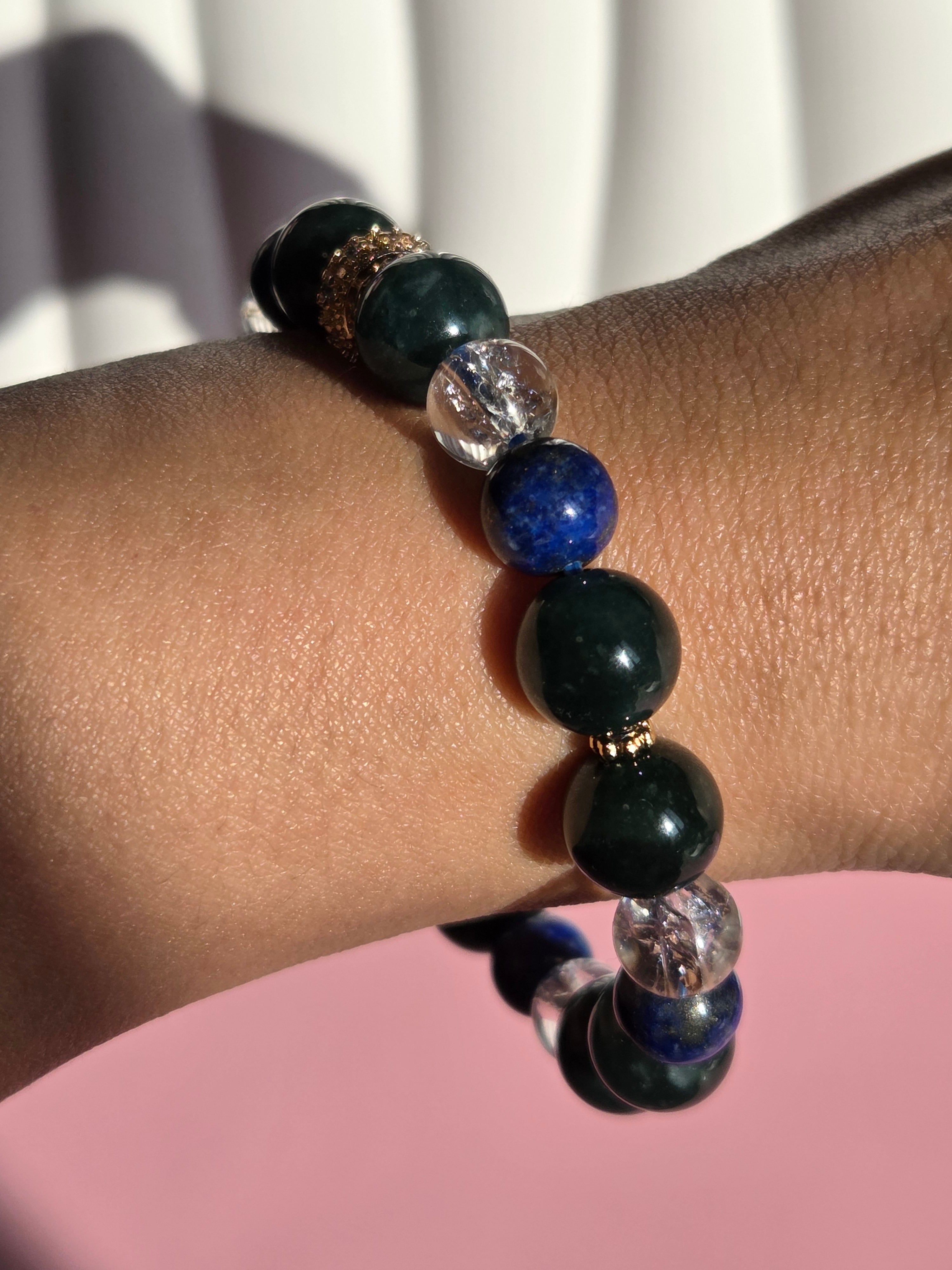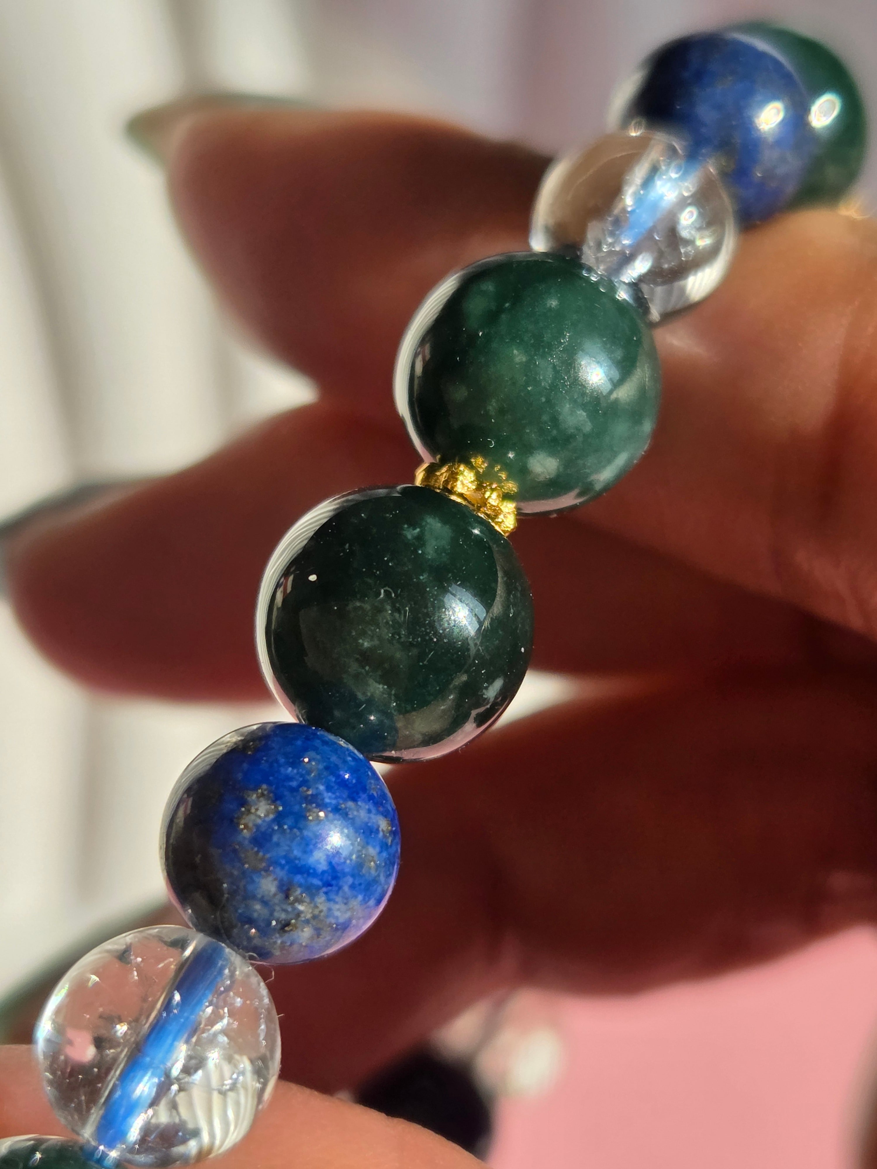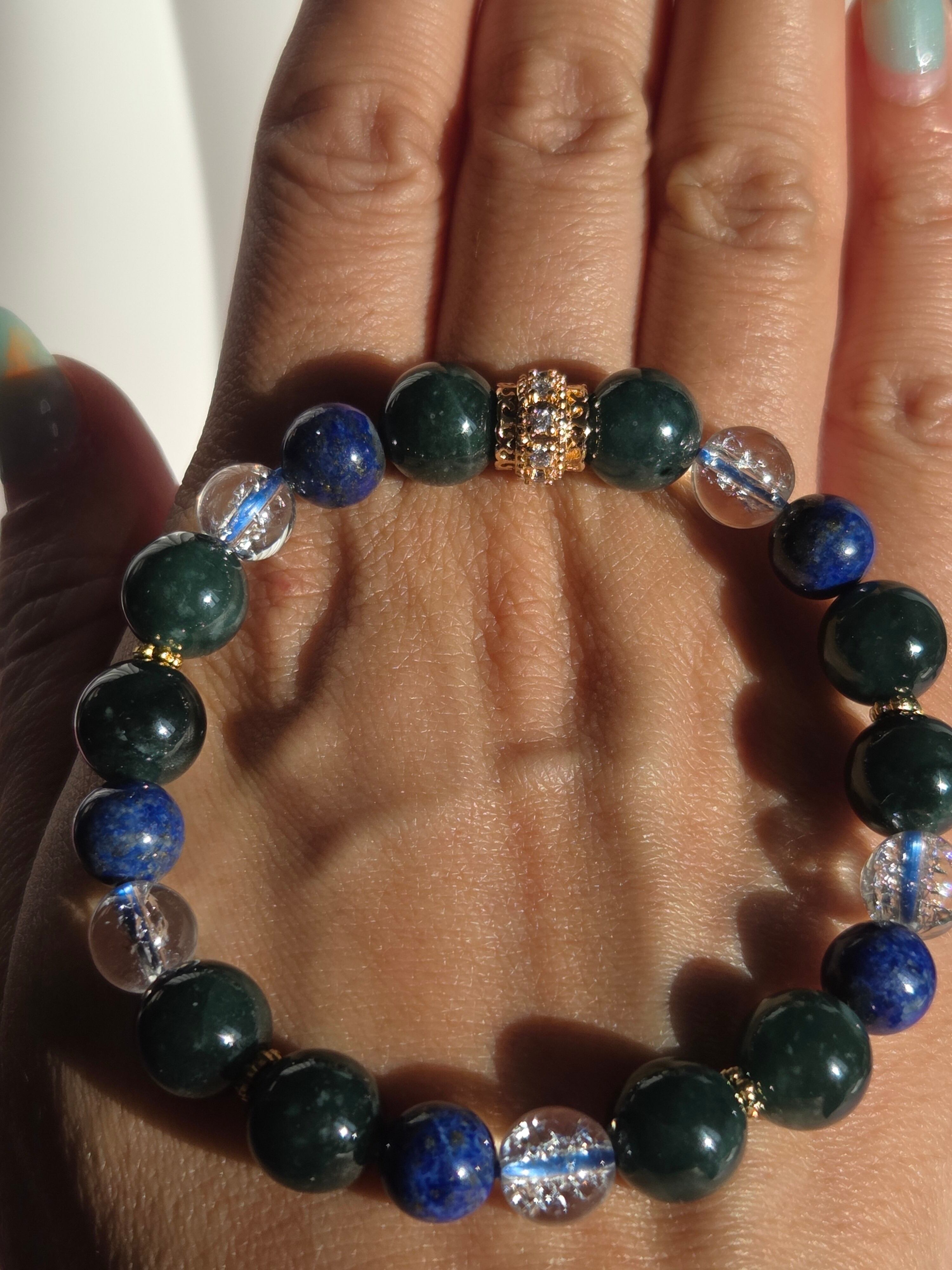 翡翠 ラピスラズリ 水晶デザインブレスレット