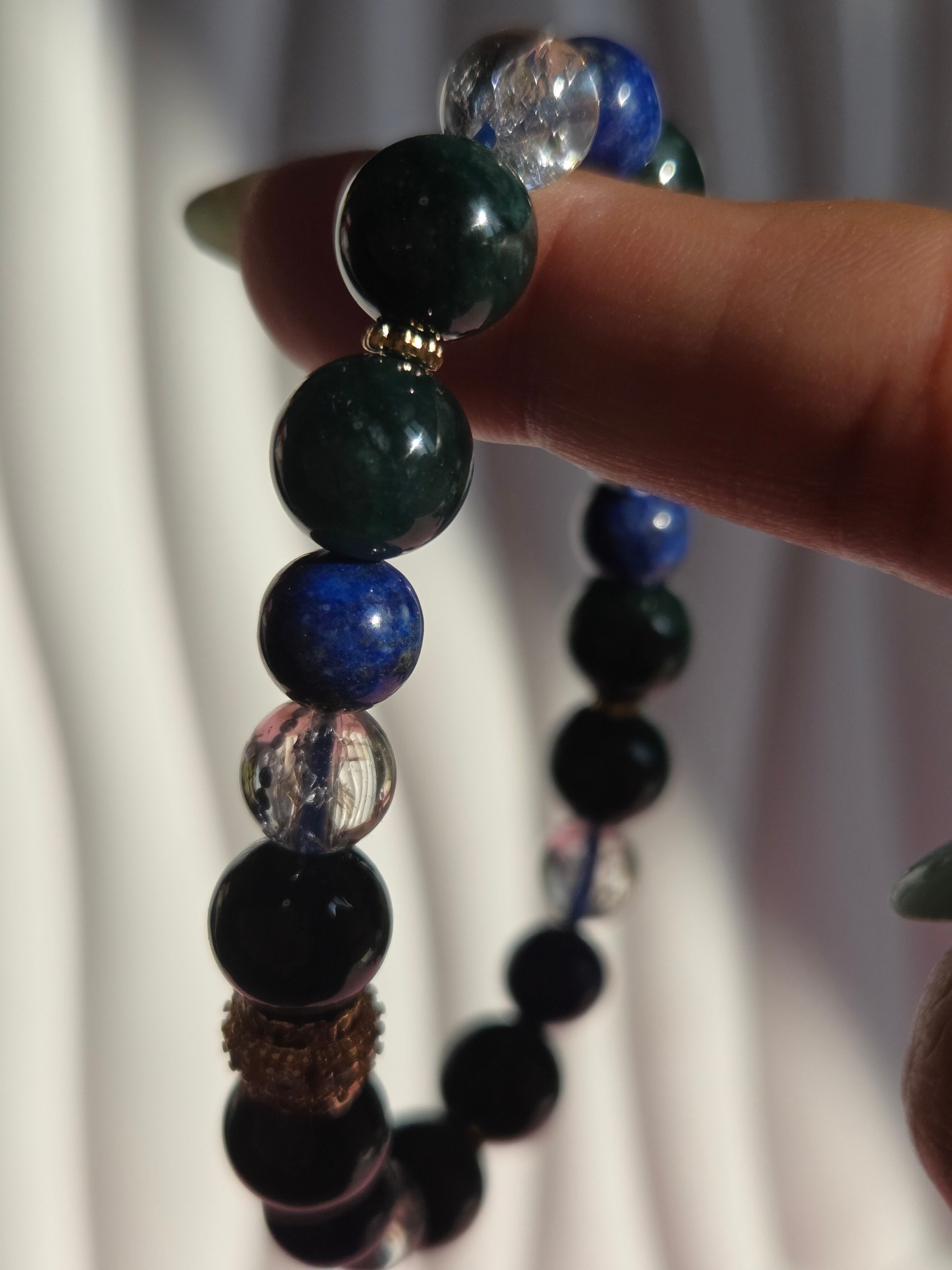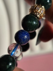 ラピスラズリと翡翠はどちらも魔除けの力を持つとされ、組み合わせることで相乗効果が期待できます。特に、直感力や洞察力を高めたい人、霊的な成長を促したい人におすすめです。また、翡翠は持ち主の波動を整え、成功や安定へと導く力があるため、精神的な安定を求める人にも良いとされています。