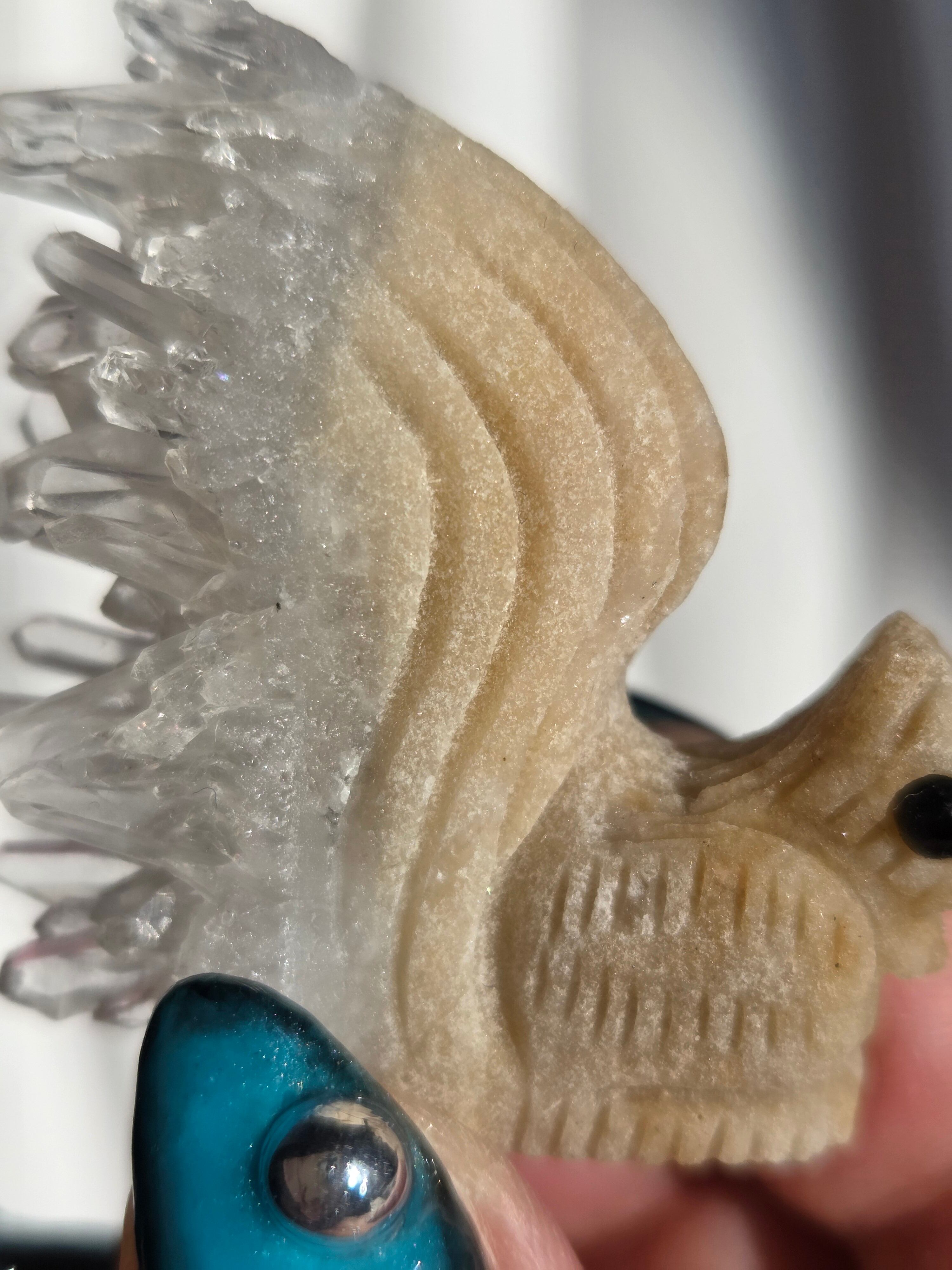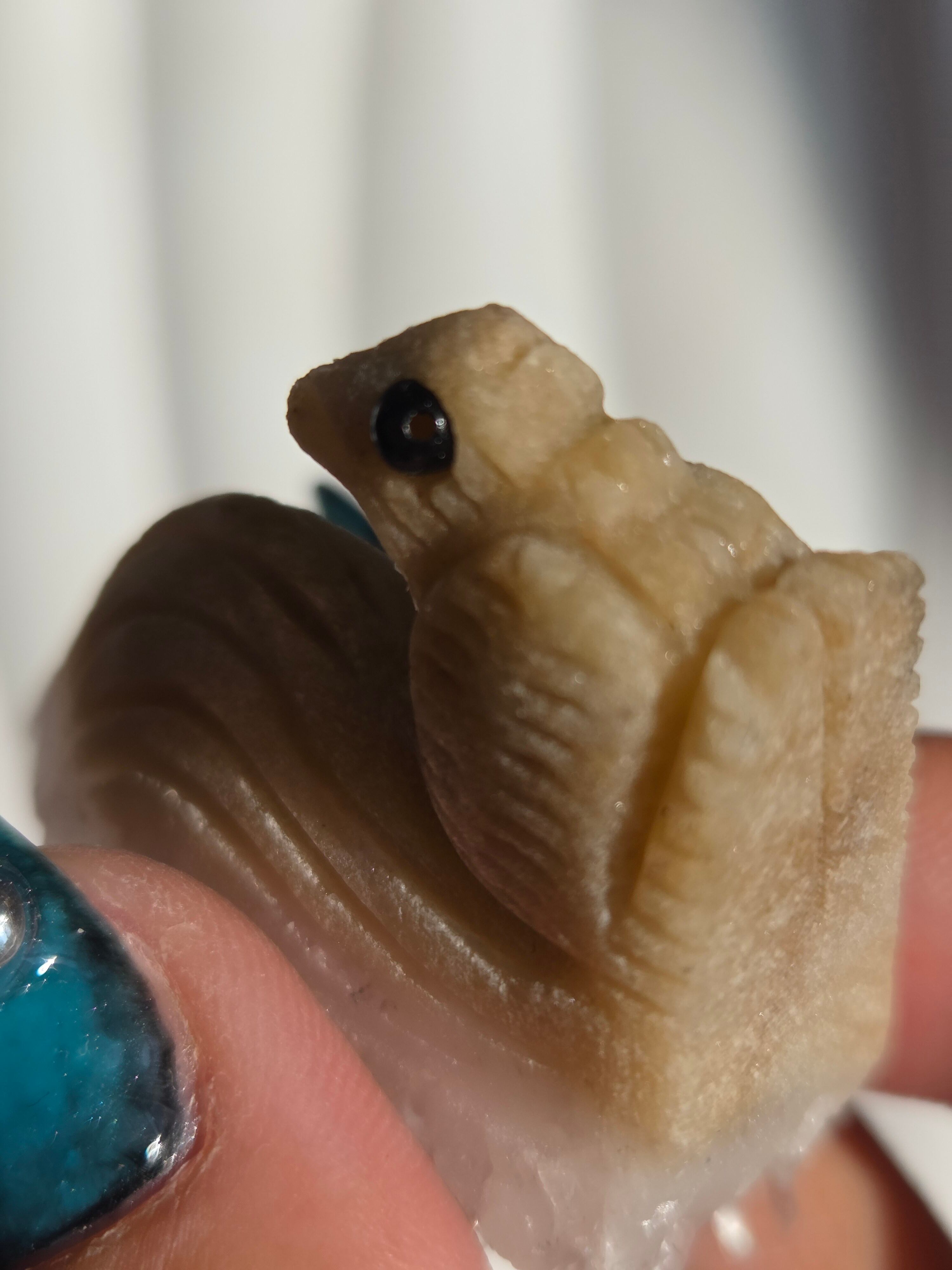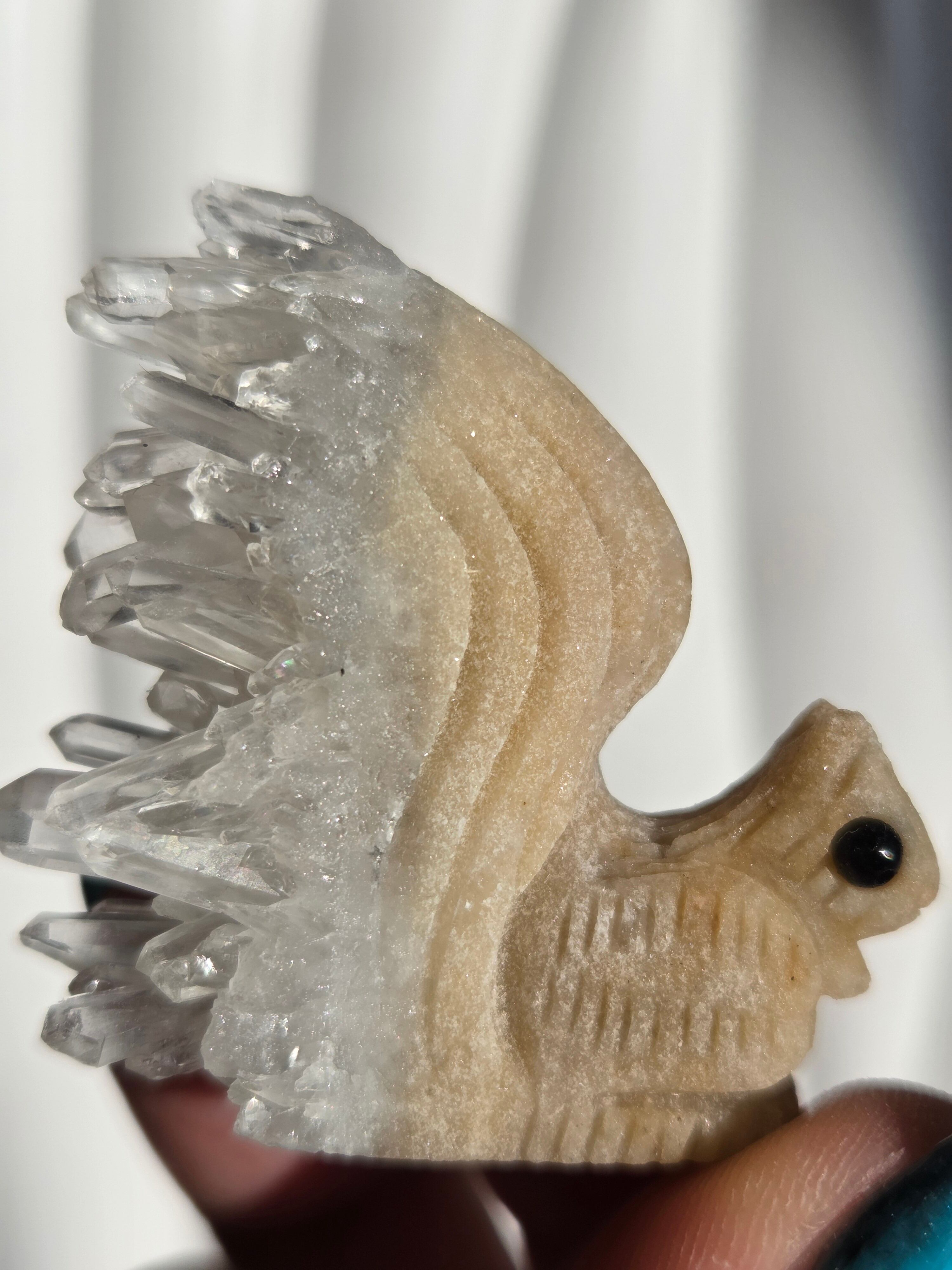 りすのカービングで、尻尾部分は水晶クラスターになった可愛い置物です。