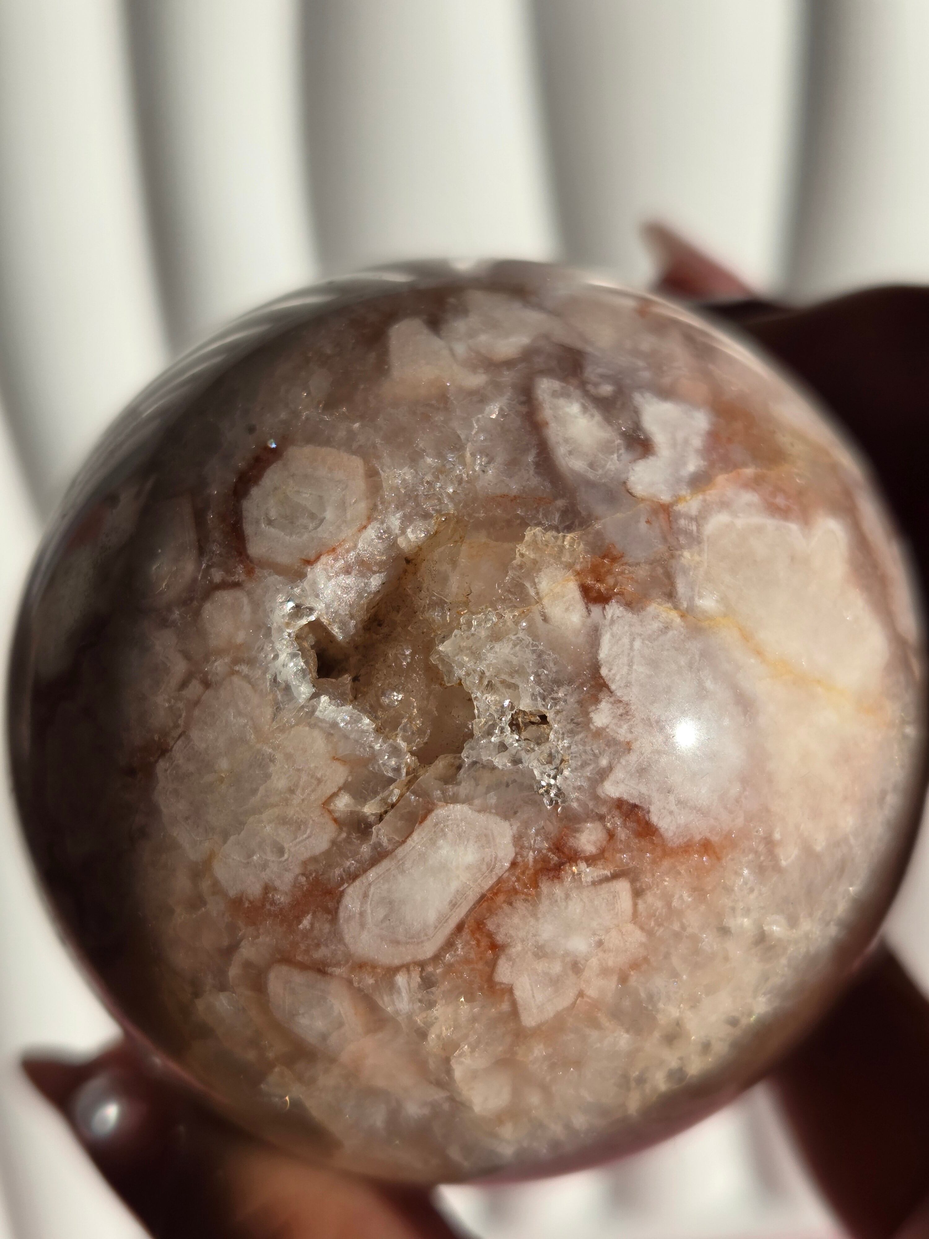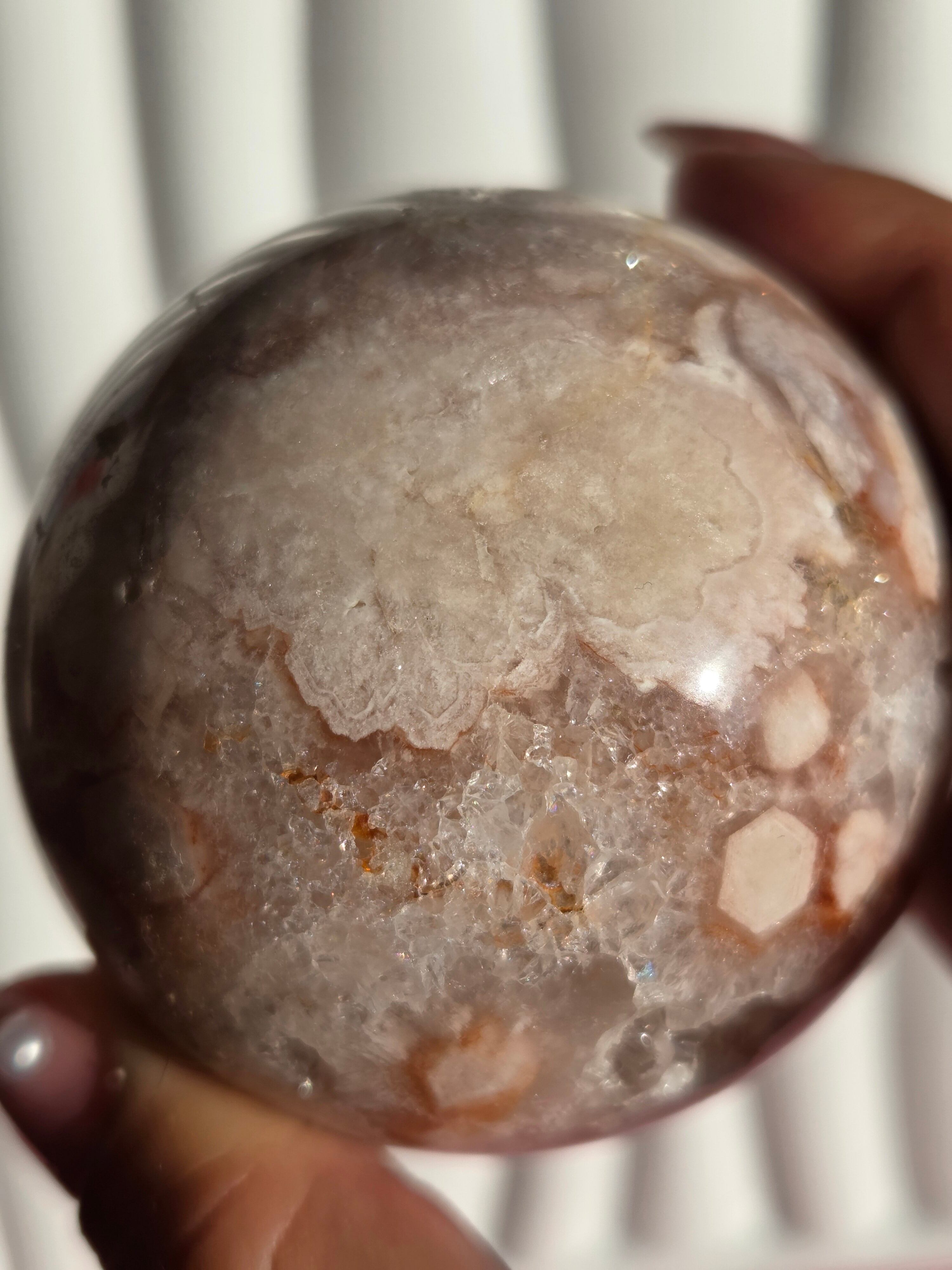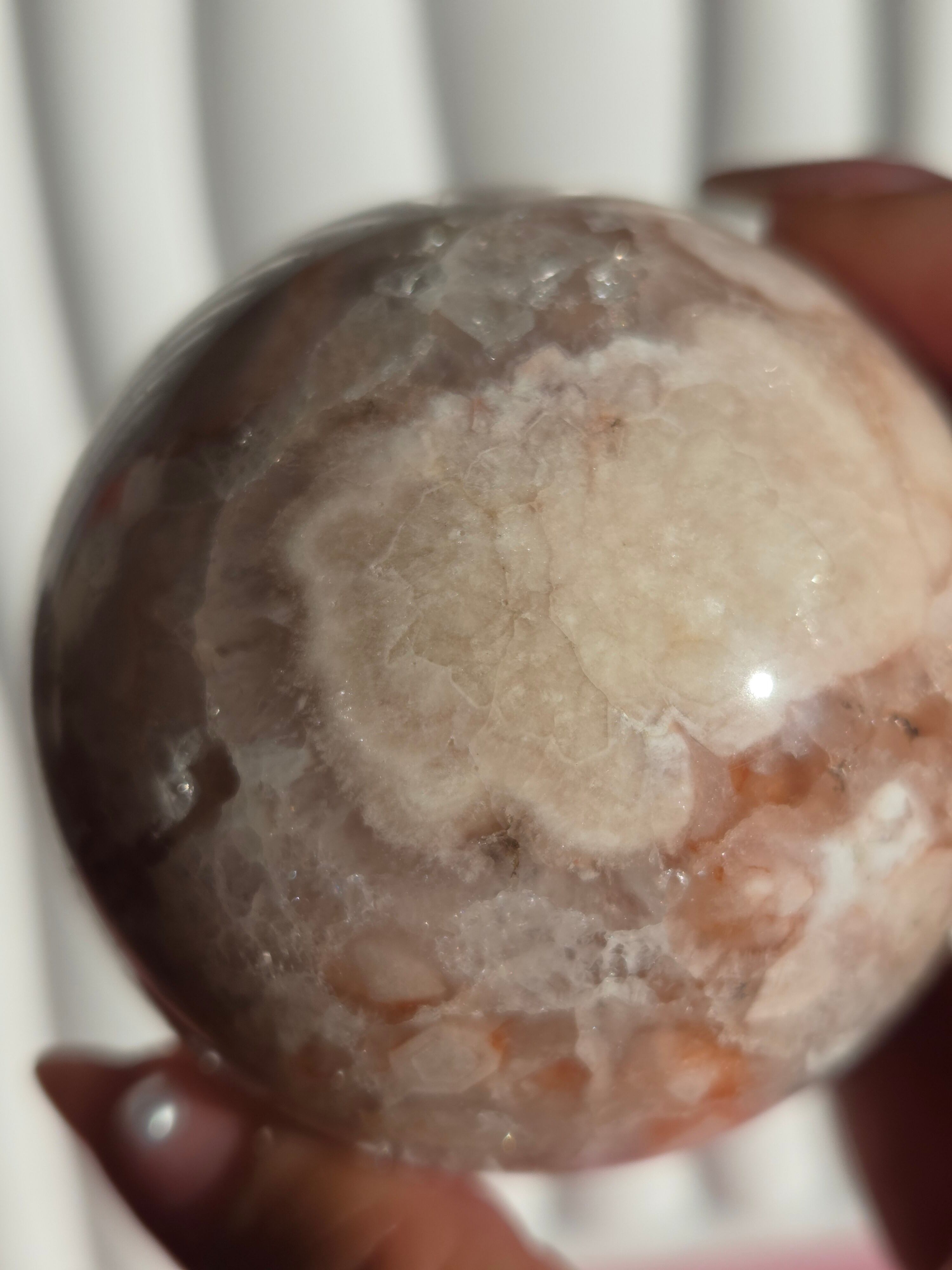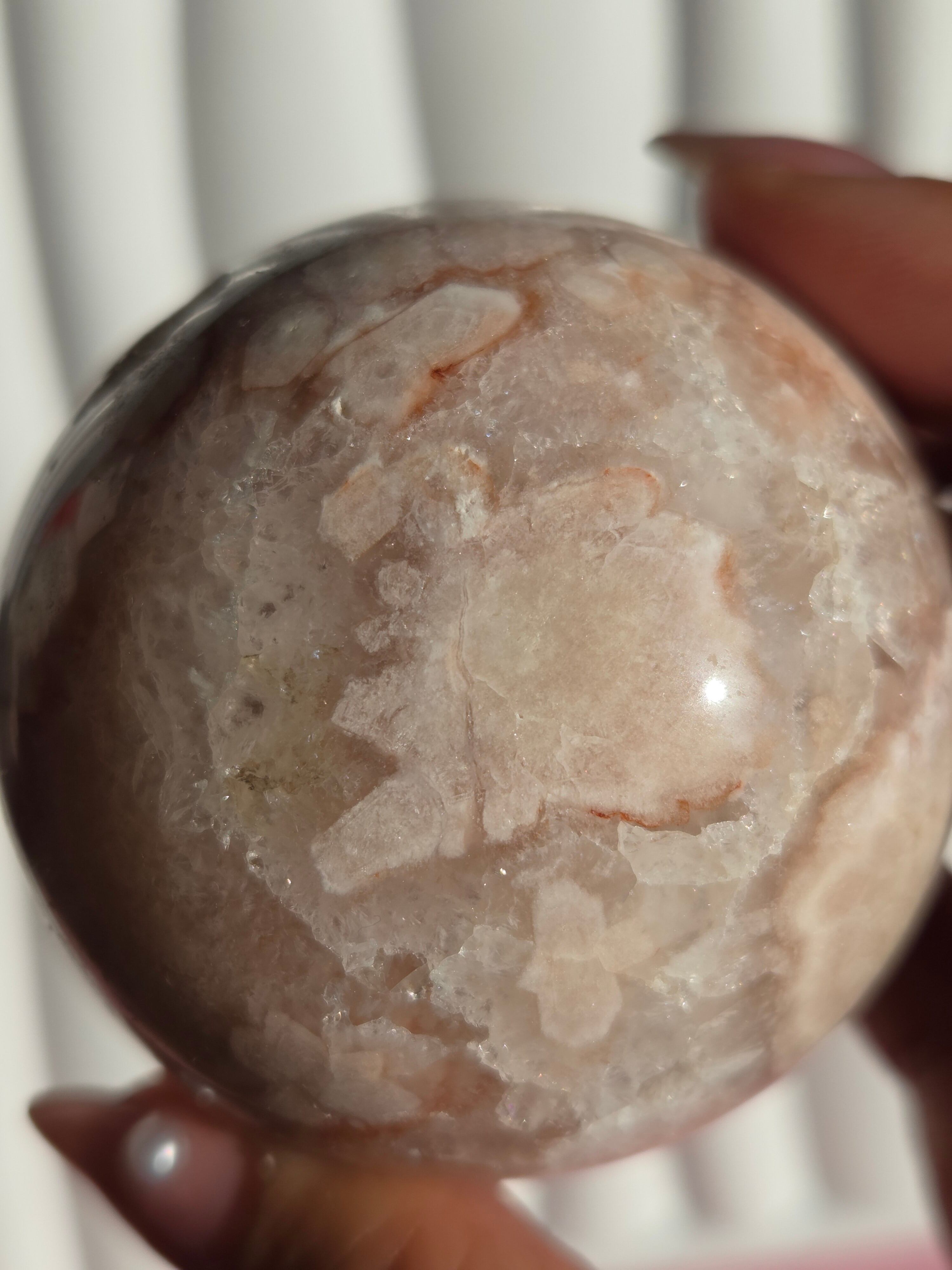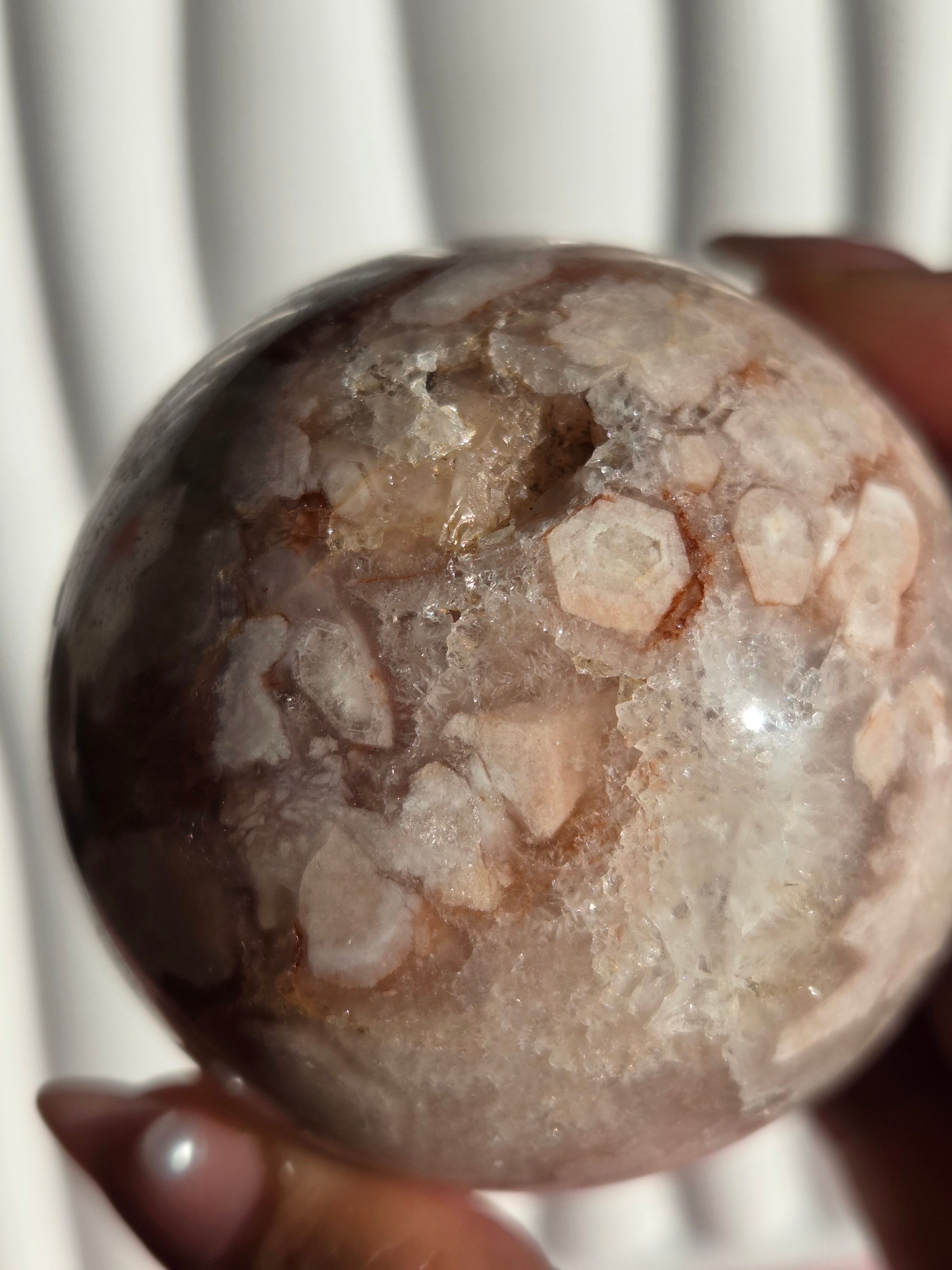 ピンクアメジストに、フラワーアゲートが共生したスフィアになります。