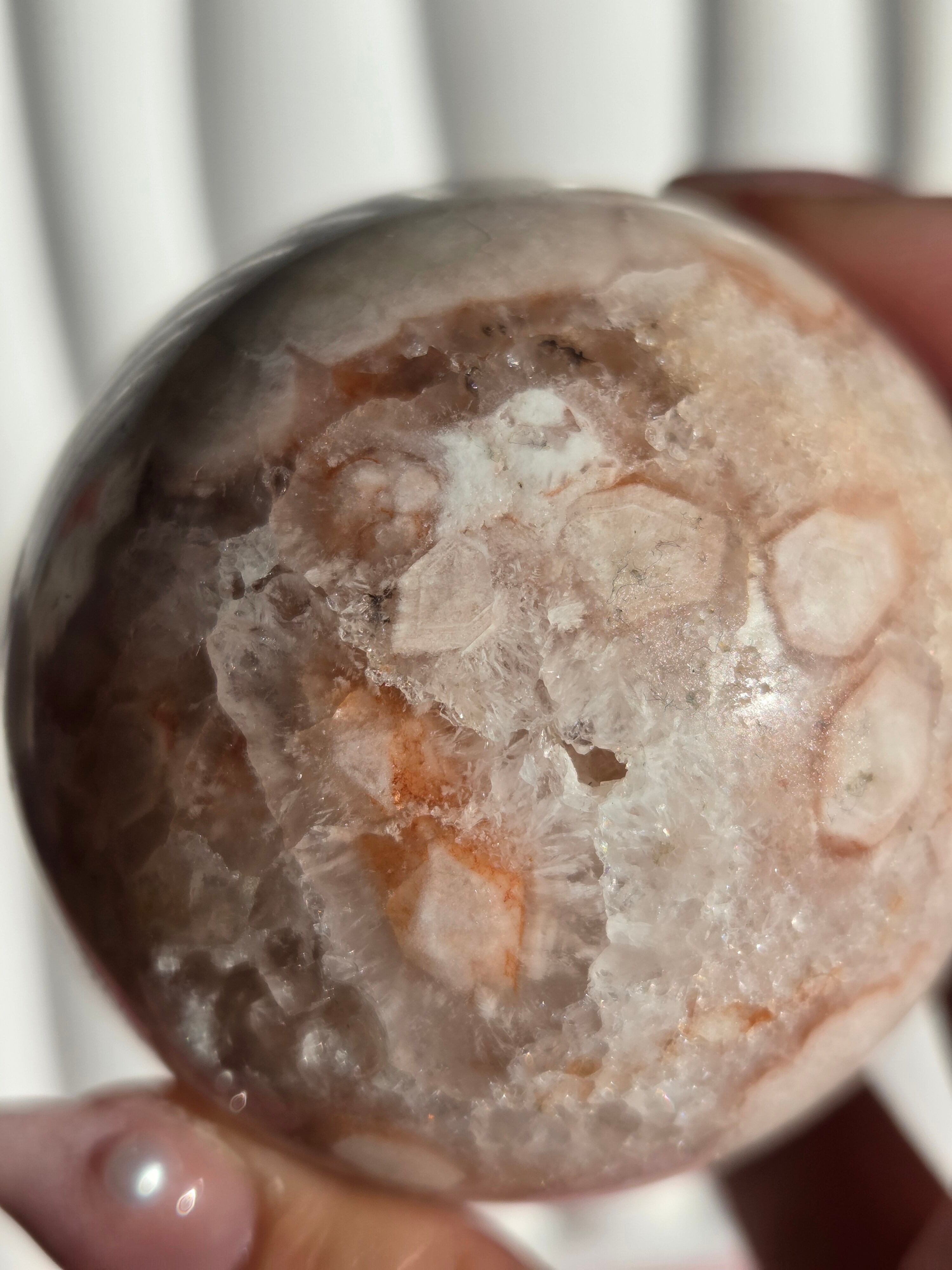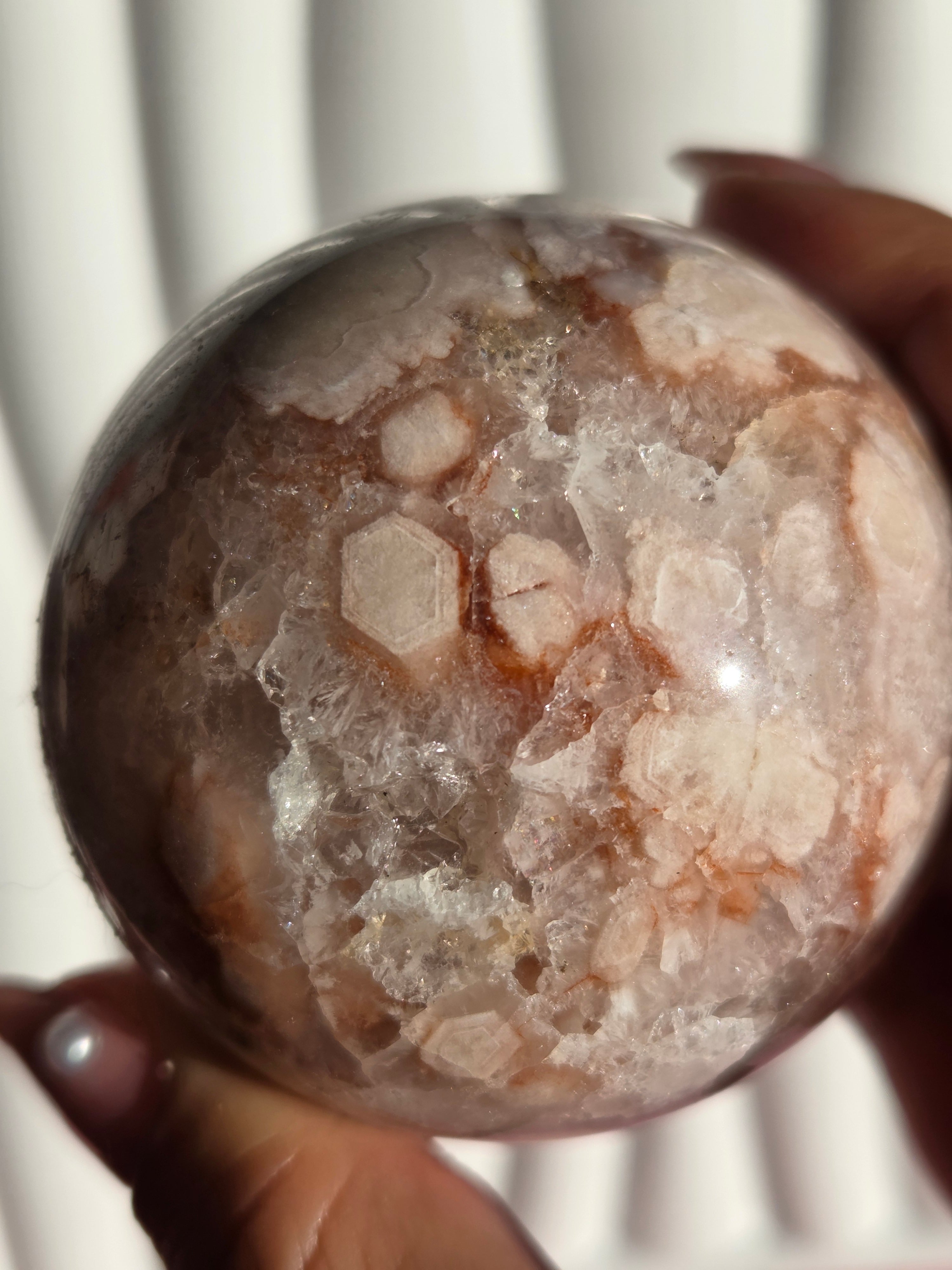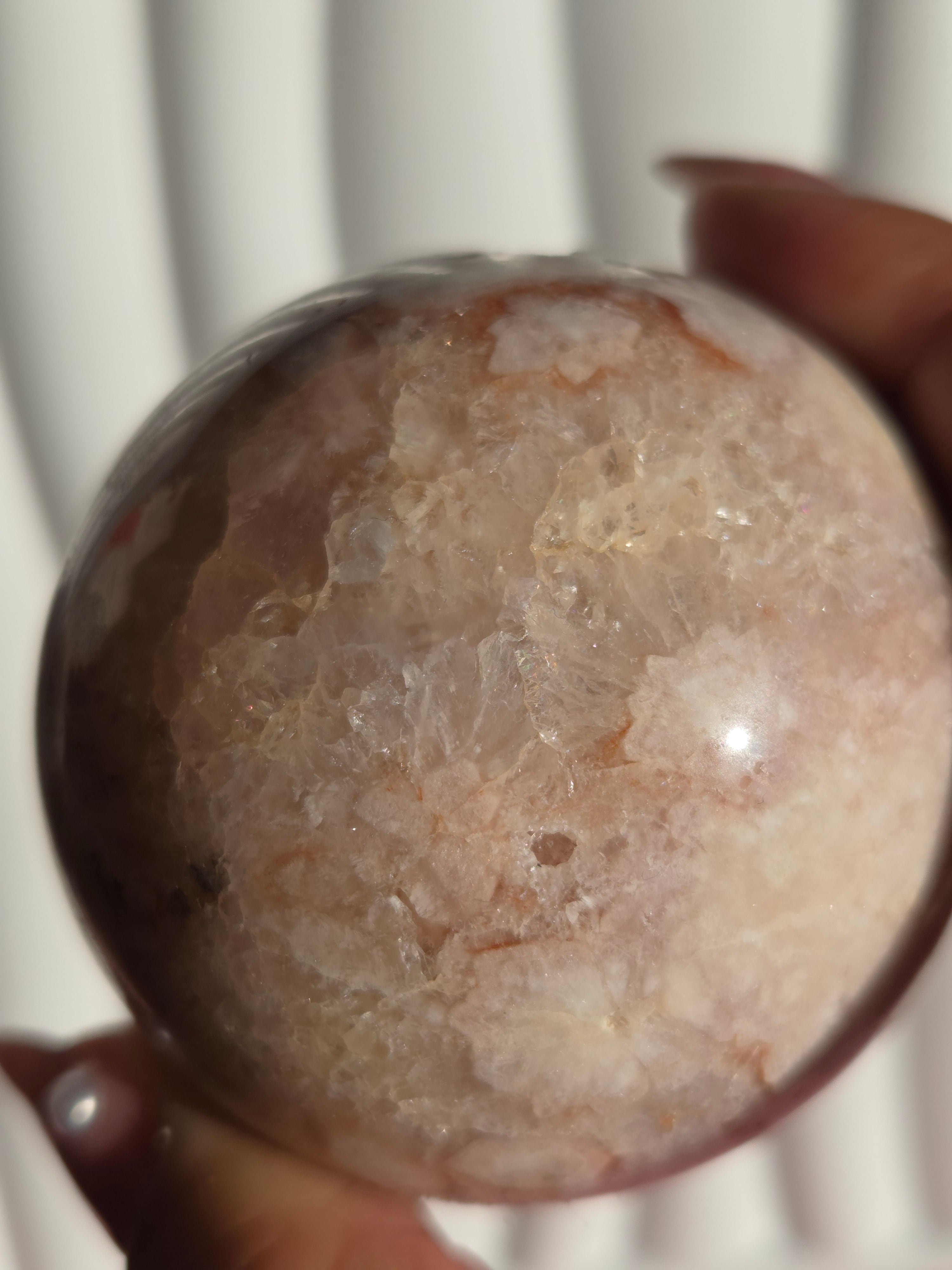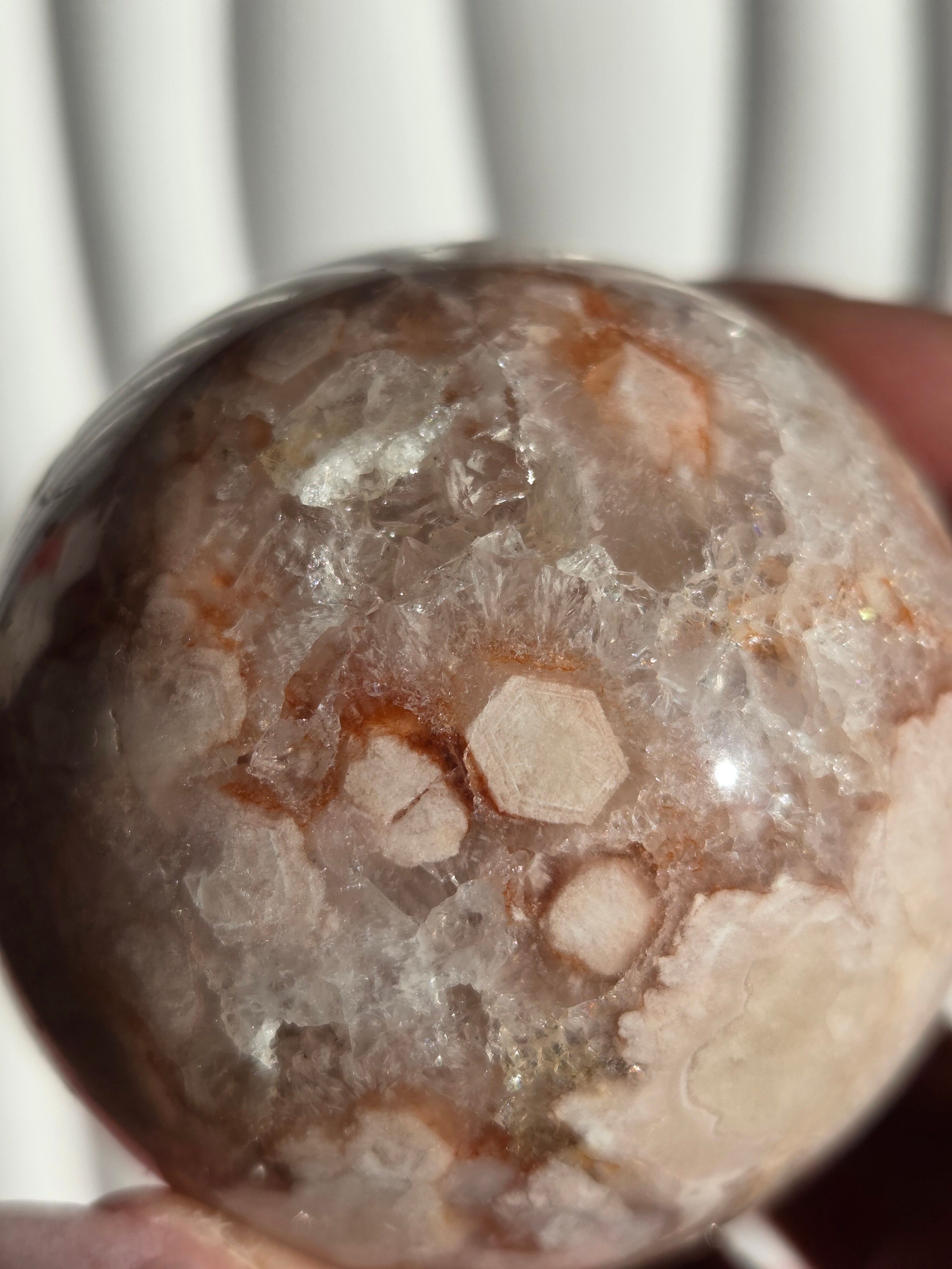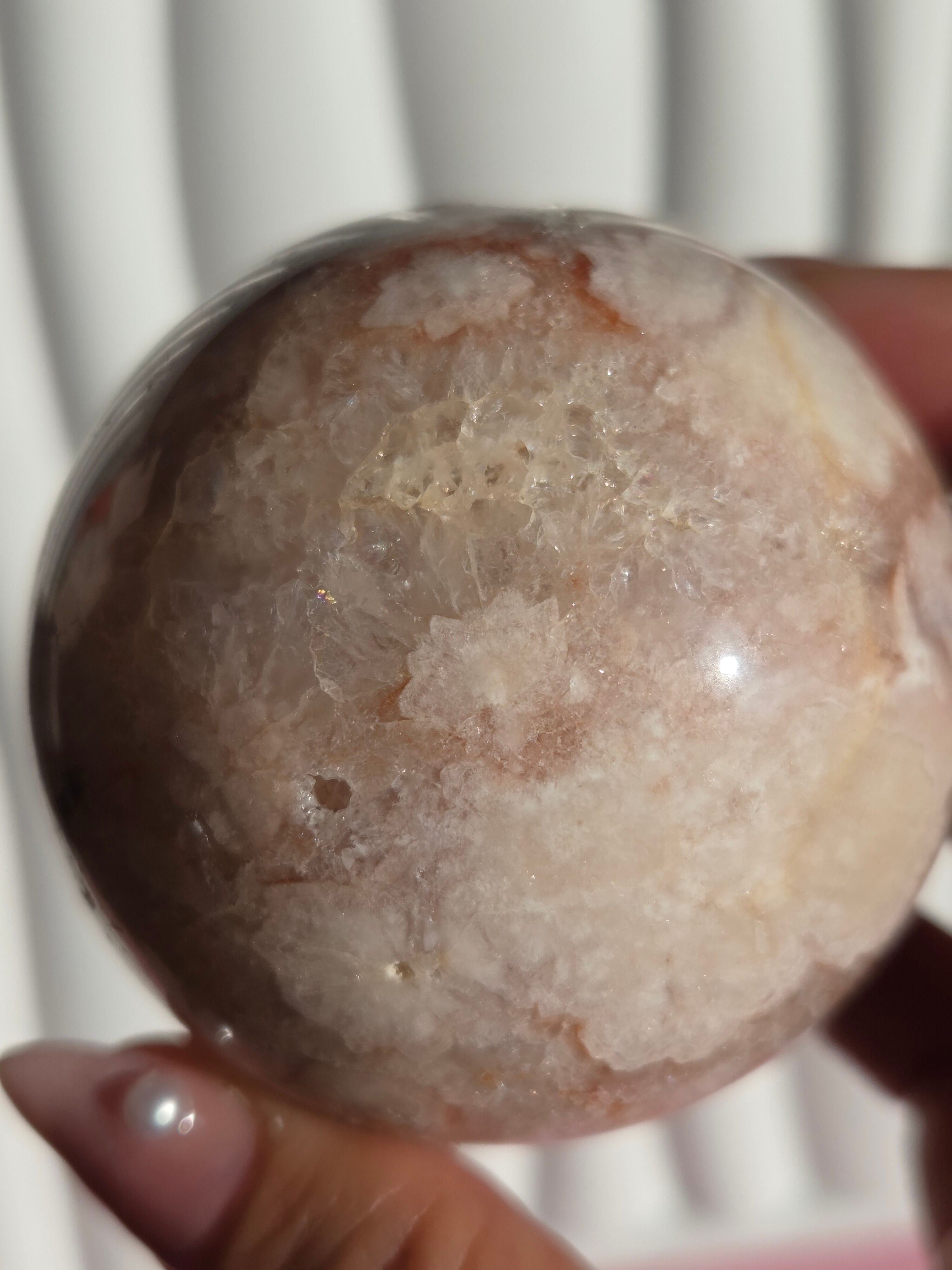 ピンクアメジストに、フラワーアゲートが共生したスフィアになります。