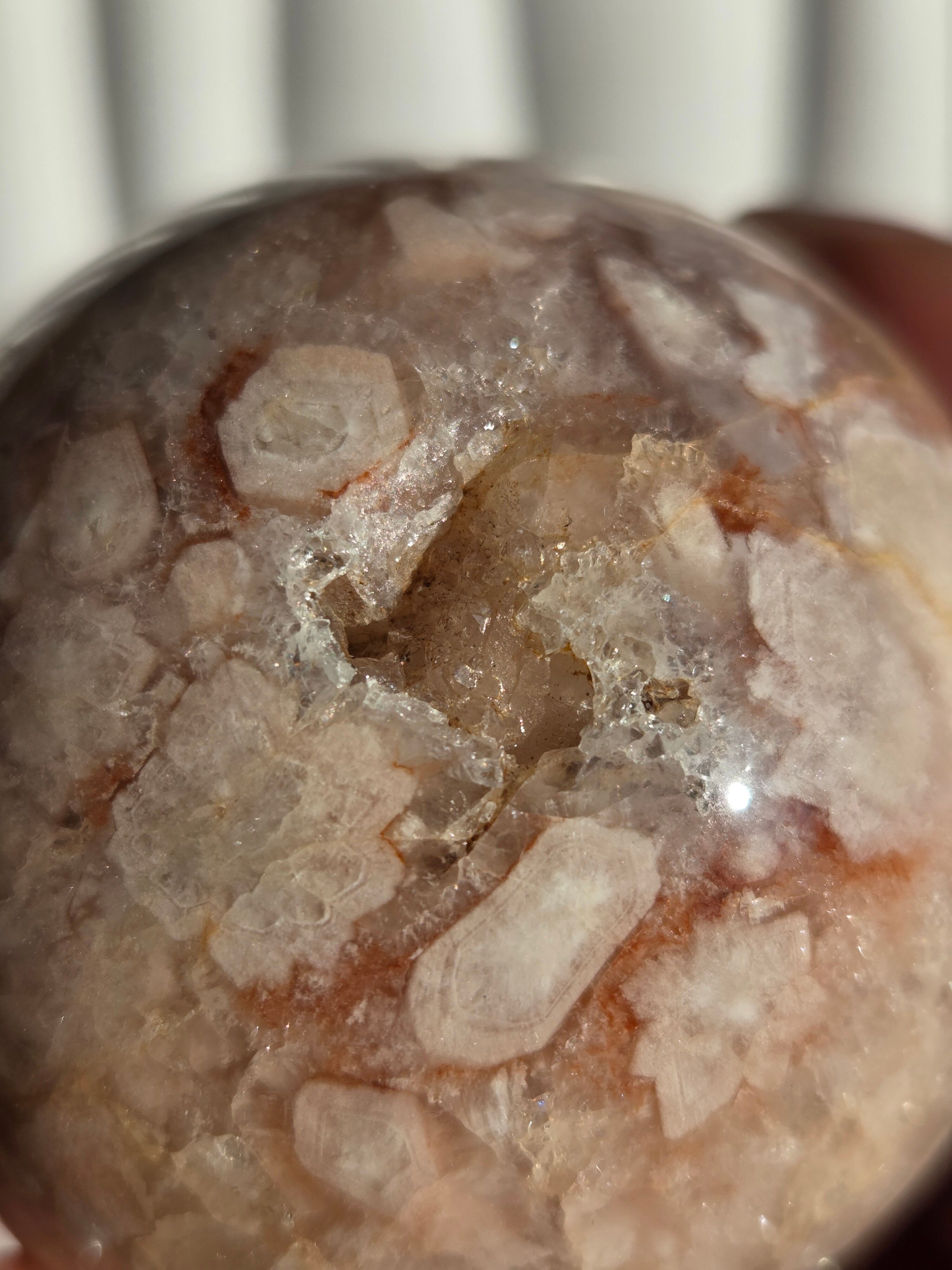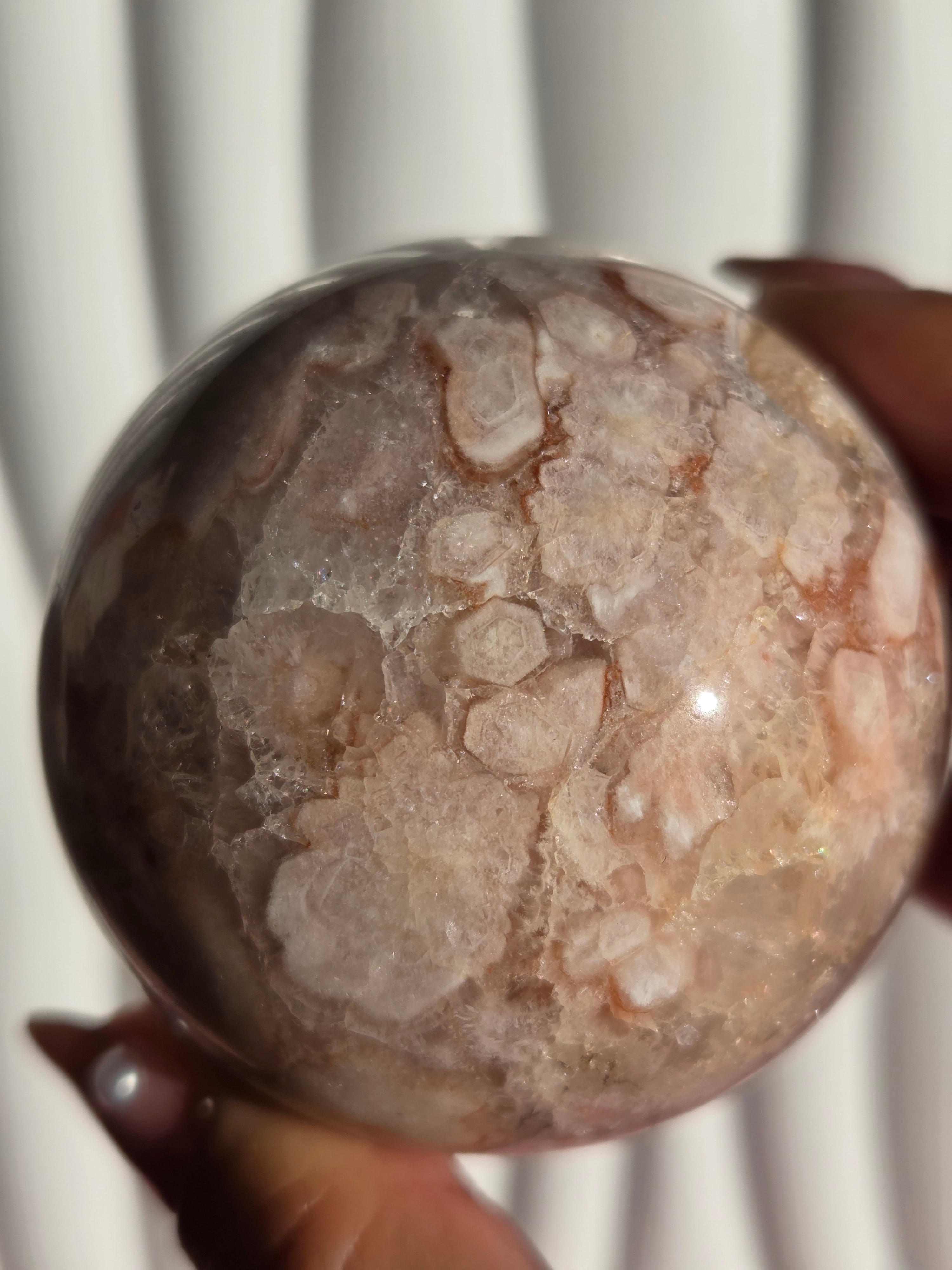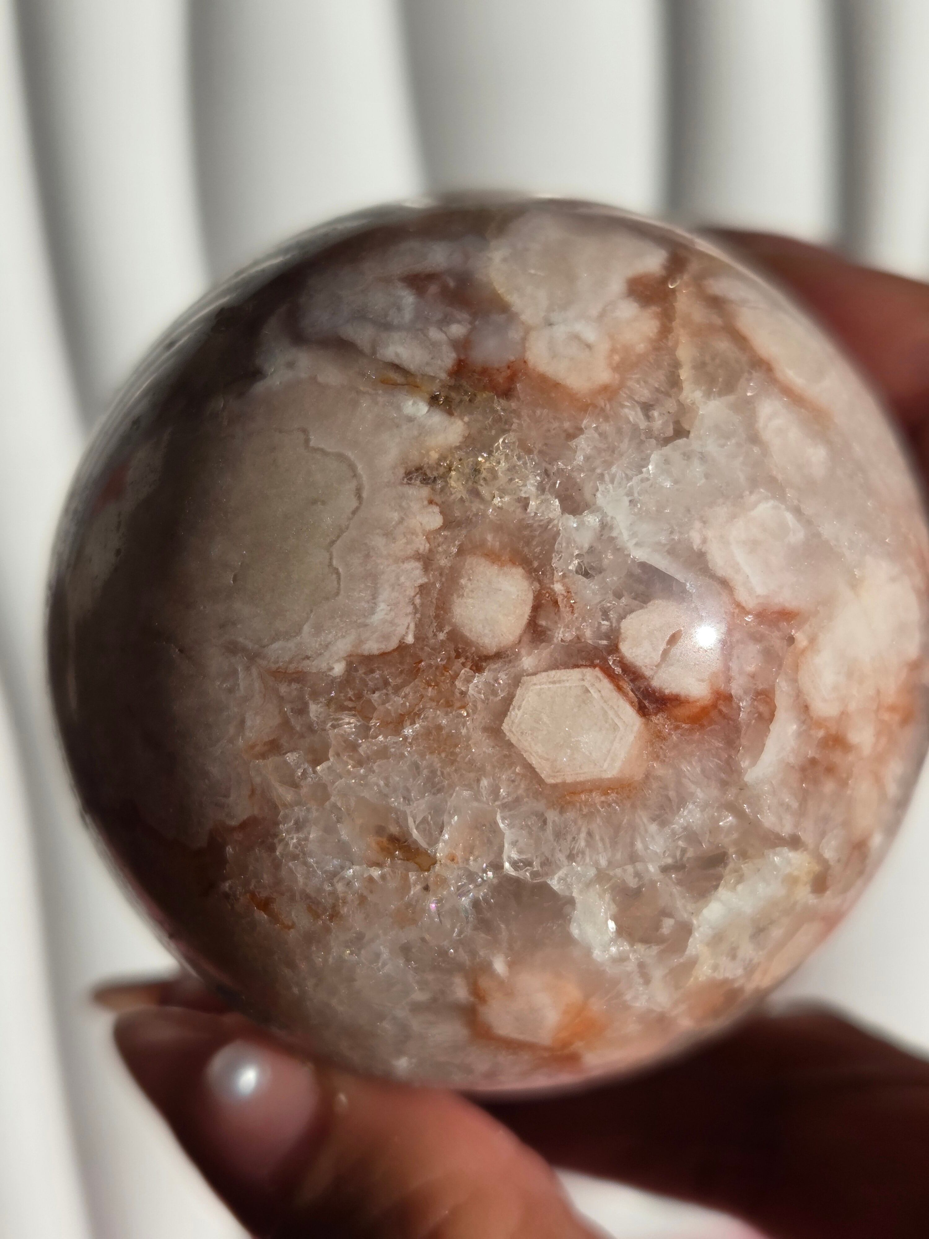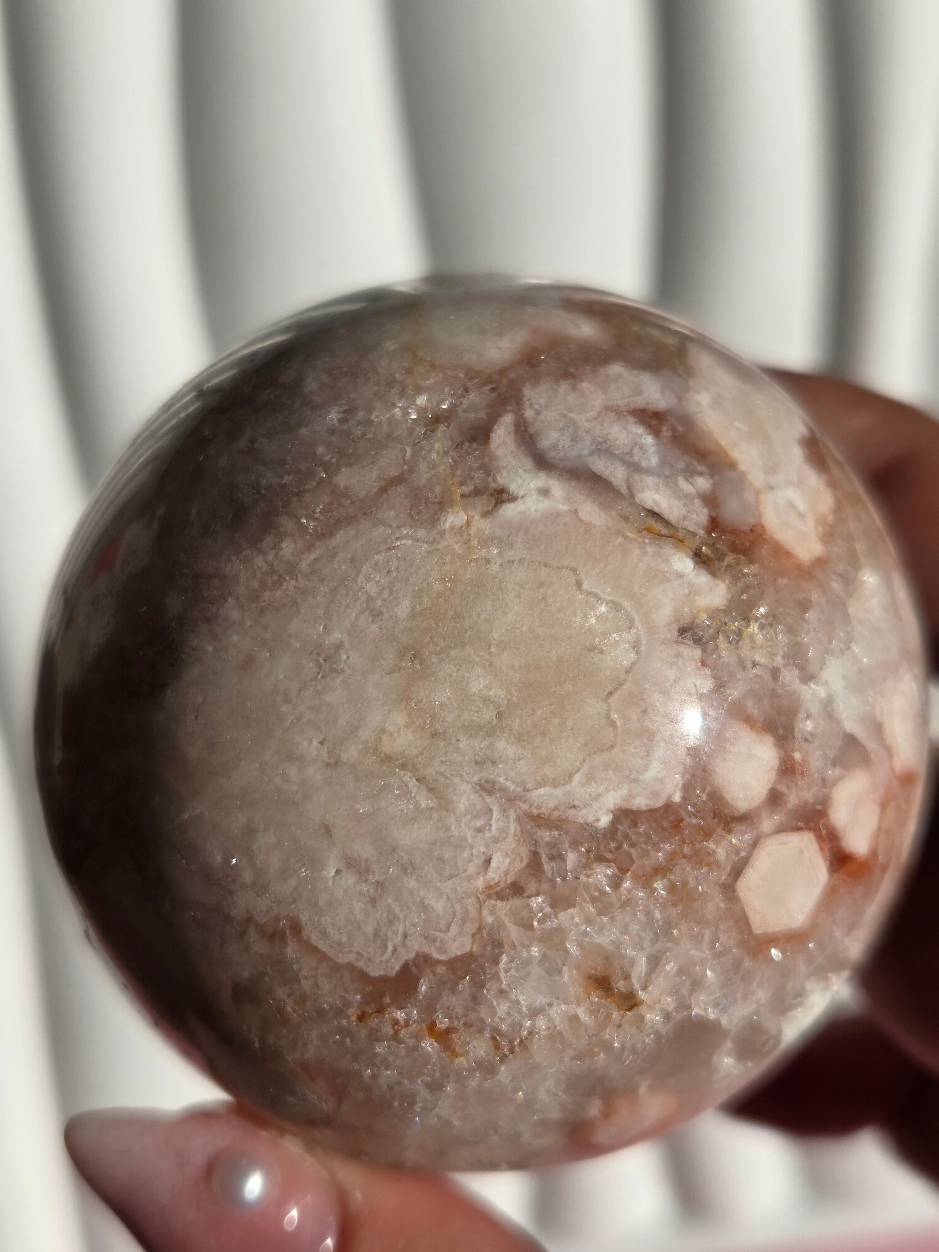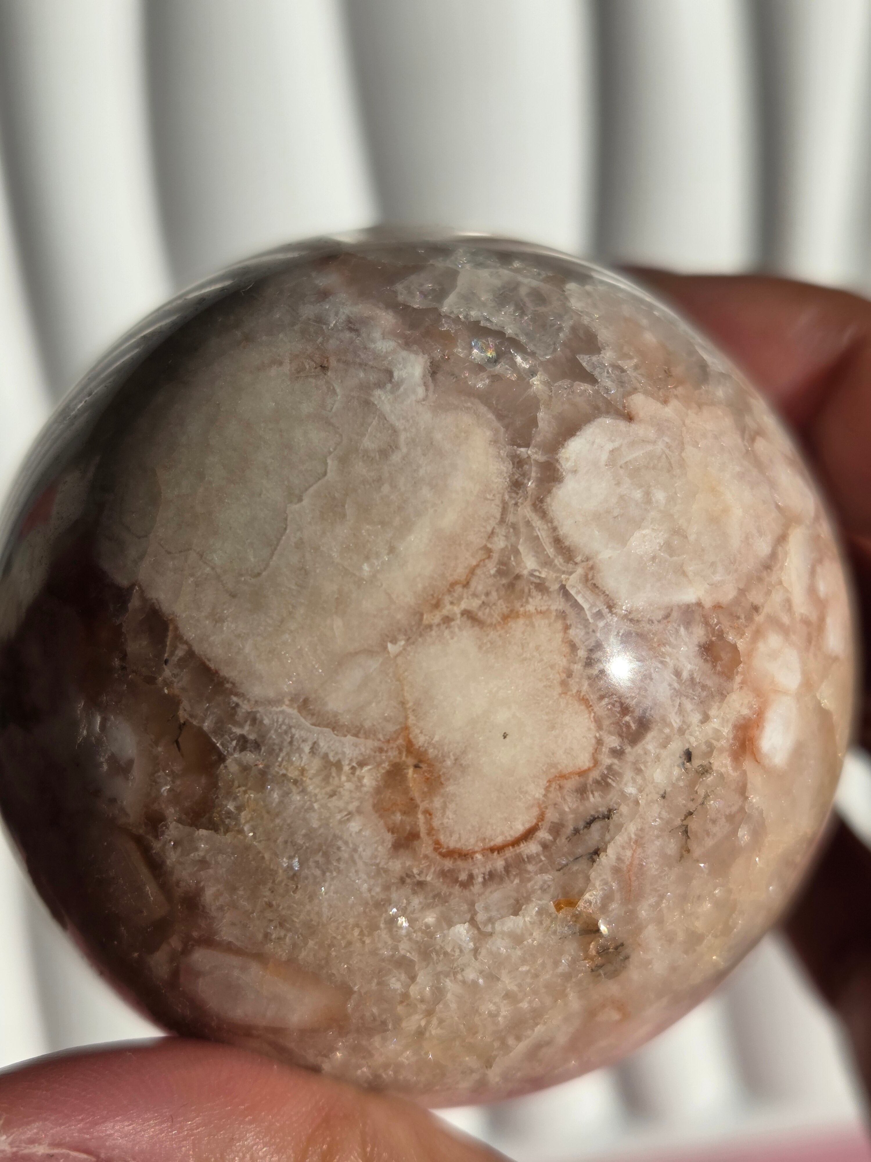 ピンクアメジストに、フラワーアゲートが共生したスフィアになります。