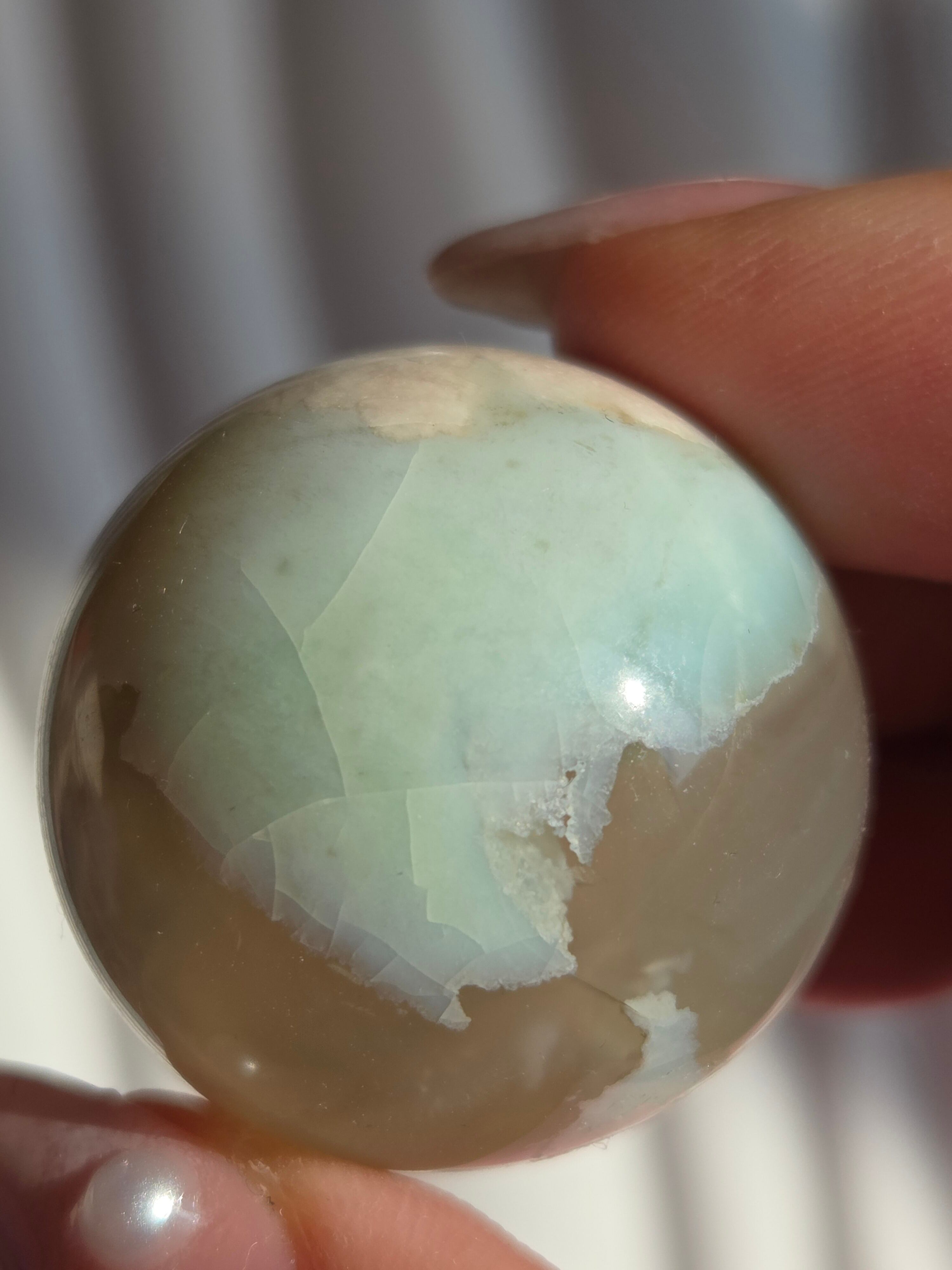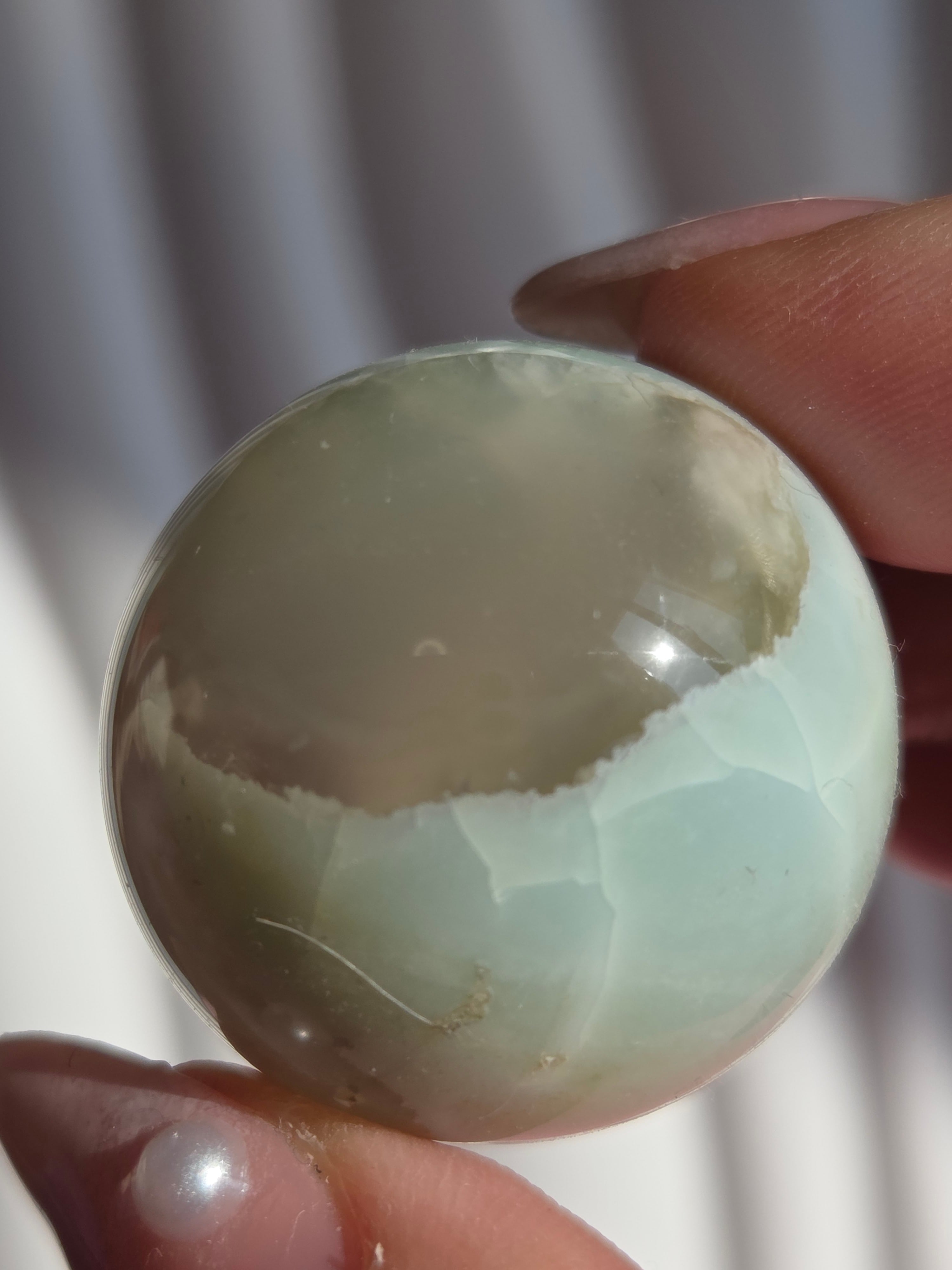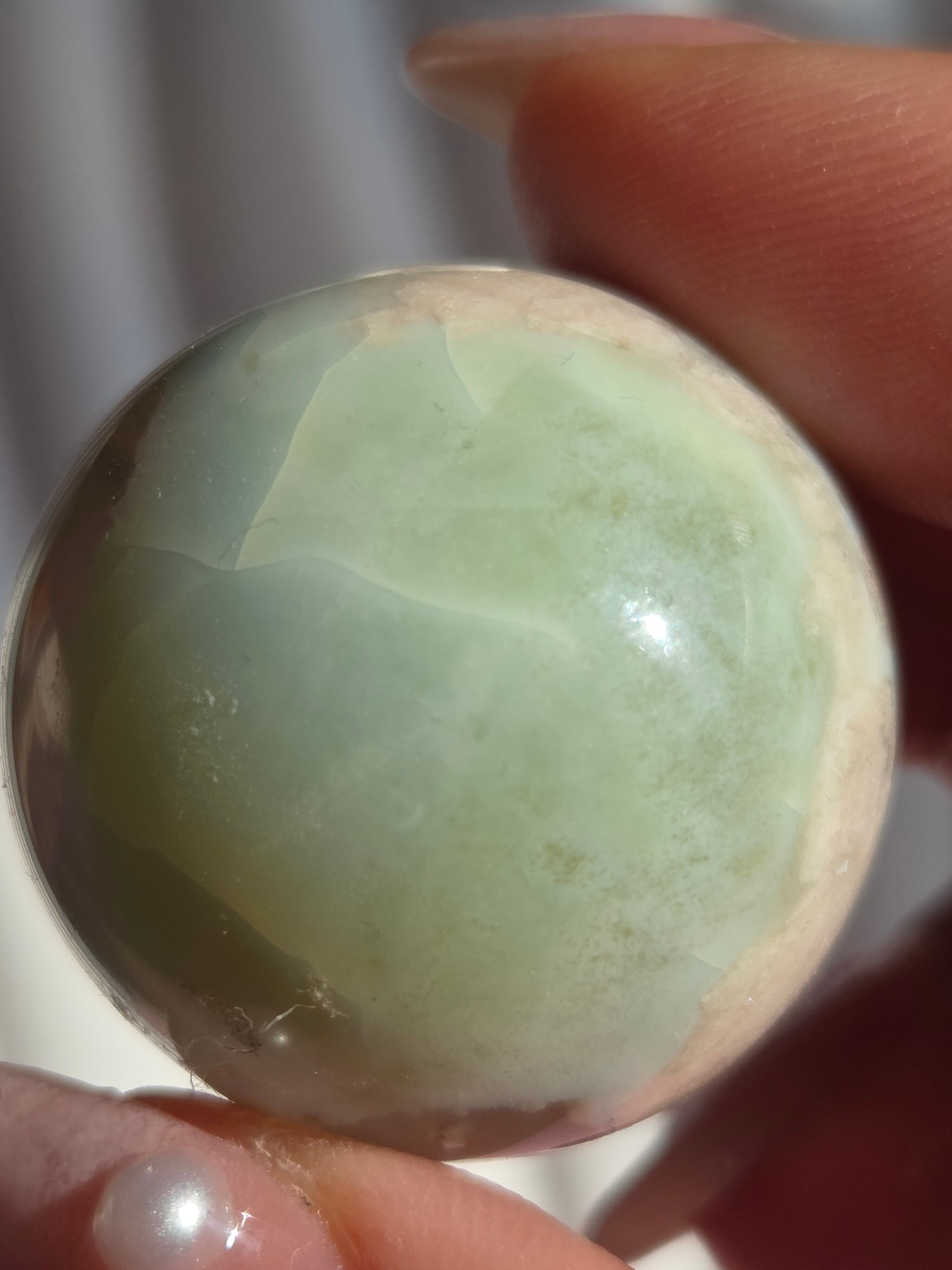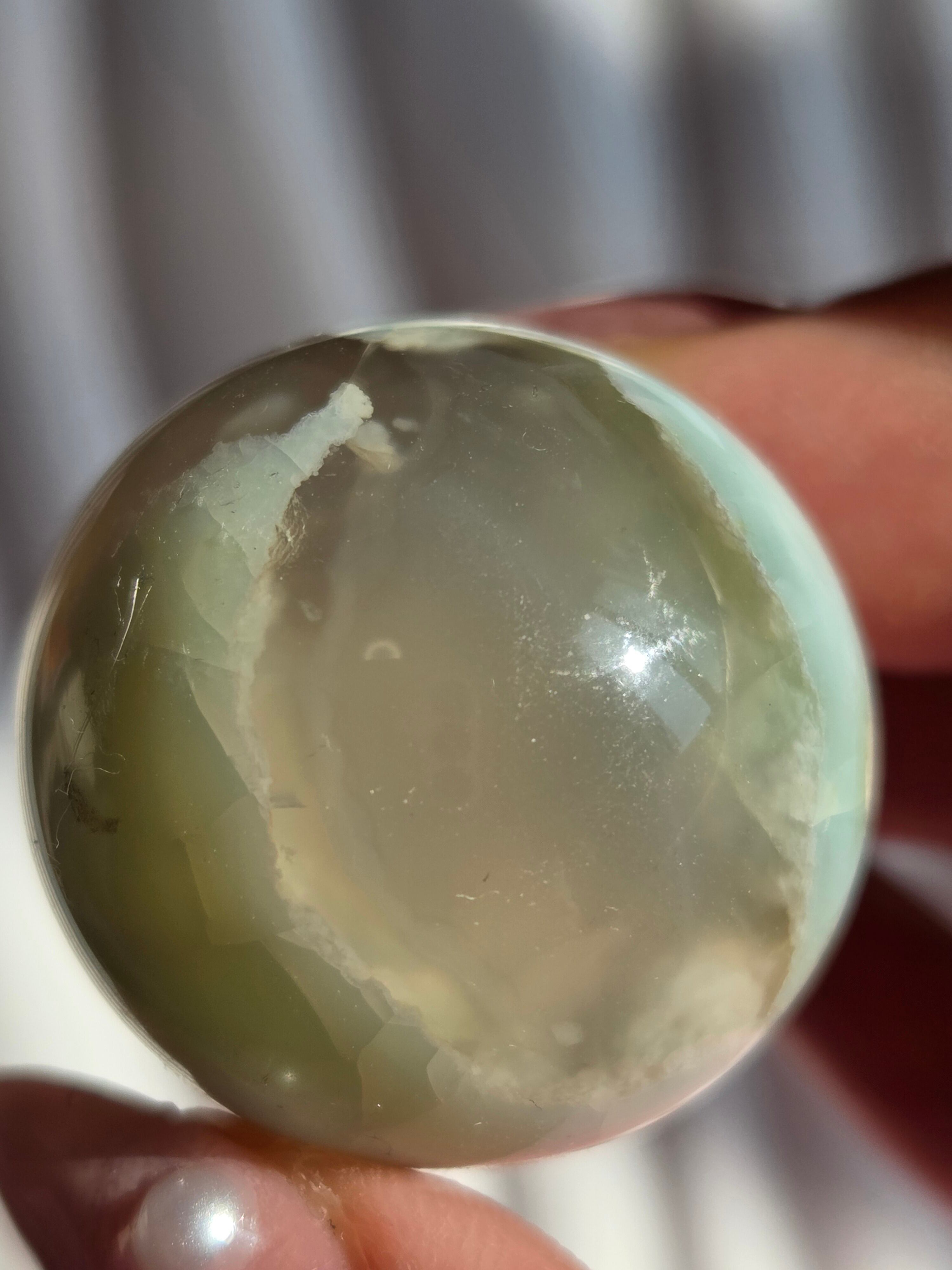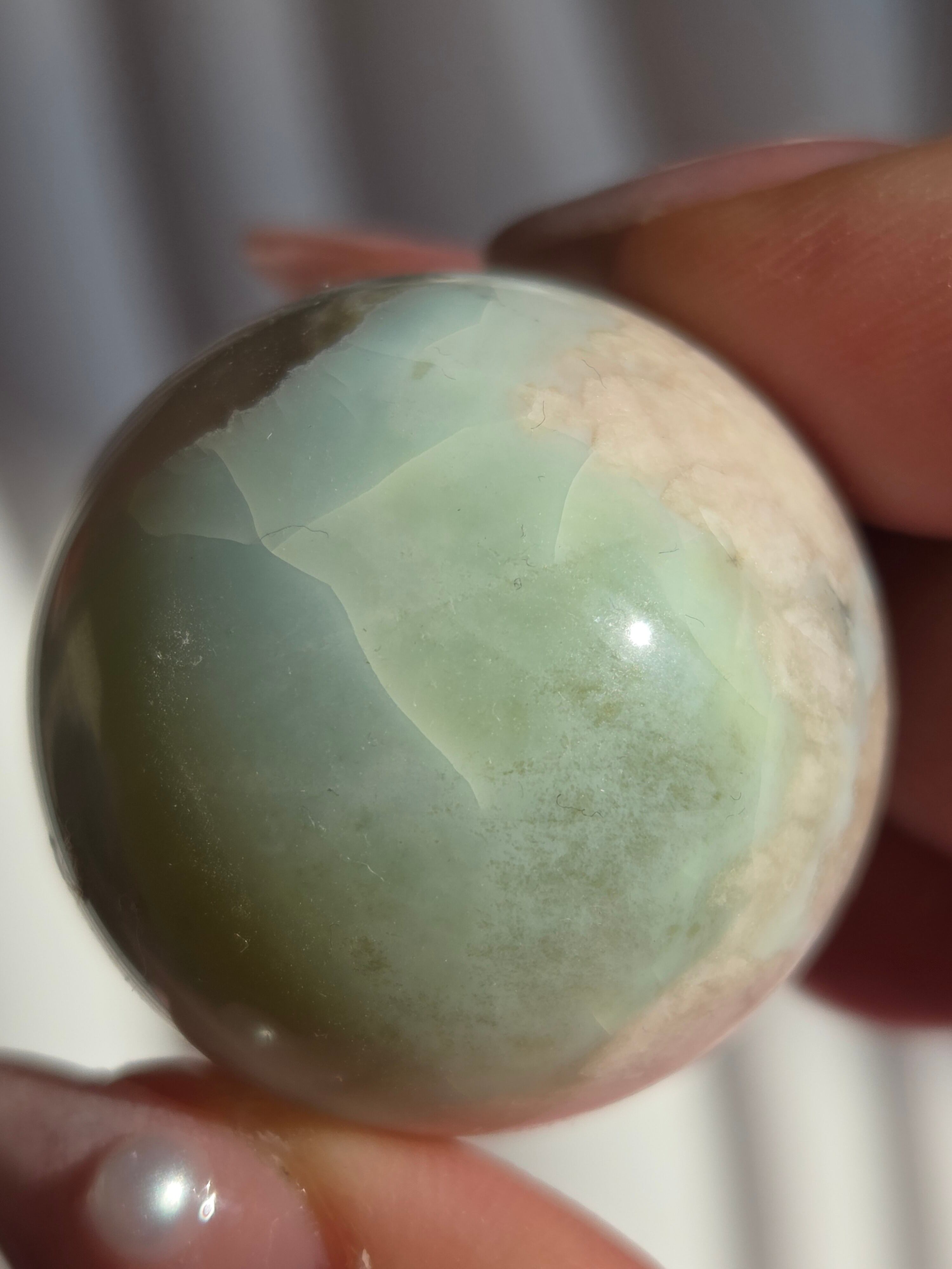 グリーンフラワーアゲート(緑桜瑪瑙)スフィアです。パステルグリーンをメインに、お花柄が散りばめられた素敵なスフィア。