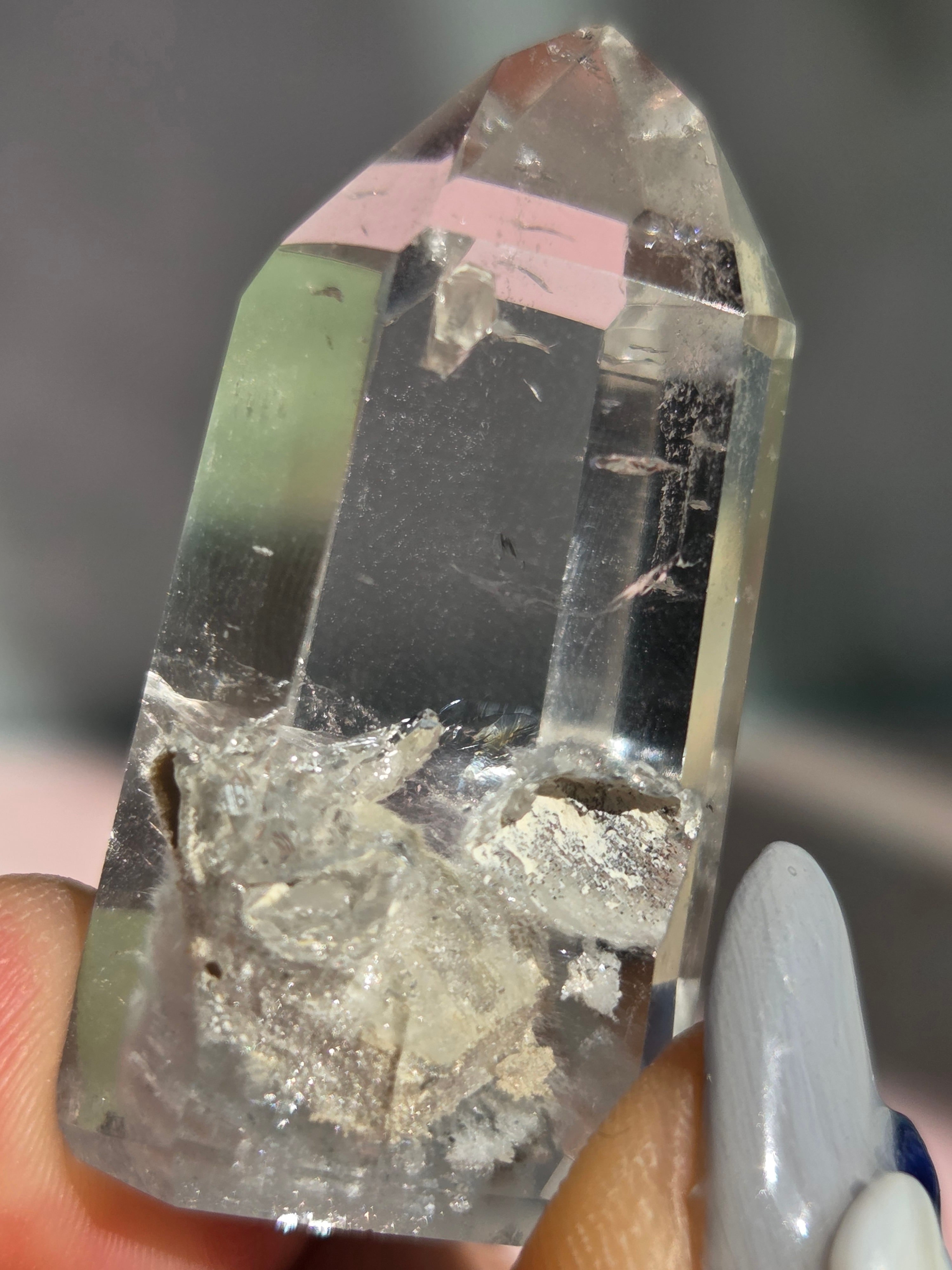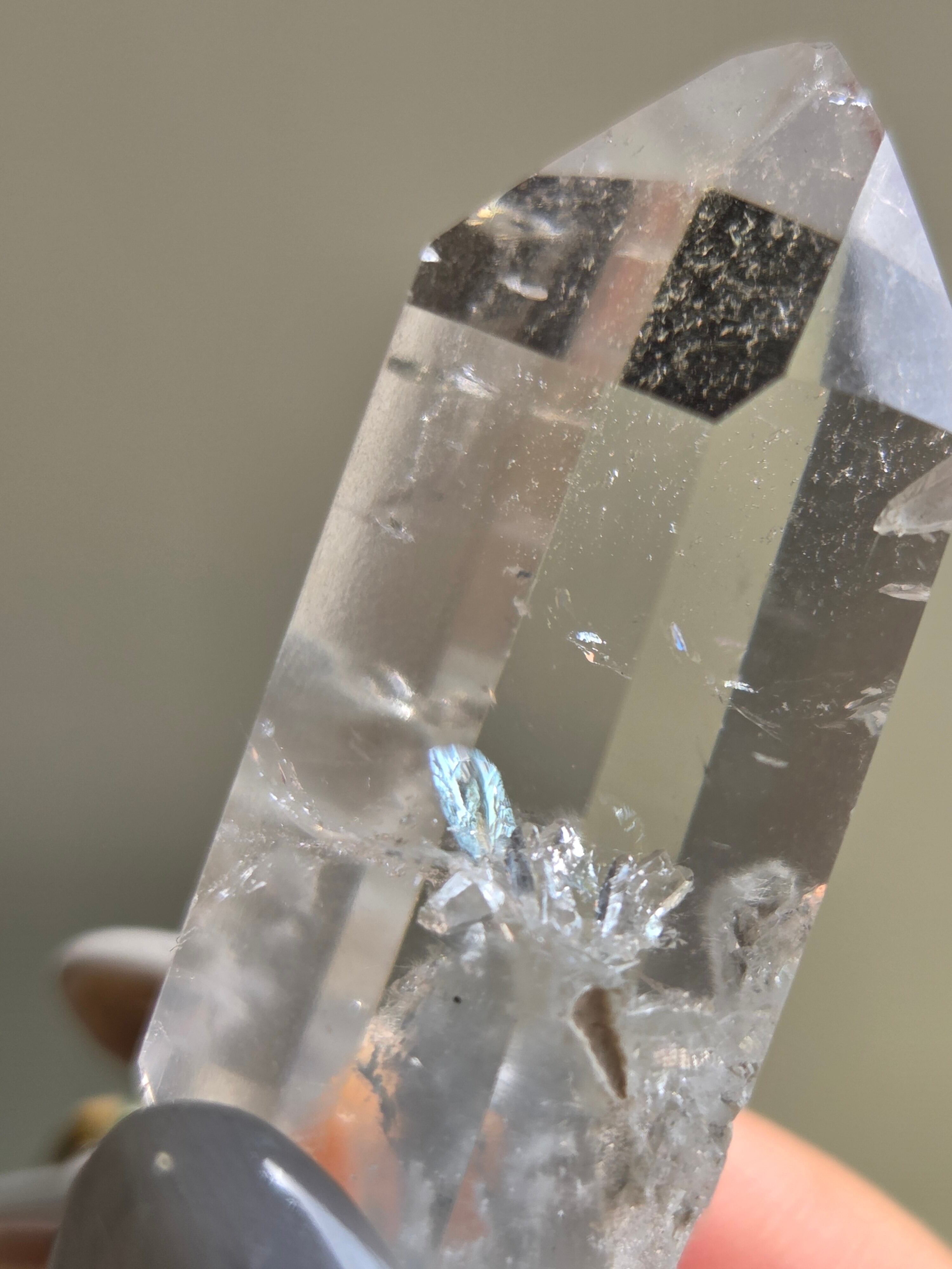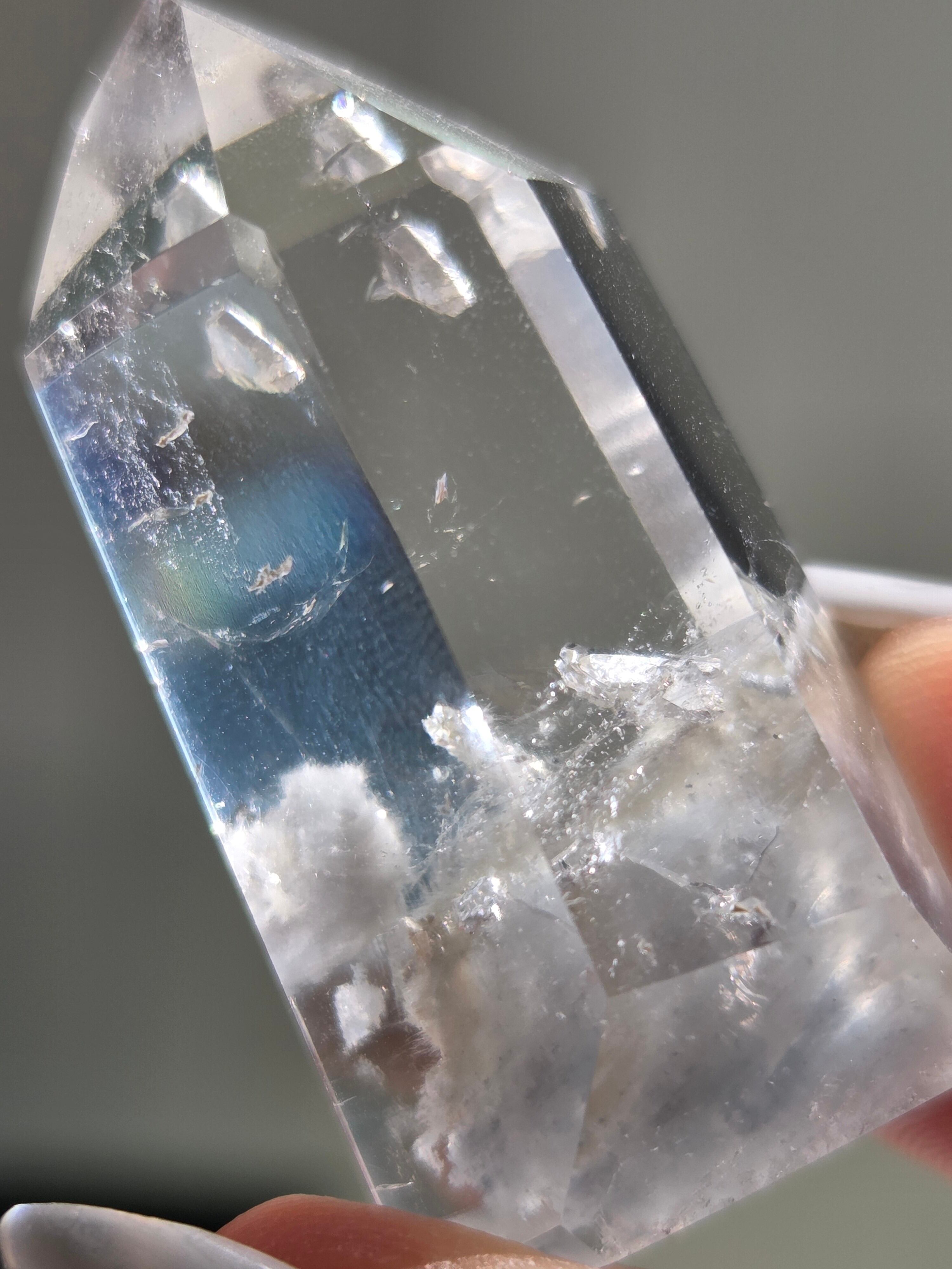ブルーターラクォーツは、リーベカイトやオレナイトのインクルージョンにより青灰色に色付いた水晶です。「ブルーターラ」の名はチベット仏教で信仰されるターラ菩薩に由来しています。