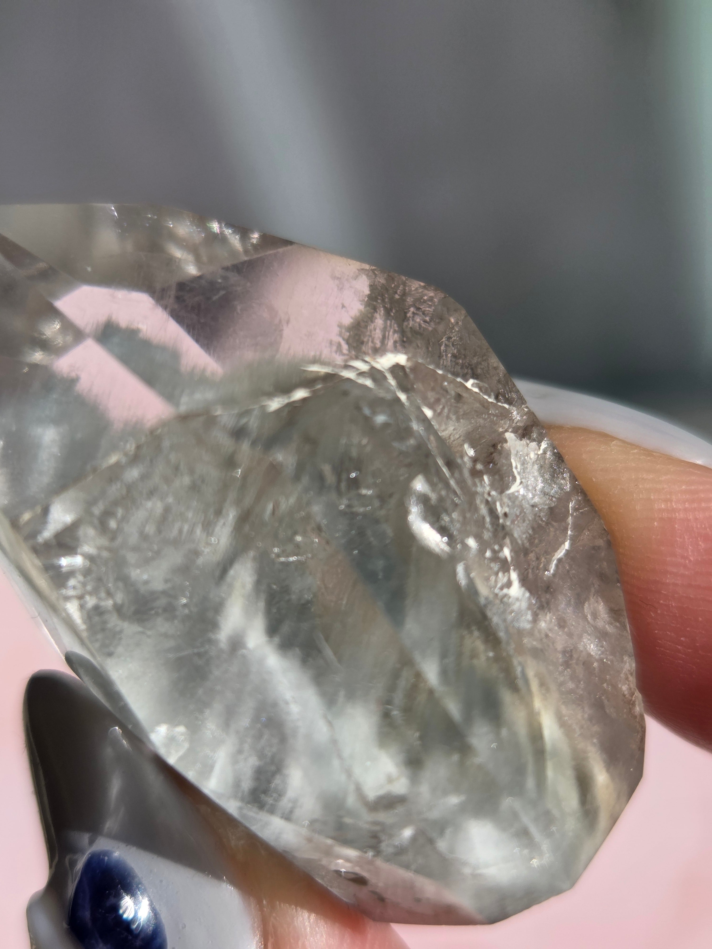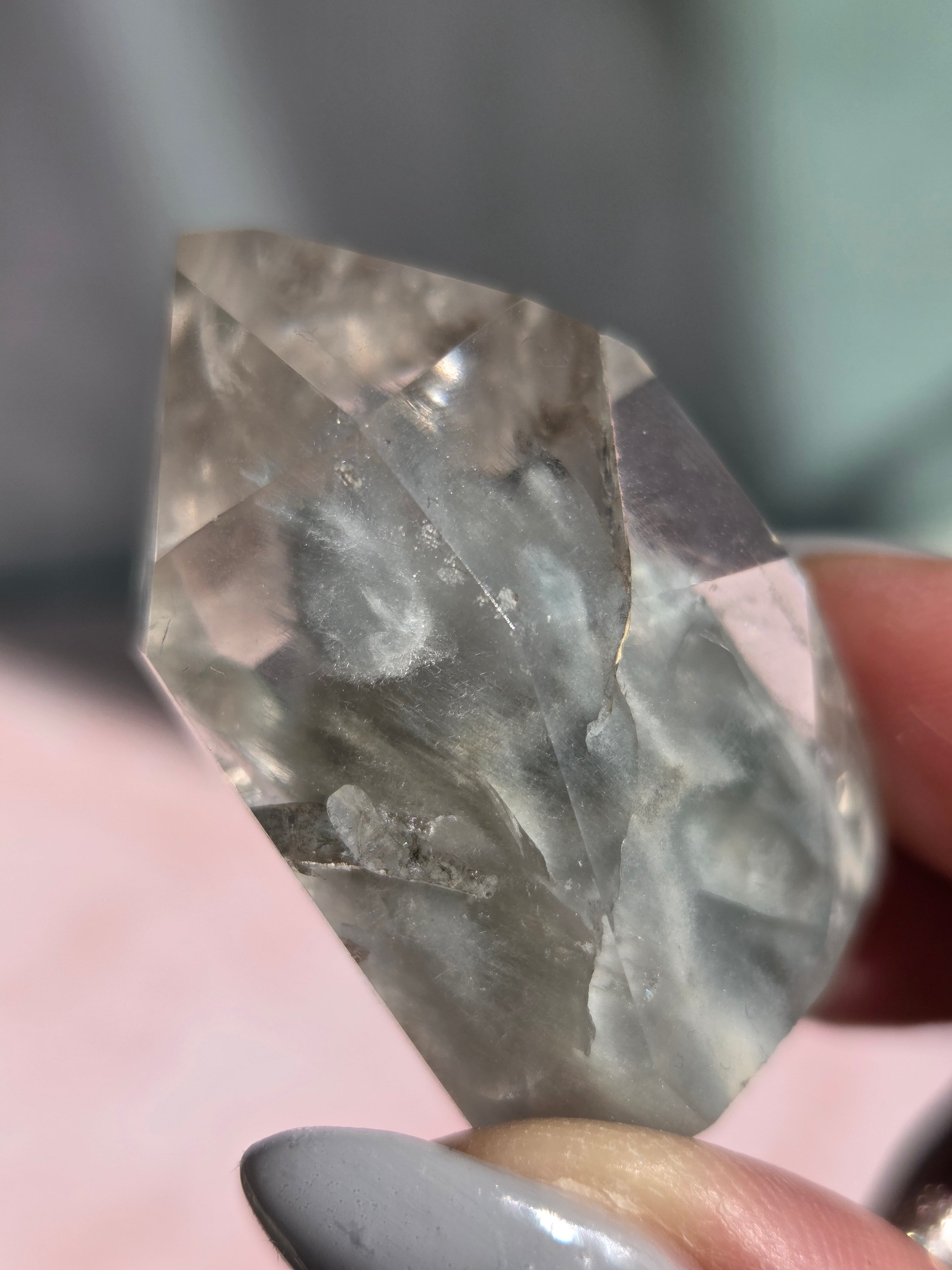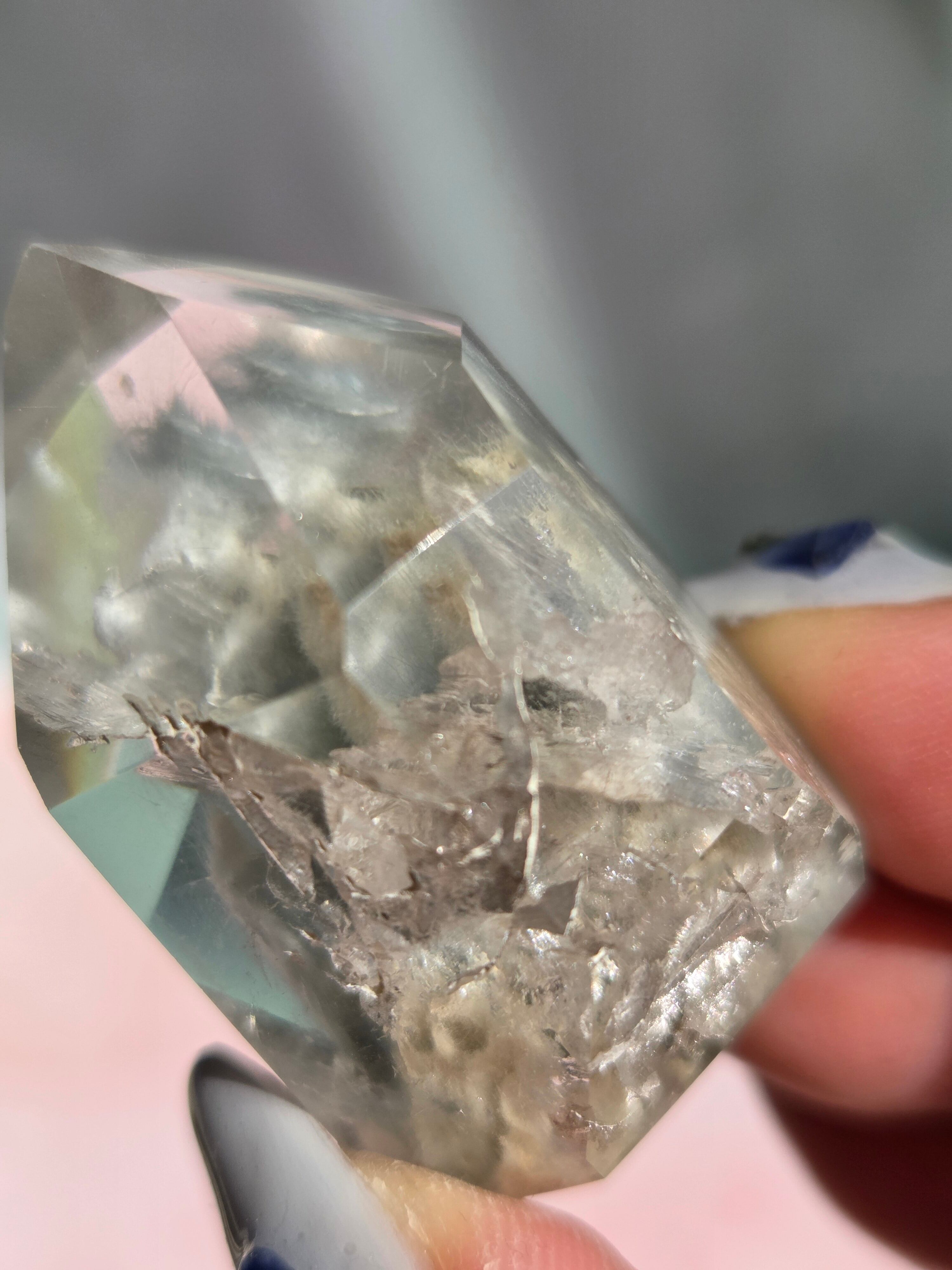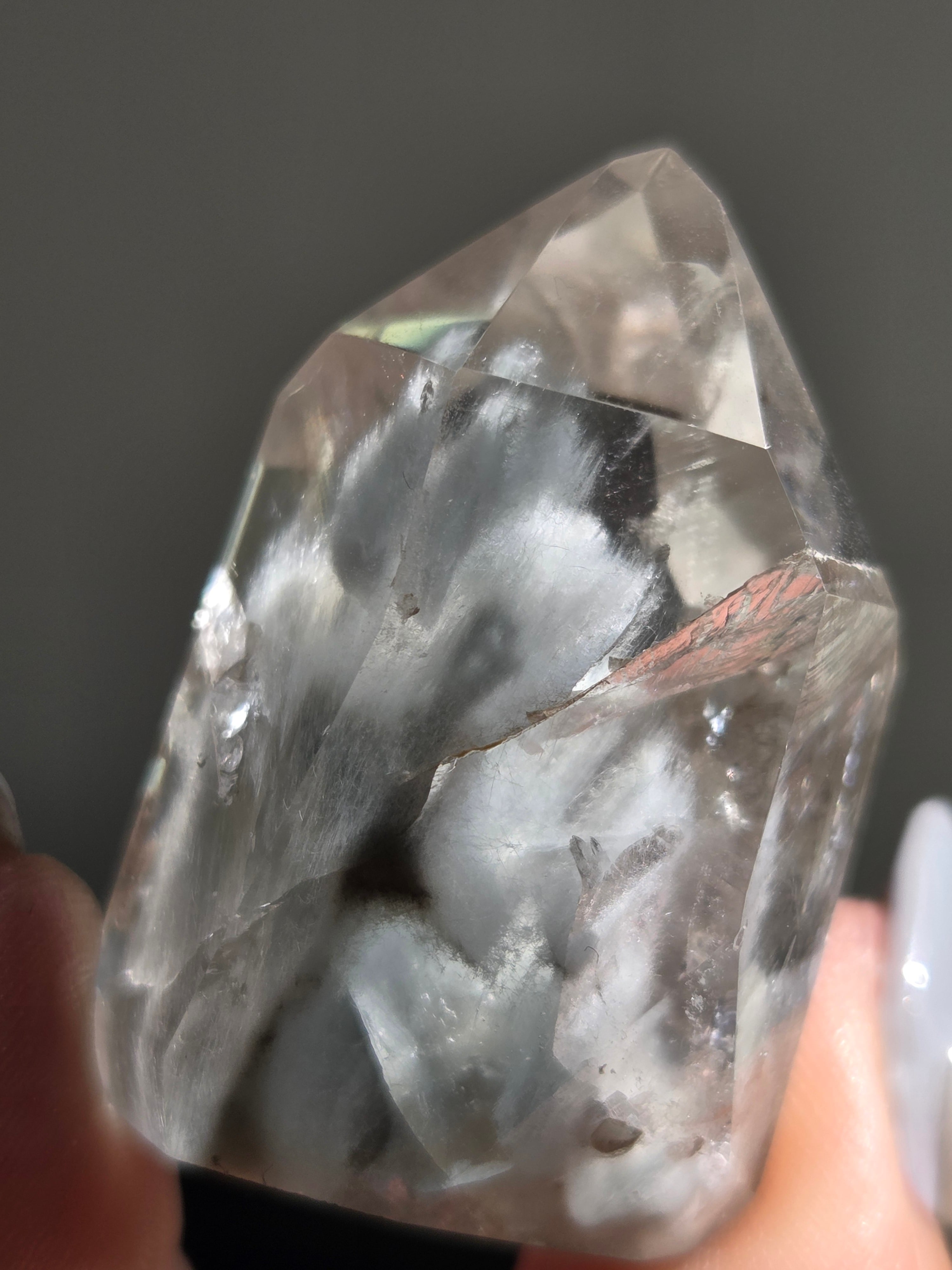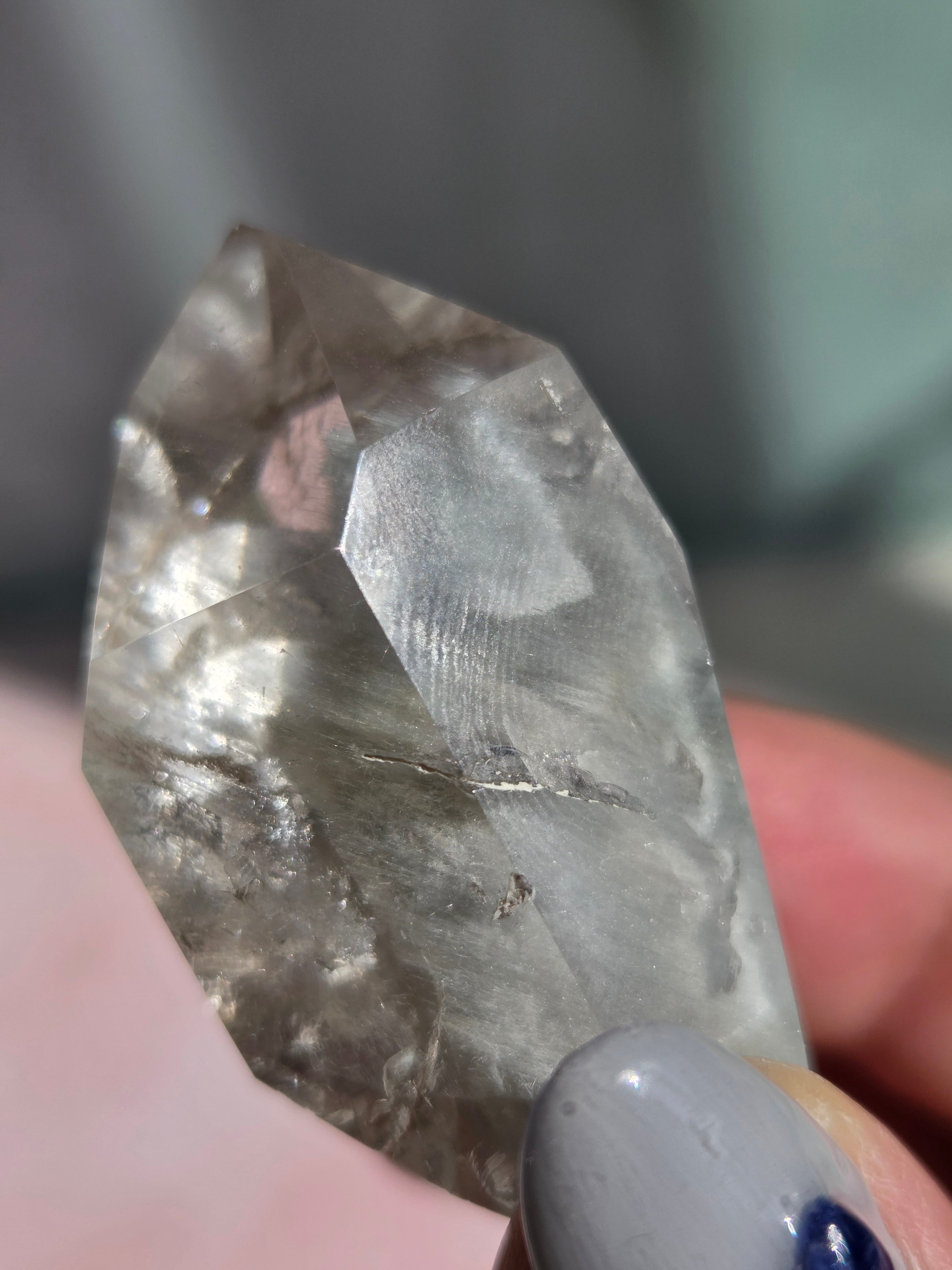 ブルーターラクォーツは、リーベカイトやオレナイトのインクルージョンにより青灰色に色付いた水晶です。「ブルーターラ」の名はチベット仏教で信仰されるターラ菩薩に由来しています。