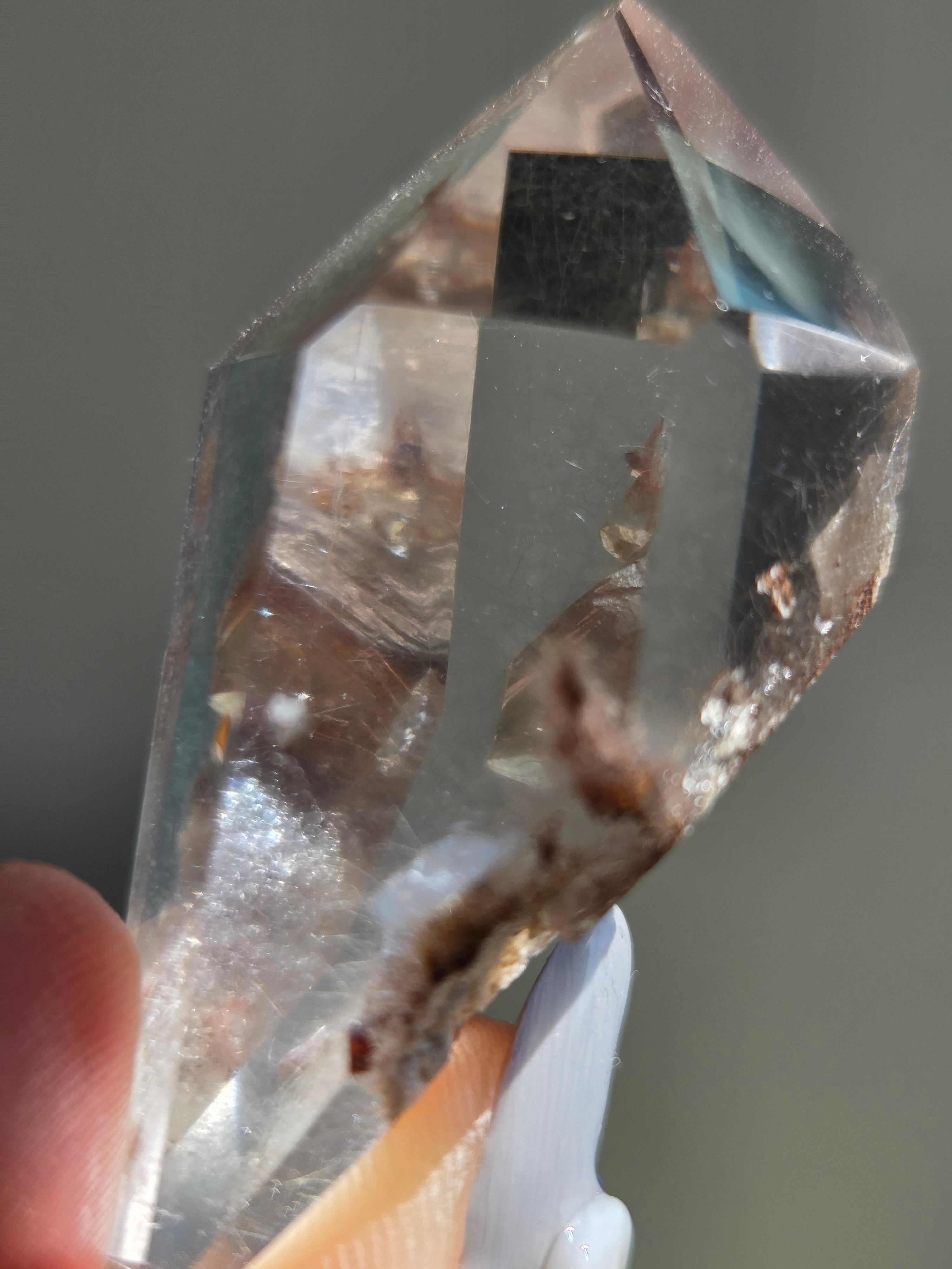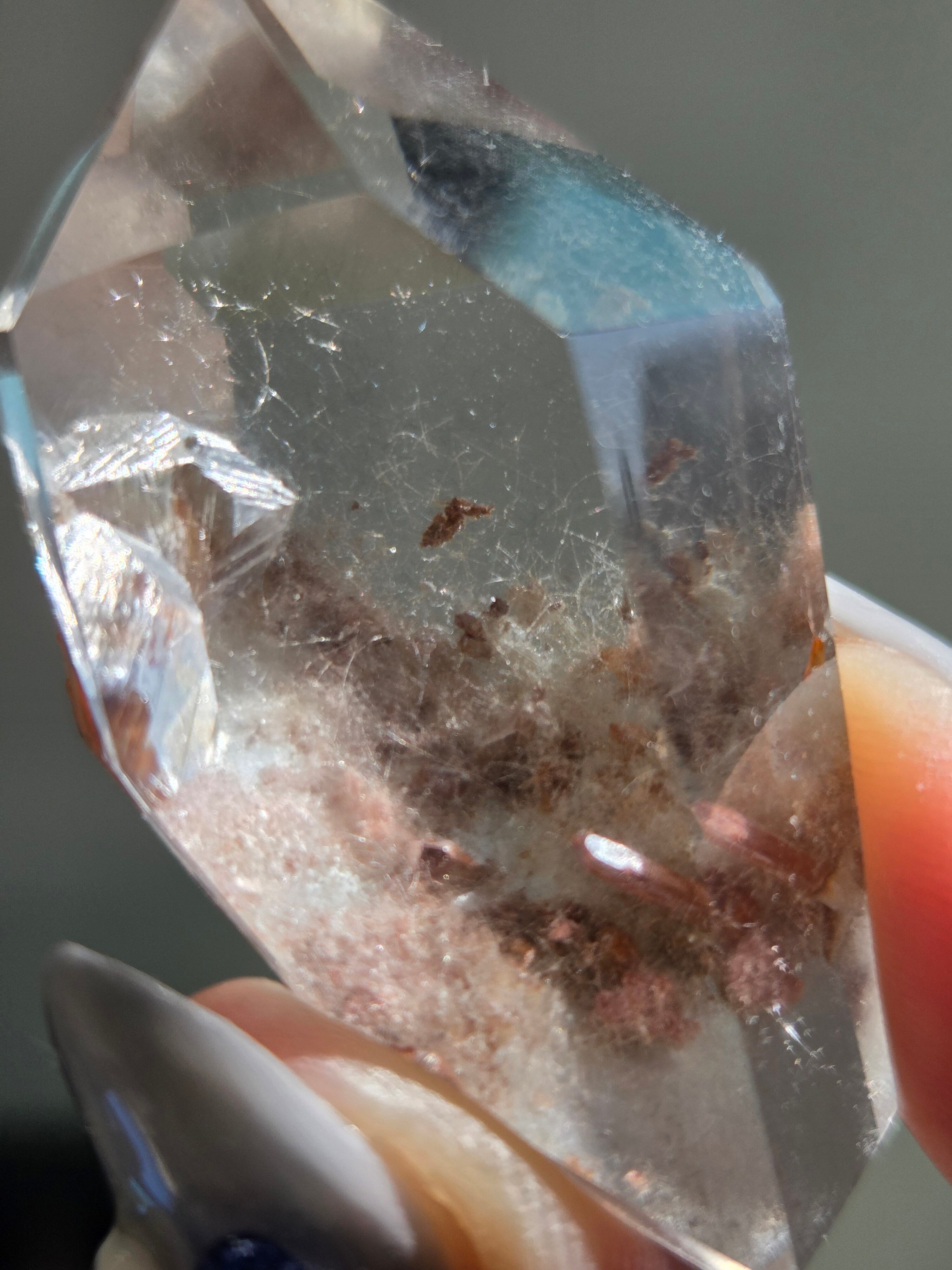 ブルーターラクォーツは、リーベカイトやオレナイトのインクルージョンにより青灰色に色付いた水晶です。「ブルーターラ」の名はチベット仏教で信仰されるターラ菩薩に由来しています。