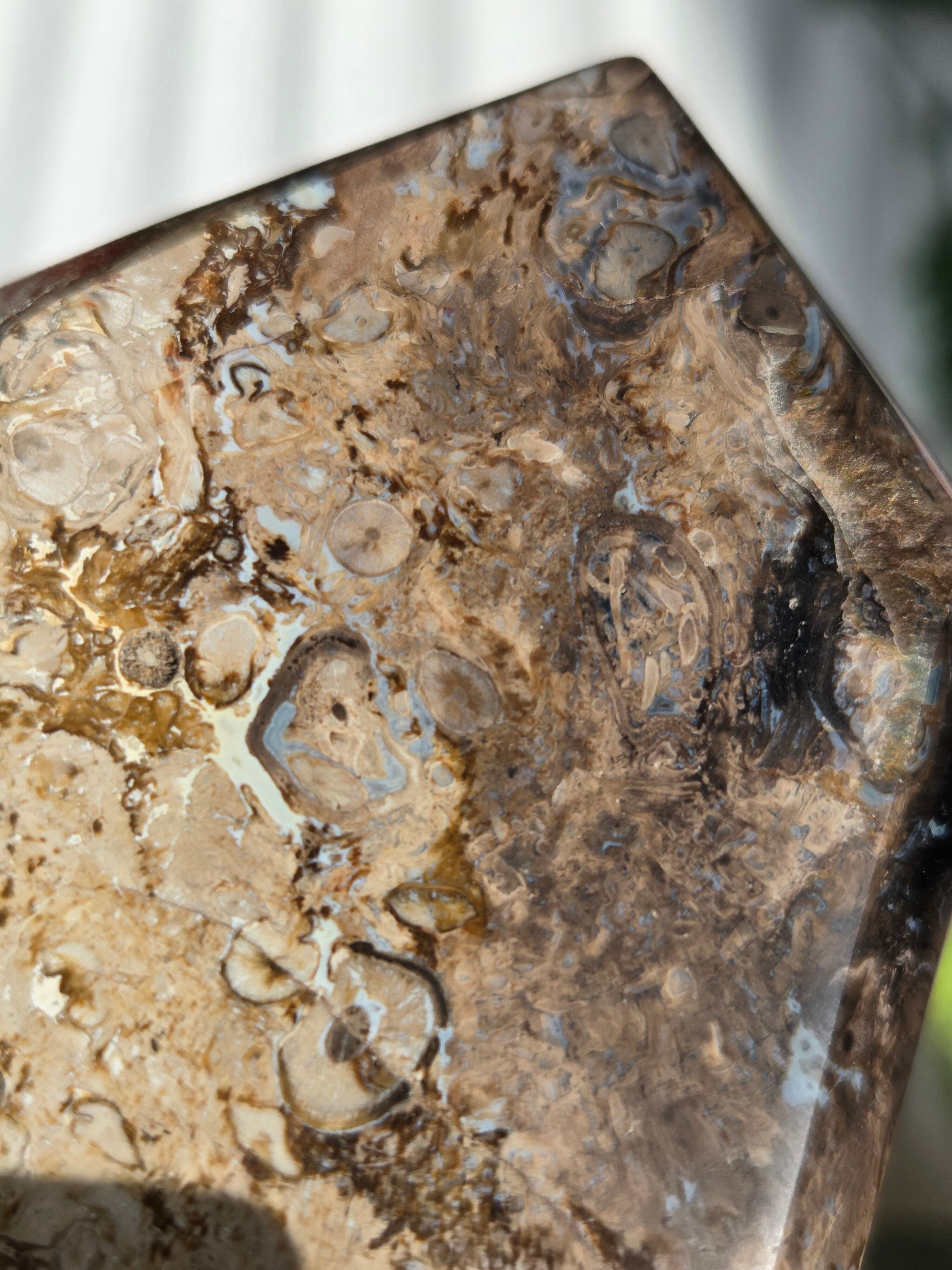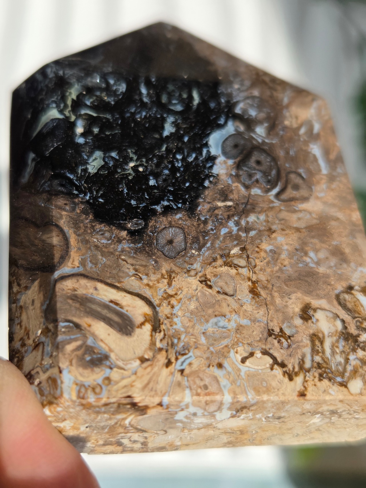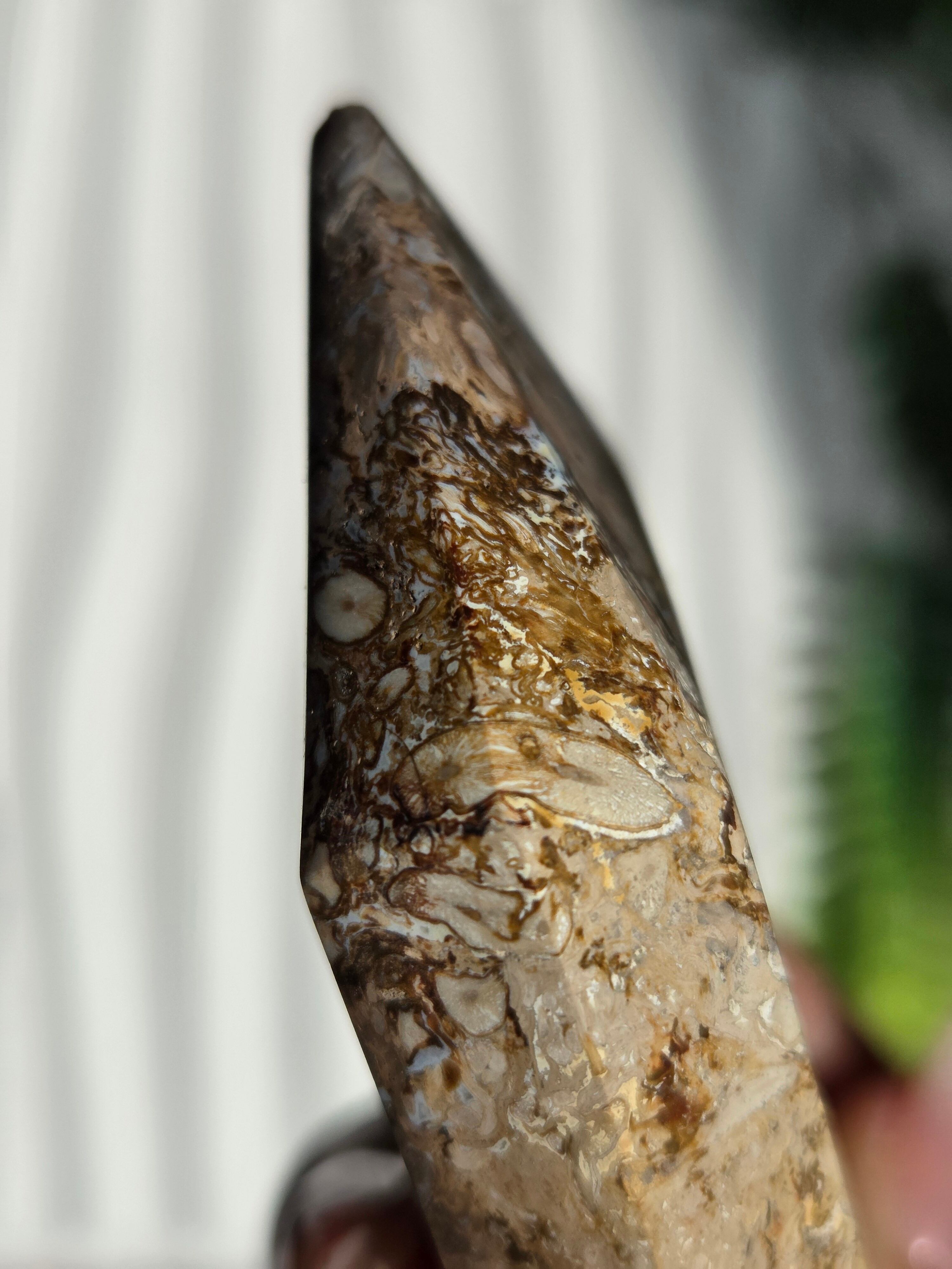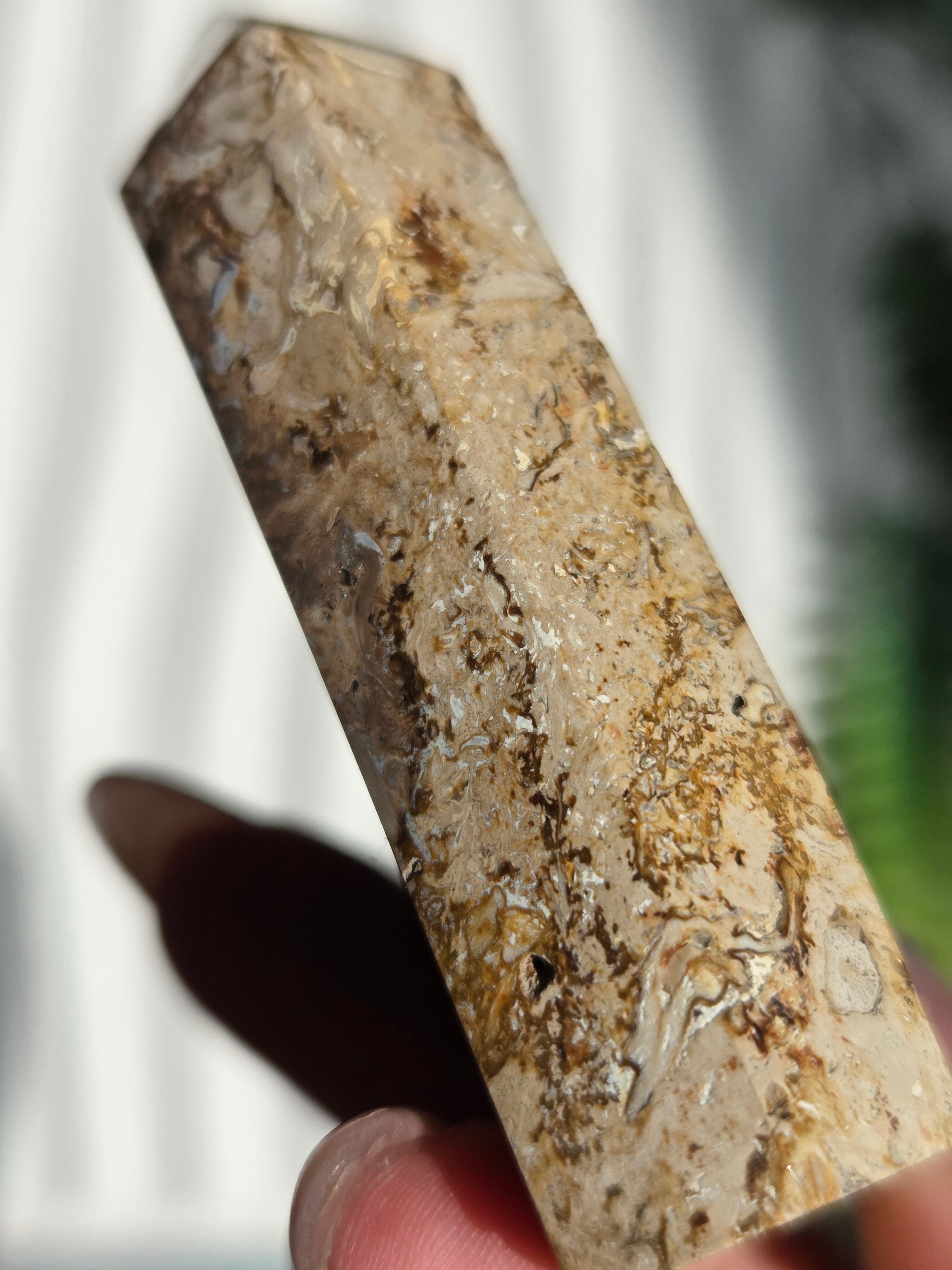 ヤシの木の根にアゲートなどの成分が浸透し、木の組織構造を保ったまま石化した天然石で、フォッシルウッド、ウッドストーンとも呼ばれます