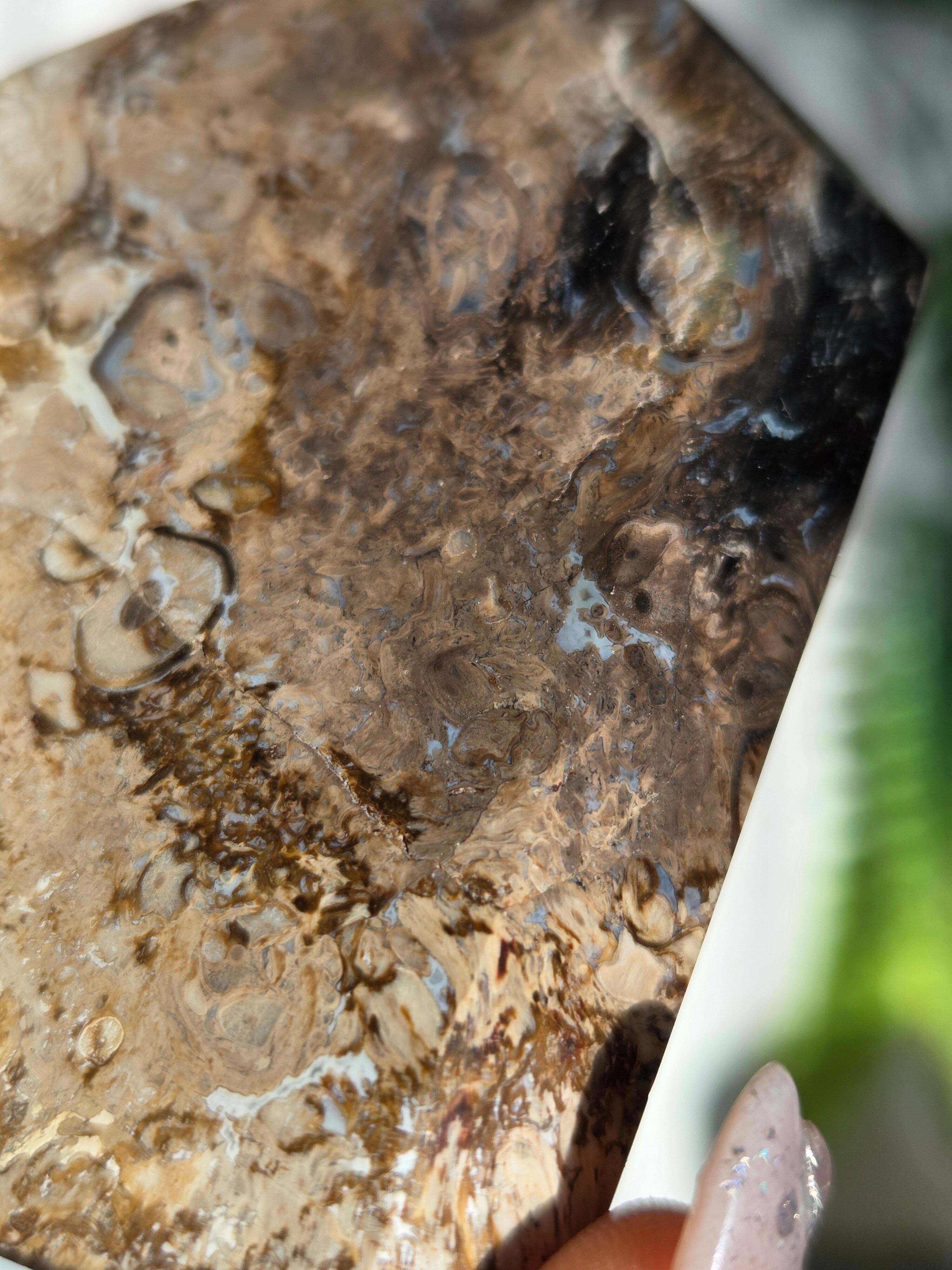 パームルートはグラウンディング」による心の安定と「決断力・意志の強化」です。ヤシの木の根が長い年月をかけて化石化したこの石は、大地のエネルギーをもたらし、ストレスや不安を和らげると言われています。