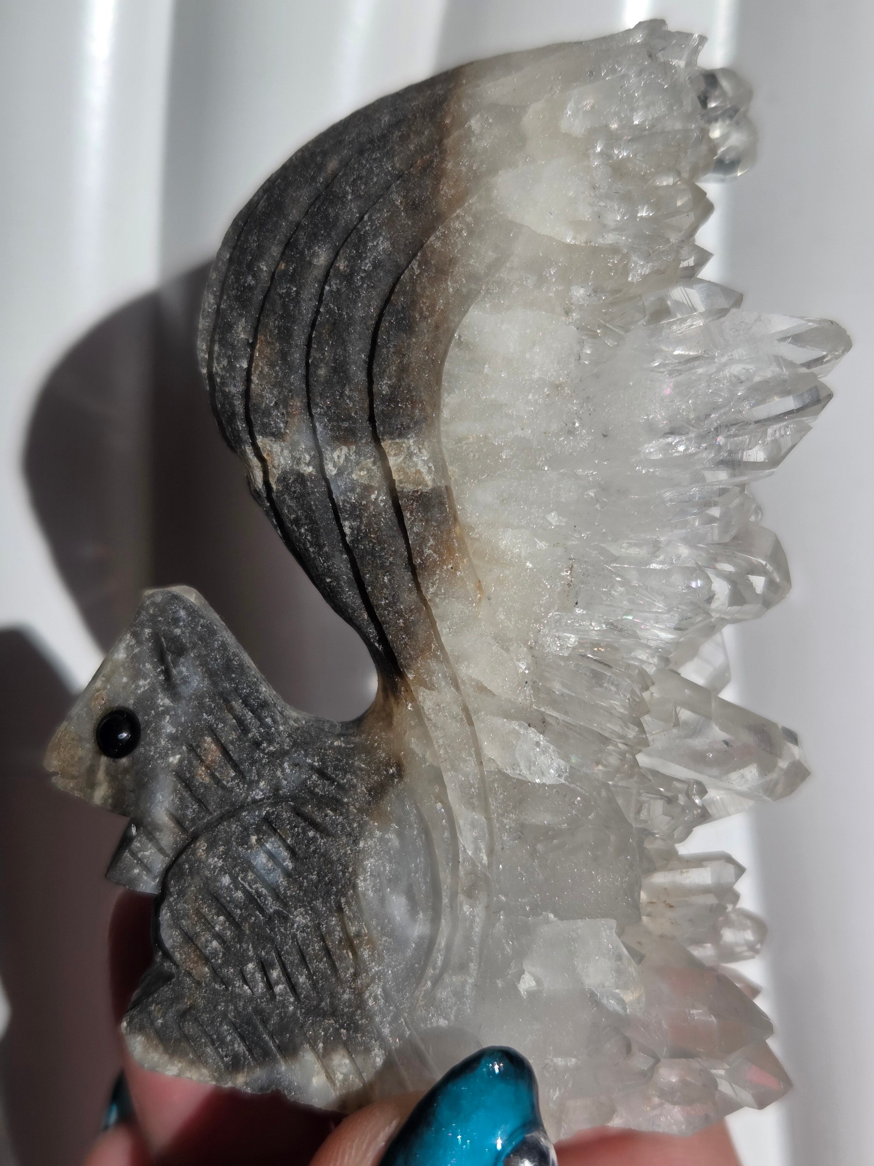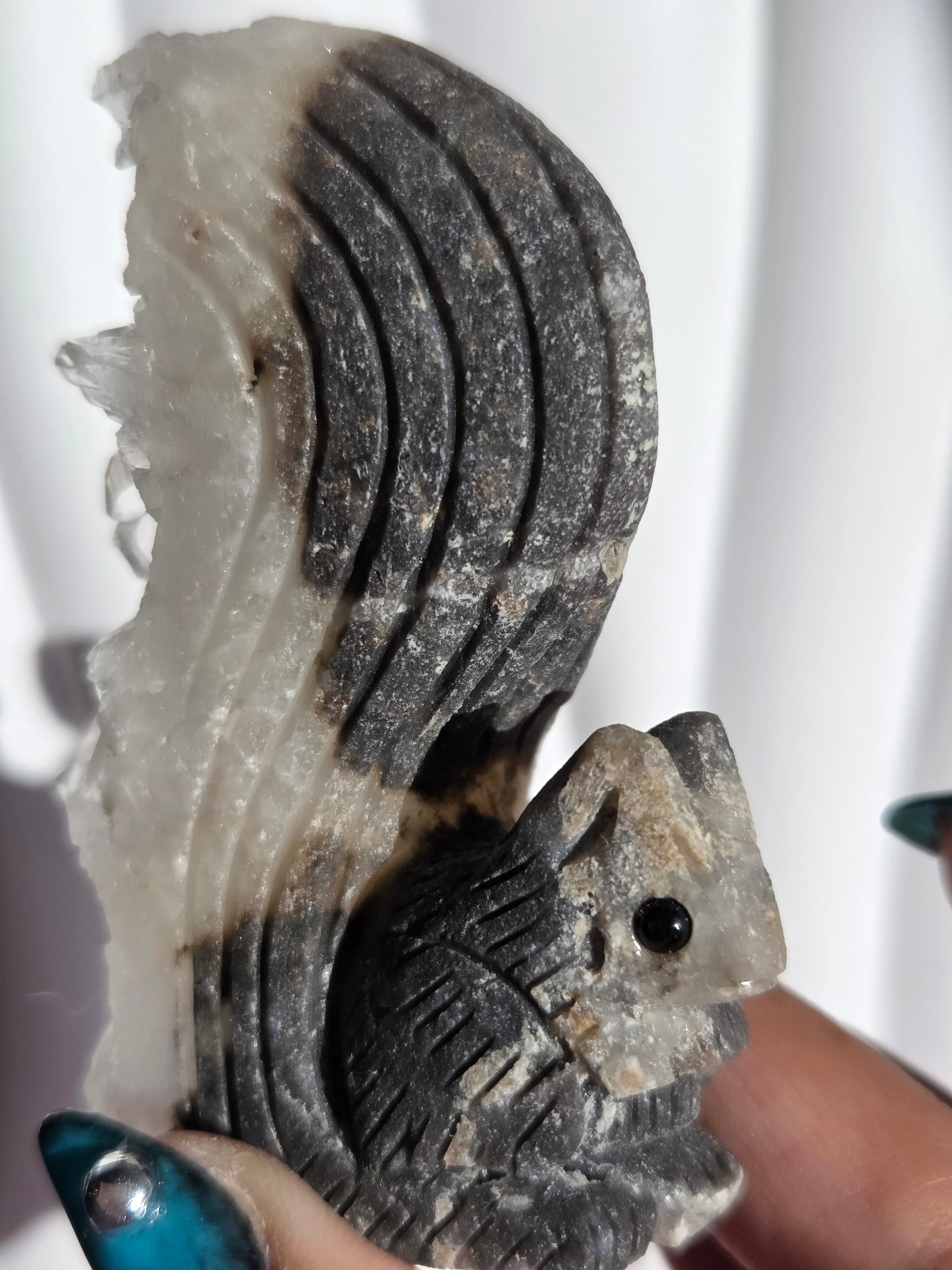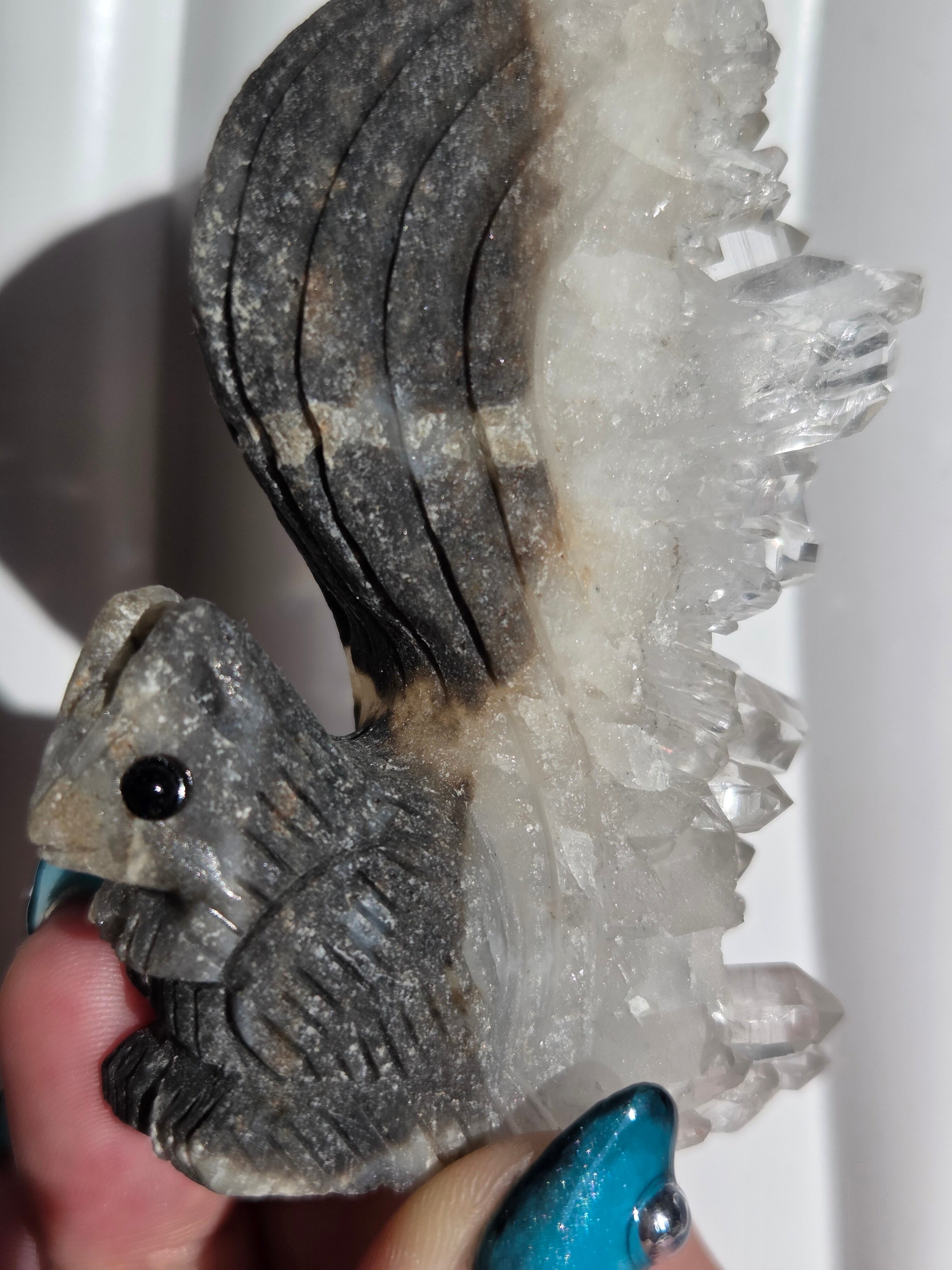りすのカービングで、尻尾部分は水晶クラスターになった可愛い置物です。
