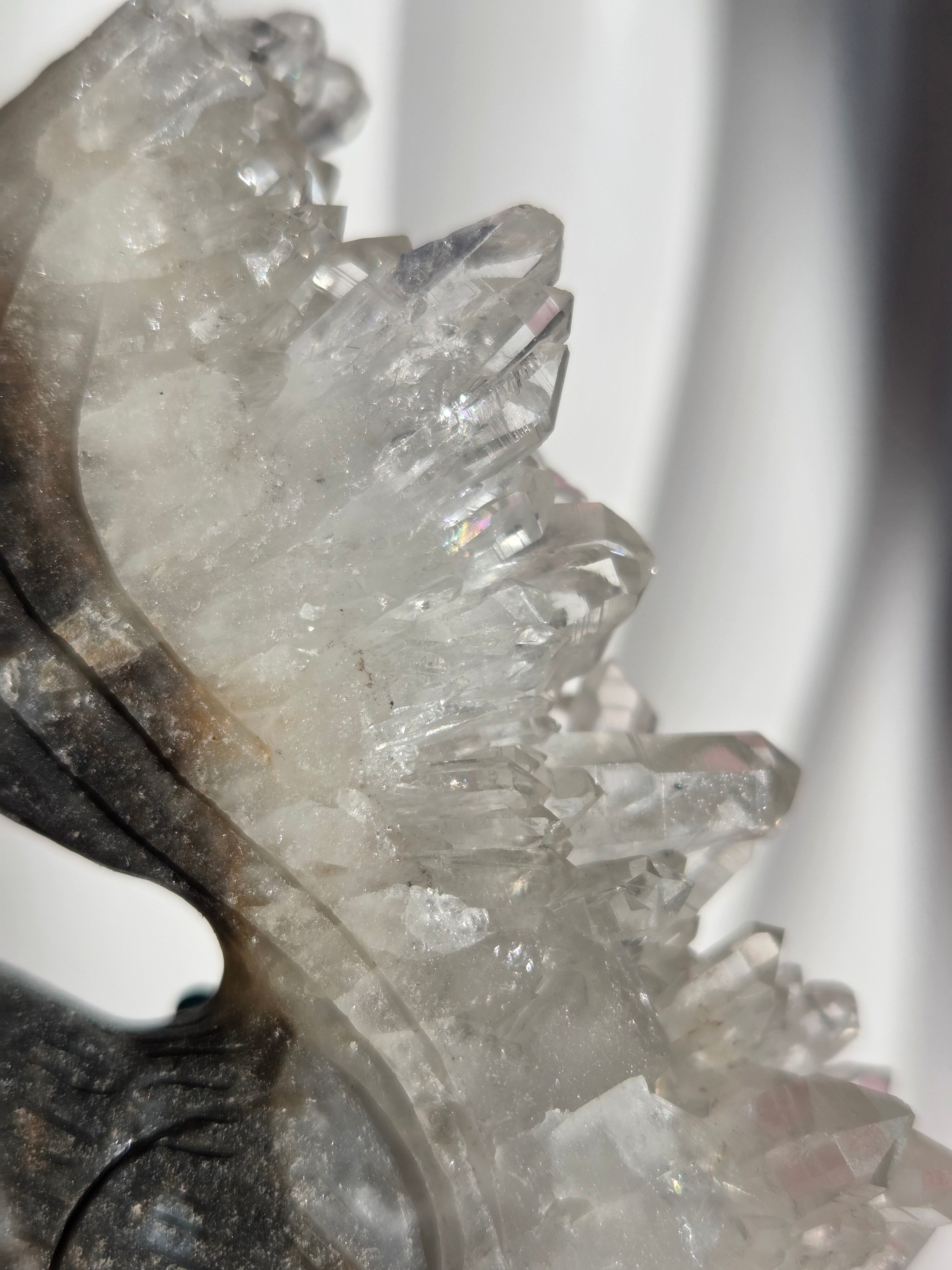 水晶クラスターは複数の水晶が集まった「クラスター」が持つ強力な浄化作用により、周囲の空間、物、そして人のエネルギーを浄化し、ネガティブなエネルギーを取り除き、空間に調和とバランスをもたらすとされるものです。特に、多方向へエネルギーを放射するクラスターの形状がその浄化パワーを広範囲に及ぼし、他のパワーストーンの浄化やチャージにも活用されるとされています。