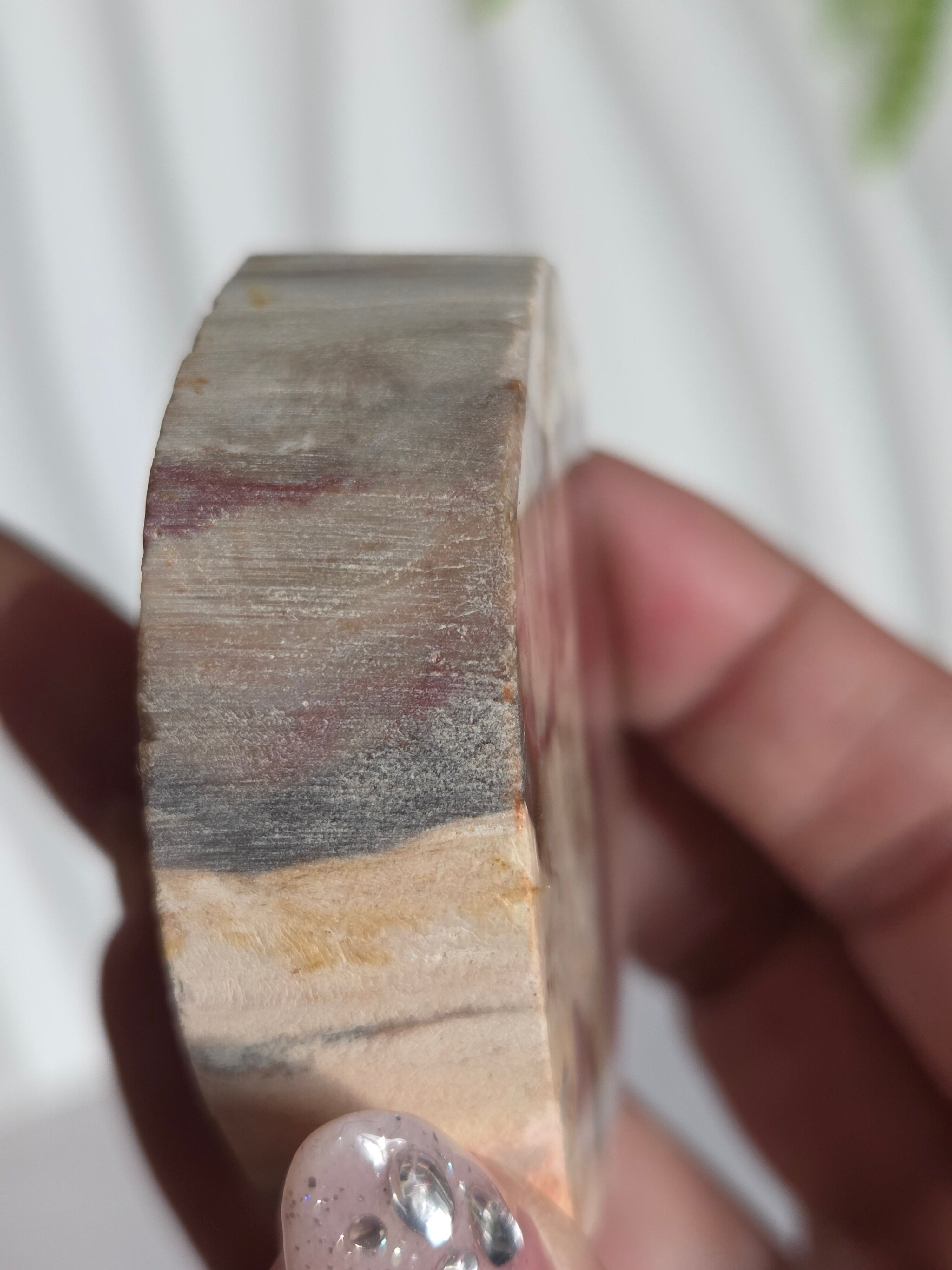 珪化木(けいかぼく)とは、地中に埋没した樹木が、珪酸分を含む地下水によって、木の組織が石英や玉髄などの鉱物に置き換わって化石になったものです。珪化木は「木の化石」とも呼ばれ、硬く、木材の微細な構造や年輪が残っていることもあります。馴染みやすい自然の雰囲気が素敵です。