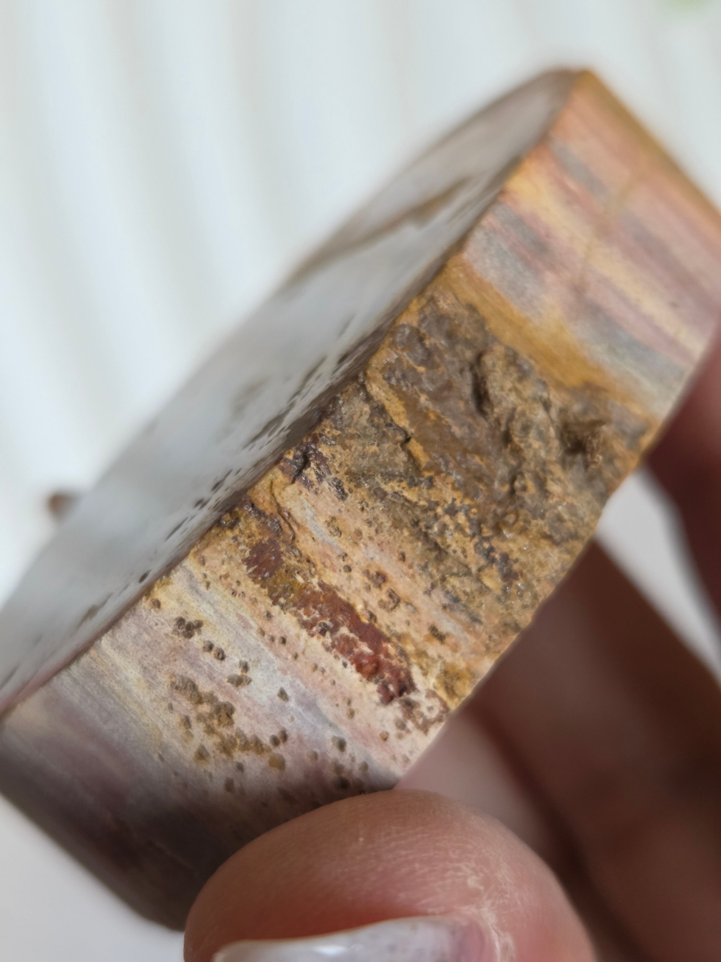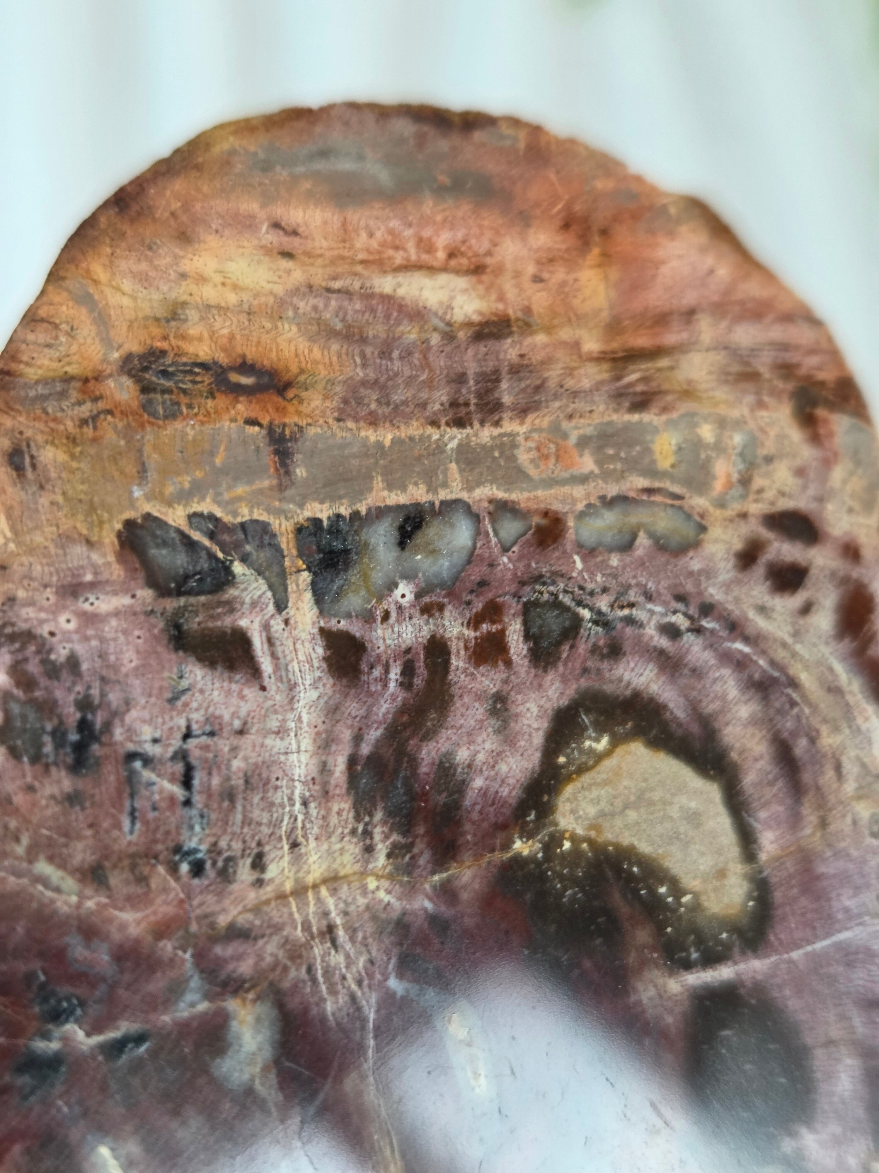 珪化木(けいかぼく)とは、地中に埋没した樹木が、珪酸分を含む地下水によって、木の組織が石英や玉髄などの鉱物に置き換わって化石になったものです。珪化木は「木の化石」とも呼ばれ、硬く、木材の微細な構造や年輪が残っていることもあります。馴染みやすい自然の雰囲気が素敵です。
