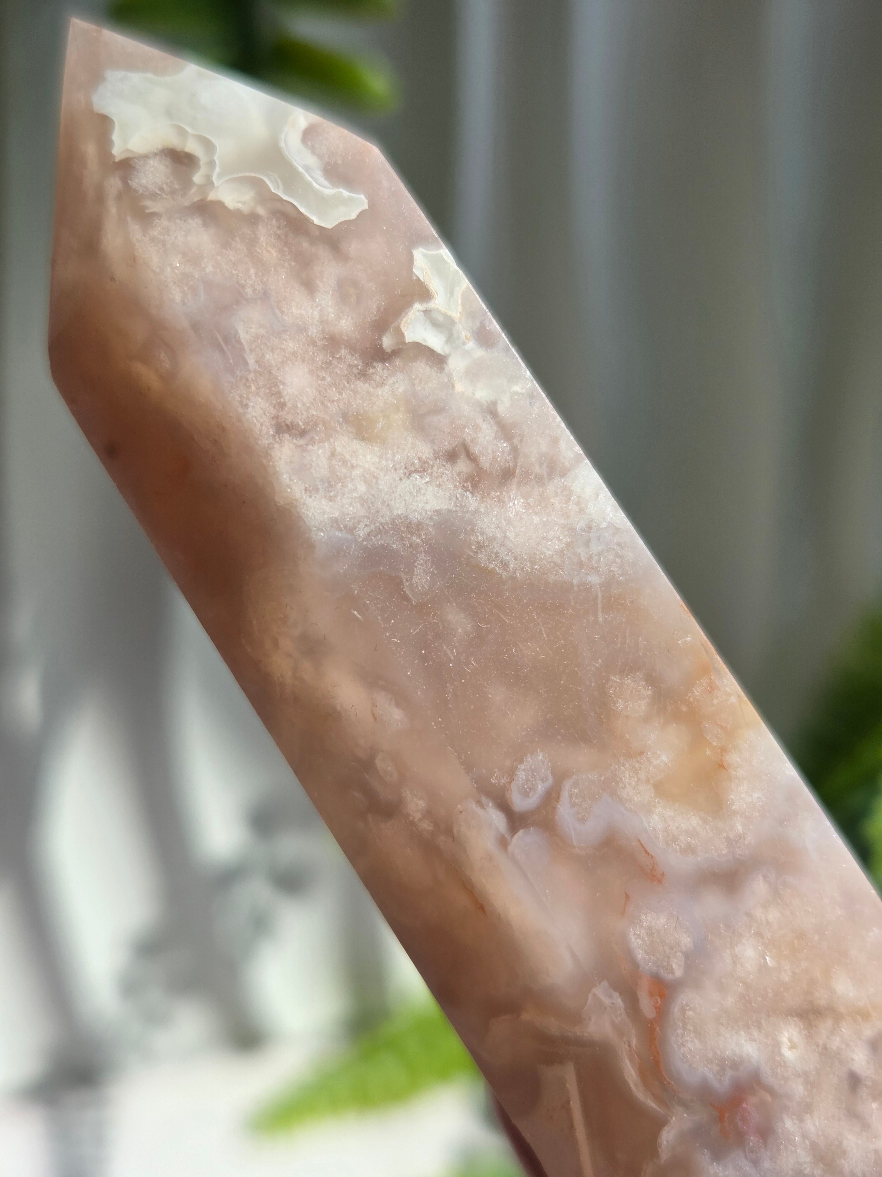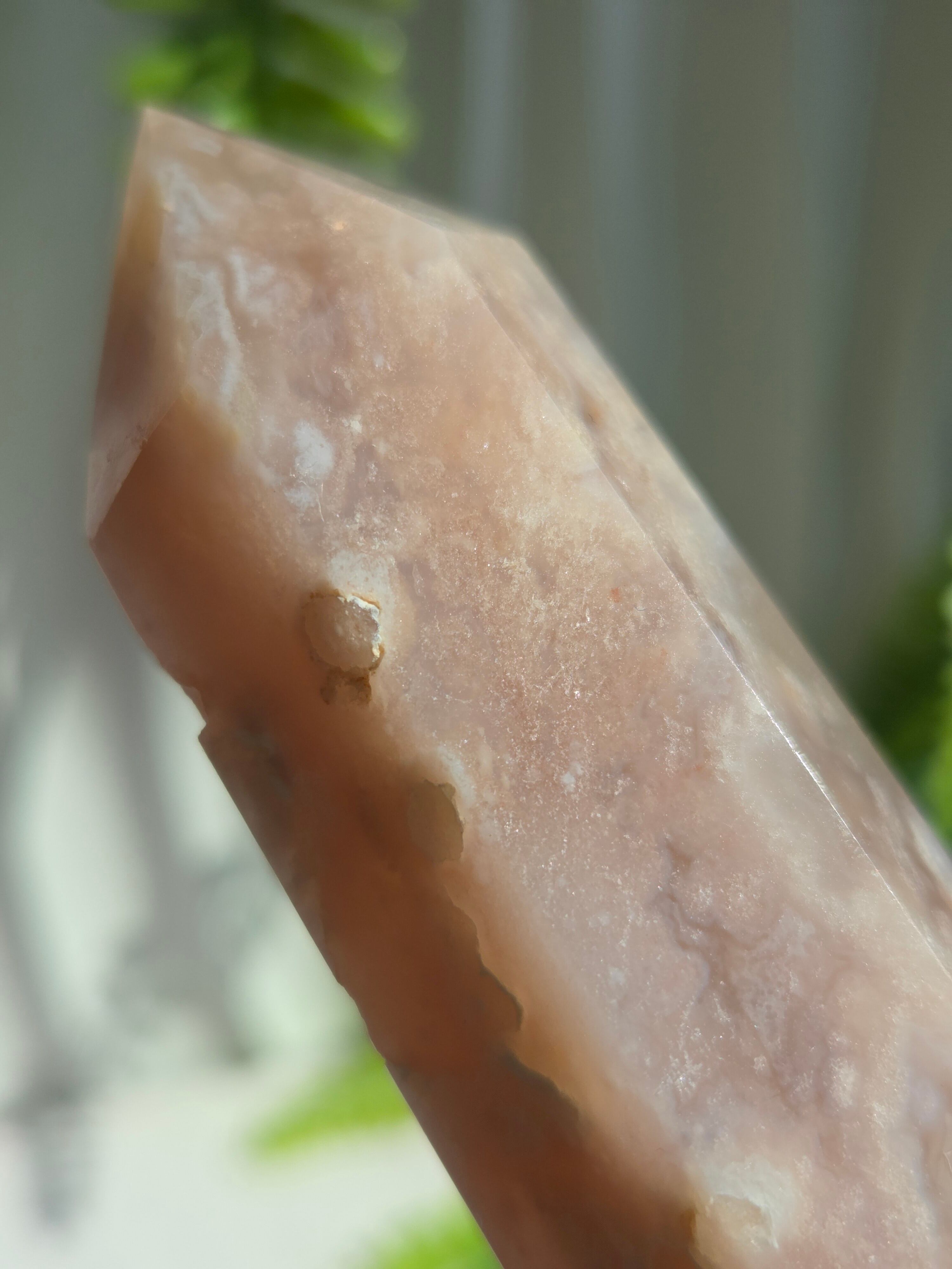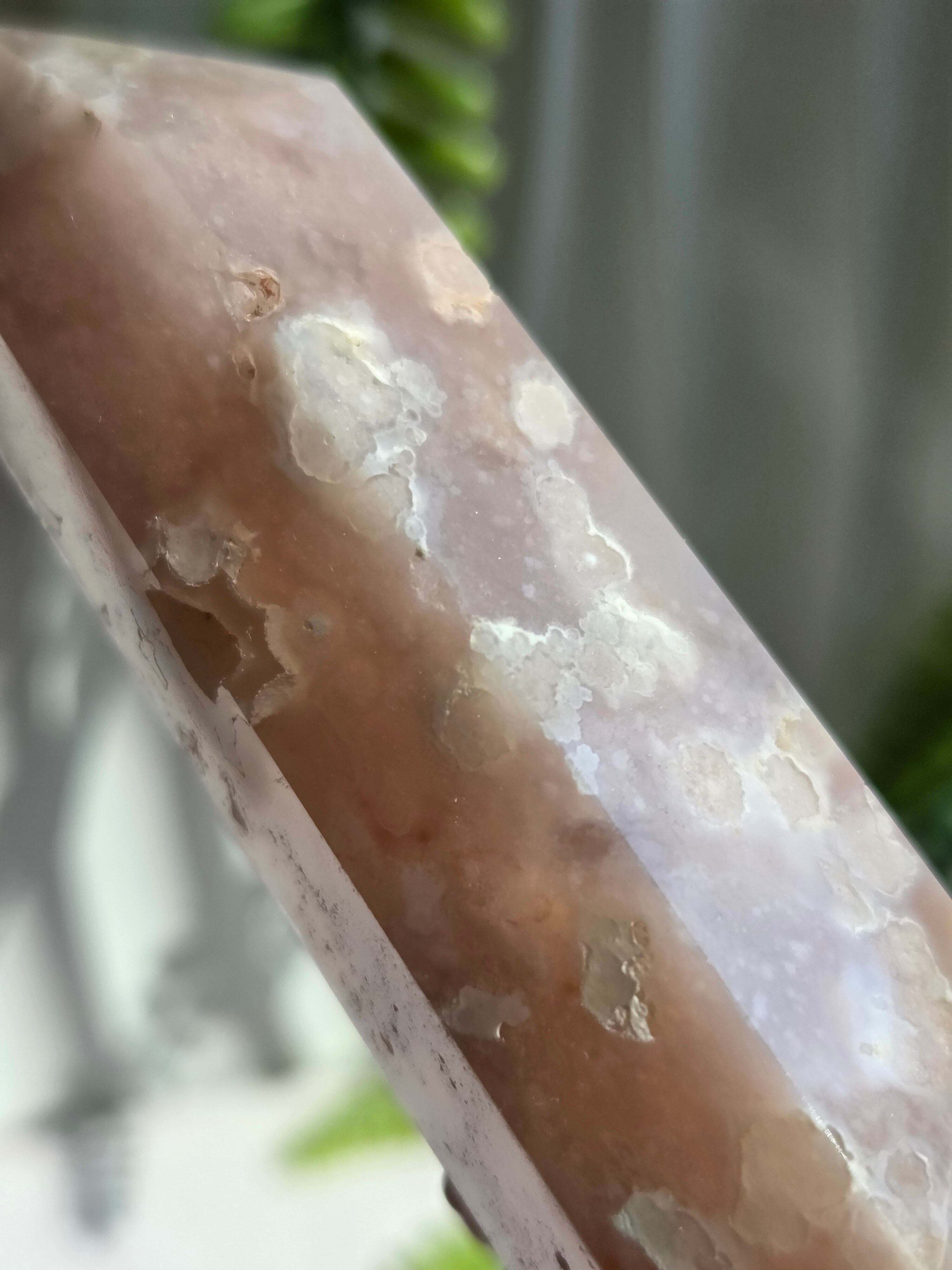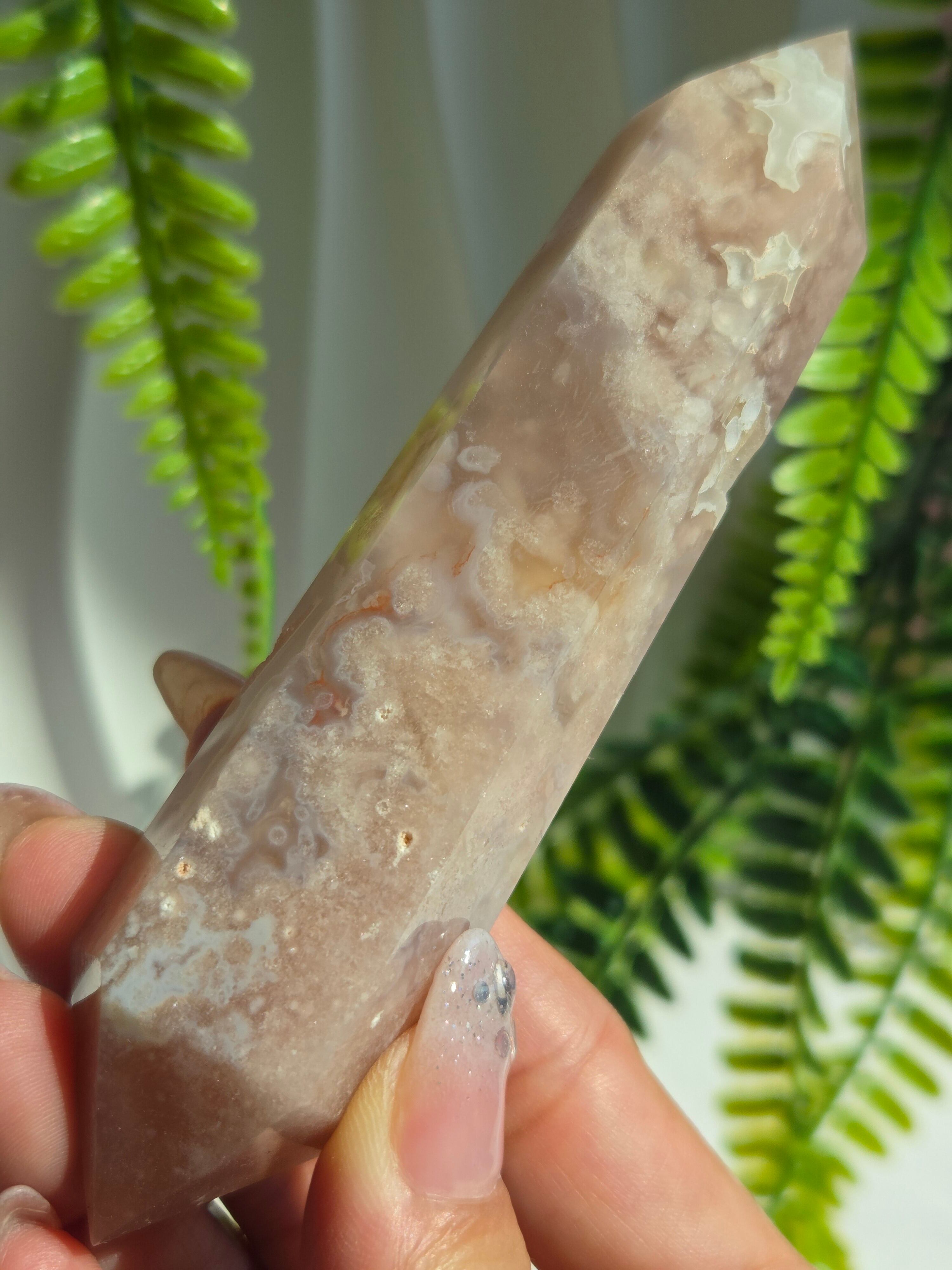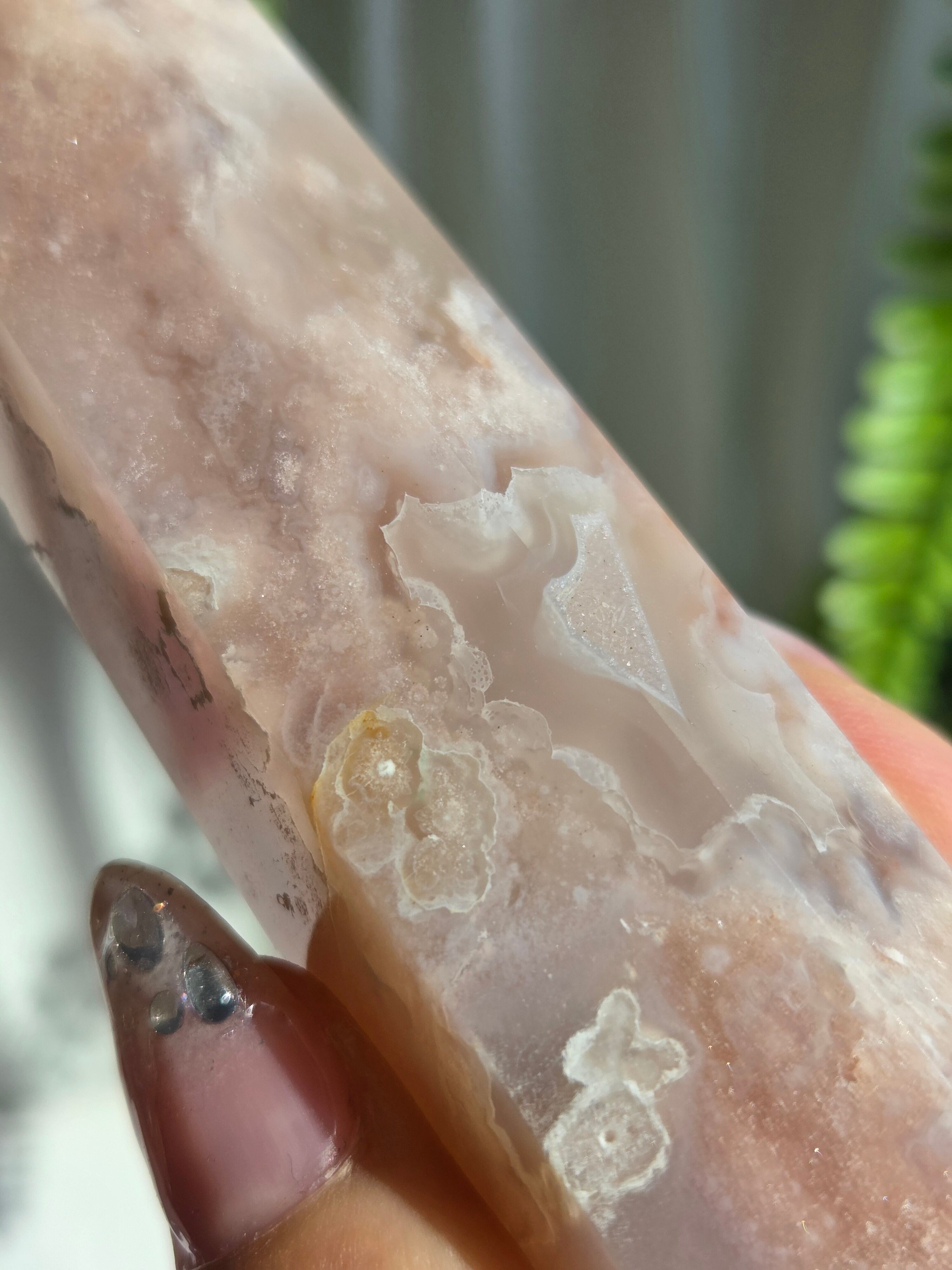 ピンクアメジストに、フラワーアゲートが共生したダブルポイント形