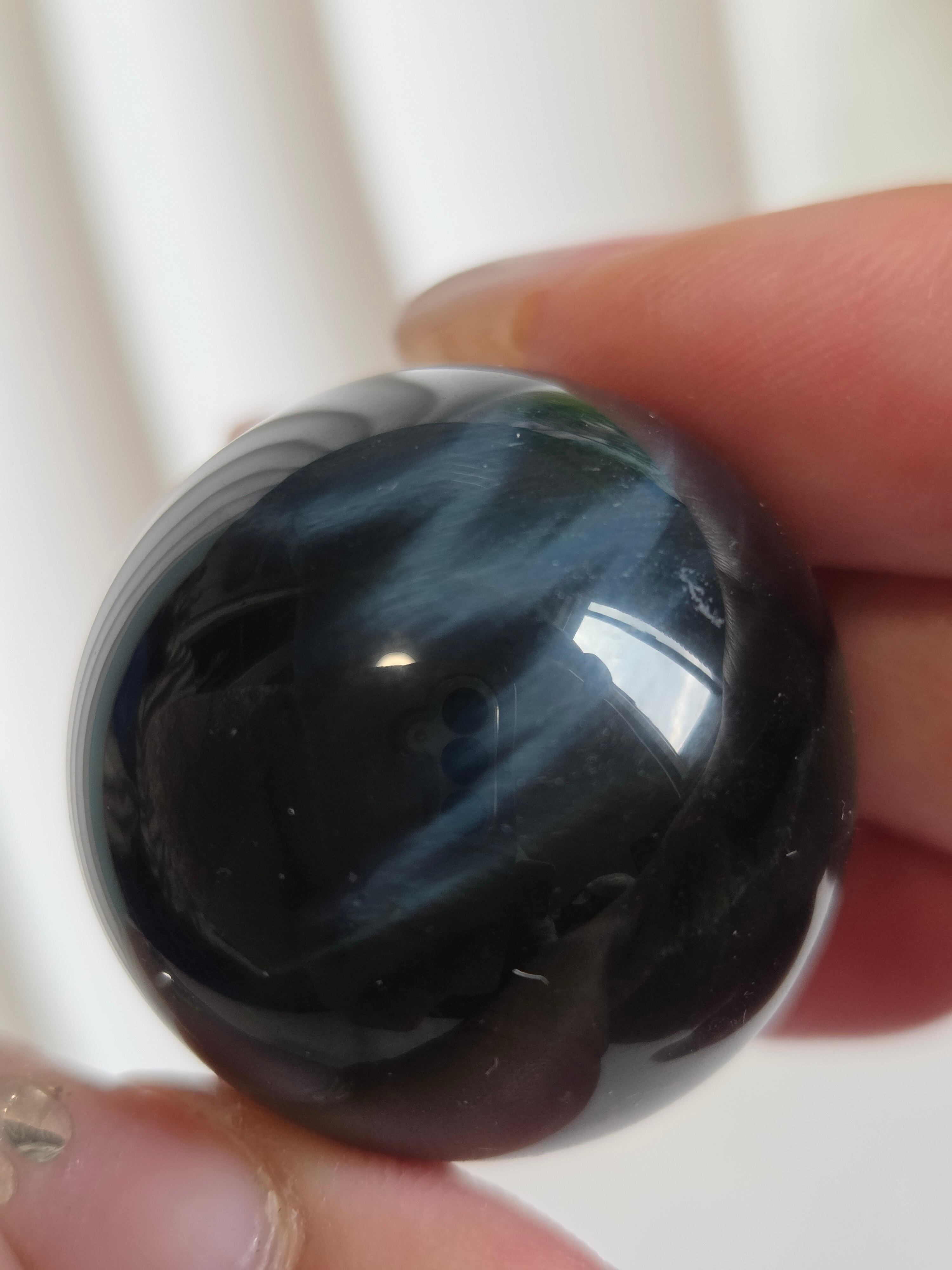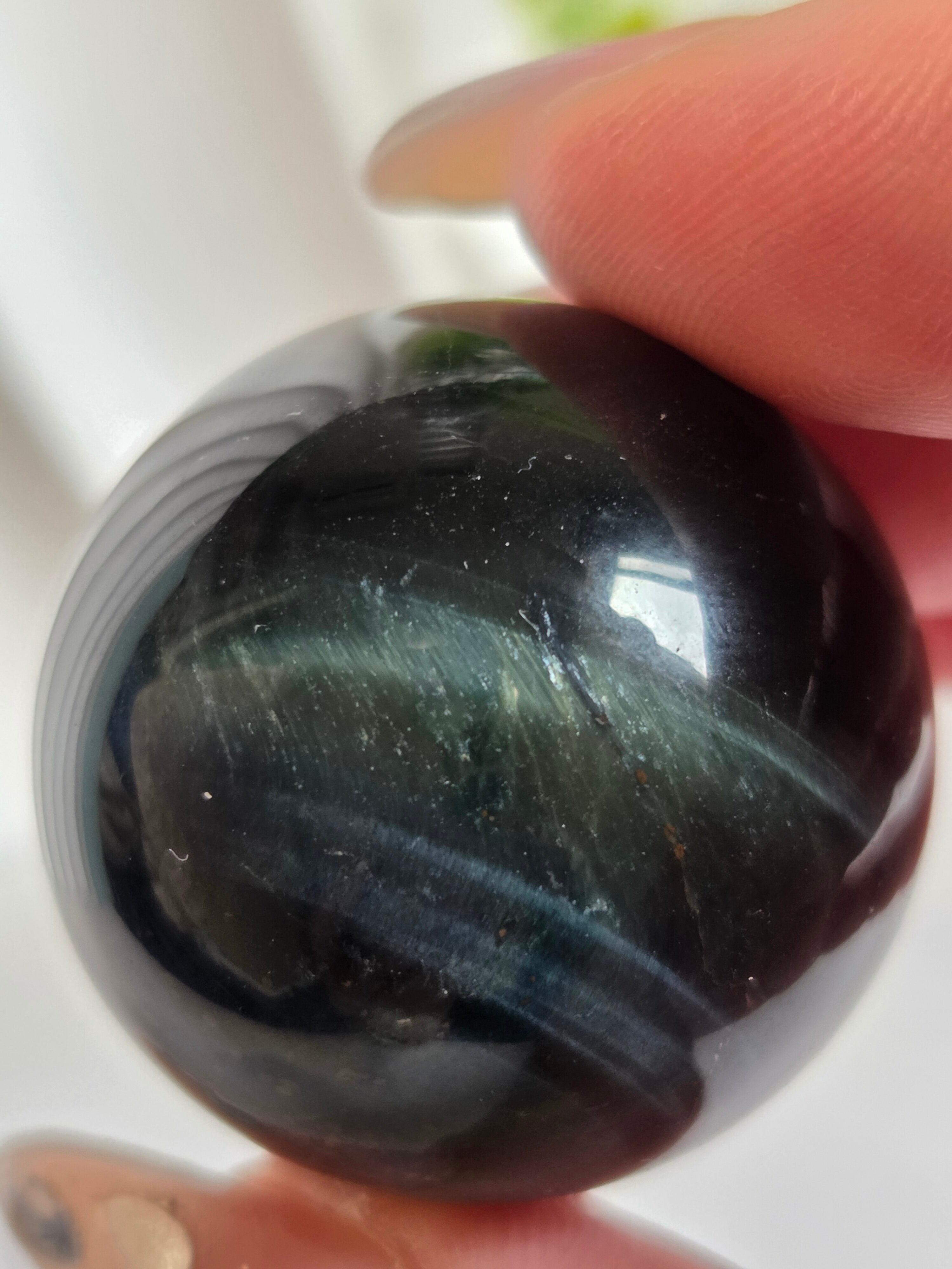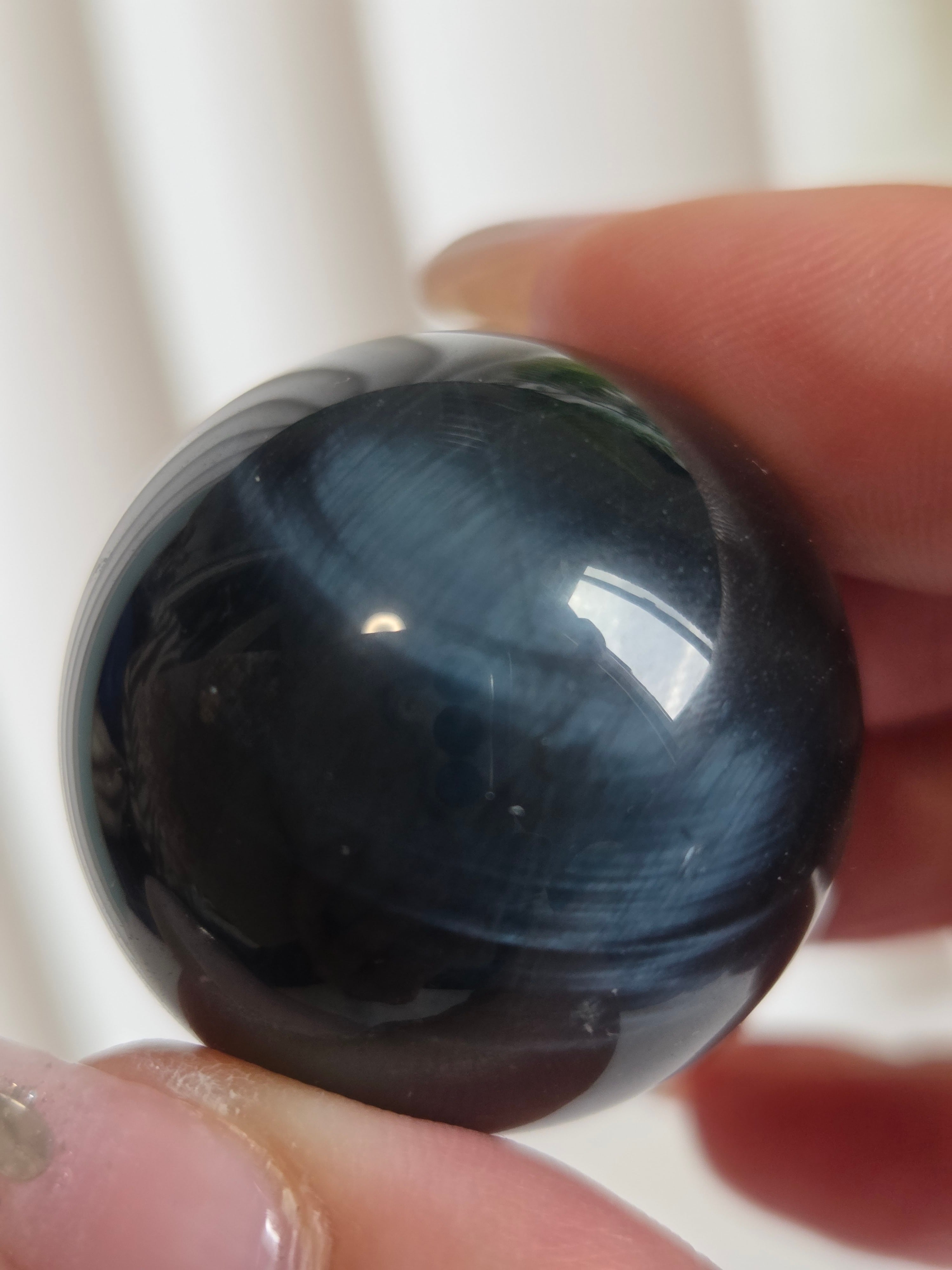 ブルータイガーアイ(ホークスアイ)は、洞察力・判断力の向上、仕事運・金運のアップ、魔除け・邪気払いの力があるといわれています。また、冷静さを保つ、視野を広げる、決断力を高める効果もあり、ビジネスの成功や目標達成をサポートするとされています。