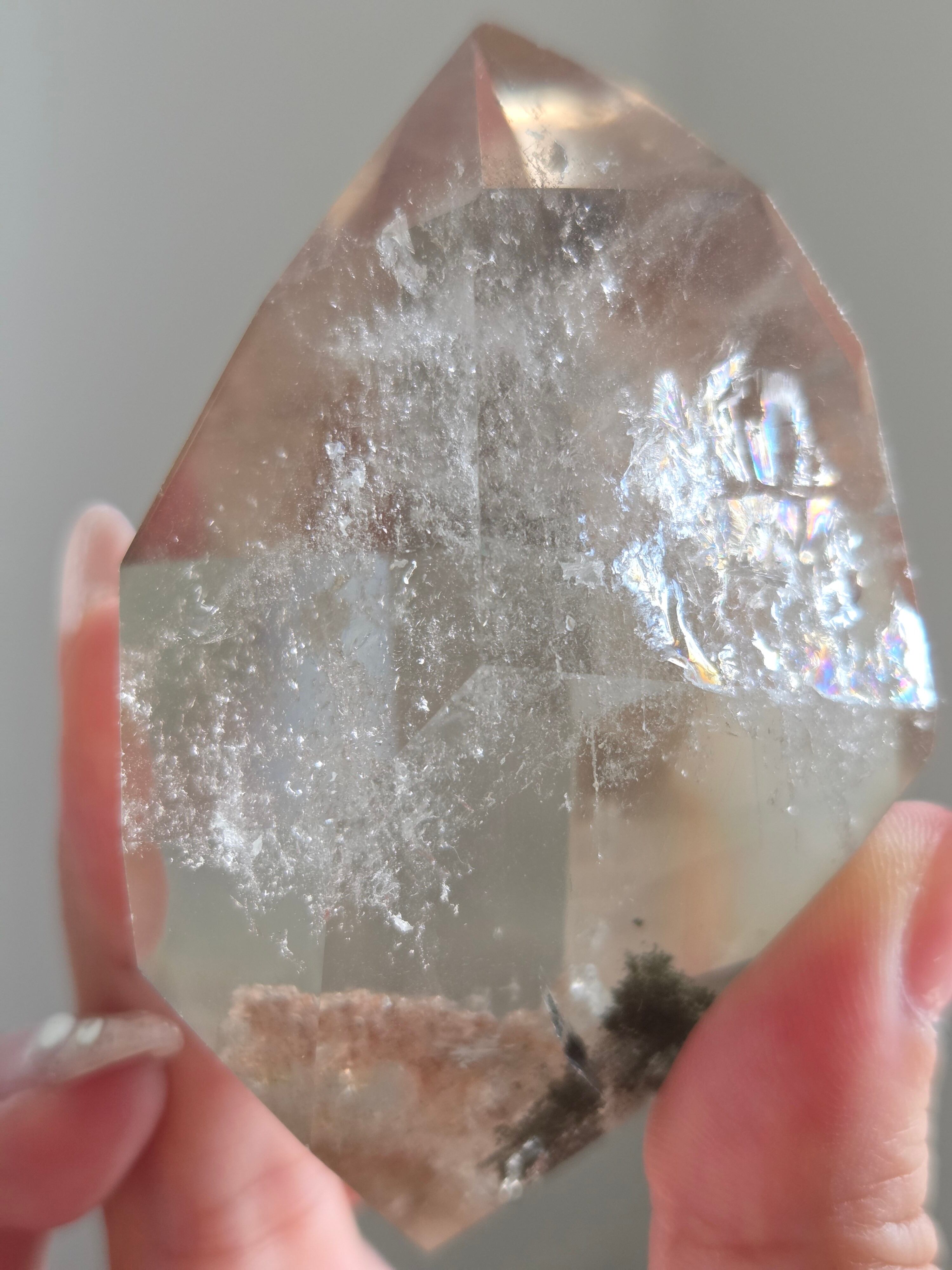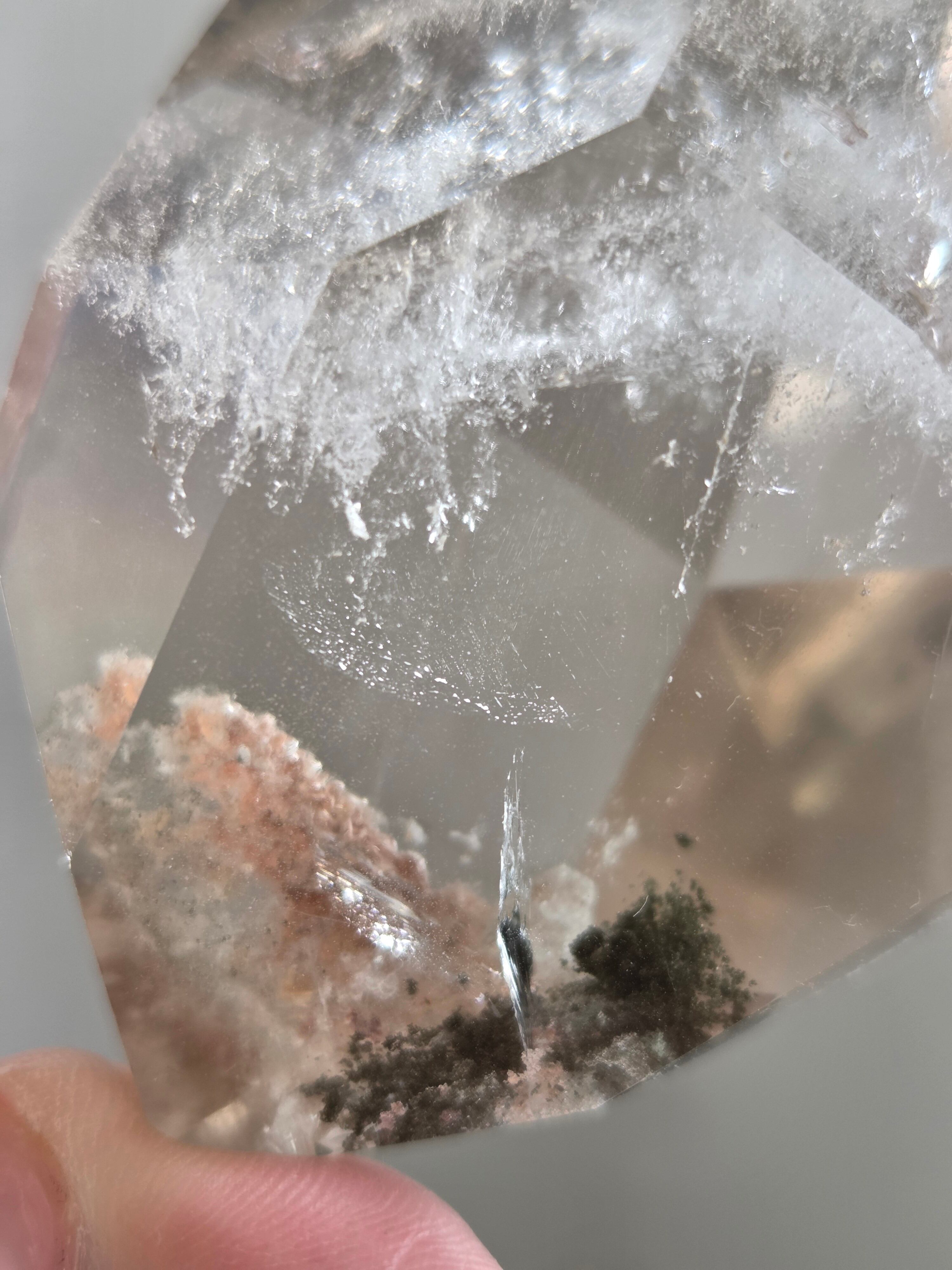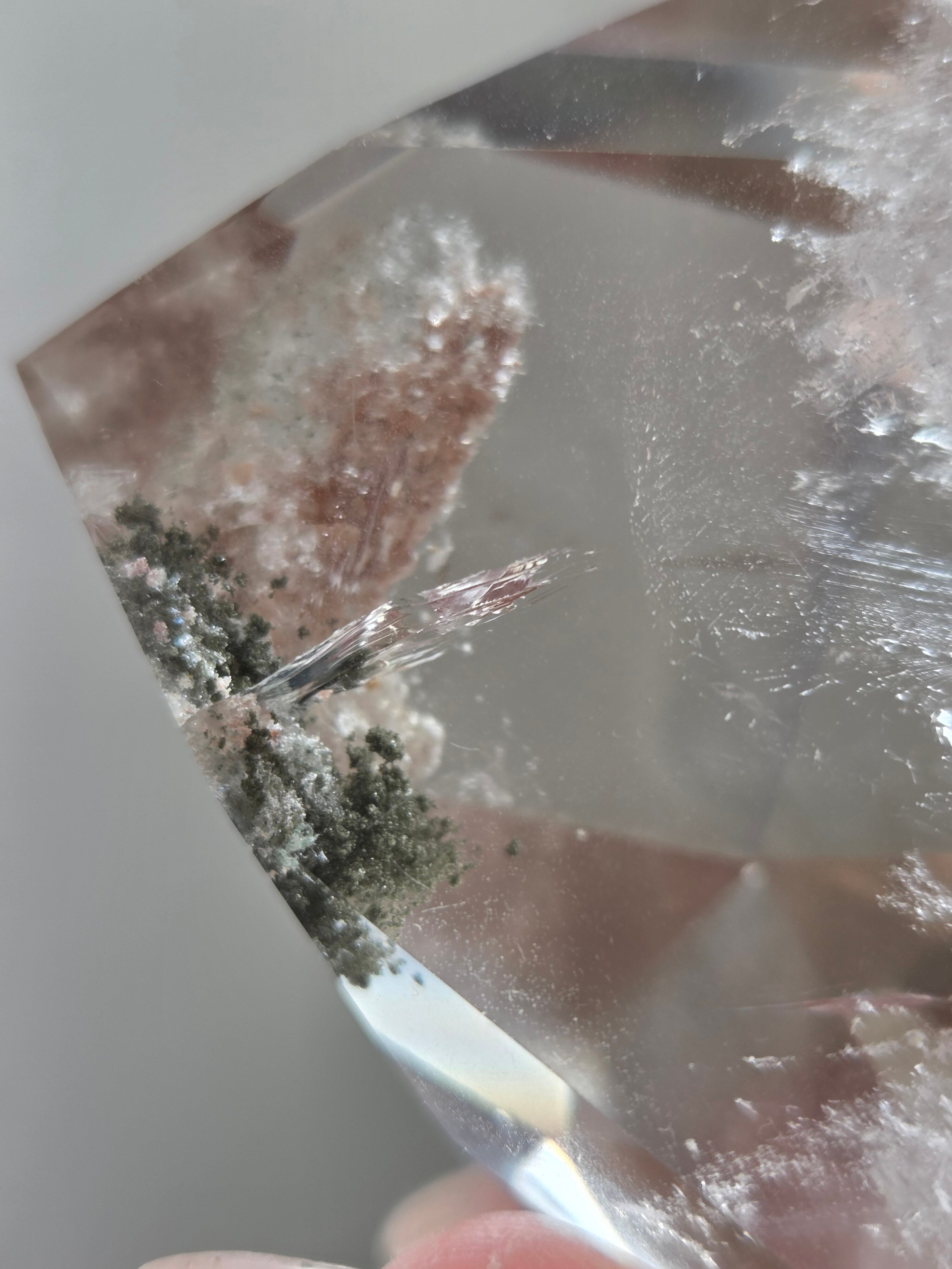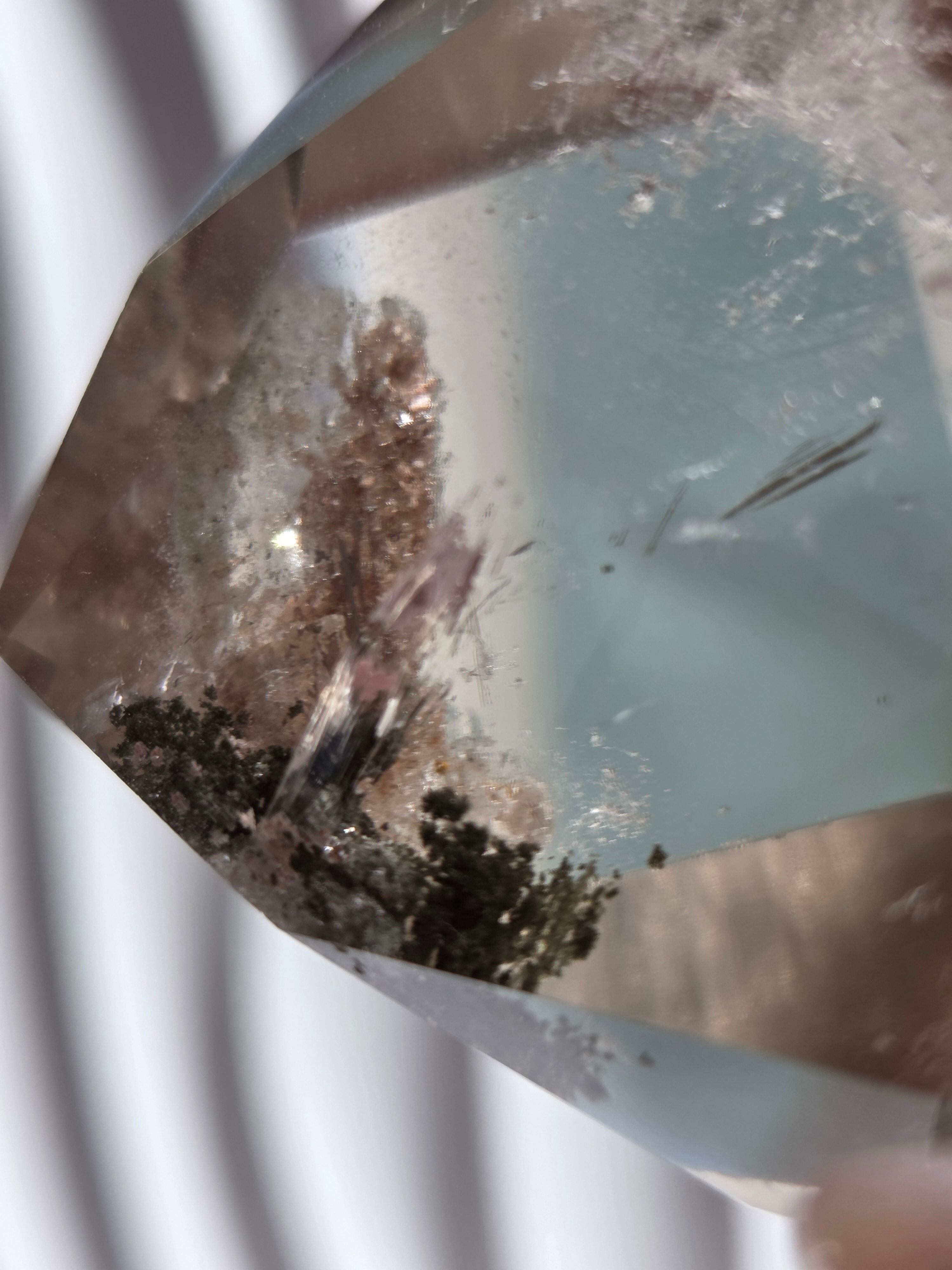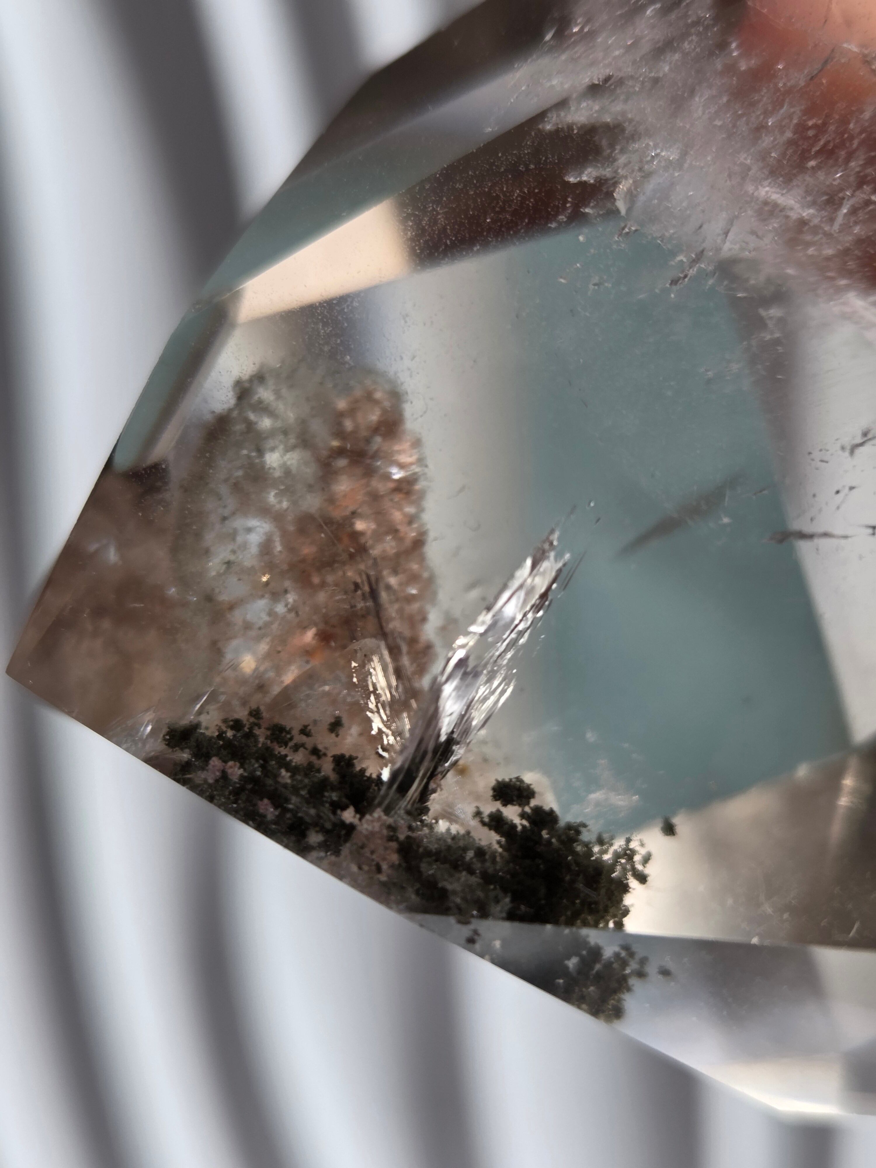 ガーデンクォーツは、内包物によって自然の風景(庭園や森など)が描かれている水晶で、邪気やマイナスエネルギーから守り、正財運を招くなど、様々な効果があるとされています。また、グラウンディング効果があり、ビジネスの成功をサポートするとも言われています。