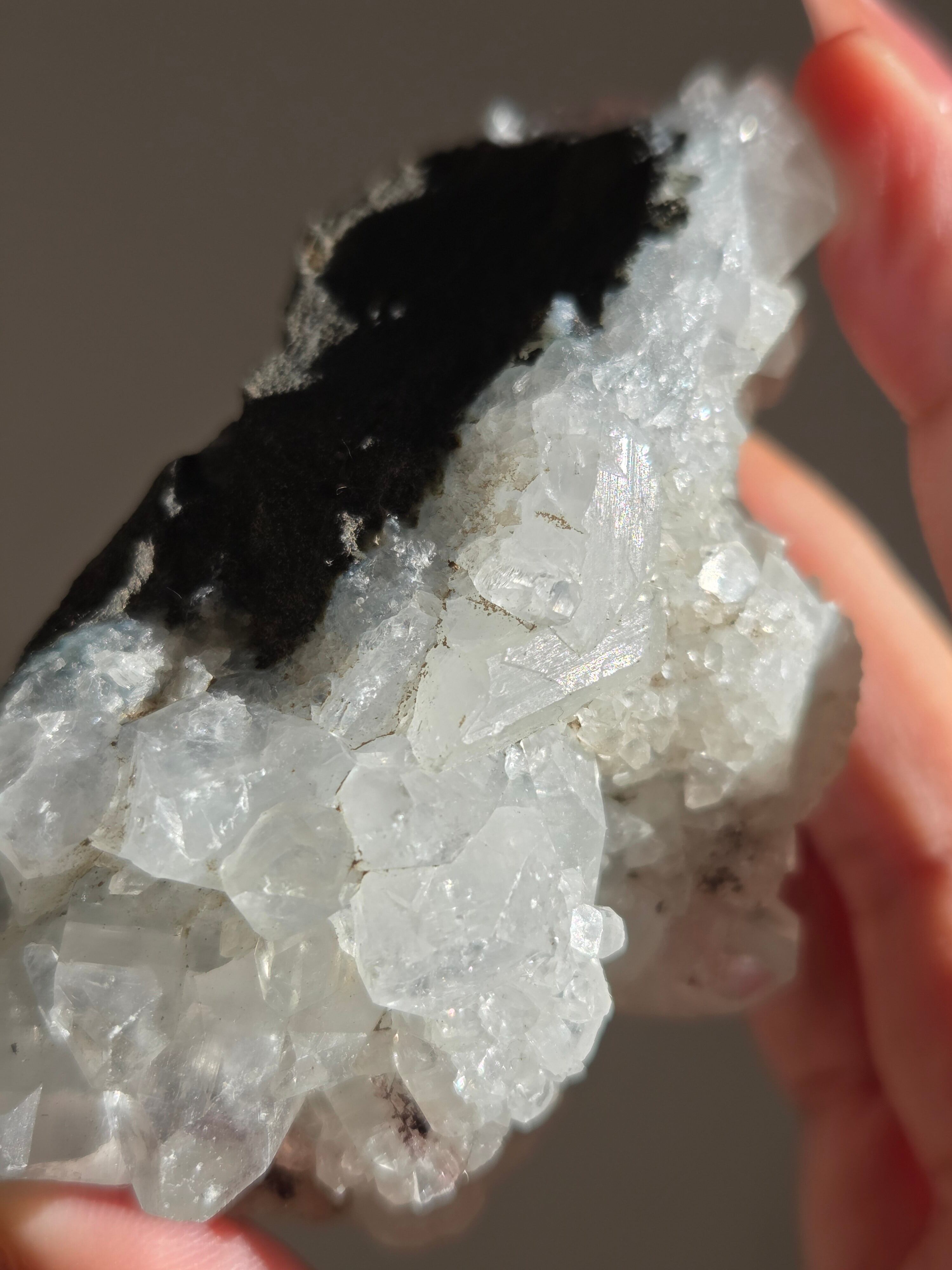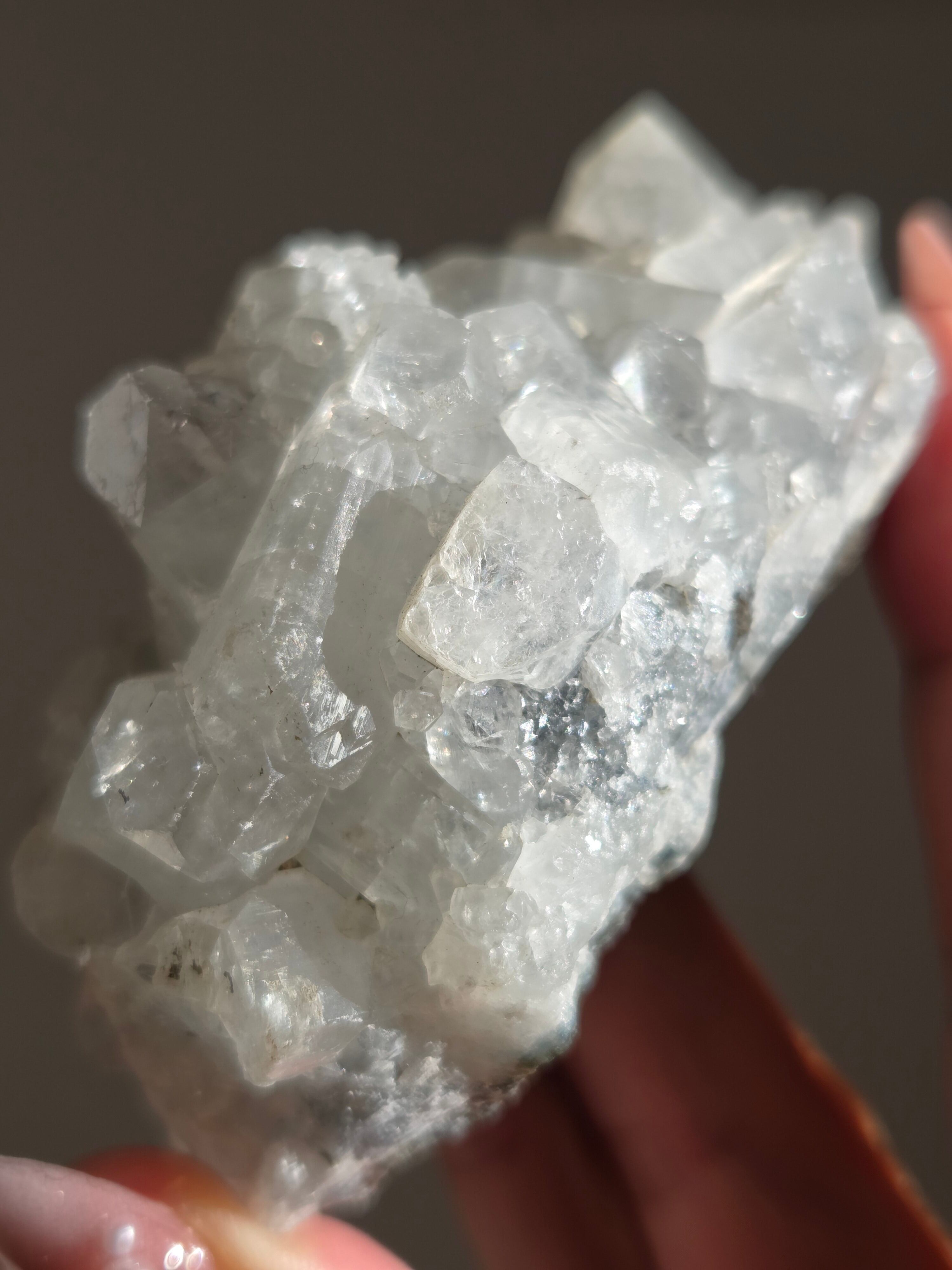 アポフィライトには、強力な浄化作用があり、ストレスを軽減し、精神的な閉塞感や否定的な思考パターンを解放してくれます。 過去からの思い込みや習慣で思考や行動の基礎習慣など、自分を縛っているネガティブな固定観念を解放します。 アポフィライトは、目標に向かって進んでいく道を示し、新しい一歩を踏み出すサポートをしてくれるといわれています。
